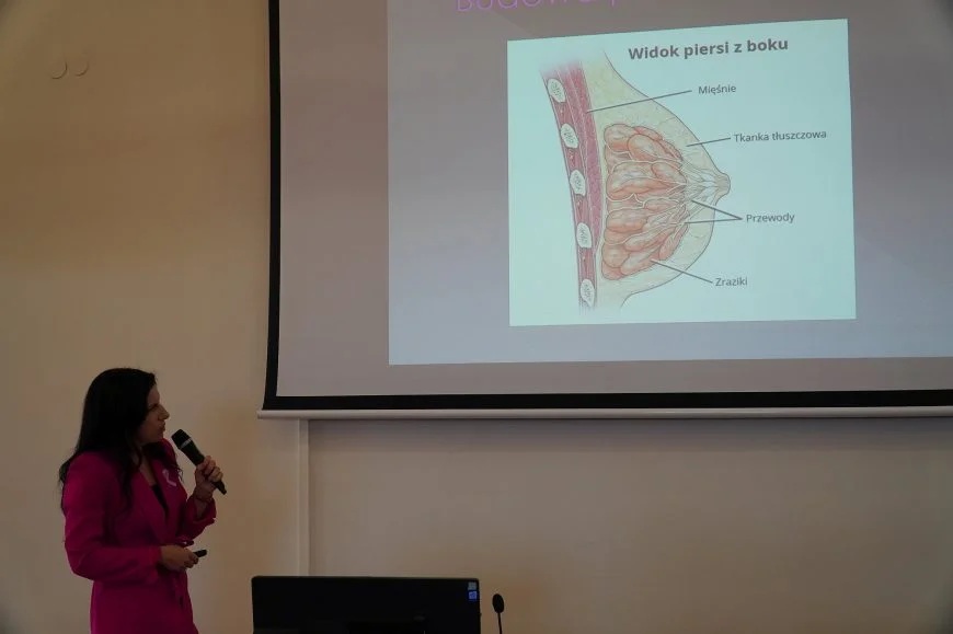 Integralną częścią wydarzenia były warsztaty praktyczne z samobadania piersi, w których wzięli udział uczniowie jarosławskich szkół ponadpodstawowych. To właśnie oni – młodzi, ciekawi świata ludzie, mieli okazję przekonać się, że troska o zdrowie zaczyna się od świadomości i codziennych, prostych nawyków.