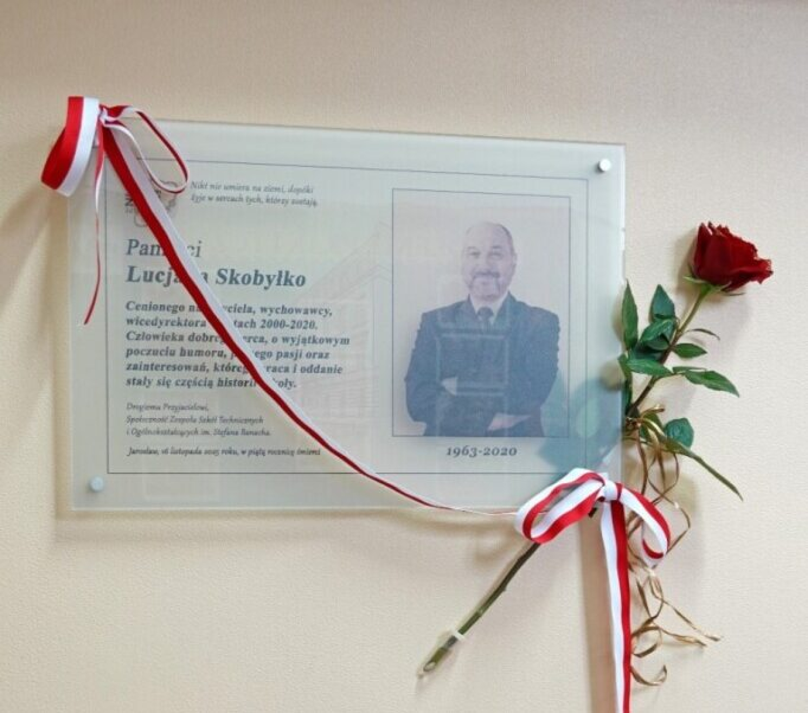 17 listopada społeczność Zespołu Szkół Technicznych i Ogólnokształcących uczciła, przypadającą dzień wcześniej, piątą rocznicę śmierci wieloletniego nauczyciela i wicedyrektora szkoły Lucjana Skobyłko. Z tej okazji odbyło się uroczyste odsłonięcie pamiątkowej tablicy poświęconej pamięci nieodżałowanego przyjaciela, kolegi i pracownika.
