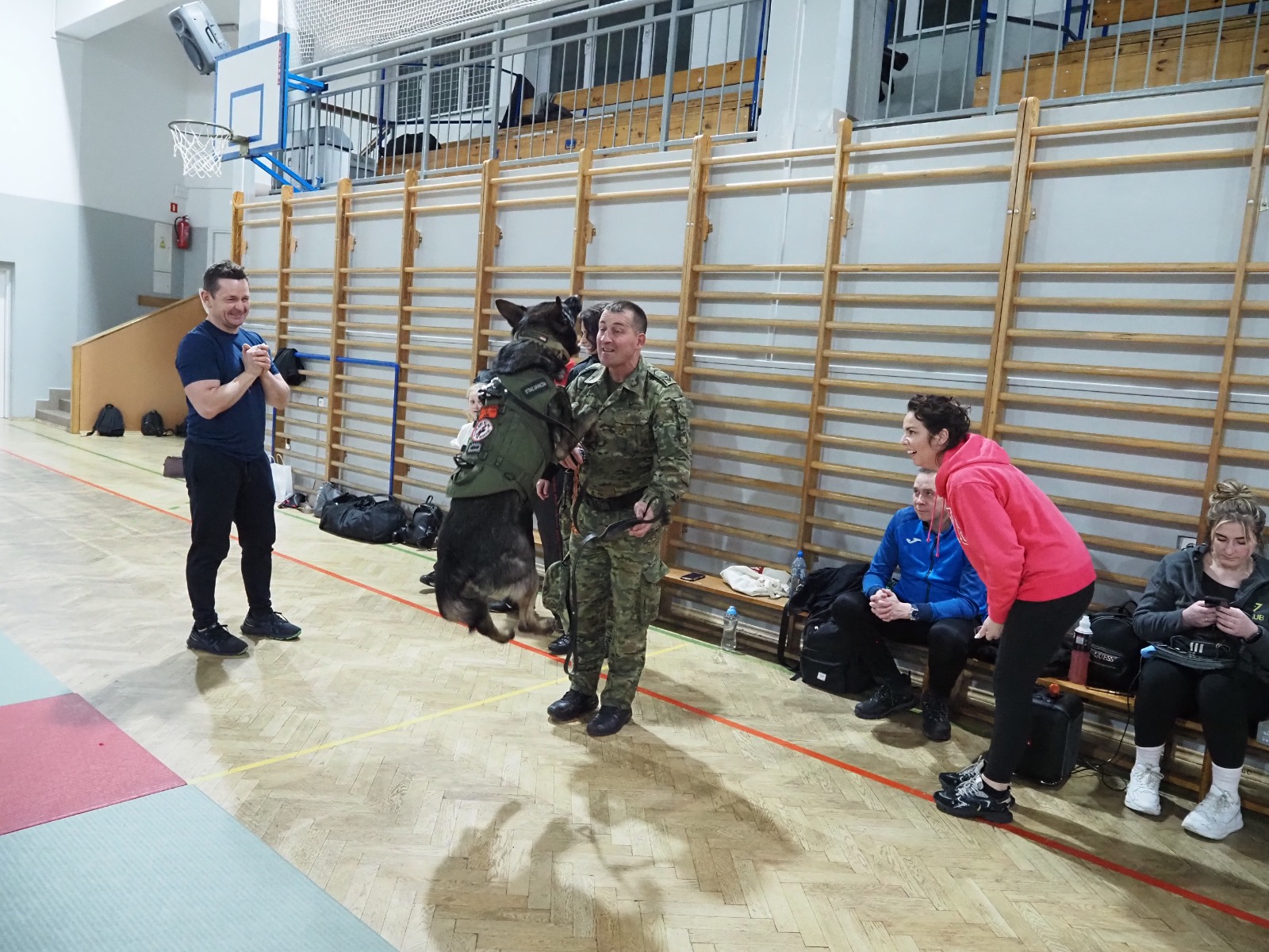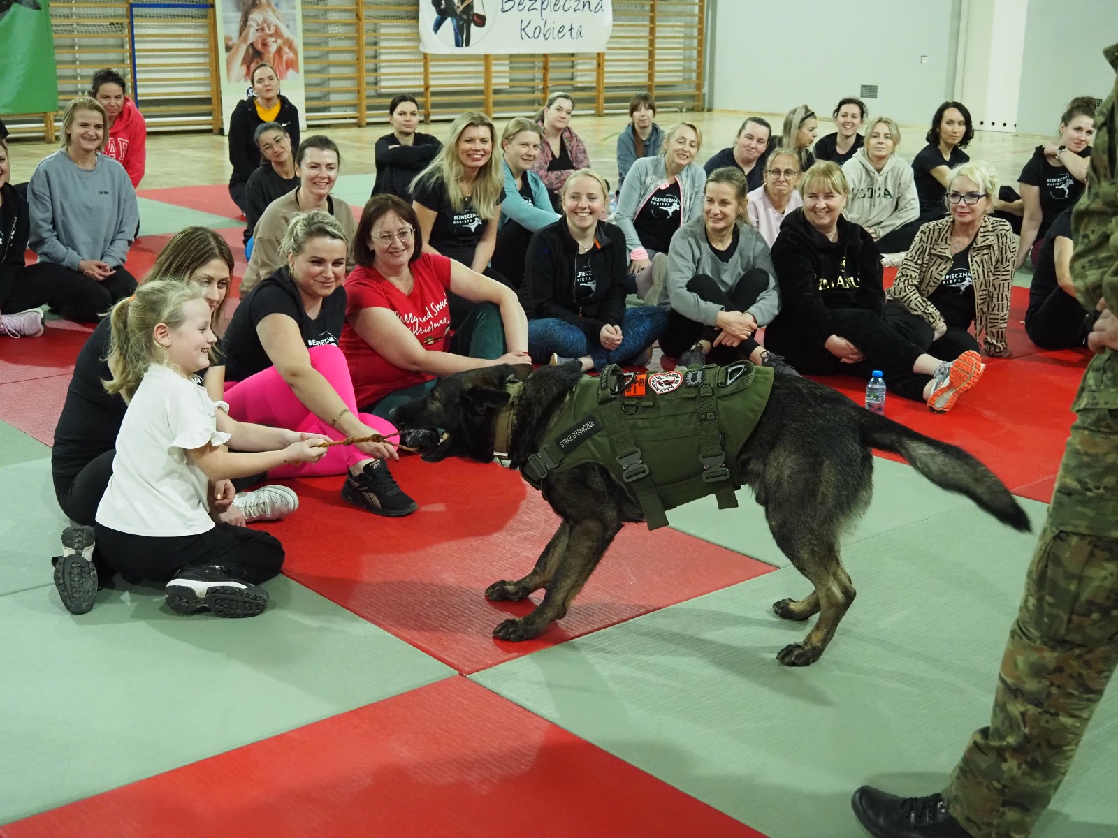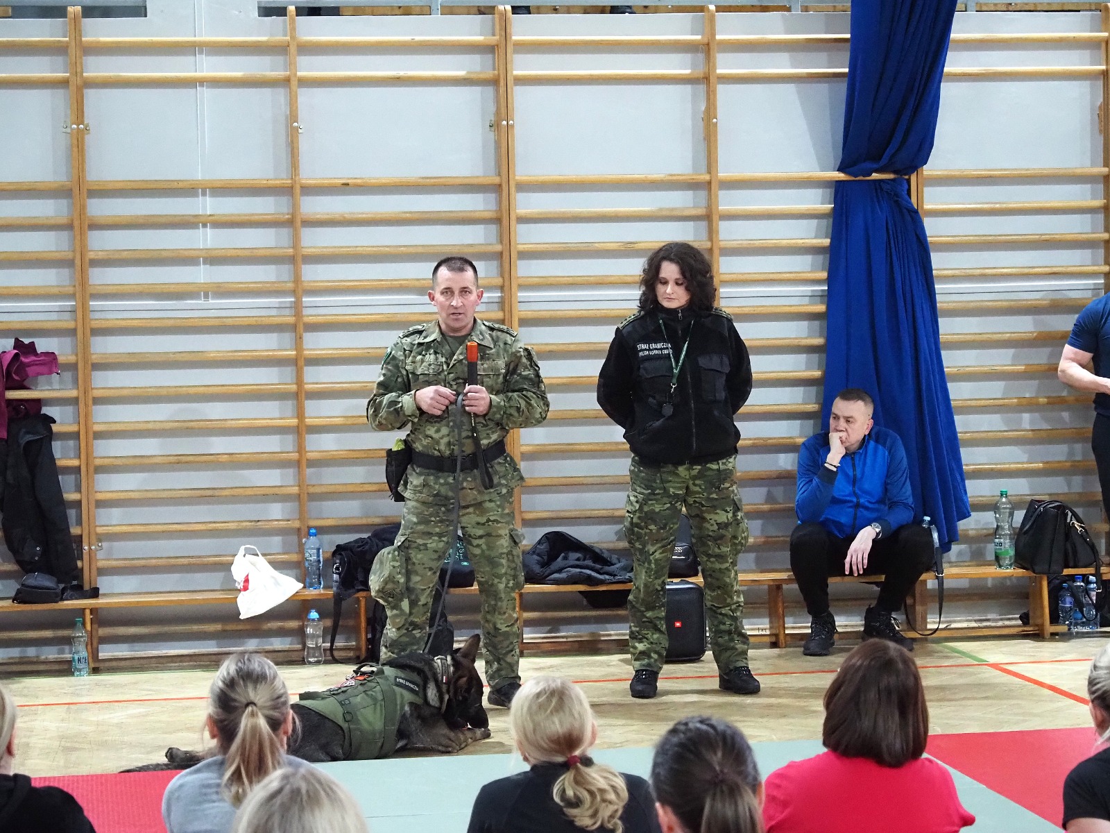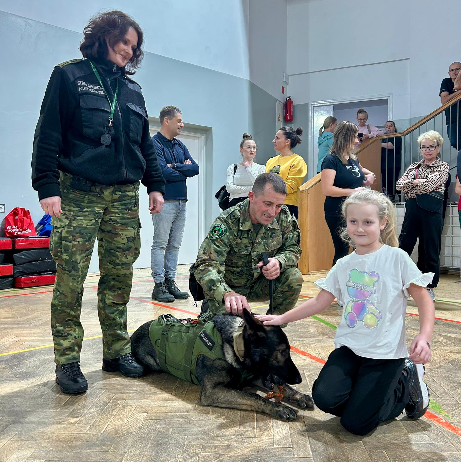 Tym razem miały też wyjątkowych gości: na zajęciach pojawiła się dwójka funkcjonariuszy Bieszczadzkiego Oddziału Straży Granicznej wraz ze szkolonym psem Hoganem. Pogranicznicy opowiedzieli, jak wygląda praca z takim czworonożnym partnerem, pokazali poziom jego posłuszeństwa, a przede wszystkim — zaprezentowali, jak prawidłowo reagować i bronić się w sytuacji ataku psa. To była ogromnie cenna i robiąca wrażenie lekcja praktyczna.