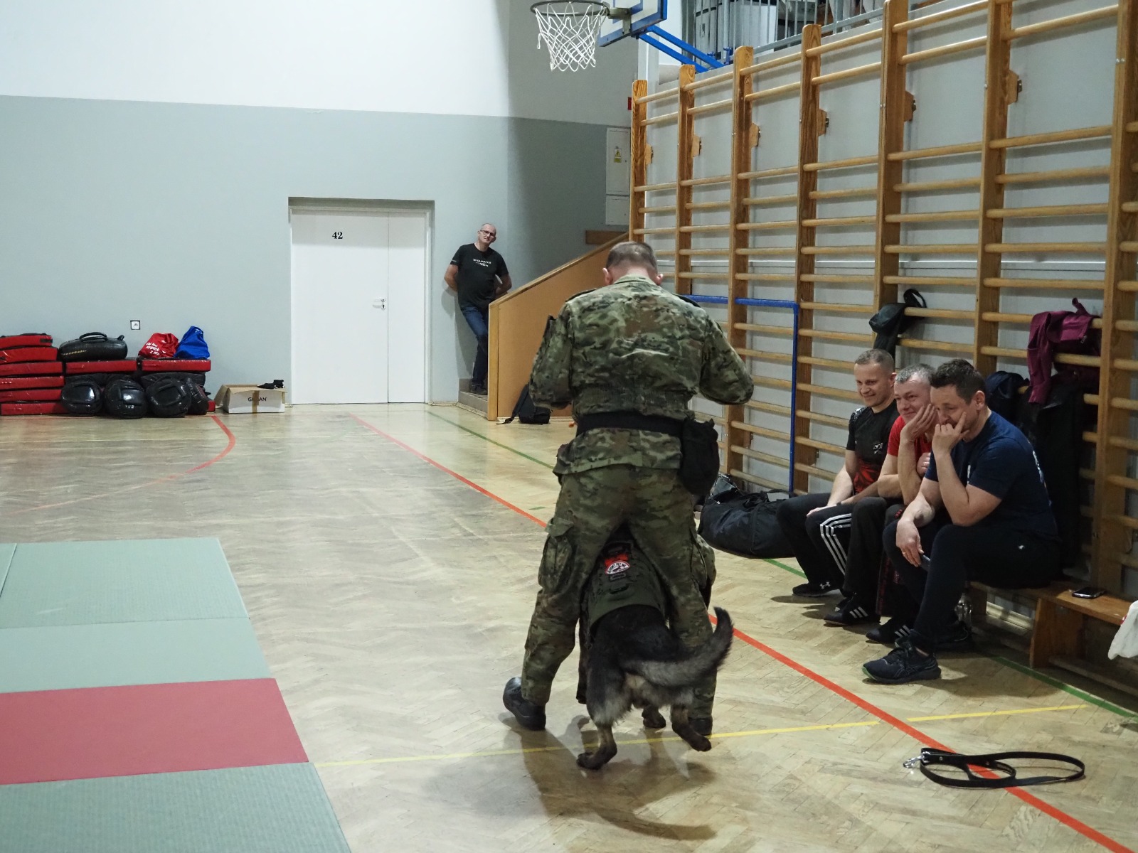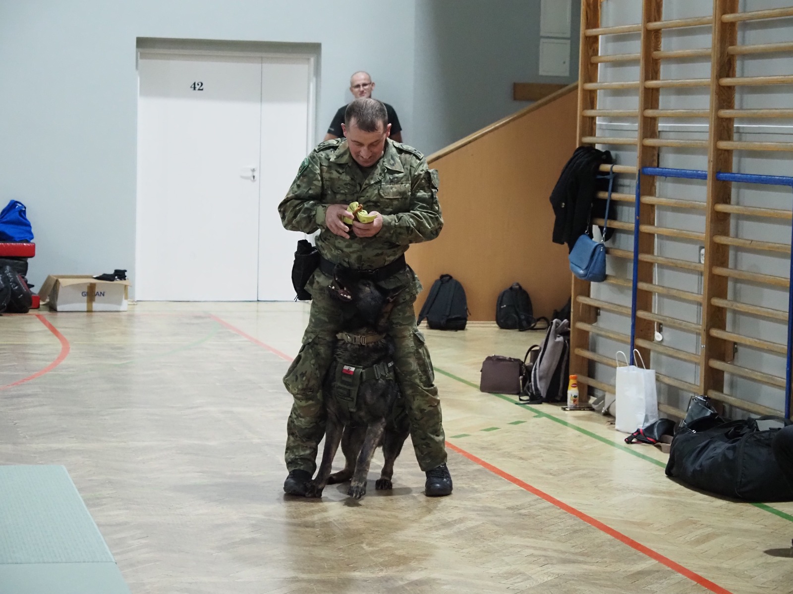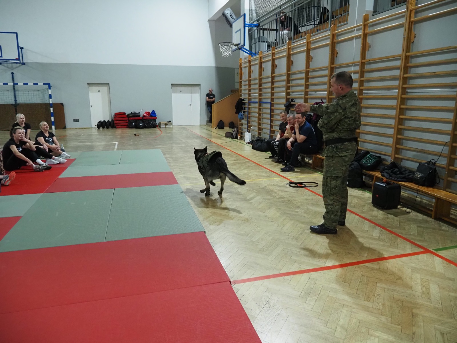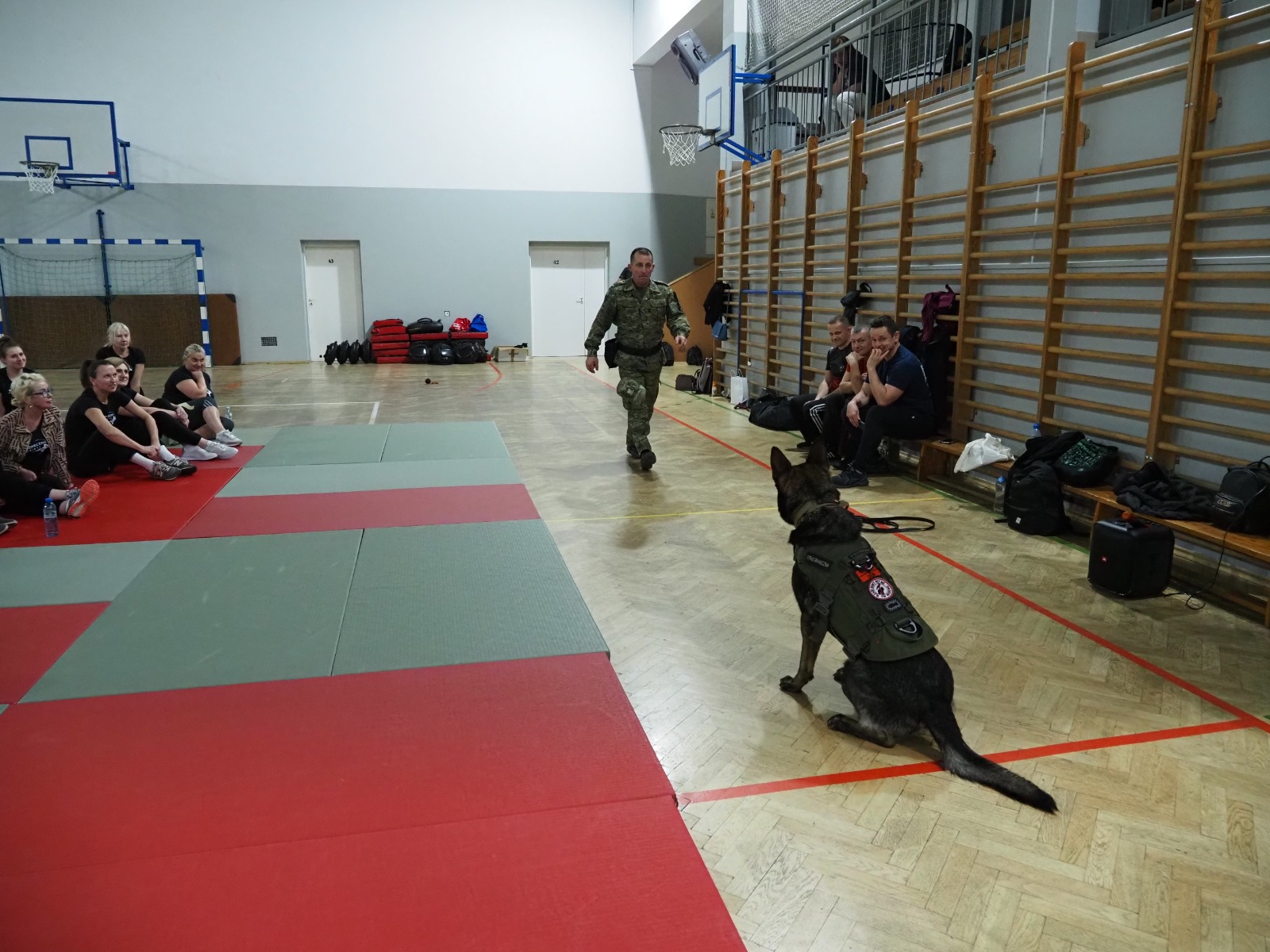 Tym razem miały też wyjątkowych gości: na zajęciach pojawiła się dwójka funkcjonariuszy Bieszczadzkiego Oddziału Straży Granicznej wraz ze szkolonym psem Hoganem. Pogranicznicy opowiedzieli, jak wygląda praca z takim czworonożnym partnerem, pokazali poziom jego posłuszeństwa, a przede wszystkim — zaprezentowali, jak prawidłowo reagować i bronić się w sytuacji ataku psa. To była ogromnie cenna i robiąca wrażenie lekcja praktyczna.
