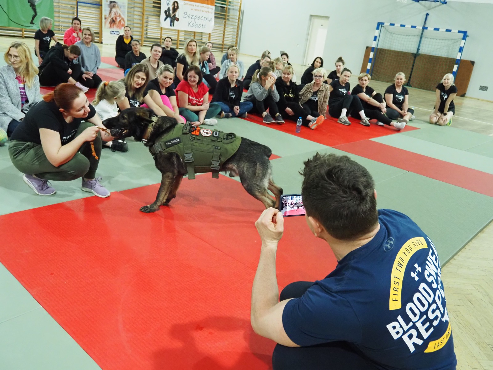 A na dobranoc (i na dobry początek weekendu), publikujemy fotorelację z dzisiejszych zajęć, odbywających się w ramach akcji BEZPIECZNA KOBIETA. Tym razem naszym wspaniałym i dzielnym Paniom, na treningu towarzyszył pewien kudłaty przystojniak... Hogan!