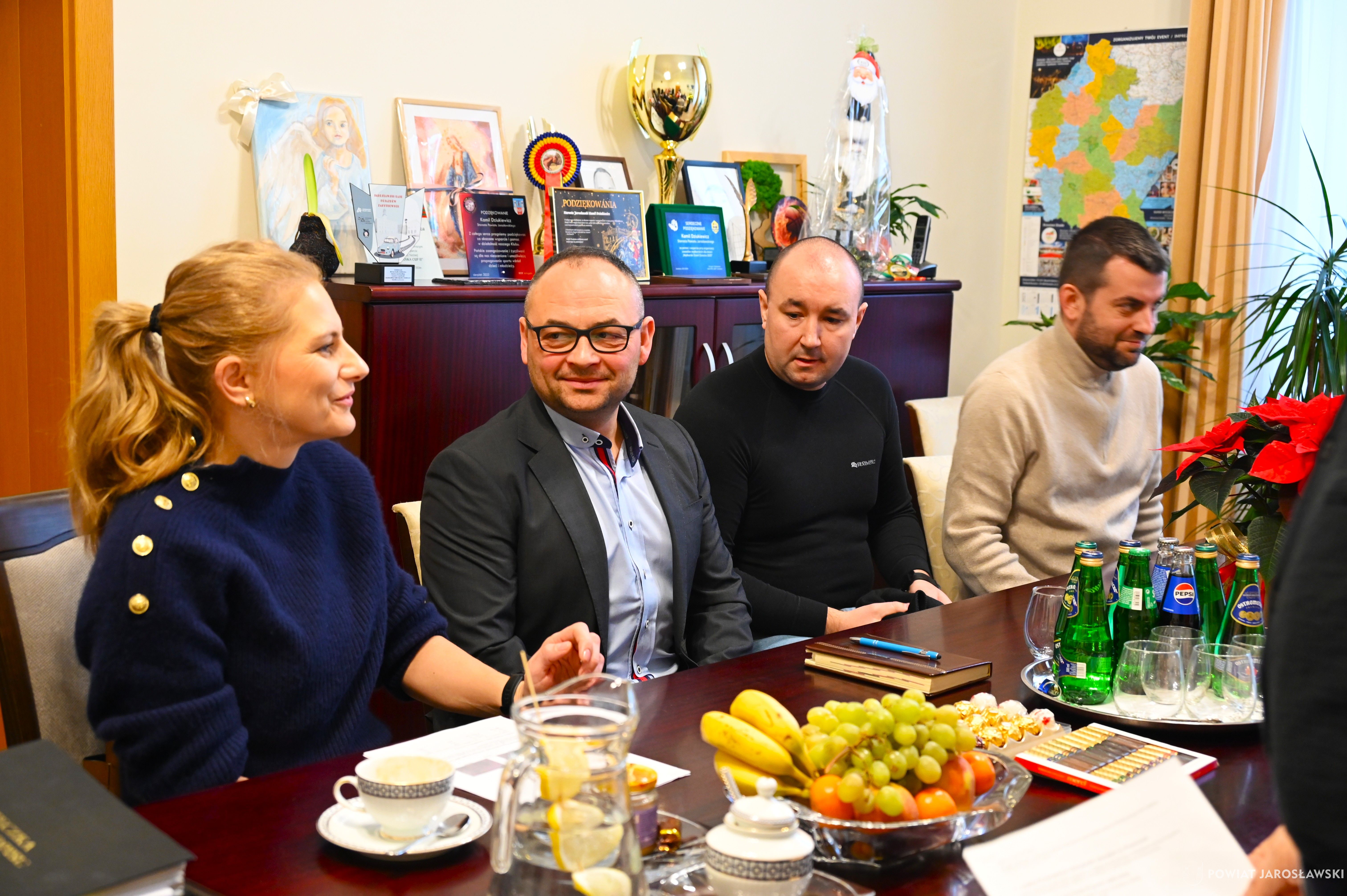 W czwartek, 11 grudnia w gabinecie starosty jarosławskiego Kamila Dziukiewicza spotkali się: włodarz powiatu, wiceburmistrz Jarosławia Magdalena Lehnart, radny miejski Jakub Bukowski oraz przedstawiciele zespołów ratownictwa medycznego: Sławomir Aksamit, Jacek Haloszka, Tomasz Pelc i Jarosław Koszuła, którym towarzyszył dyrektor Wojewódzkiej Stacji Pogotowia Ratunkowego w Przemyślu Rafał Kijanka.