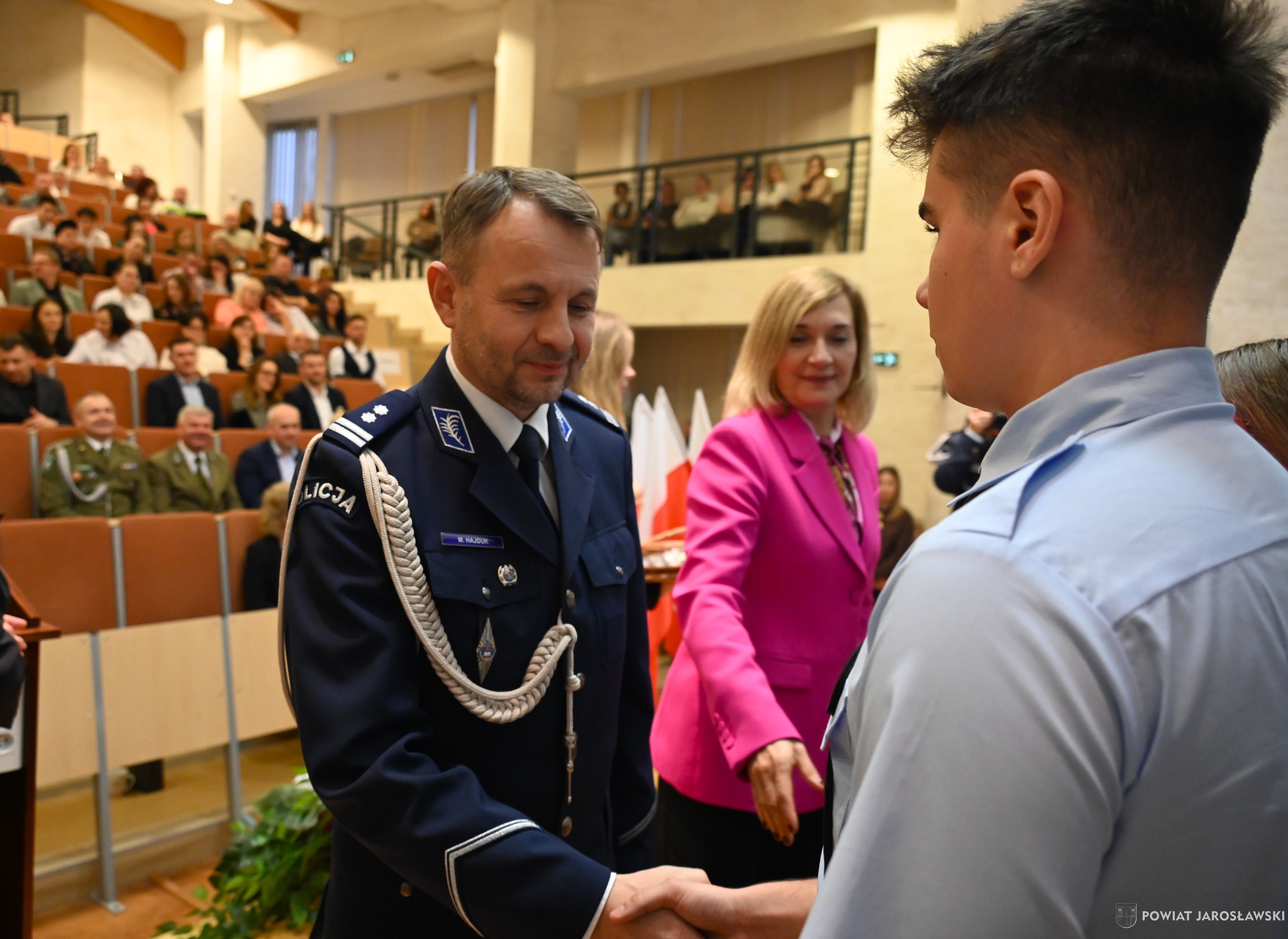 – Niezmiernie cieszy mnie fakt, iż przy tak ważnej uroczystości towarzyszy ślubowanie uczniów klas mundurowych, funkcjonujących pod patronatem Straży Granicznej i Policji. To nie tylko piękny i symboliczny akt, ale również wyraz gotowości młodych ludzi do kierowania się wartościami, które te formacje reprezentują – odpowiedzialnością, odwagą, dyscypliną oraz służbą na rzecz drugiego człowieka – powiedział starosta K. Dziukiewicz.