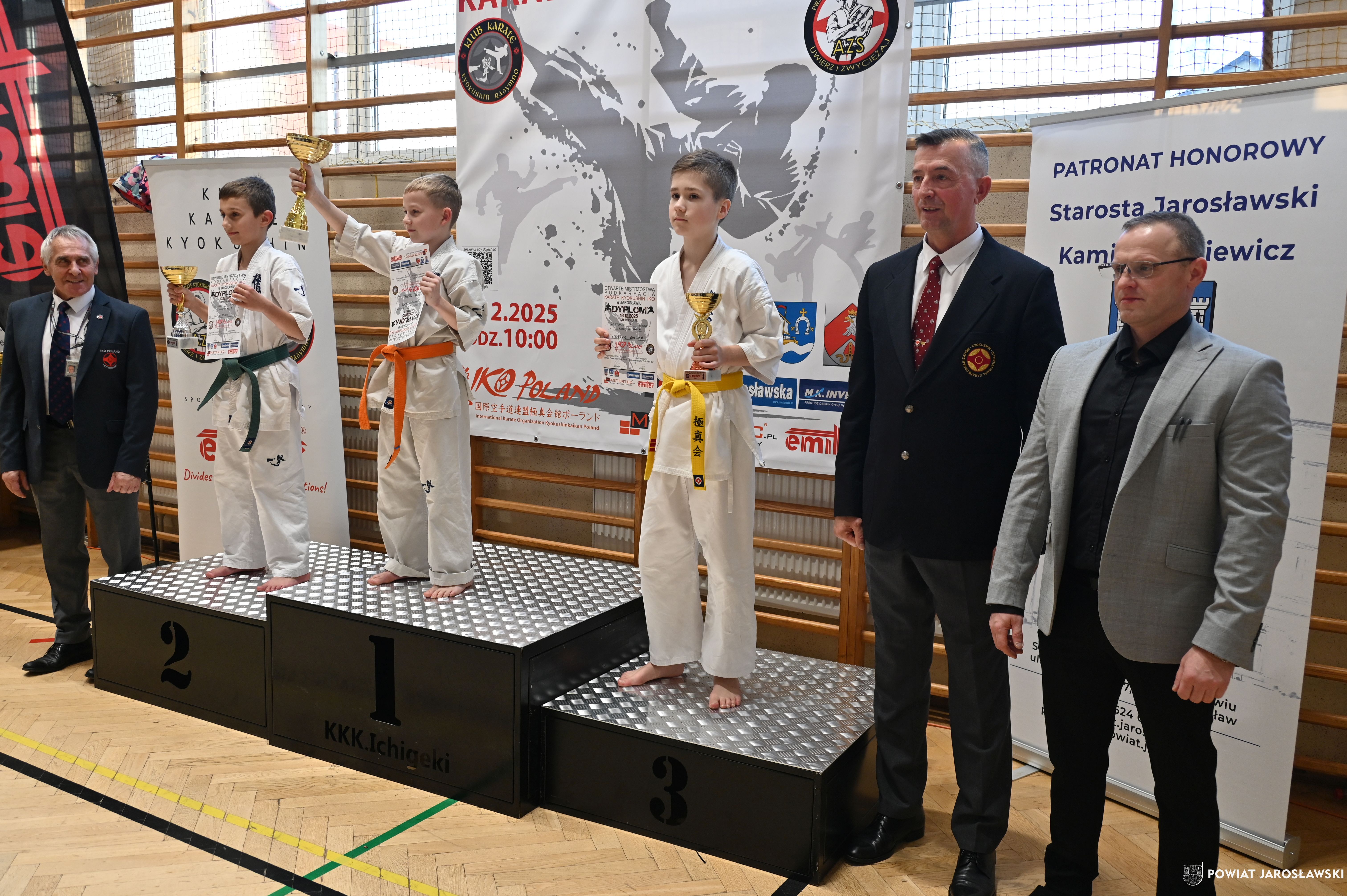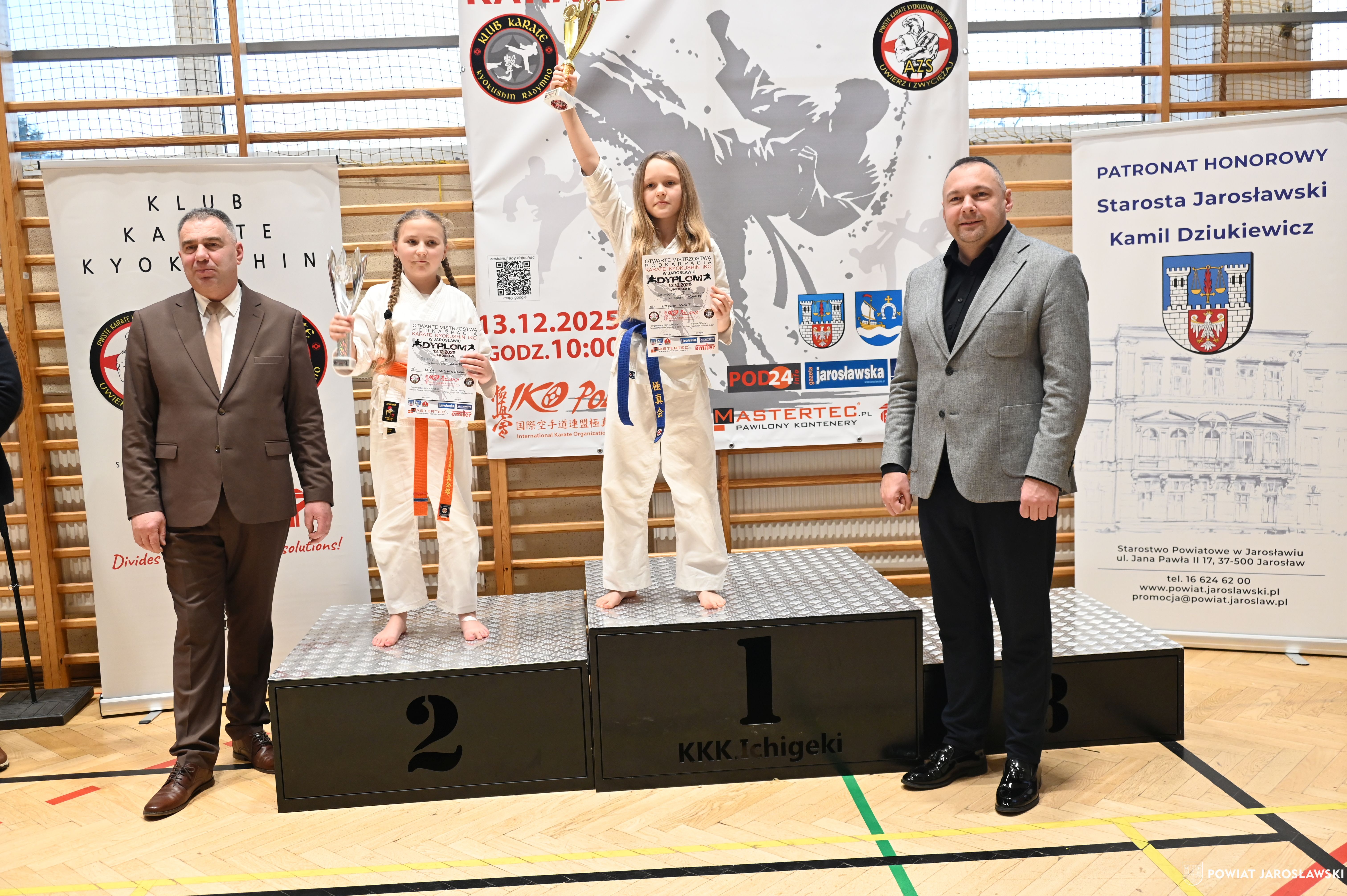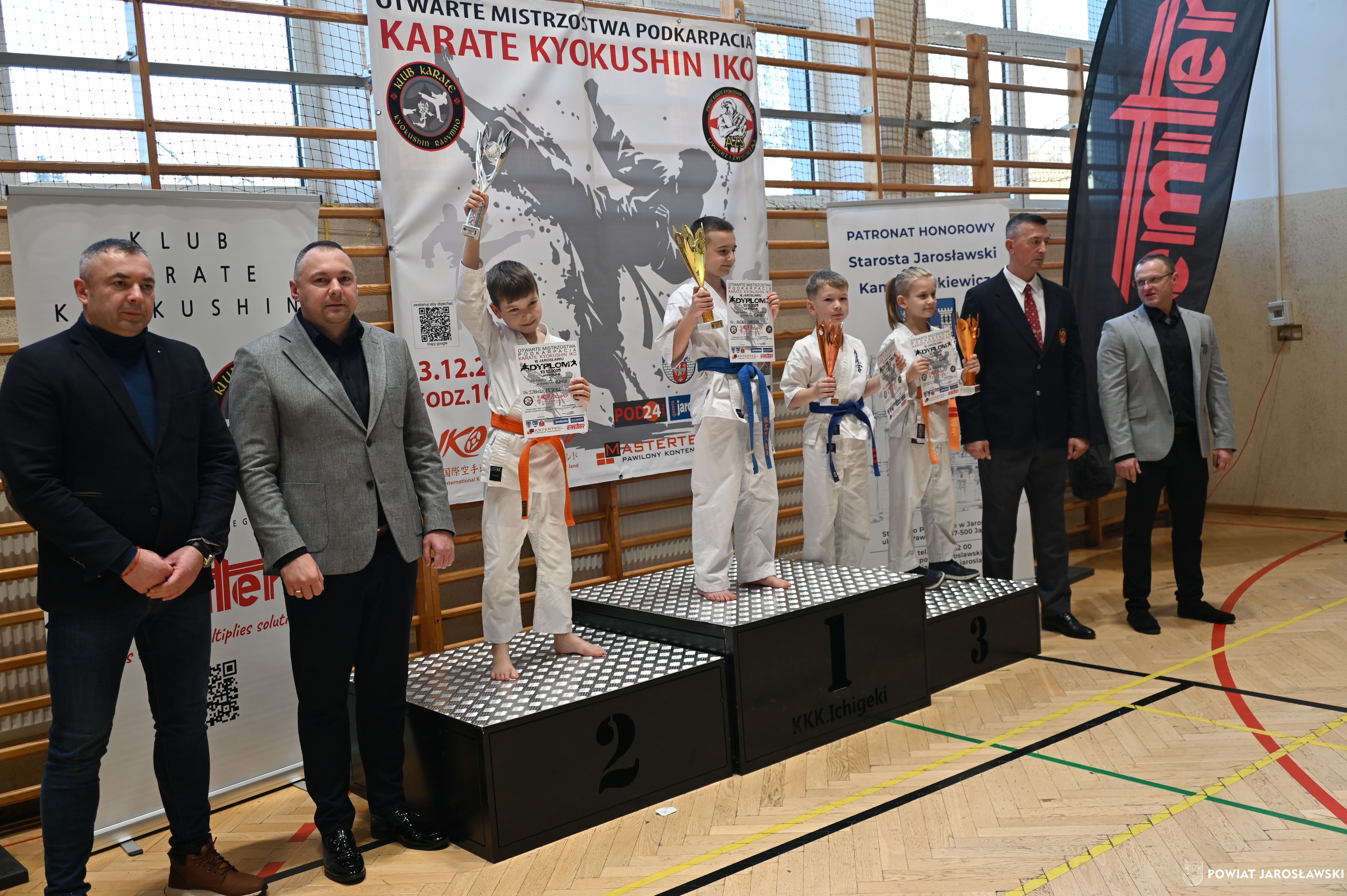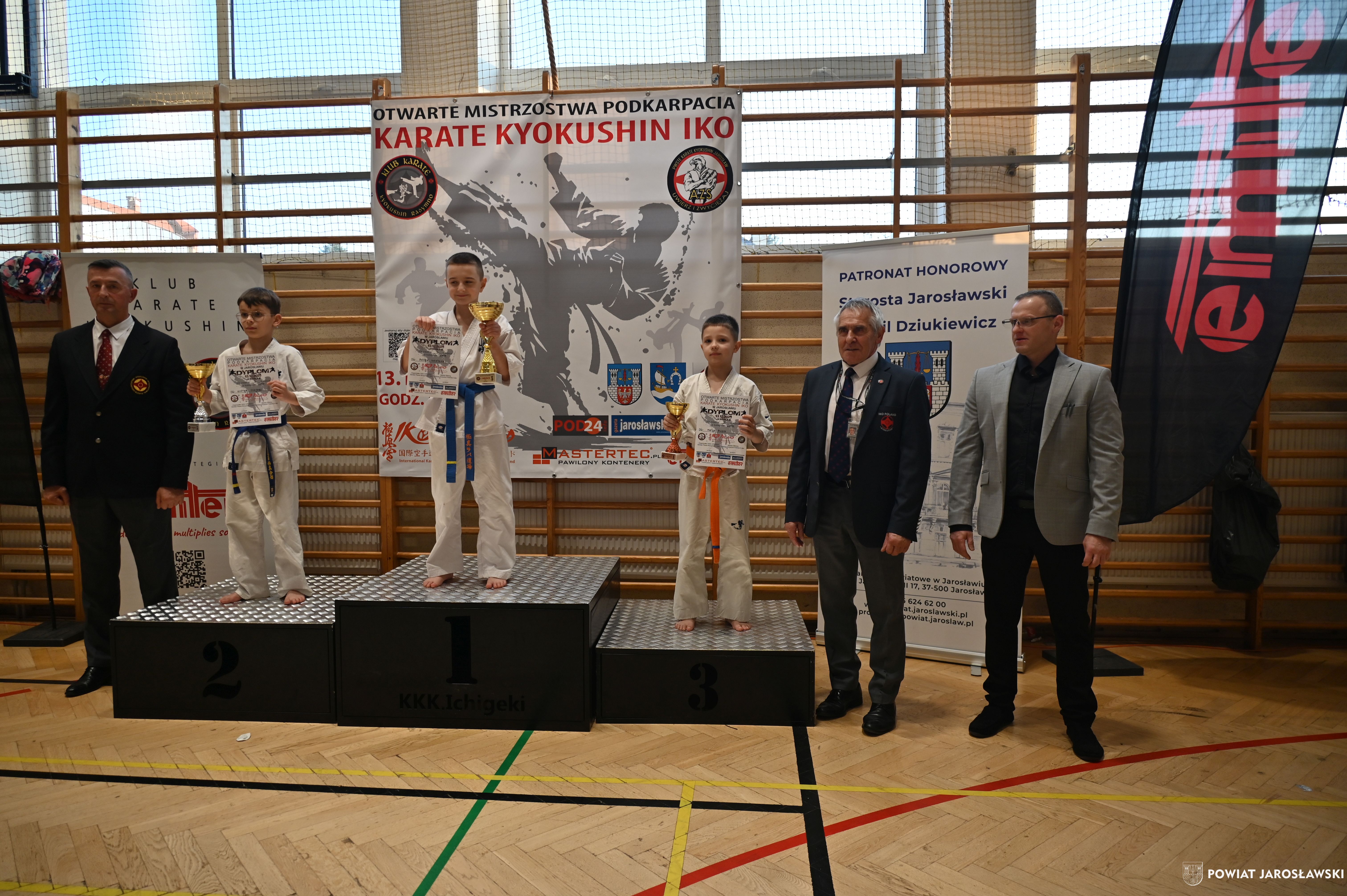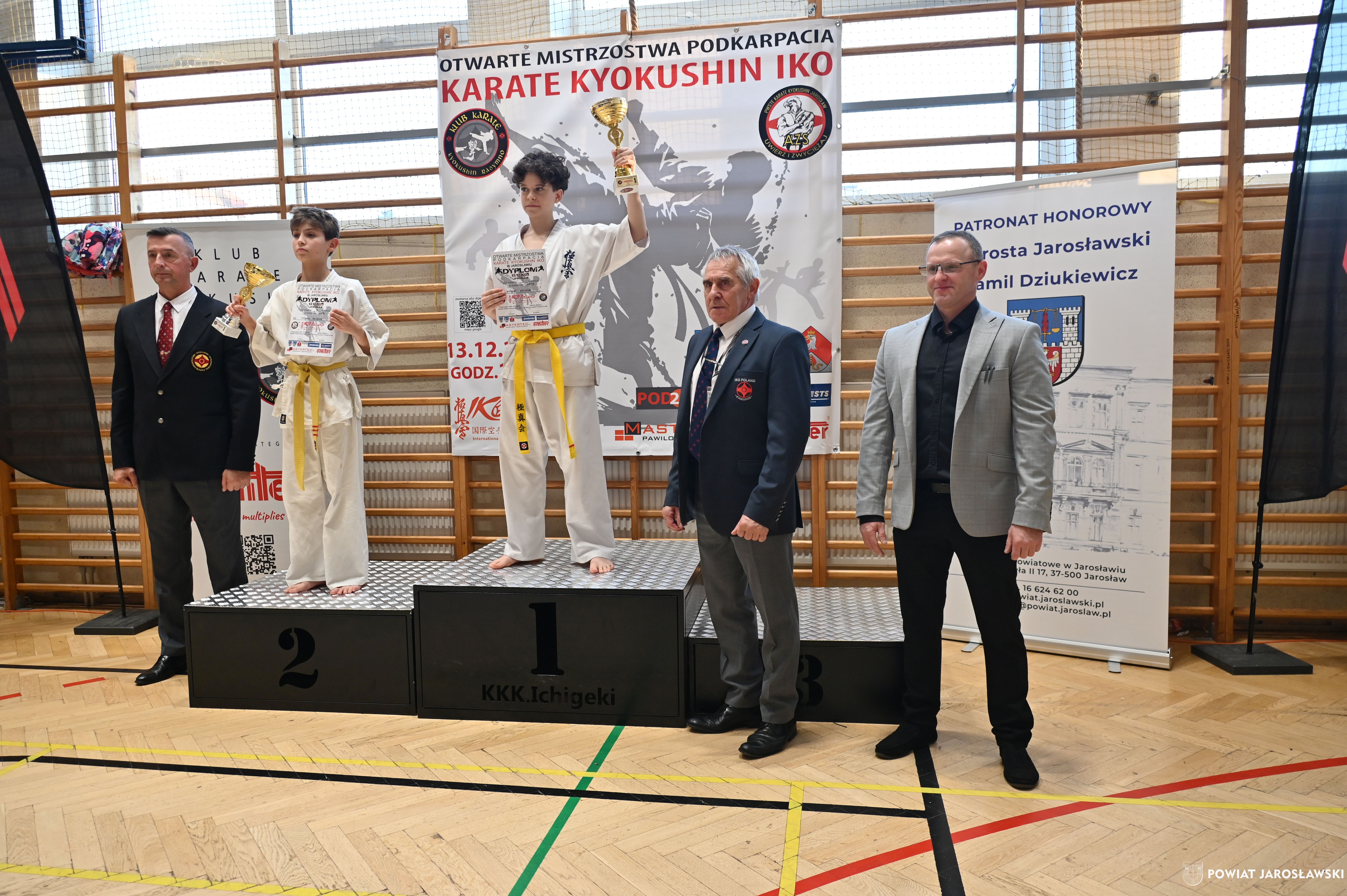 Słowa uznania i nagrody uczestnikom wręczył starosta jarosławski Kamil Dziukiewicz. Szczególne podziękowania przekazał na ręce Prezesa Klubu Karate Kyokushin "Ichigeki" Pawła Bórzyńskiego.