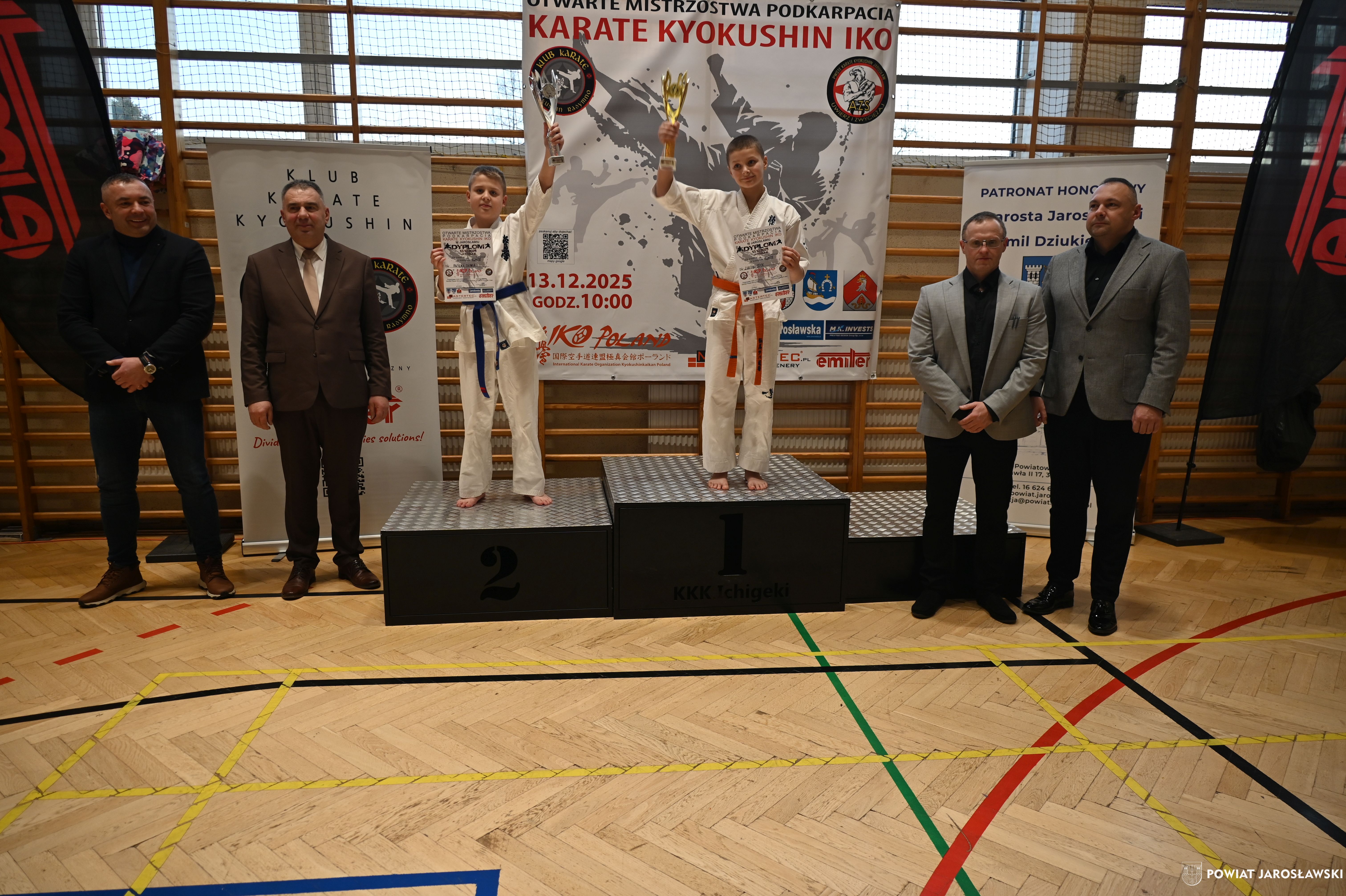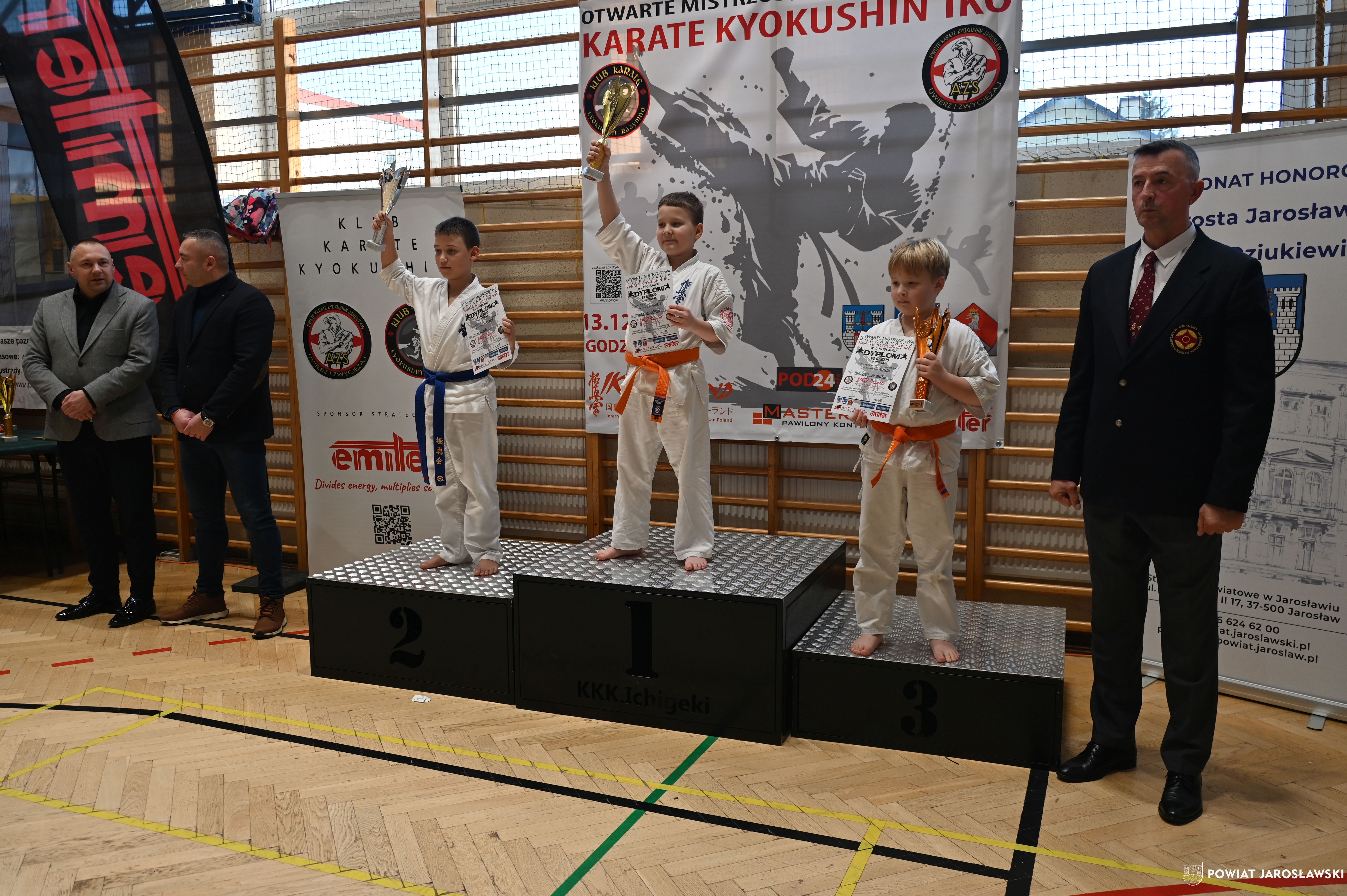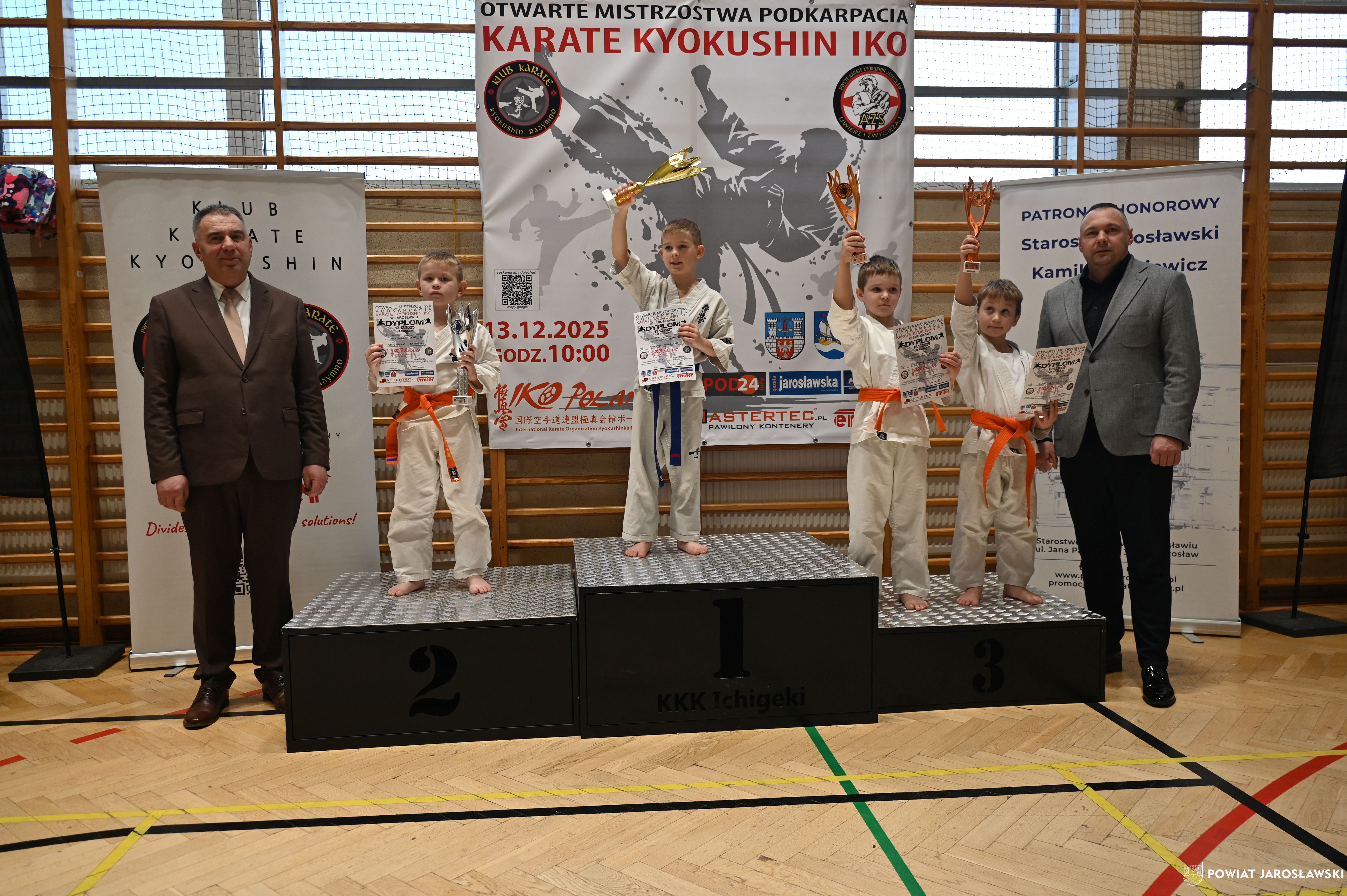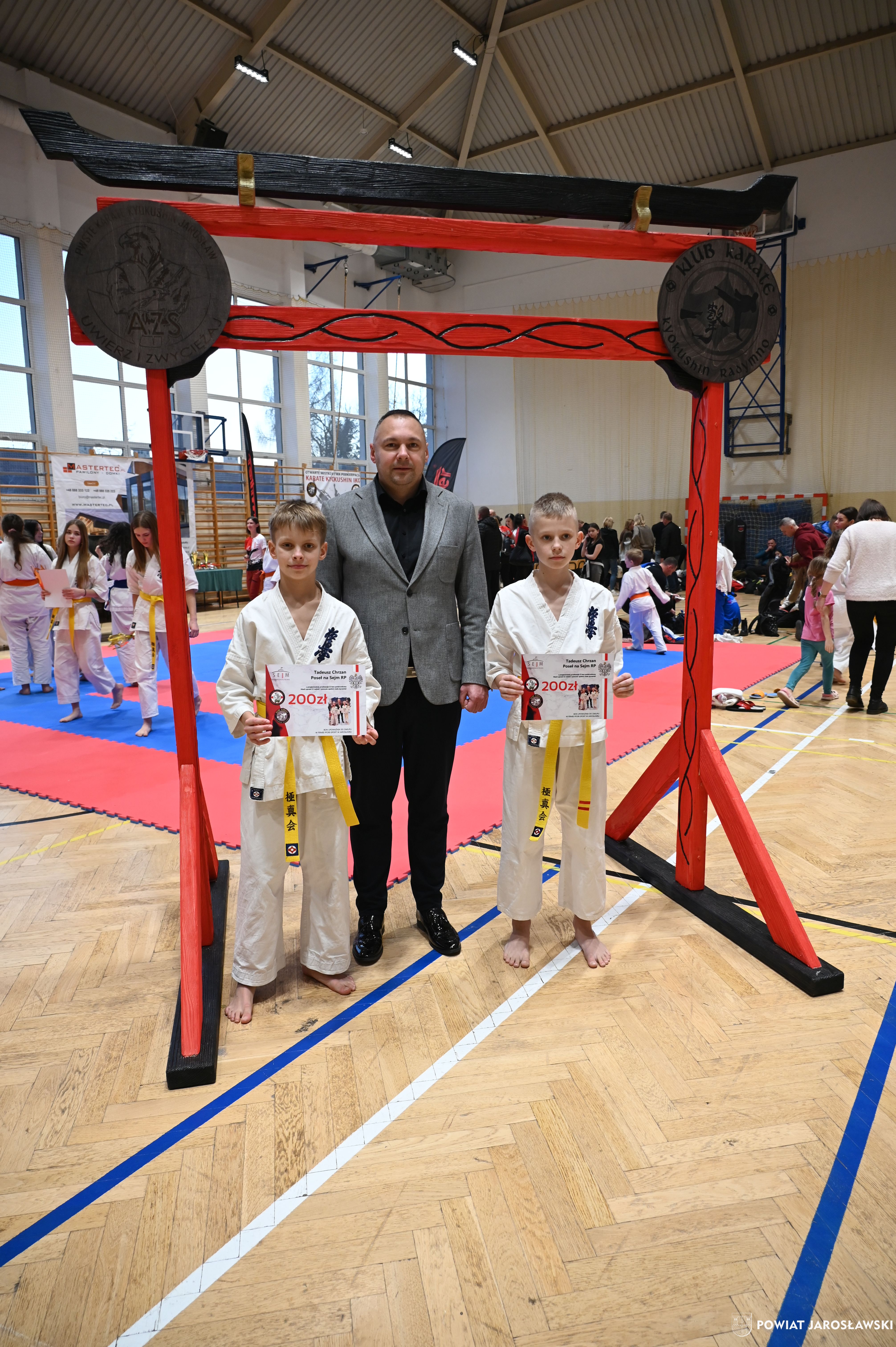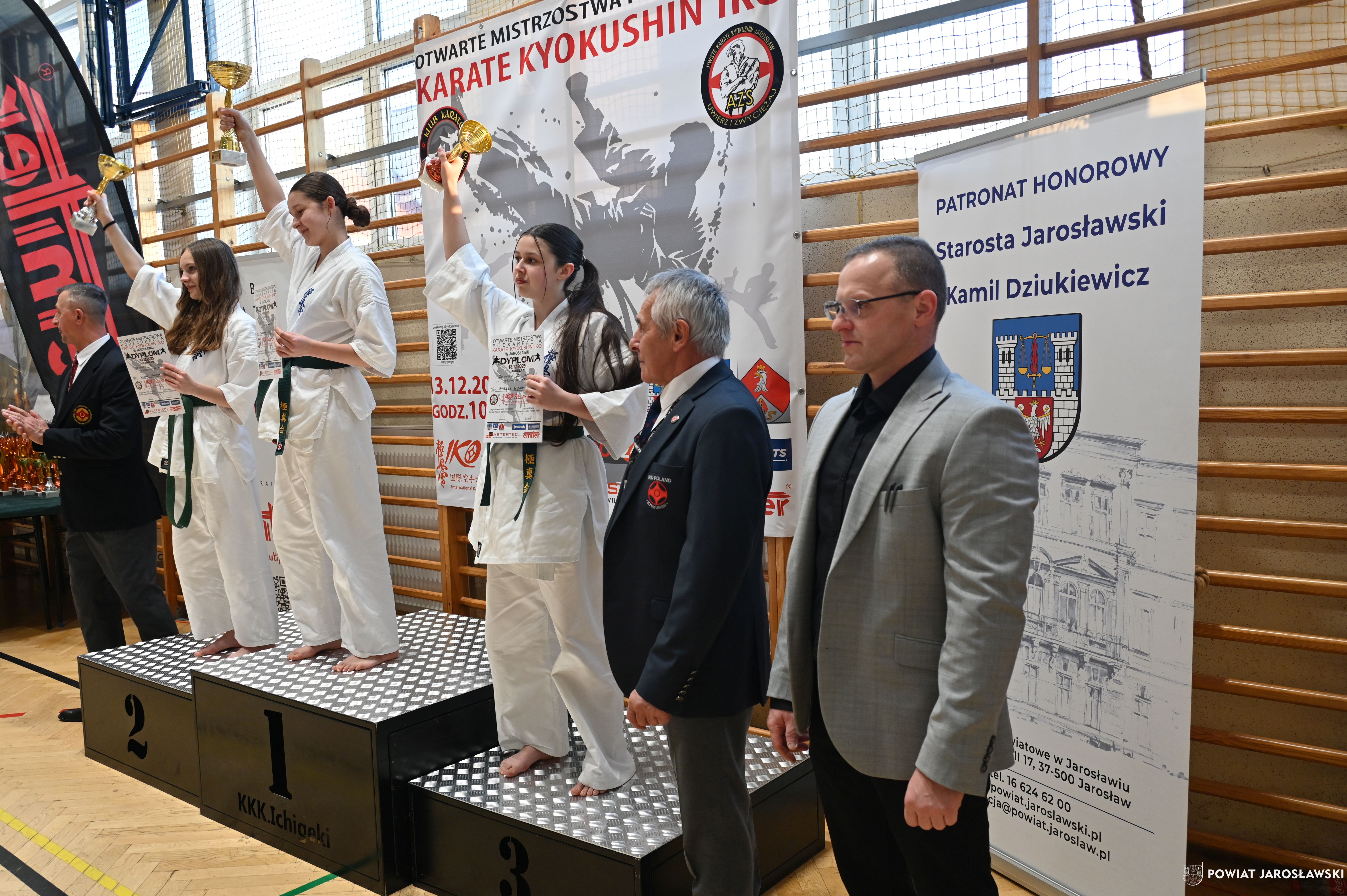 Słowa uznania i nagrody uczestnikom wręczył starosta jarosławski Kamil Dziukiewicz. Szczególne podziękowania przekazał na ręce Prezesa Klubu Karate Kyokushin "Ichigeki" Pawła Bórzyńskiego.