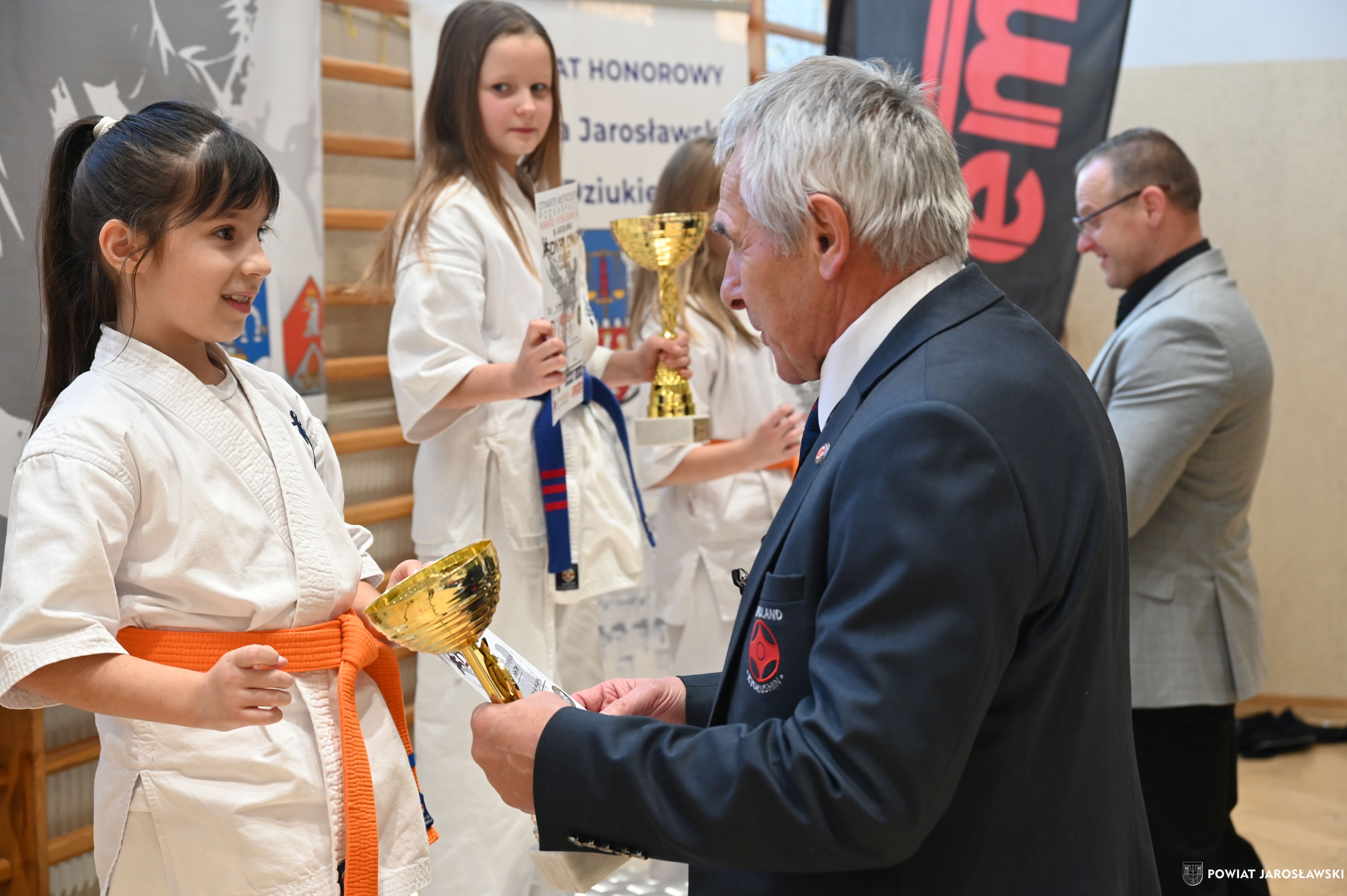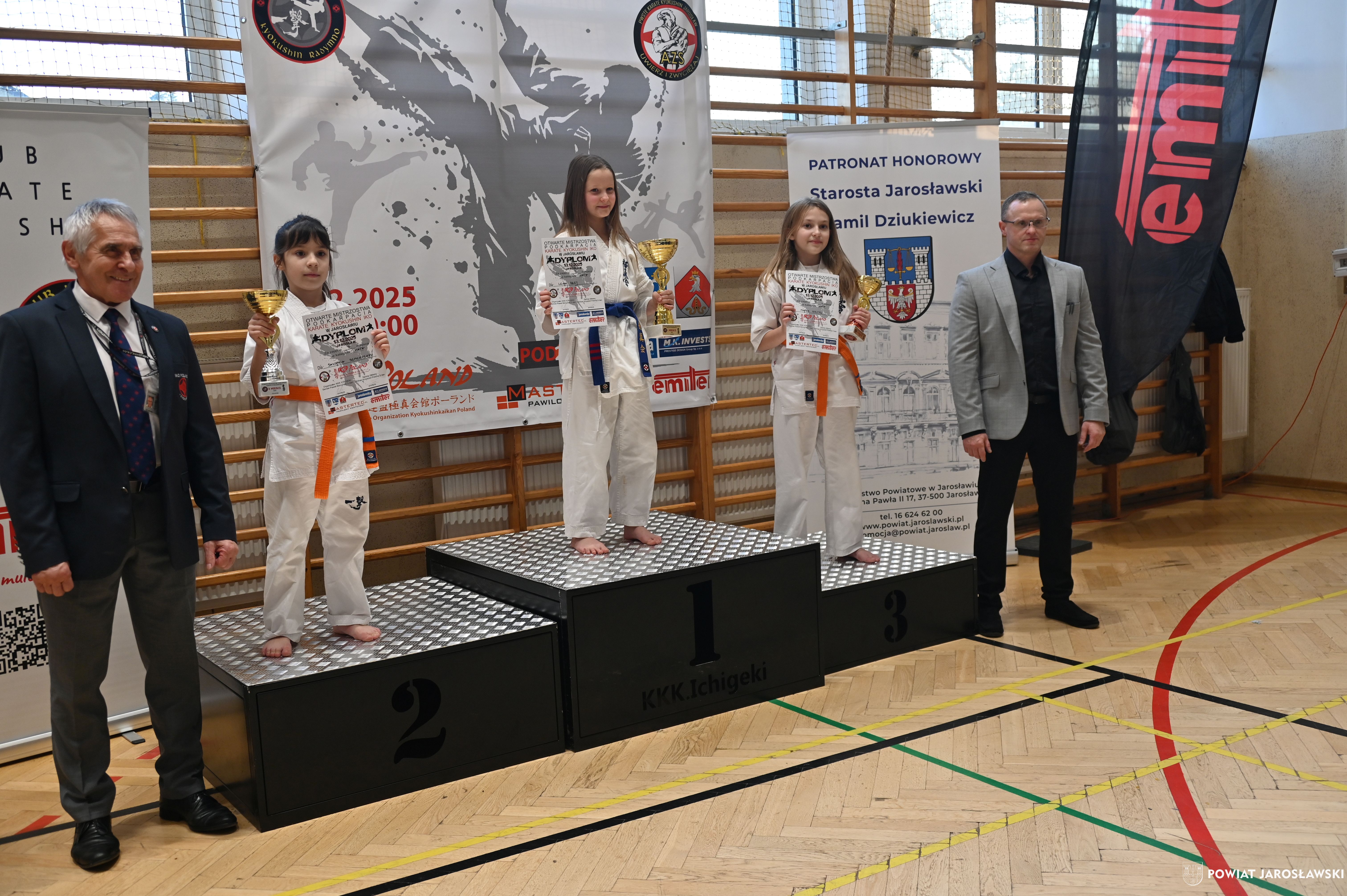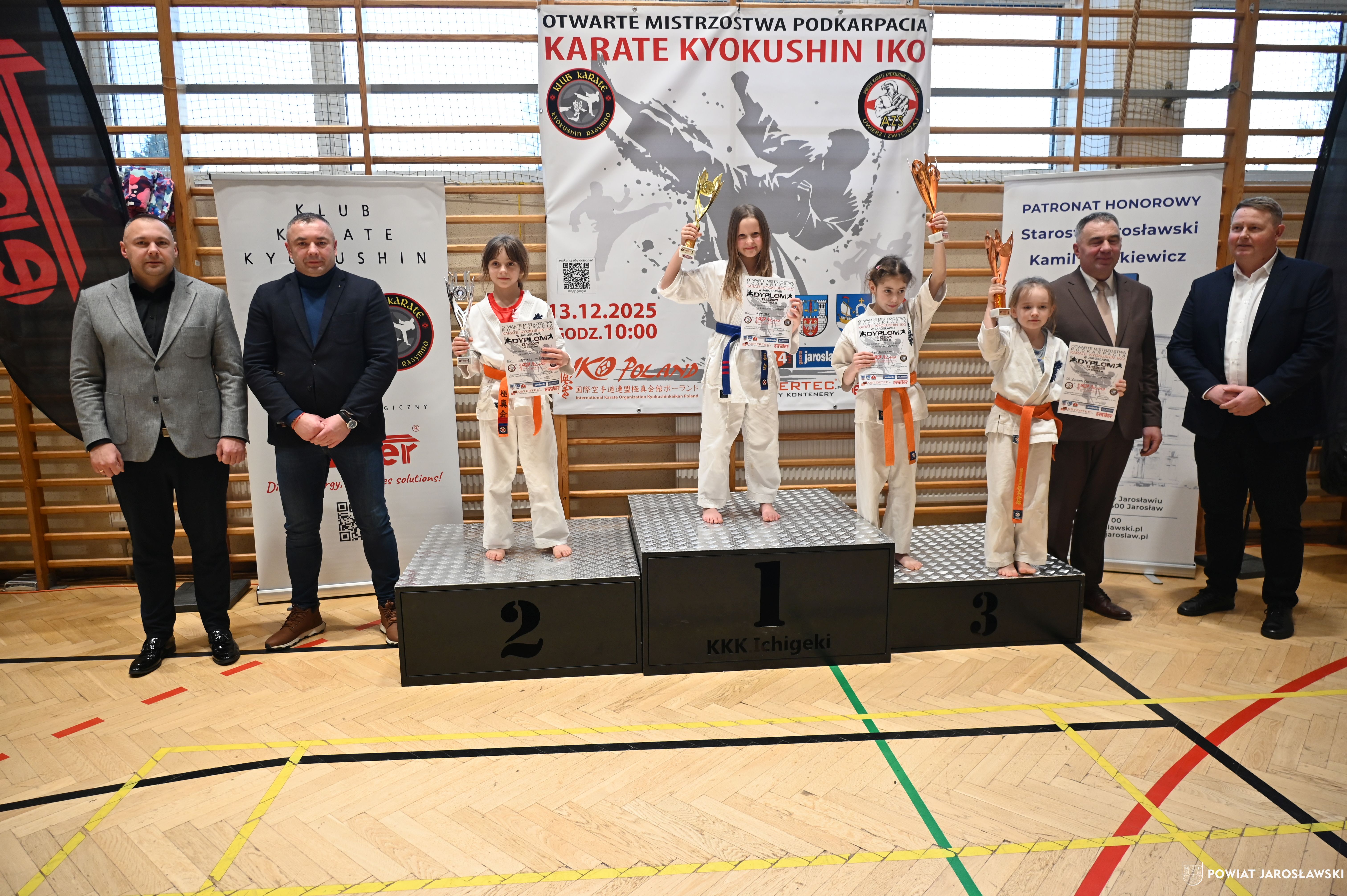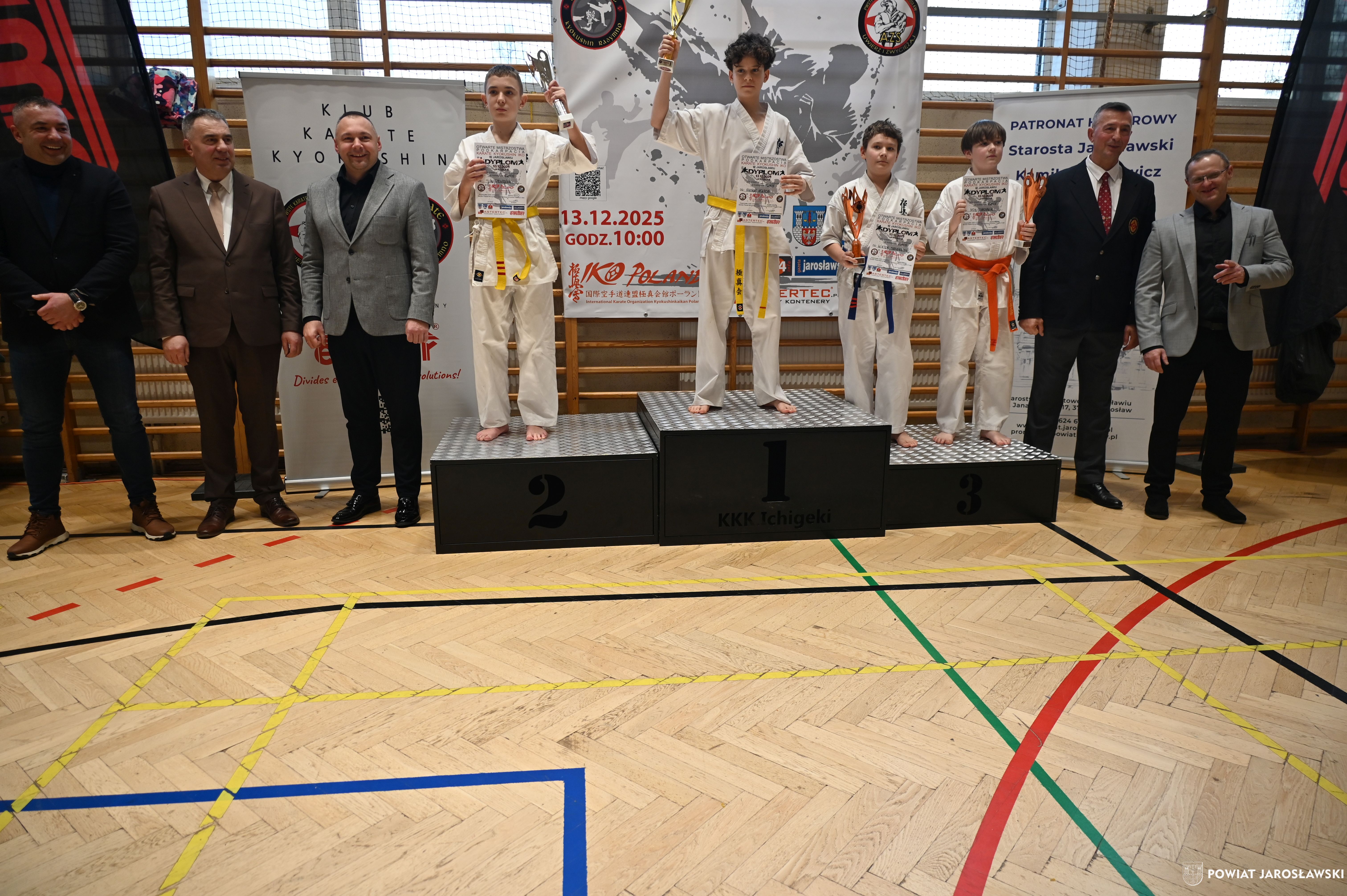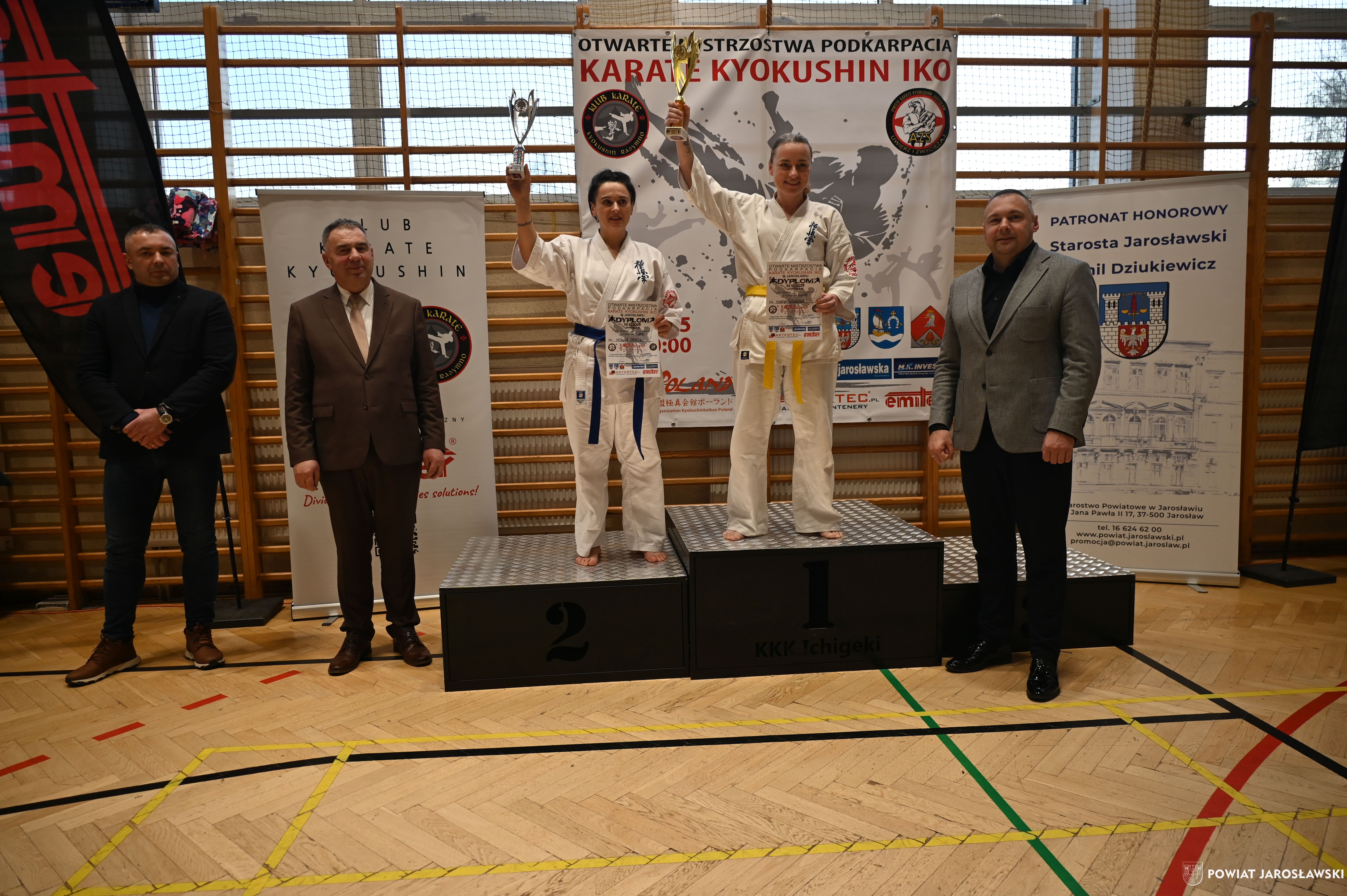 Słowa uznania i nagrody uczestnikom wręczył starosta jarosławski Kamil Dziukiewicz. Szczególne podziękowania przekazał na ręce Prezesa Klubu Karate Kyokushin "Ichigeki" Pawła Bórzyńskiego.