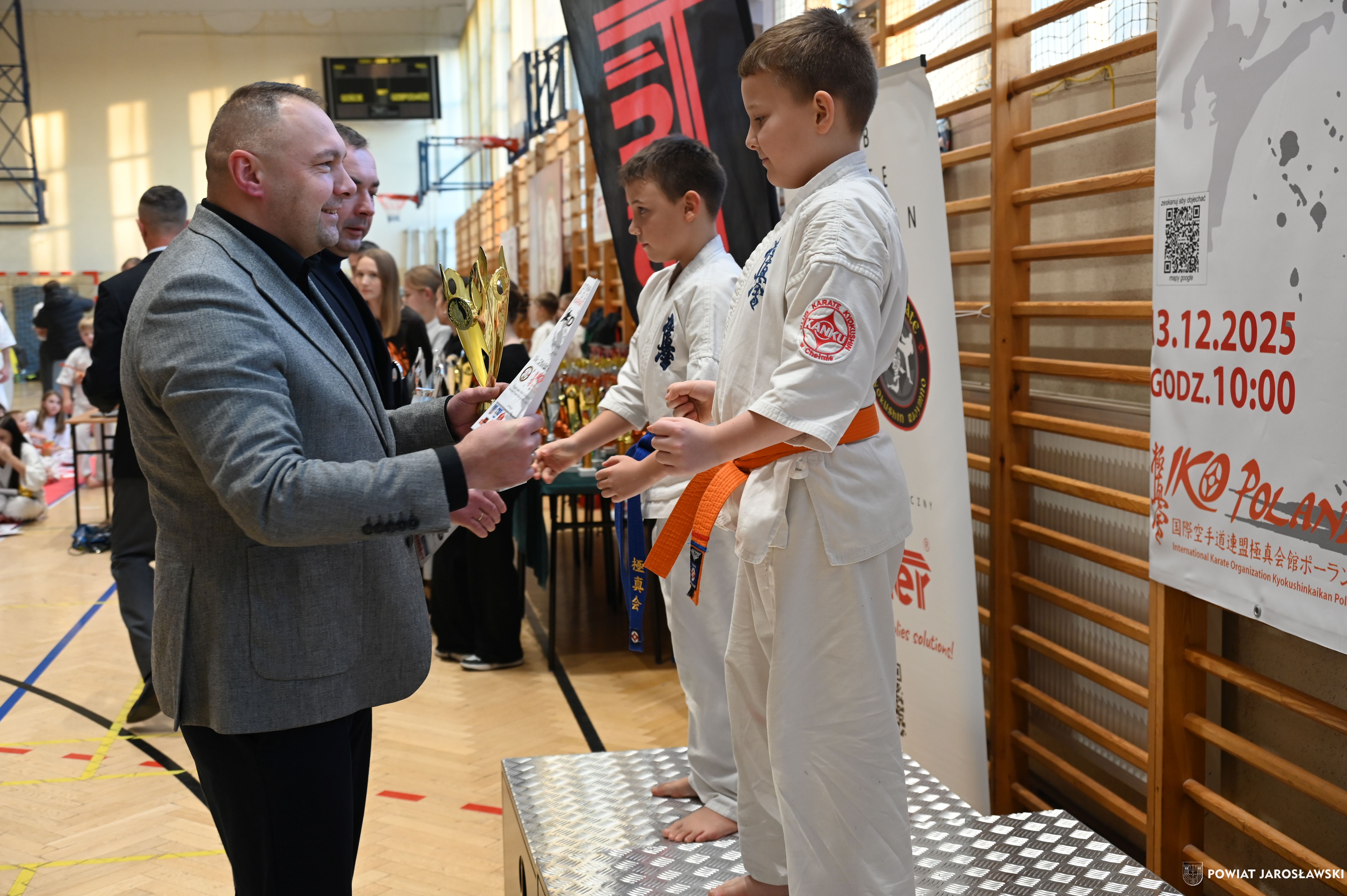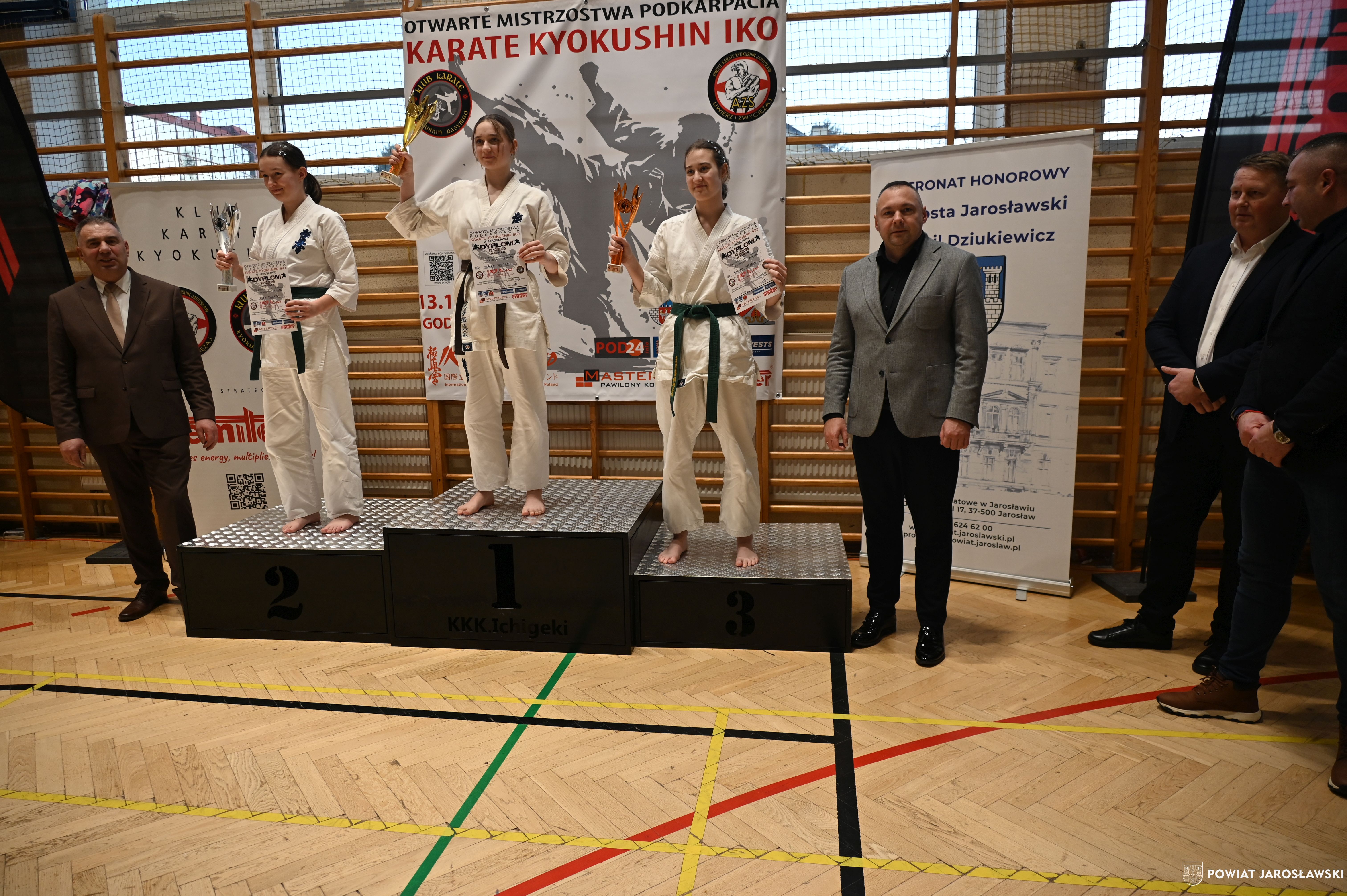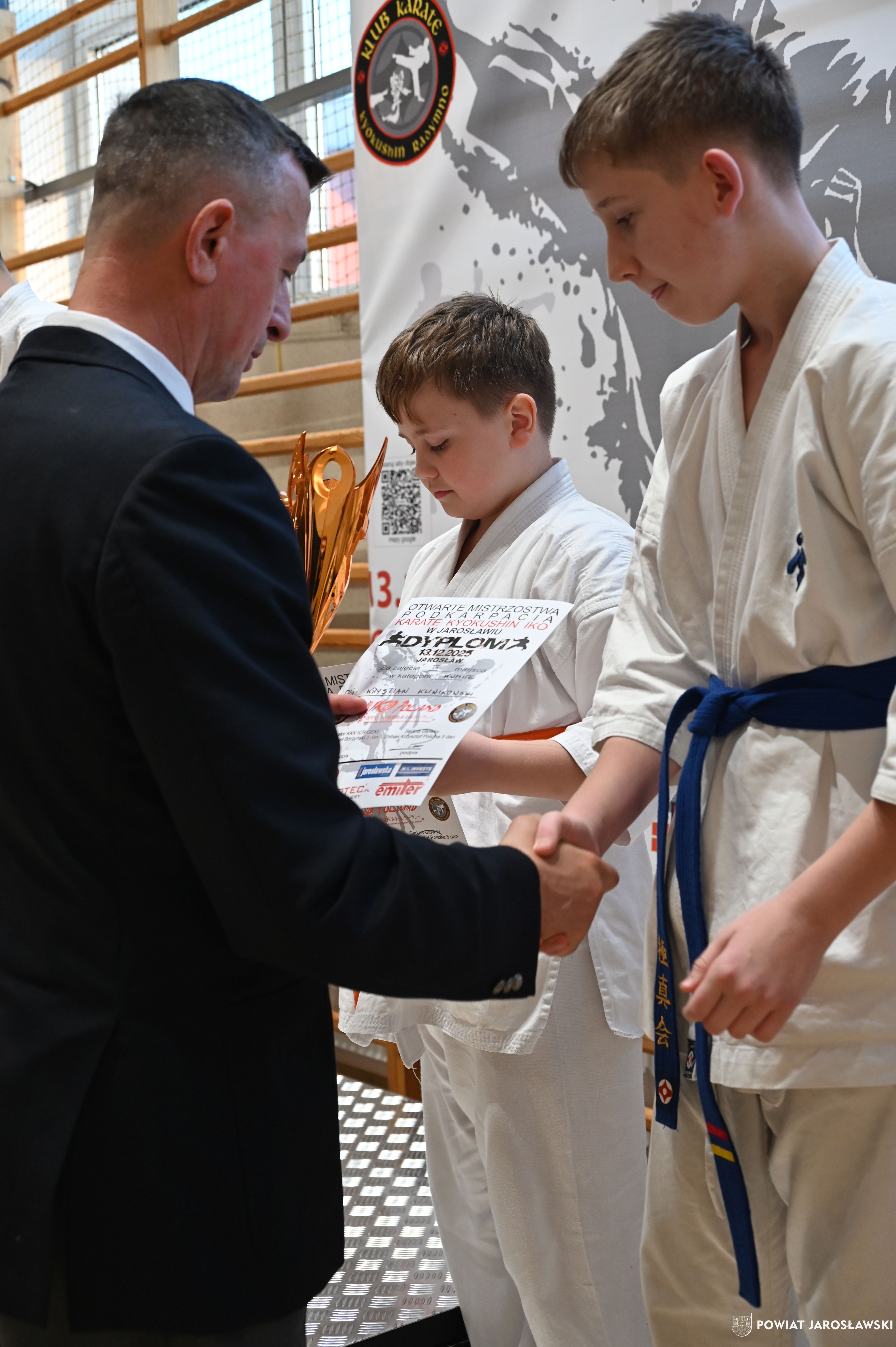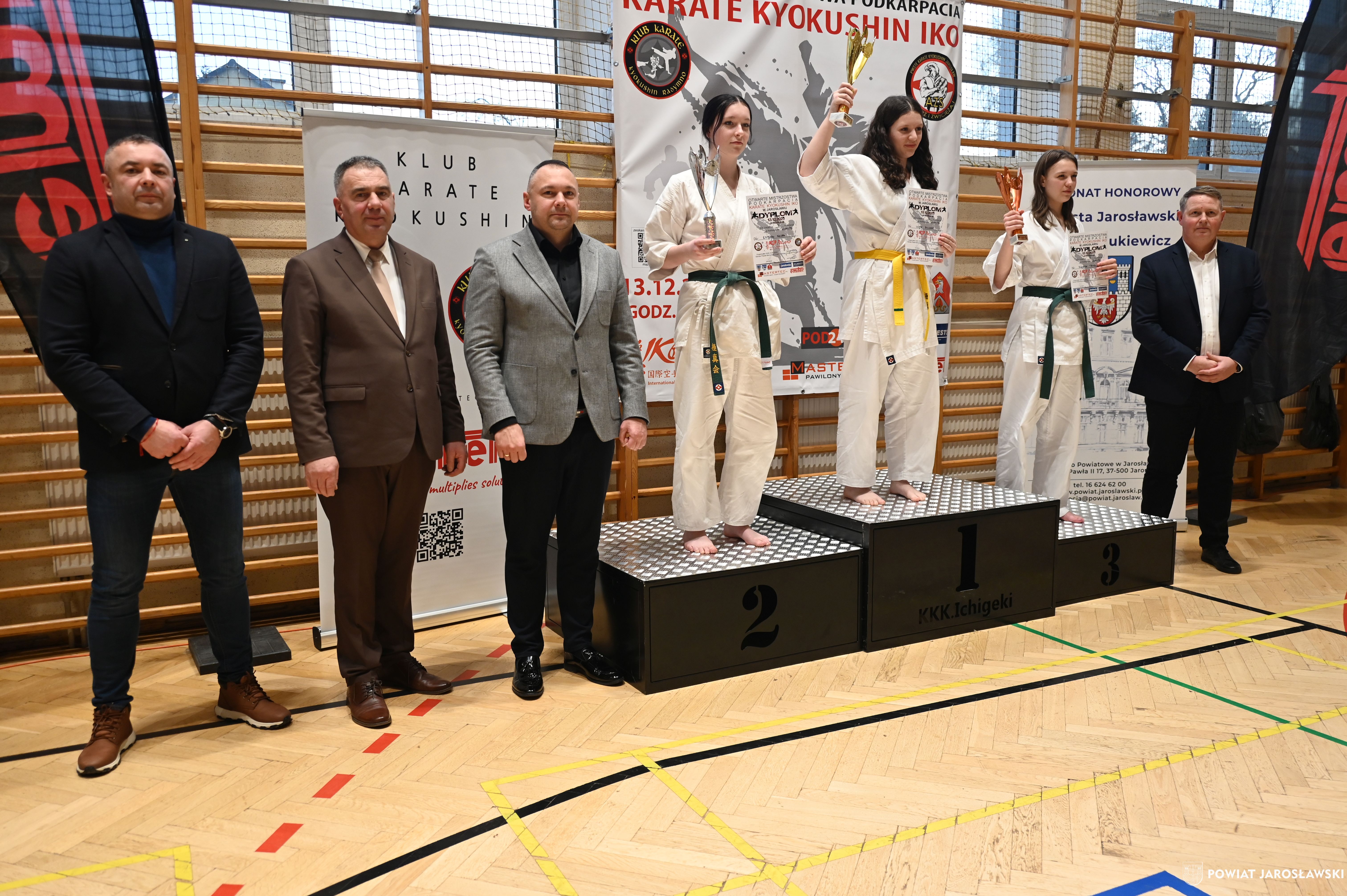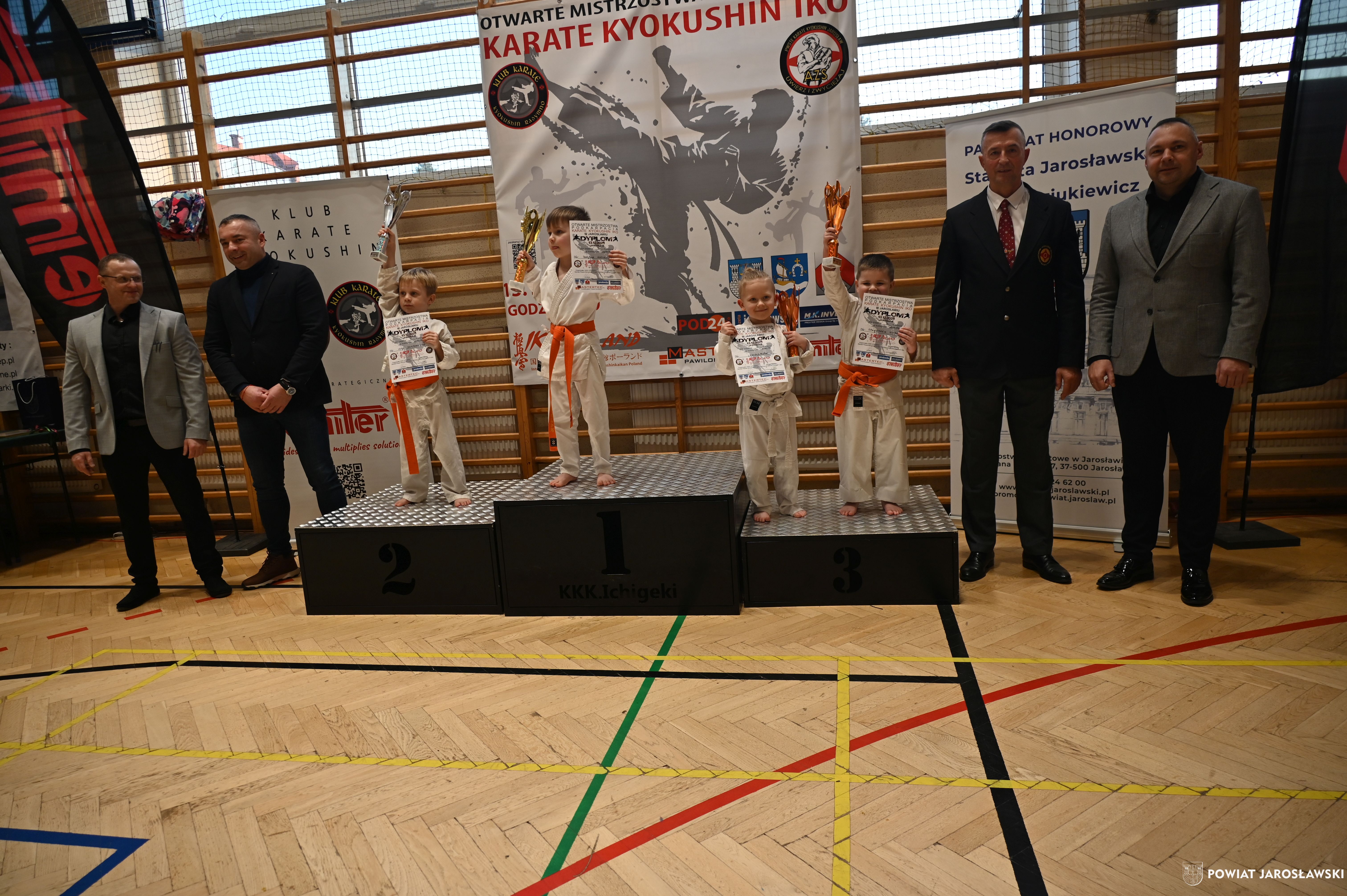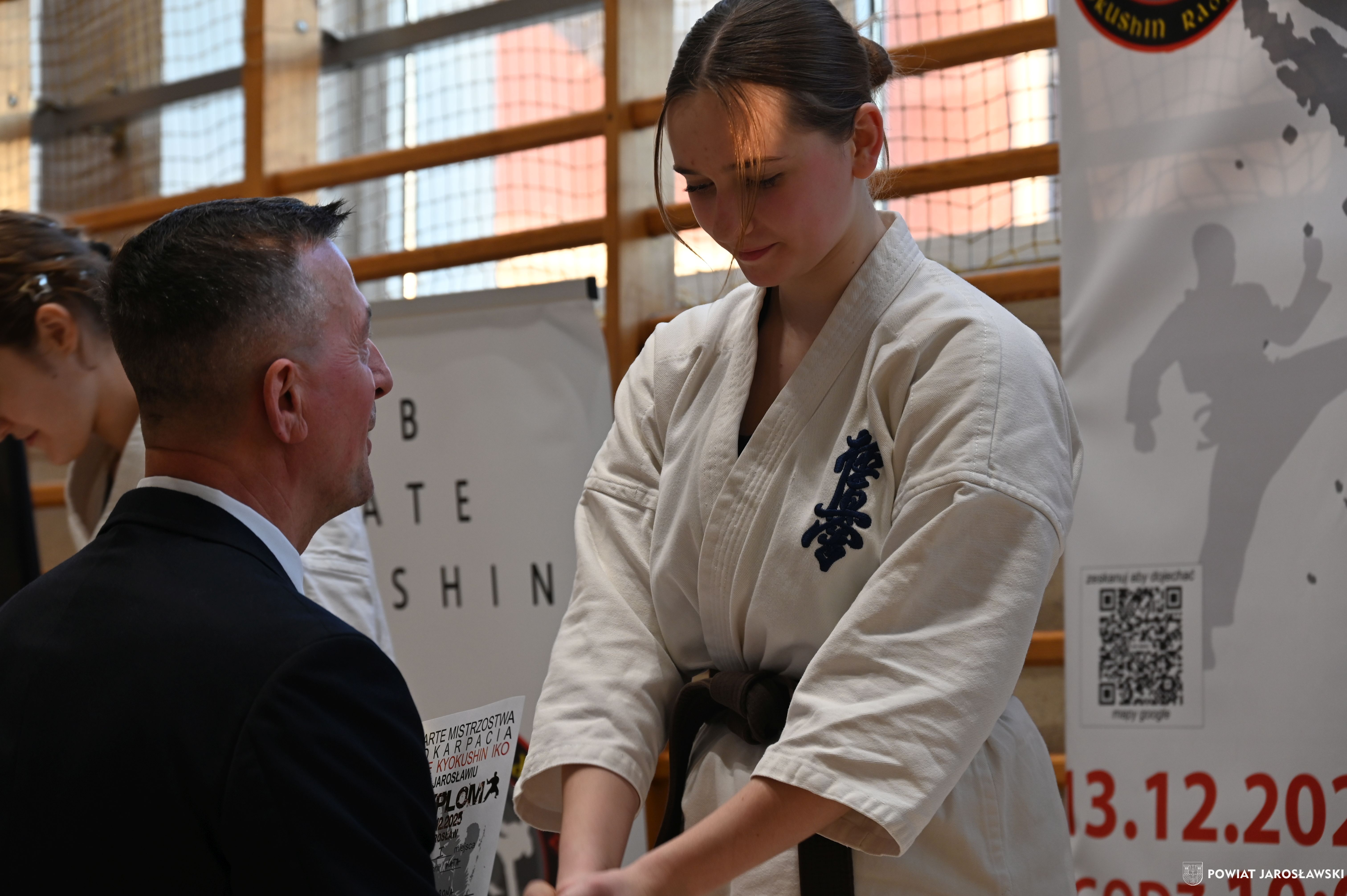 Słowa uznania i nagrody uczestnikom wręczył starosta jarosławski Kamil Dziukiewicz. Szczególne podziękowania przekazał na ręce Prezesa Klubu Karate Kyokushin "Ichigeki" Pawła Bórzyńskiego.