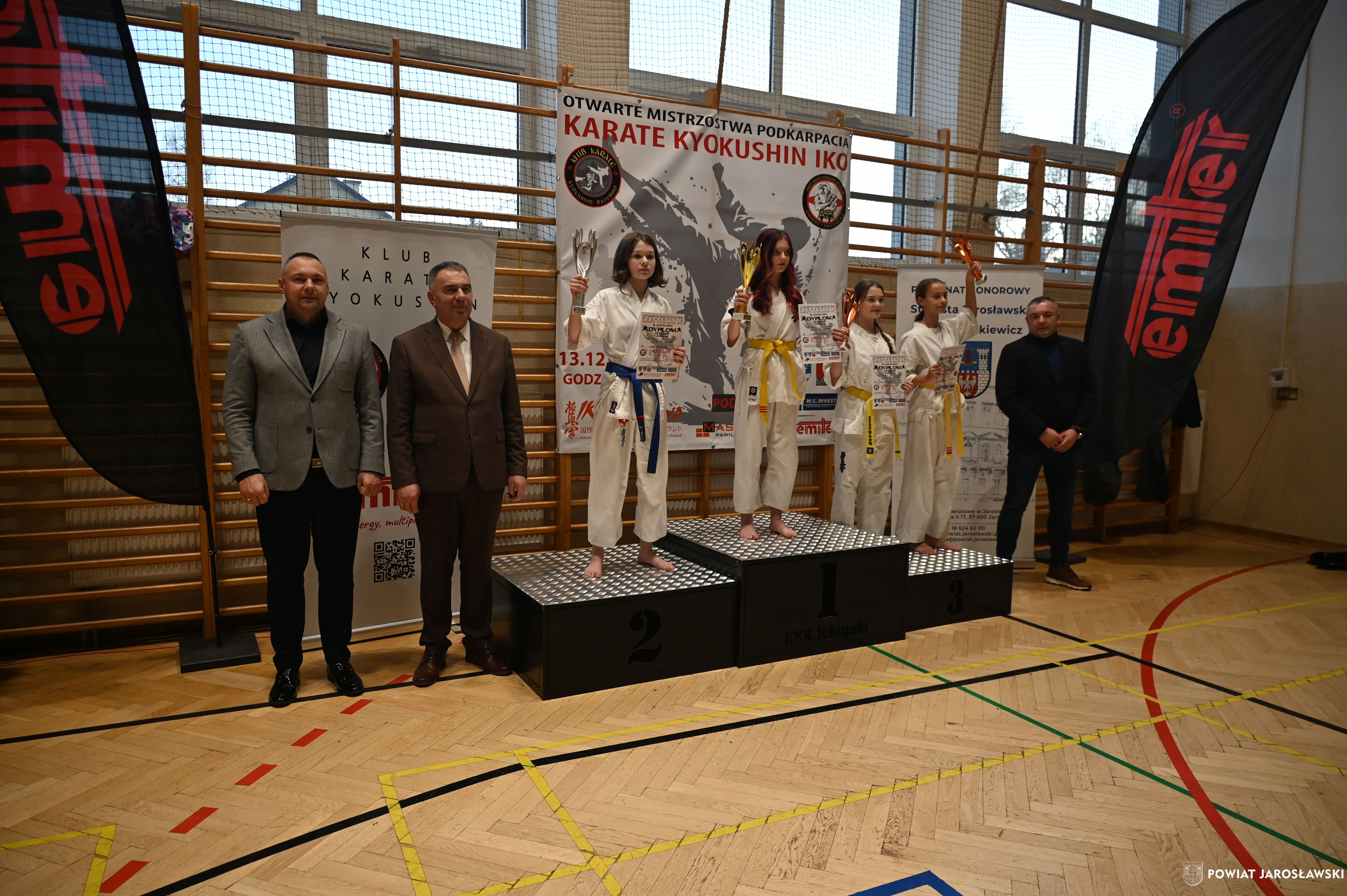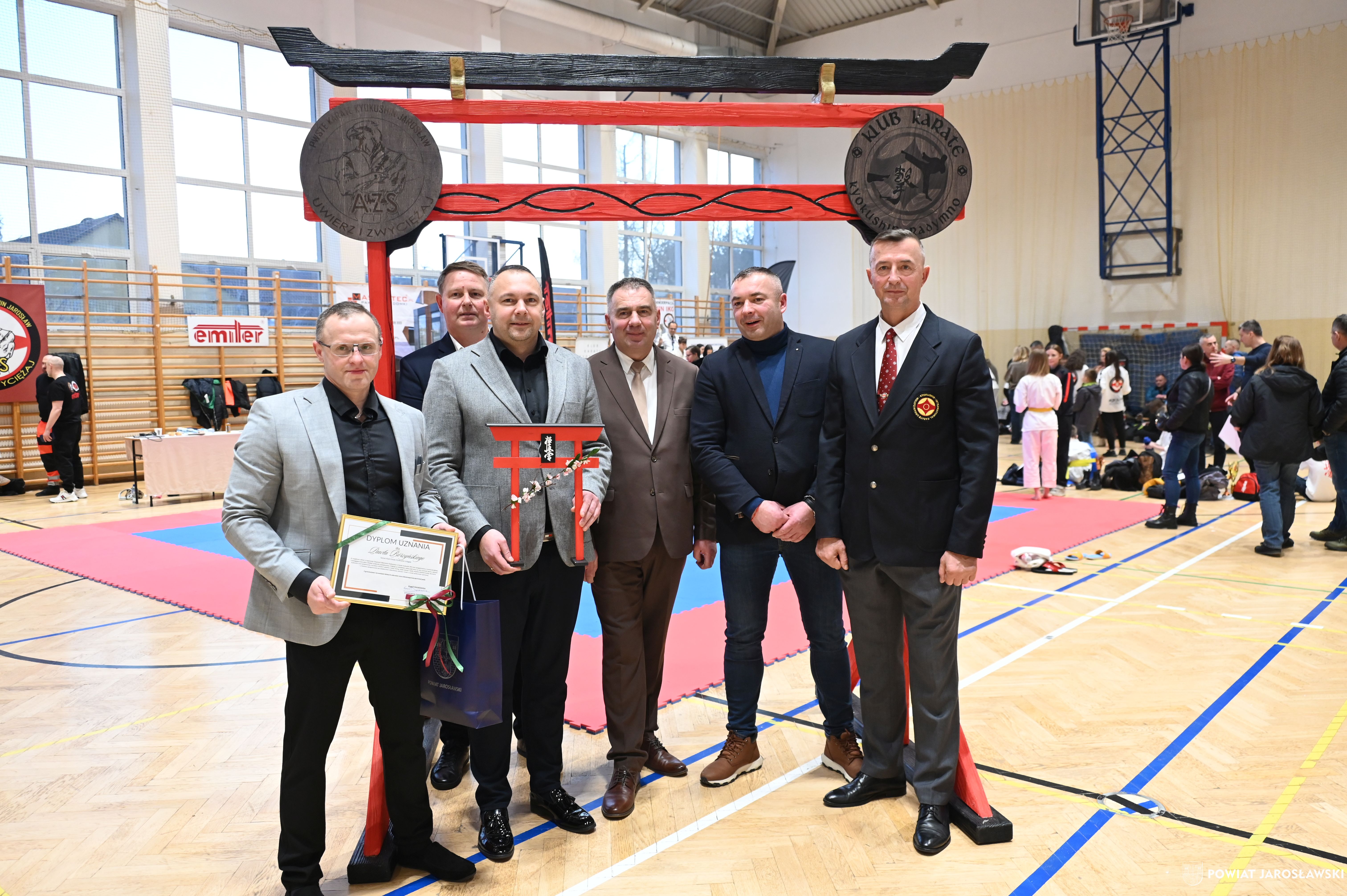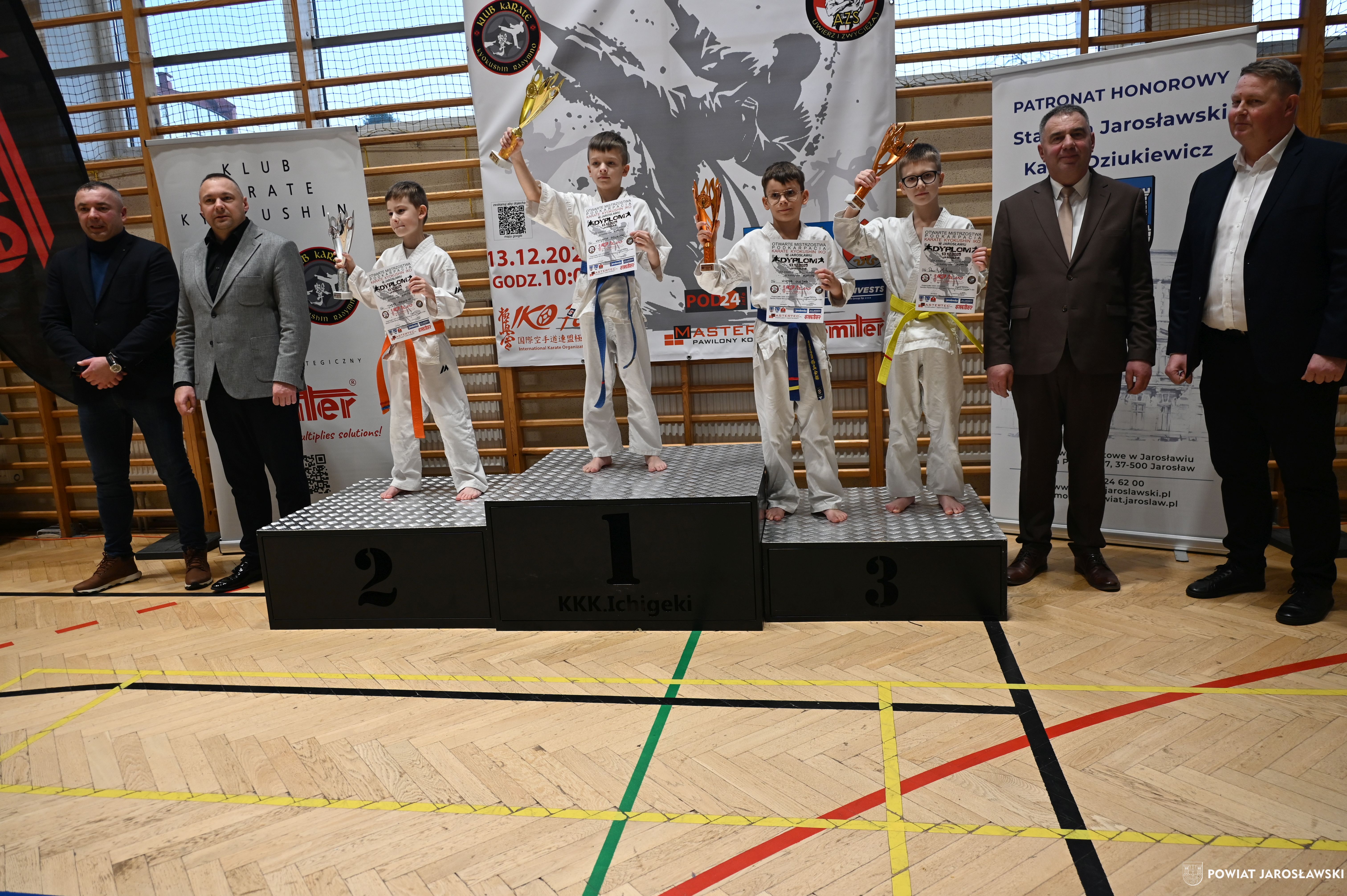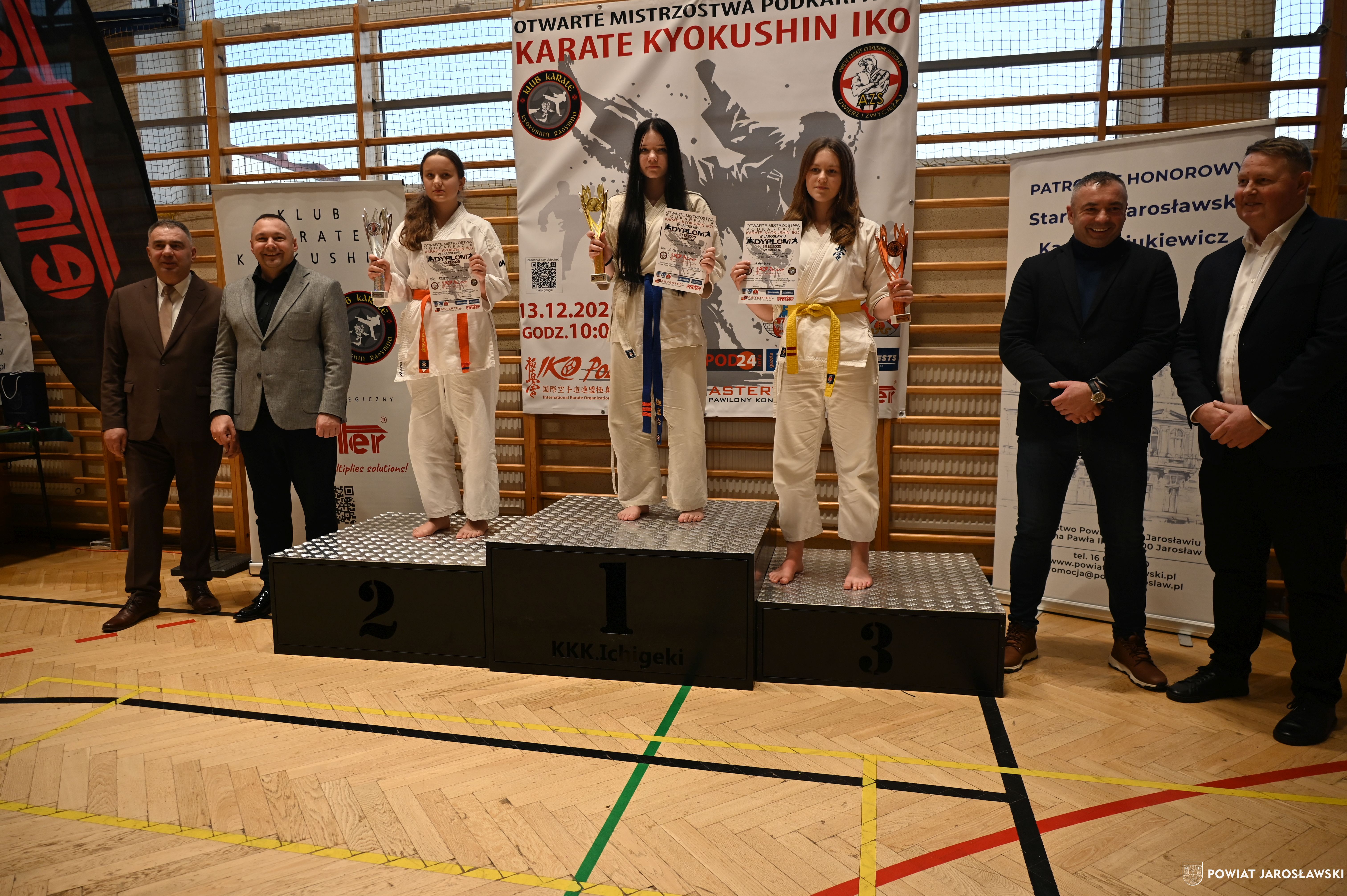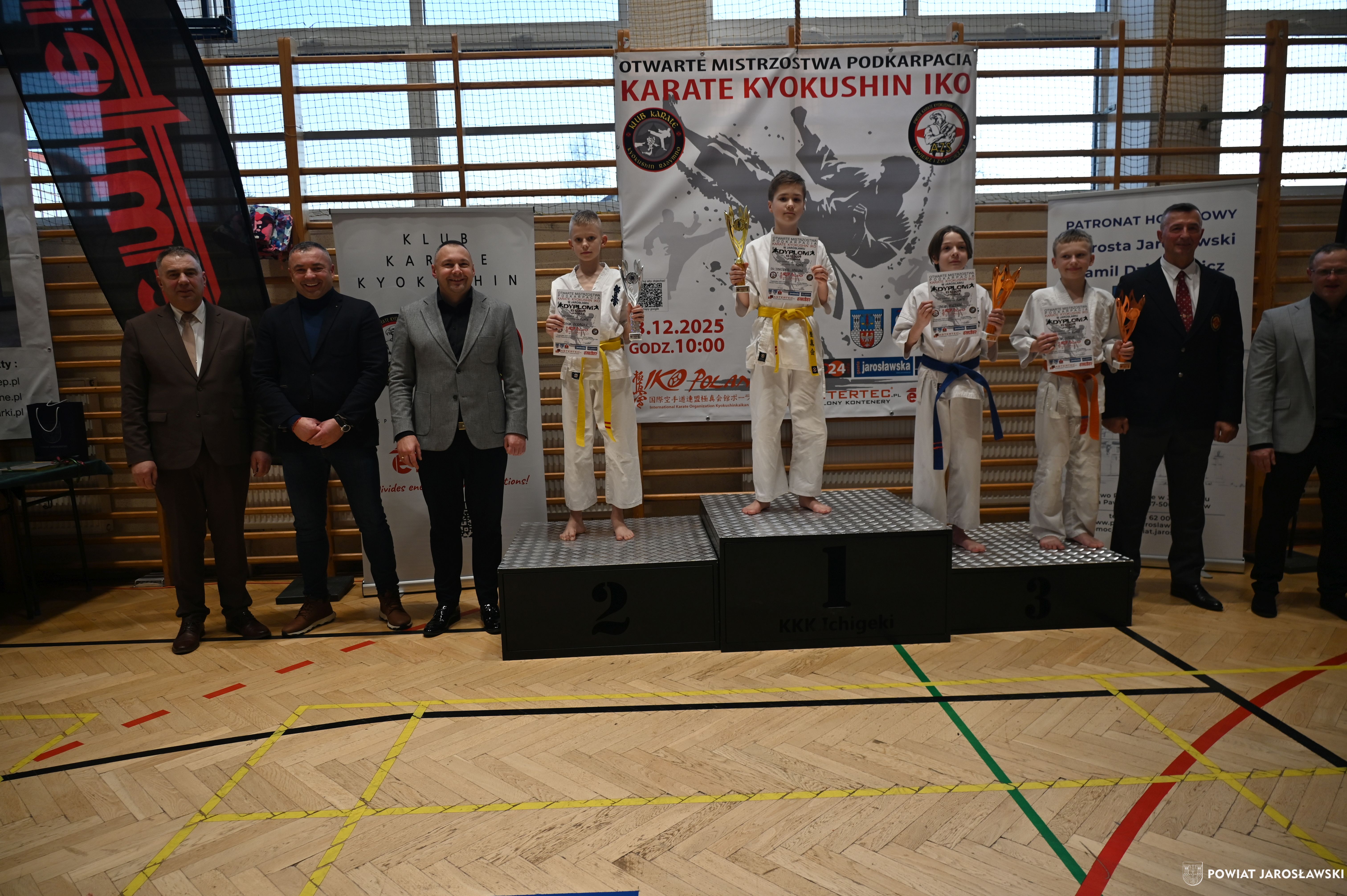 Słowa uznania i nagrody uczestnikom wręczył starosta jarosławski Kamil Dziukiewicz. Szczególne podziękowania przekazał na ręce Prezesa Klubu Karate Kyokushin "Ichigeki" Pawła Bórzyńskiego.