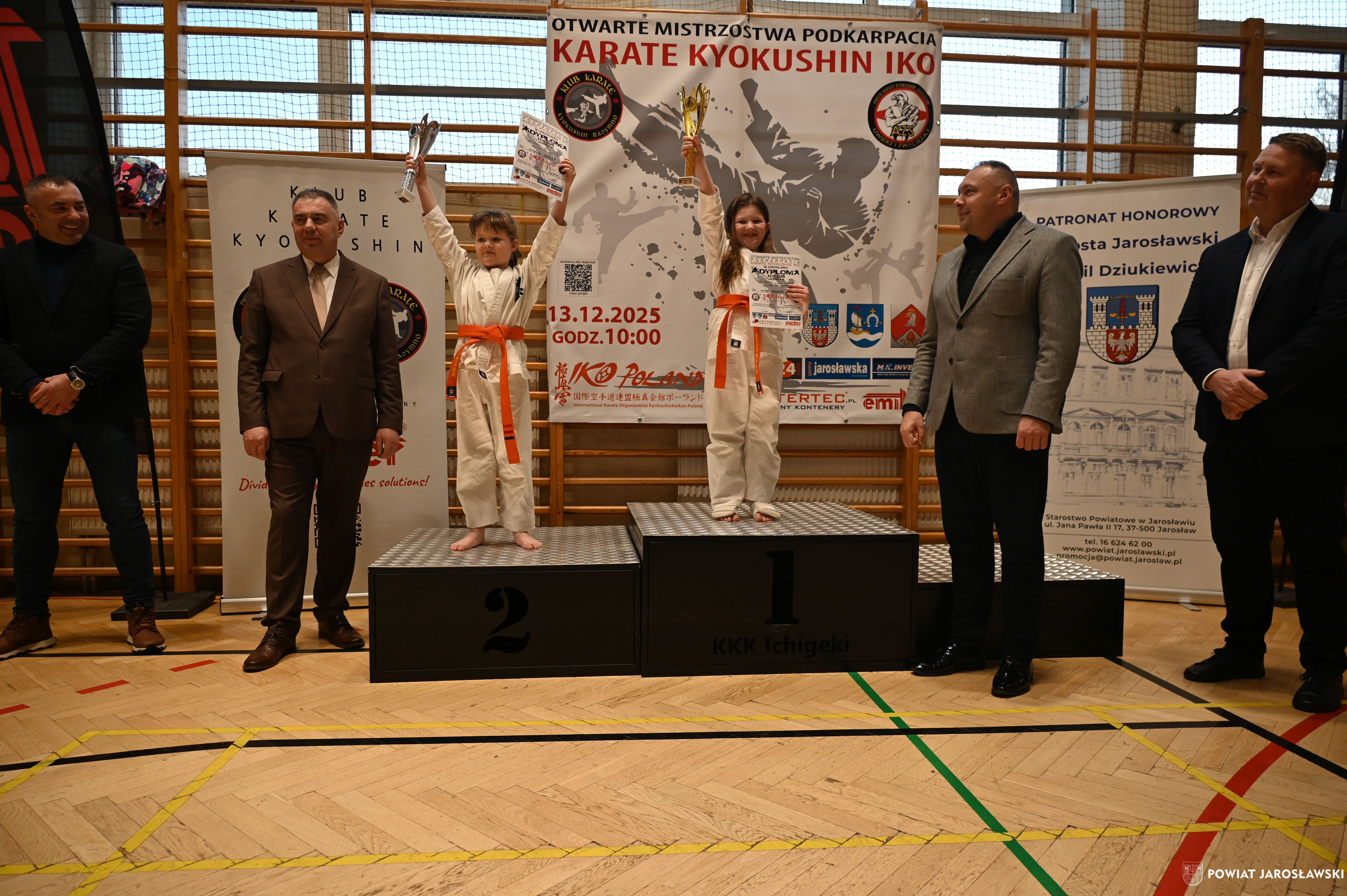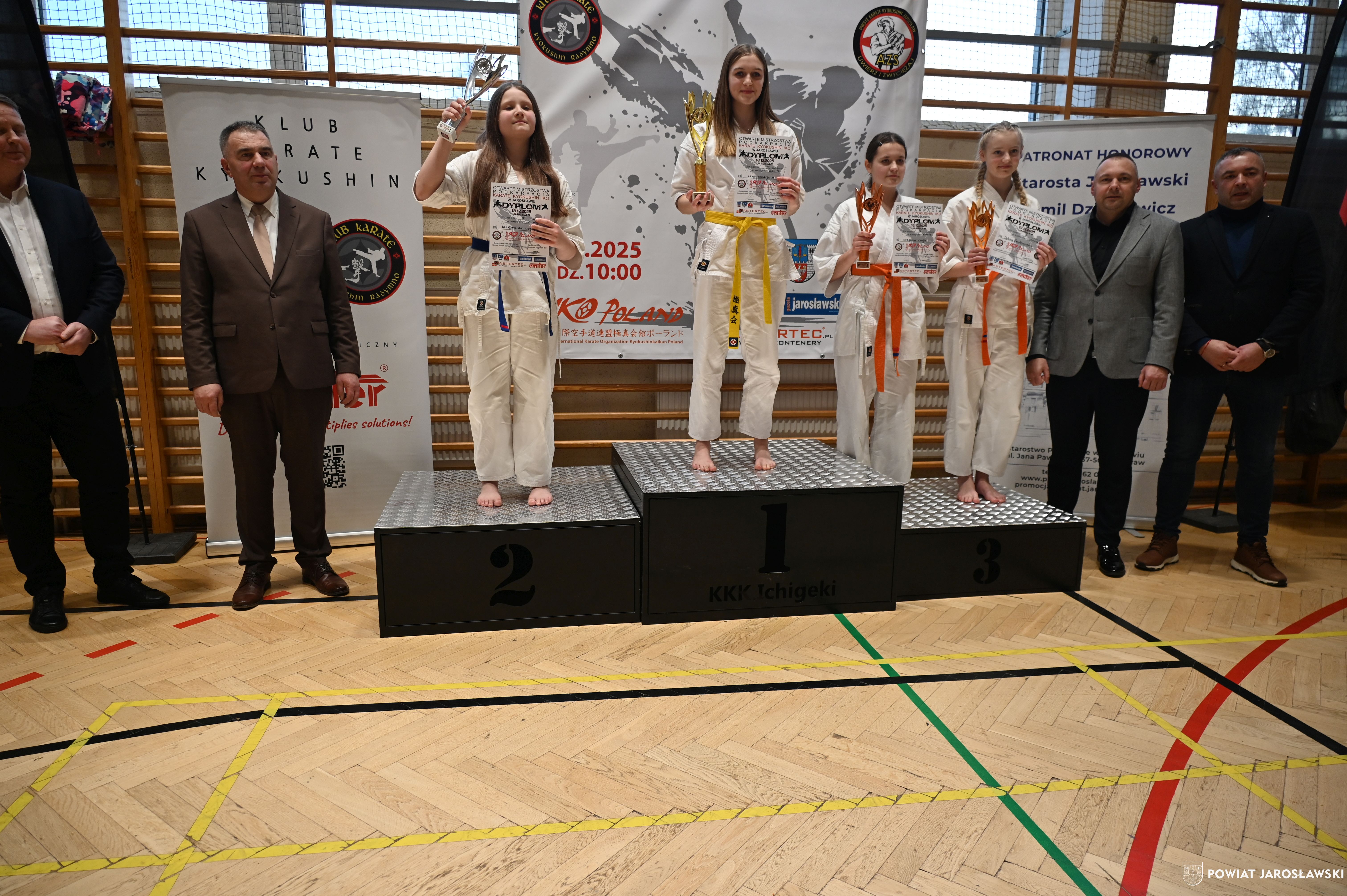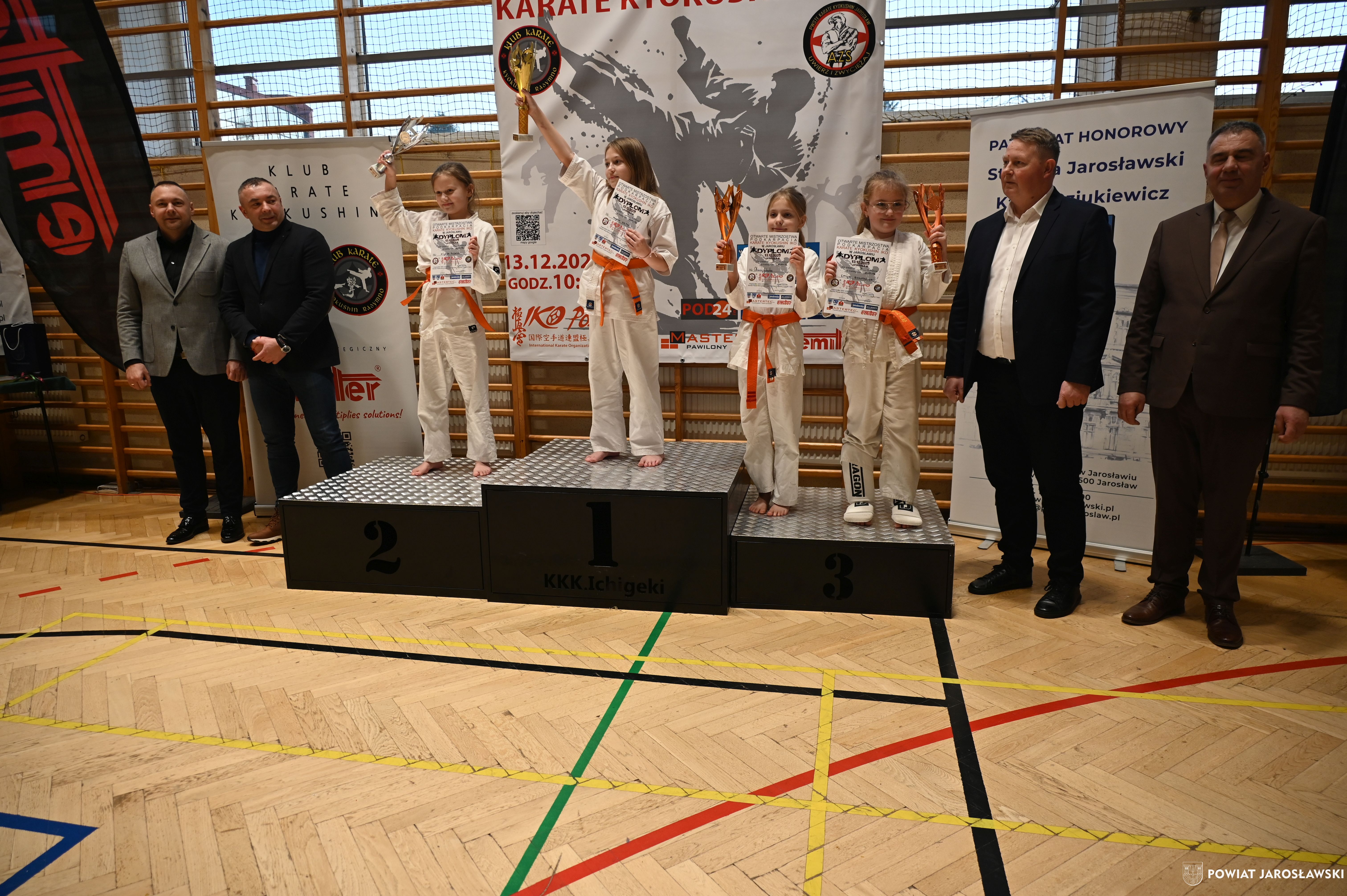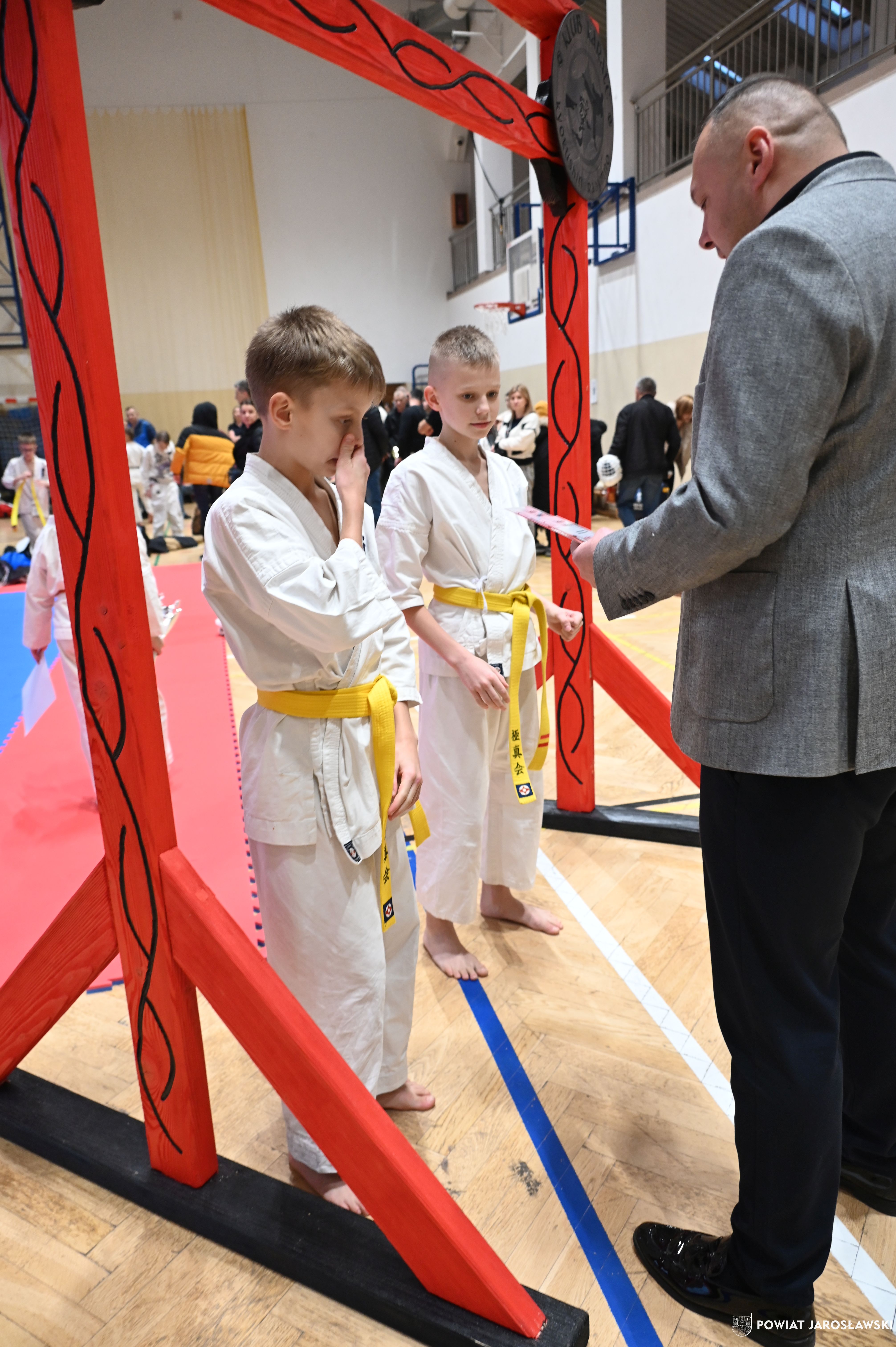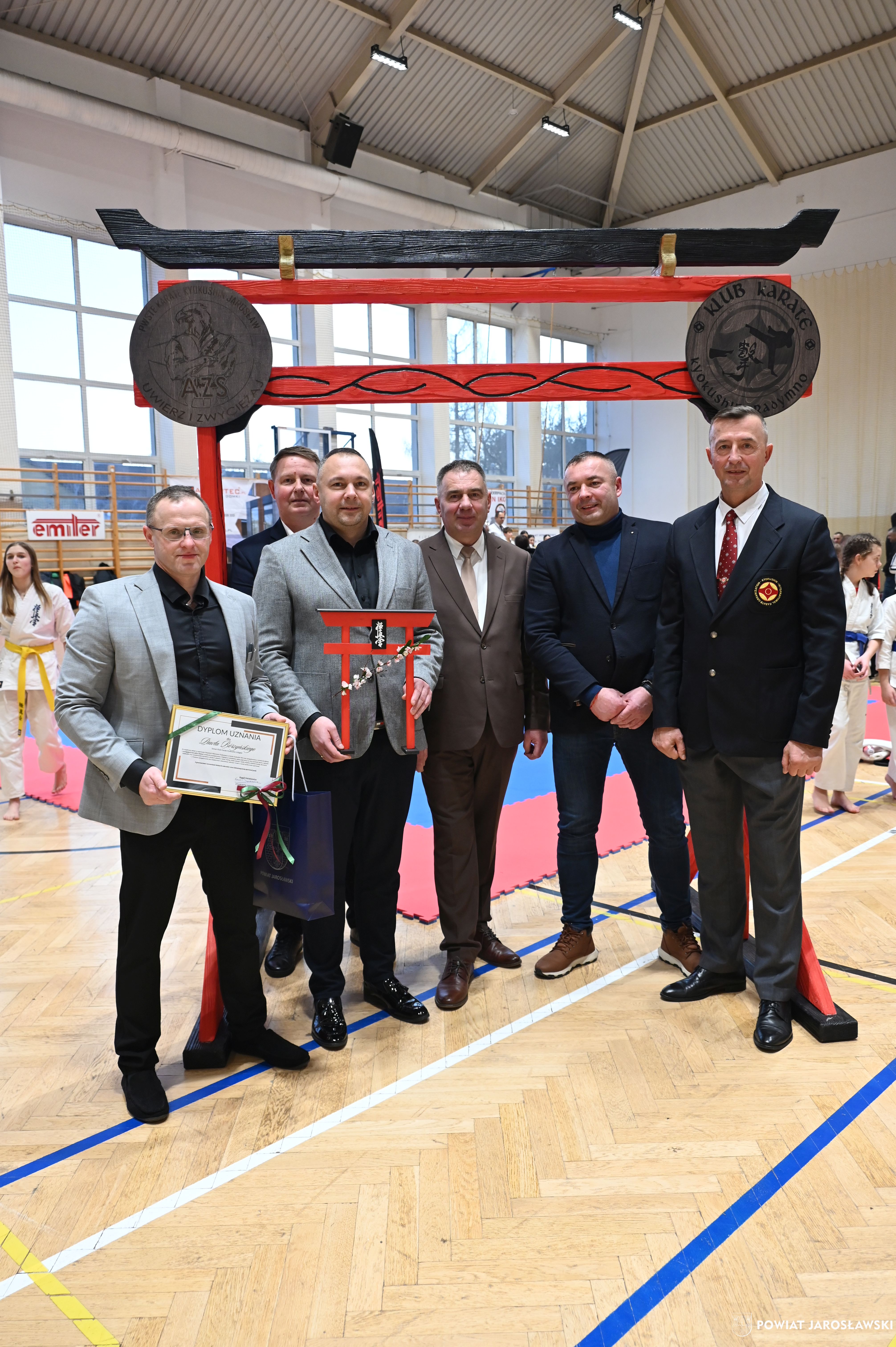 Słowa uznania i nagrody uczestnikom wręczył starosta jarosławski Kamil Dziukiewicz. Szczególne podziękowania przekazał na ręce Prezesa Klubu Karate Kyokushin "Ichigeki" Pawła Bórzyńskiego.