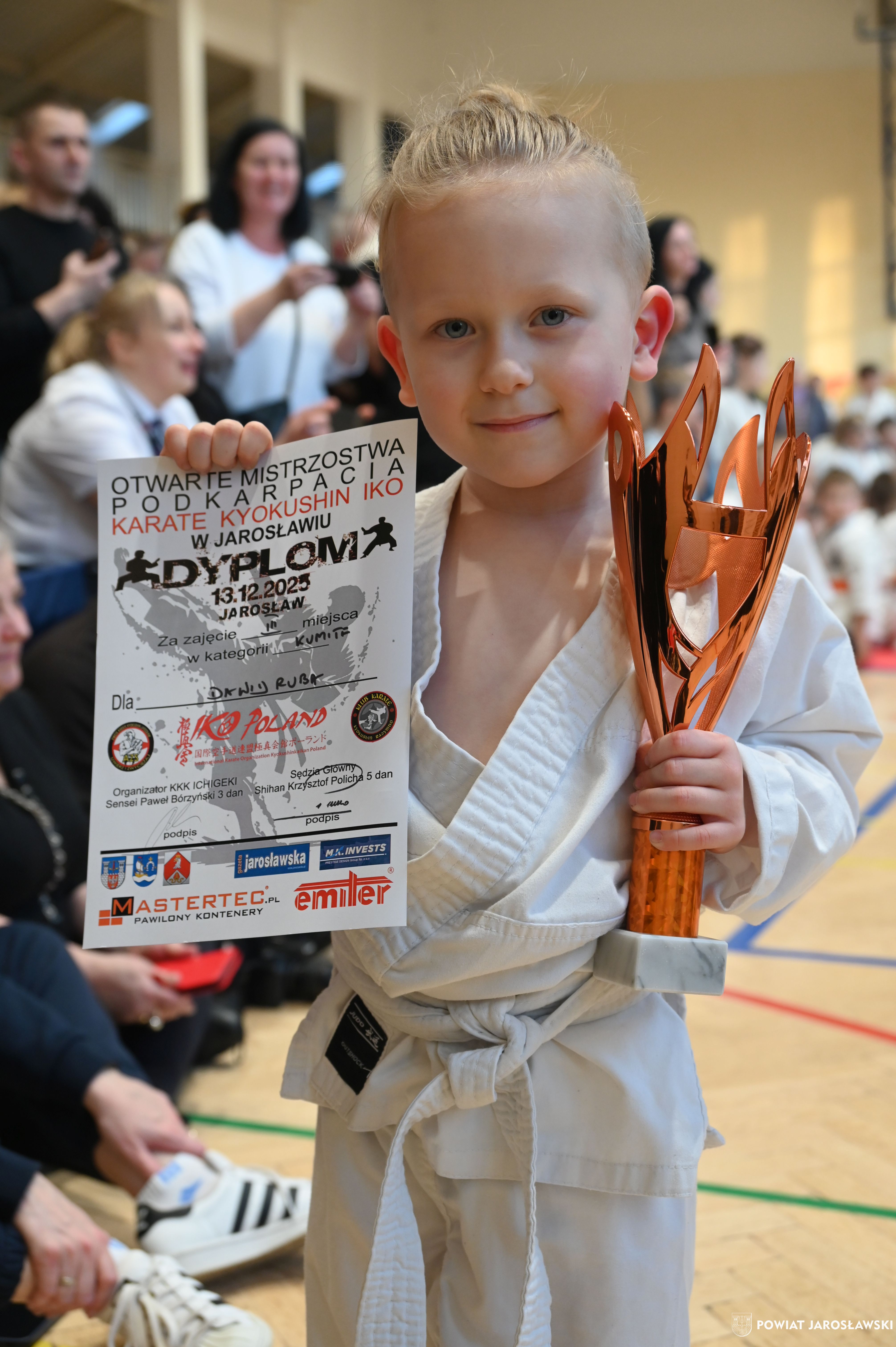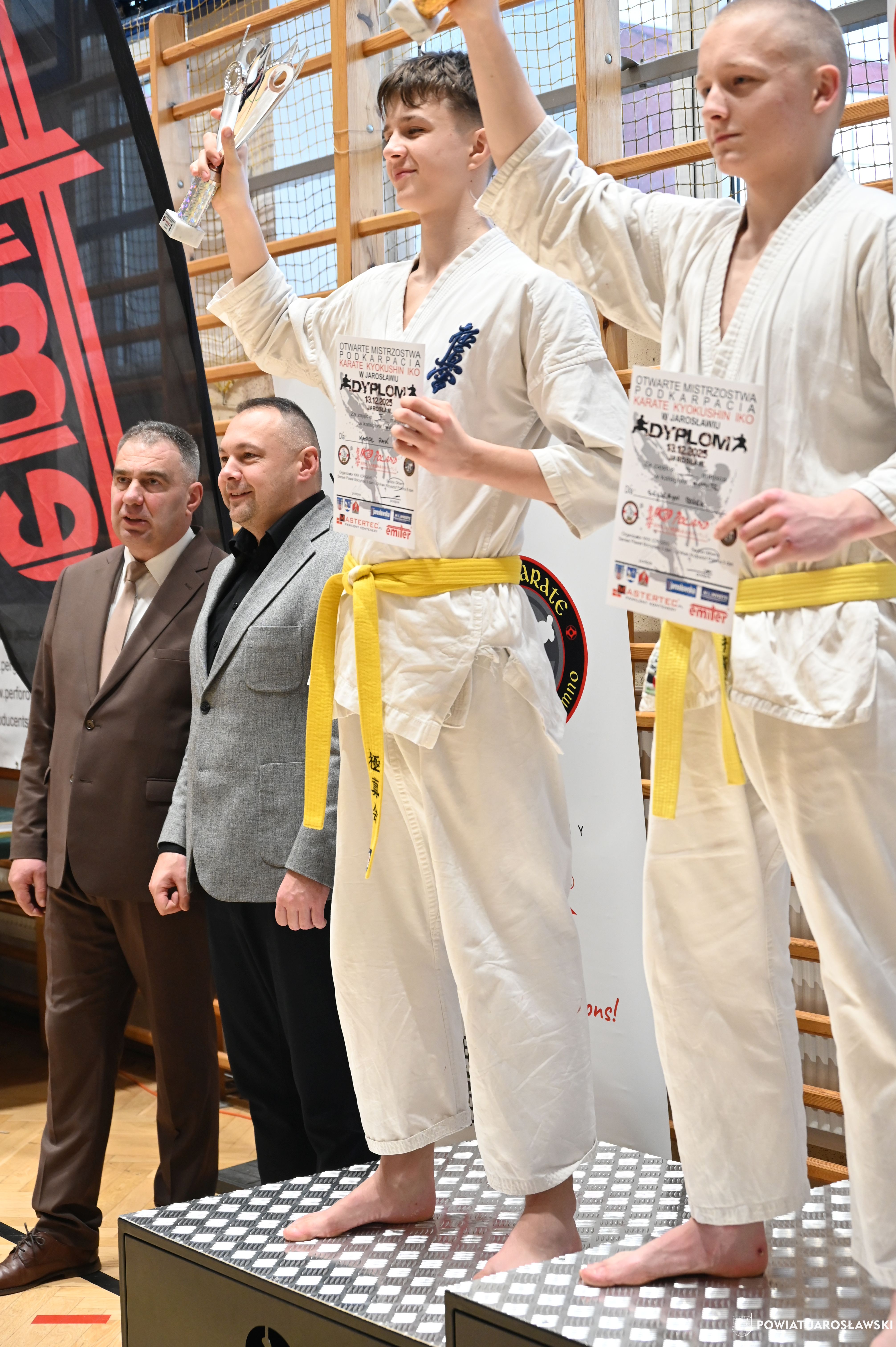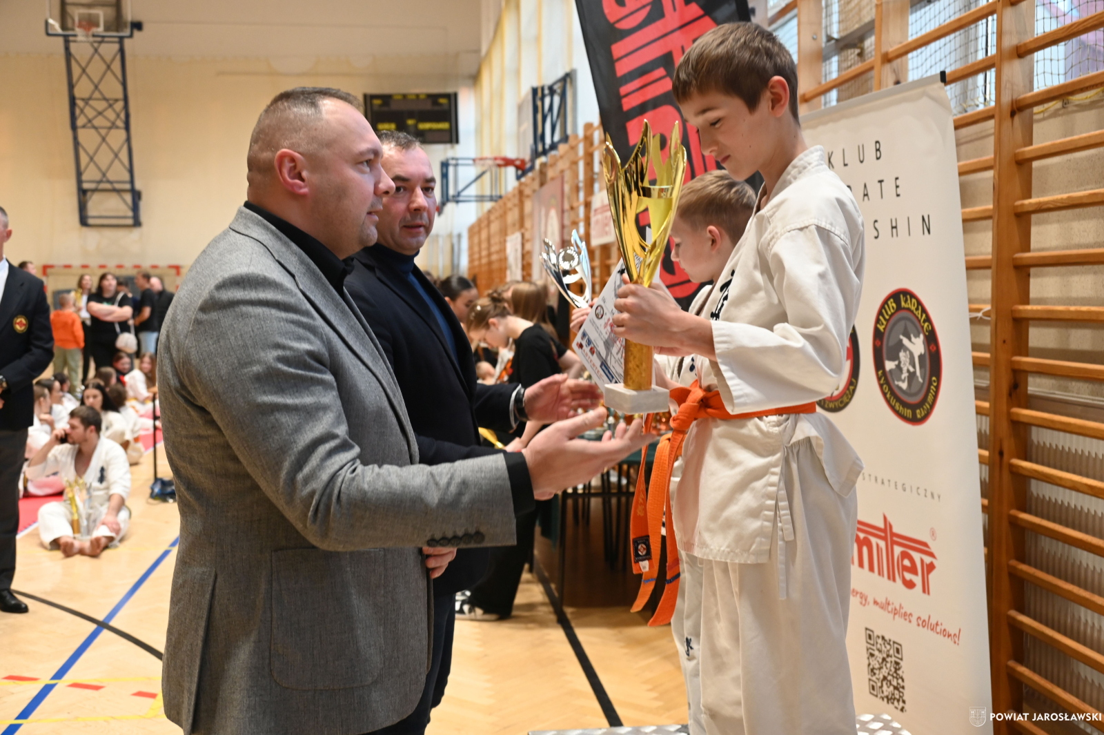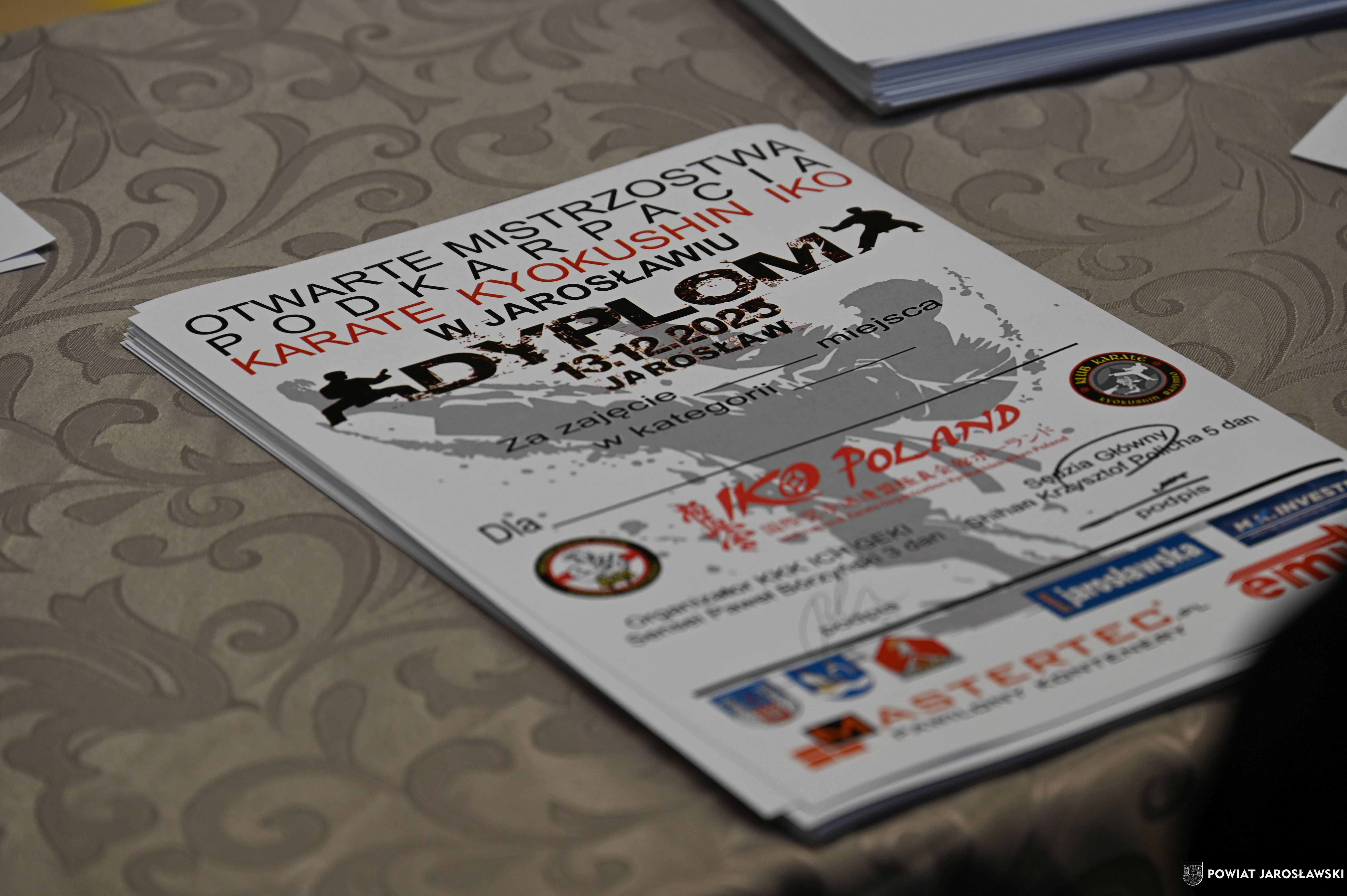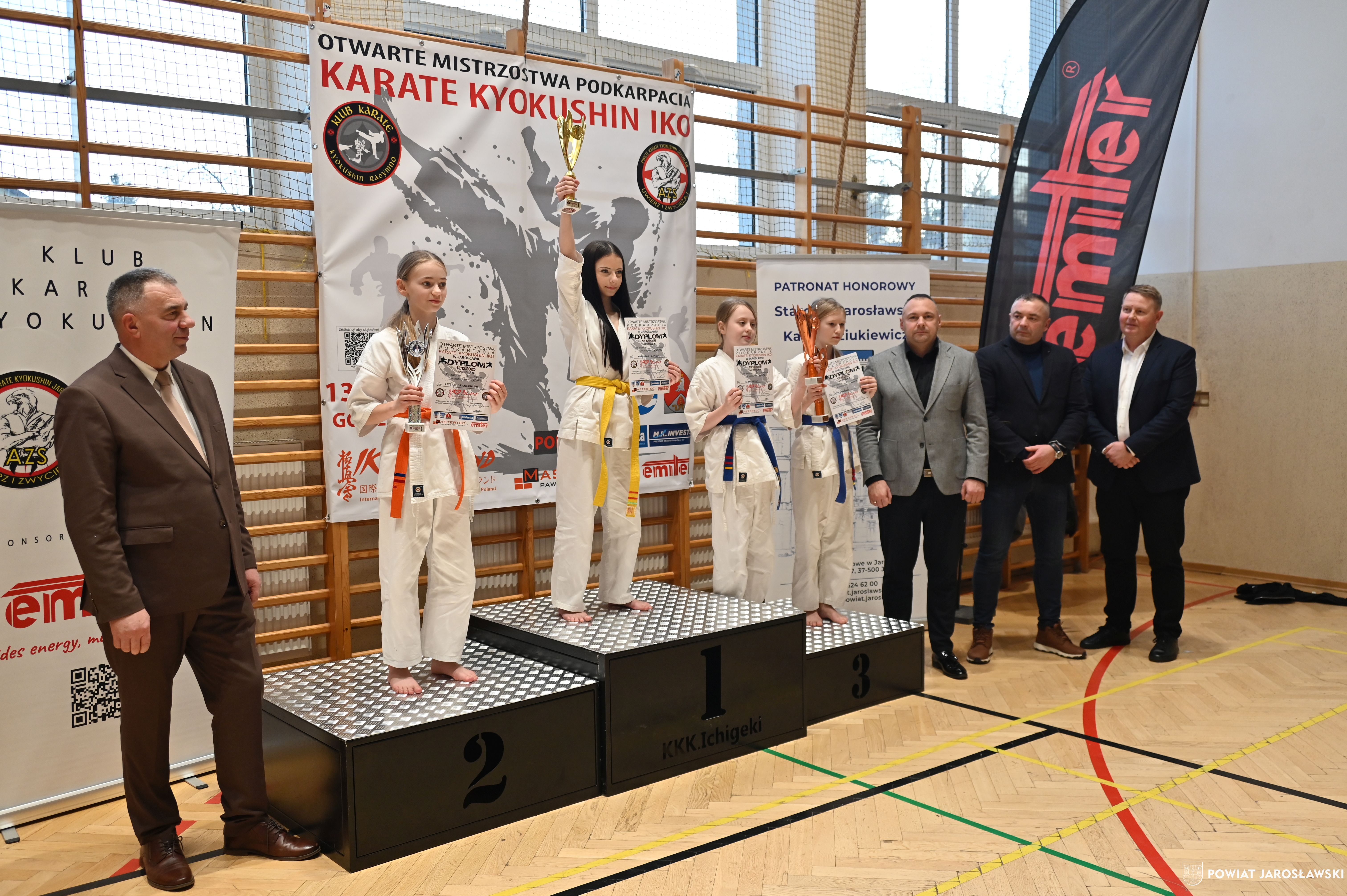 Słowa uznania i nagrody uczestnikom wręczył starosta jarosławski Kamil Dziukiewicz. Szczególne podziękowania przekazał na ręce Prezesa Klubu Karate Kyokushin "Ichigeki" Pawła Bórzyńskiego.