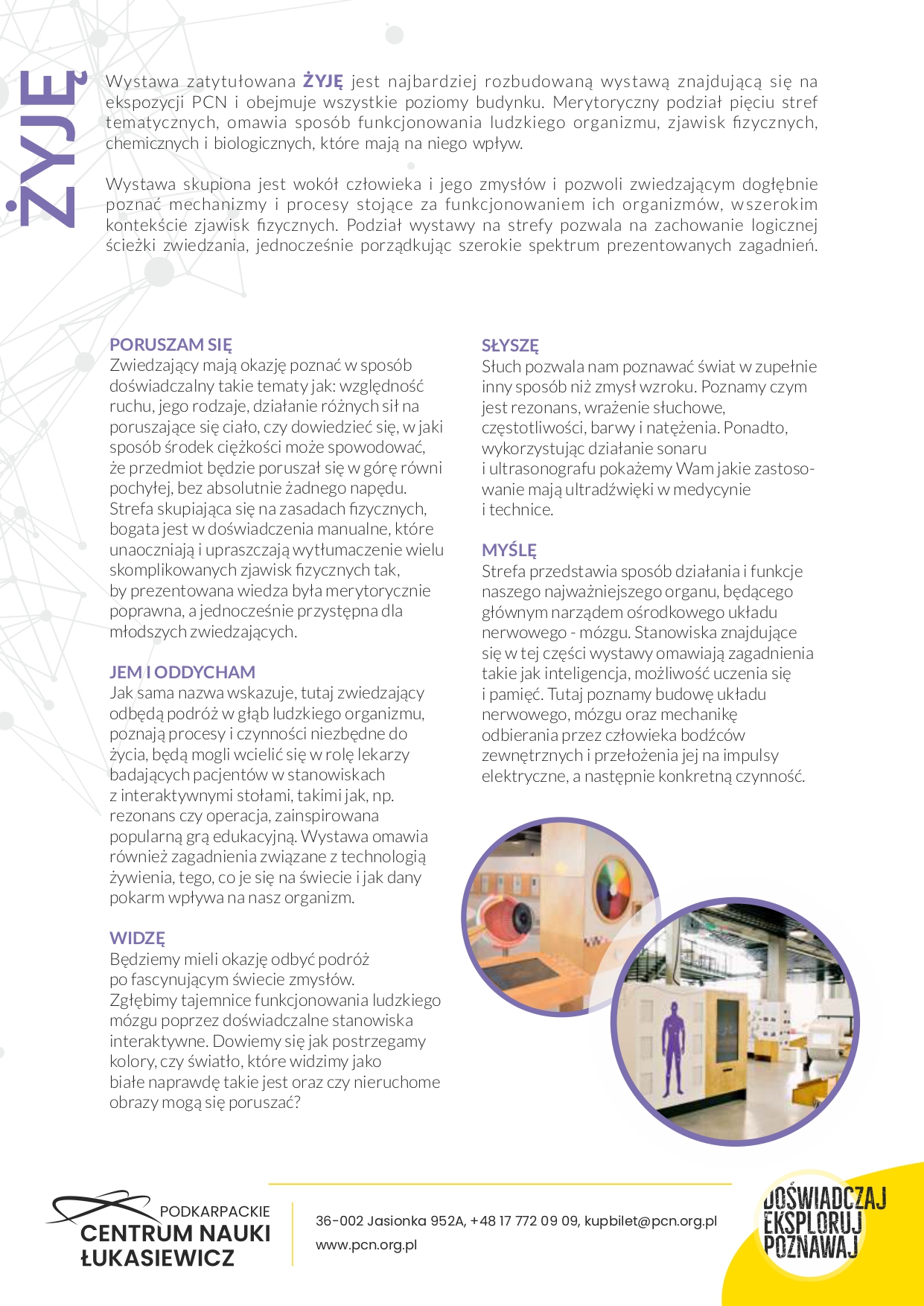 Nie jest to muzeum, nie jest to także plac zabaw - to nowoczesny obiekt oraz dynamiczna i interaktywna przestrzeń, gdzie wiedza przekazywana jest multisensorycznie, wzbudzając jednocześnie pozytywne emocje, dzięki czemu skuteczniej zapamiętuje się informacje, a pytania, które w naturalny sposób wynikają z eksperymentów i doświadczeń, budzą większą ciekawość i pasję do nauki.
