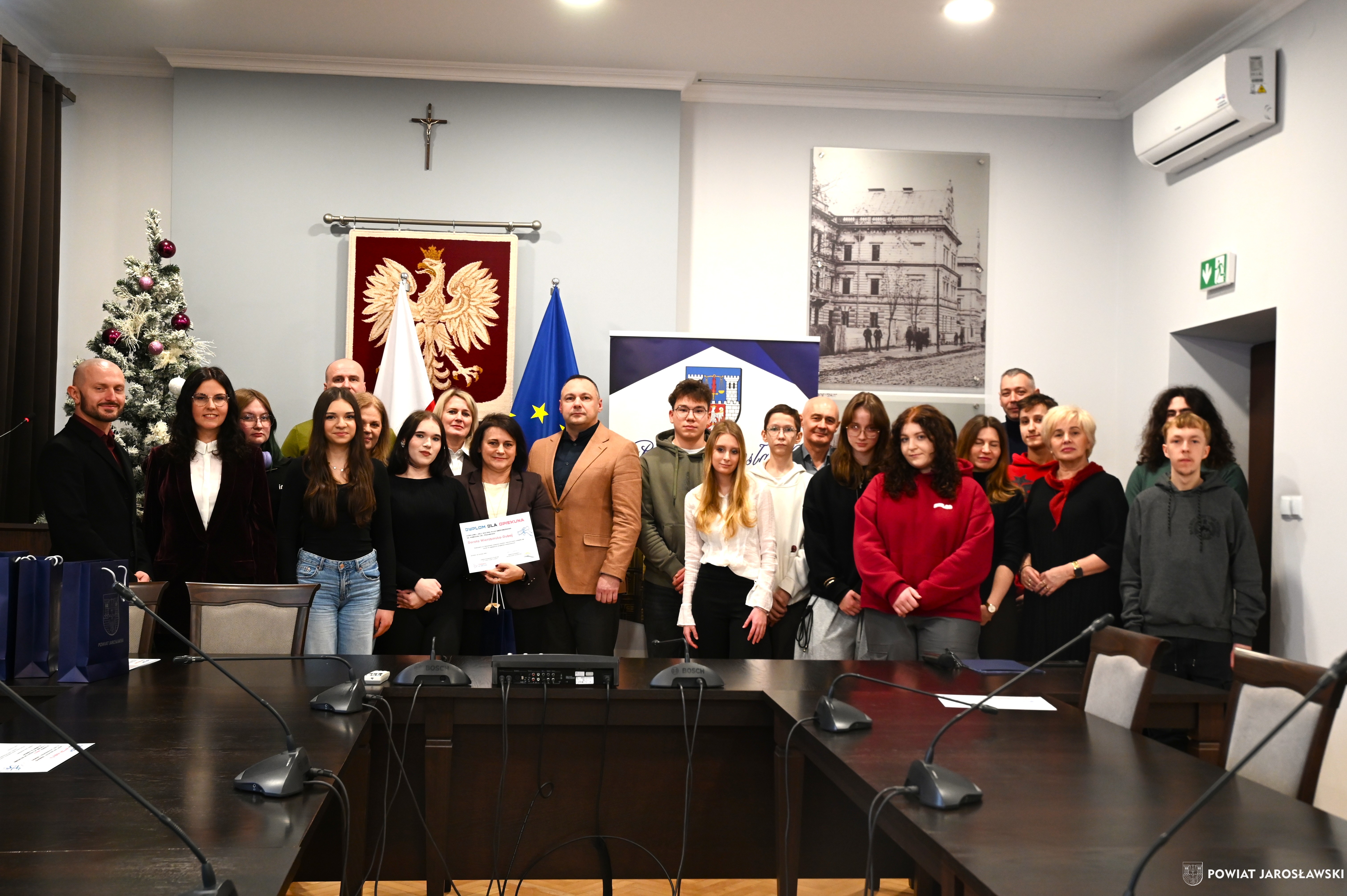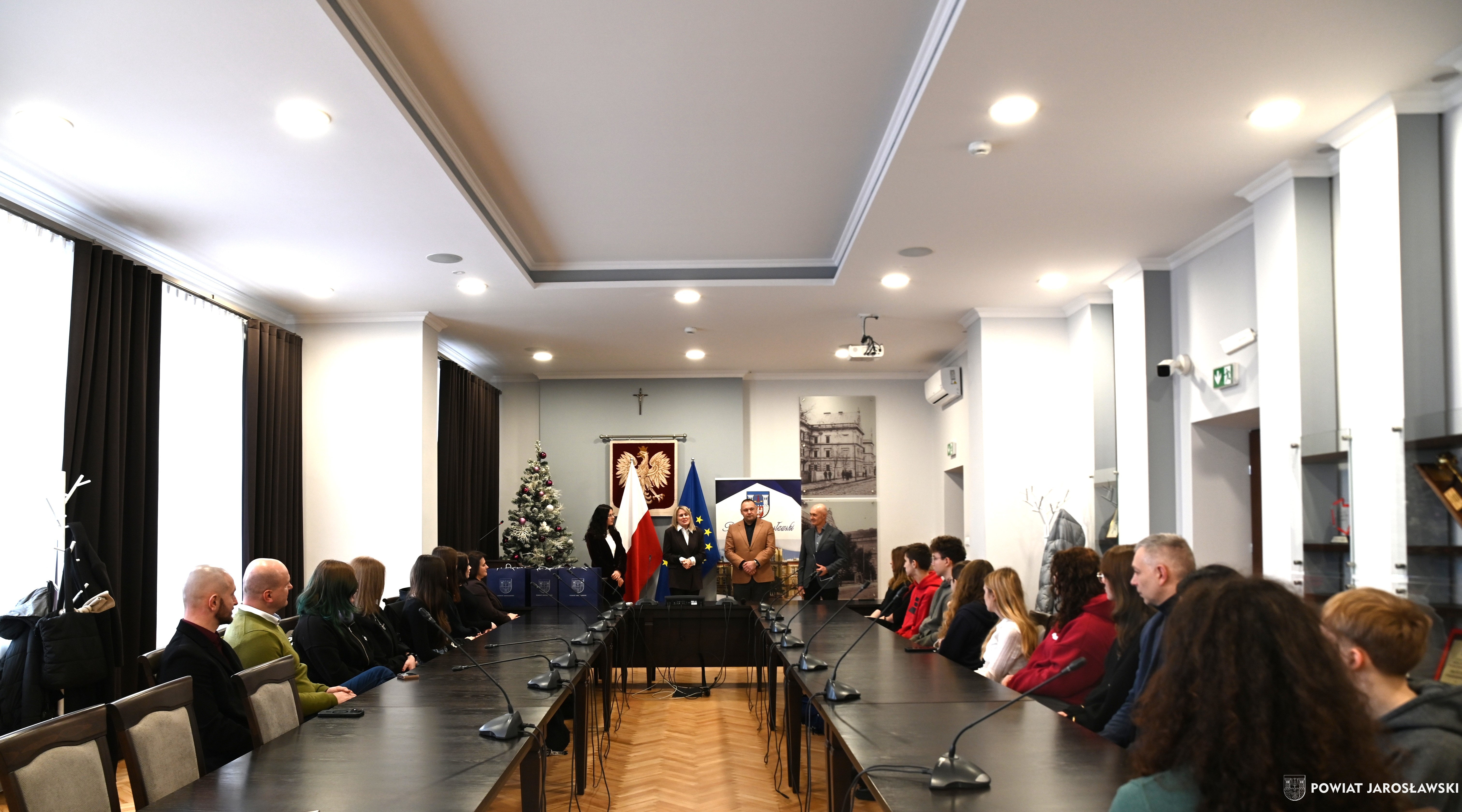 W podsumowaniu konkursu udział wzięli m.in. starosta jarosławski Kamil Dziukiewicz, przewodnicząca Komisji Oświaty Rady Powiatu Jarosławskiego Agnieszka Pieniążek, naczelnik Wydziału Edukacji i Spraw Społecznych Starostwa Powiatowego w Jarosławiu Monika Maziarz oraz Adam Wojdyło, przedstawiciel Fundacji „Trampki na giełdzie”, a także dyrektorzy szkół ponadpodstawowych, nauczyciele oraz finaliści konkursu.