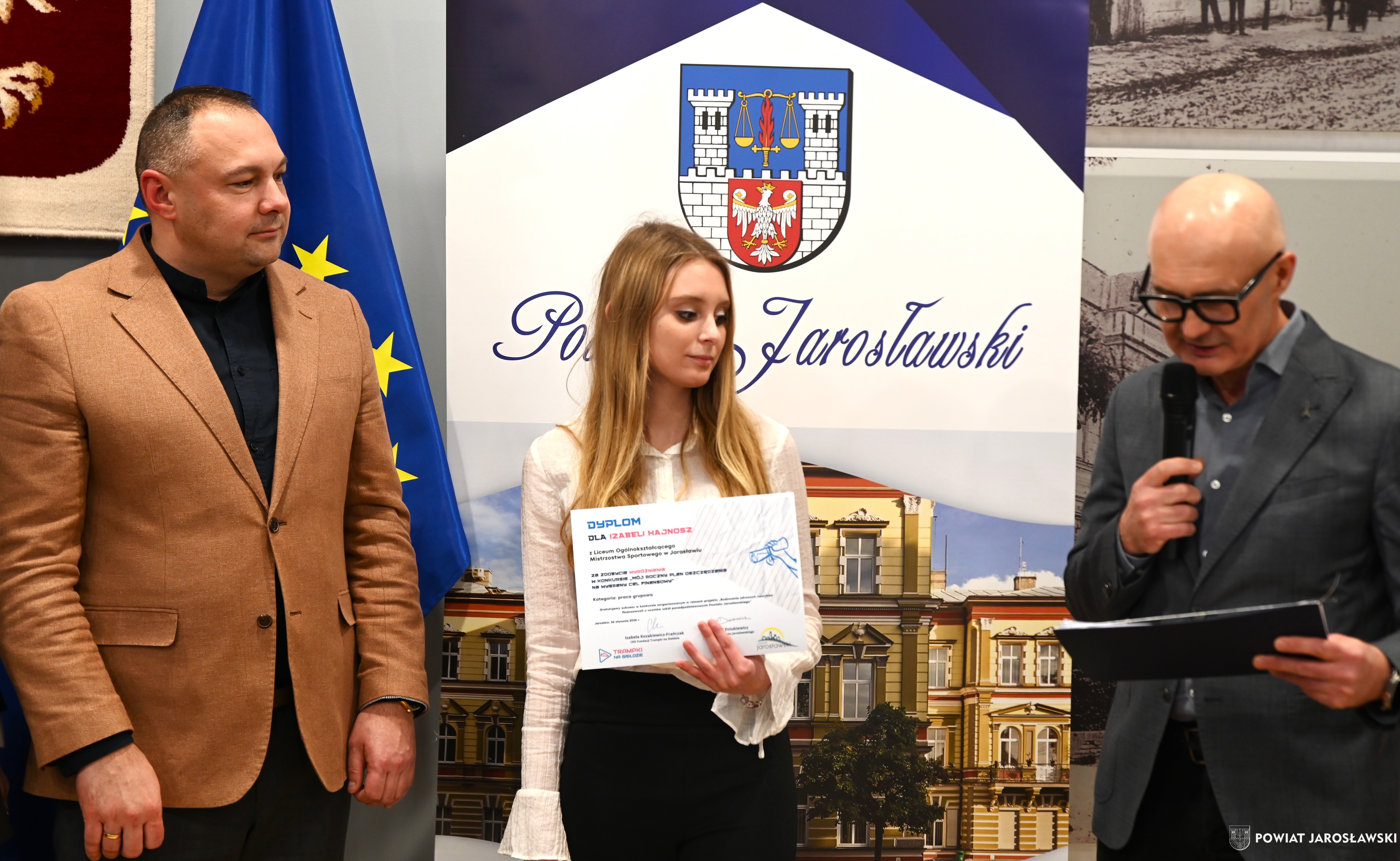 26 stycznia w Starostwie Powiatowym w Jarosławiu odbył się finał konkursu „Mój roczny plan oszczędzania na wybrany cel finansowy”, realizowany w ramach projektu edukacyjnego „Budowanie zdrowych nawyków finansowych u uczniów szkół ponadpodstawowych Powiatu Jarosławskiego”. Organizatorem wydarzenia był powiat jarosławski, reprezentowany przez starostę jarosławskiego Kamila Dziukiewicza, we współpracy z Fundacją Edukacji Finansowej Dzieci i Młodzieży „Trampki na giełdzie” z Krakowa.