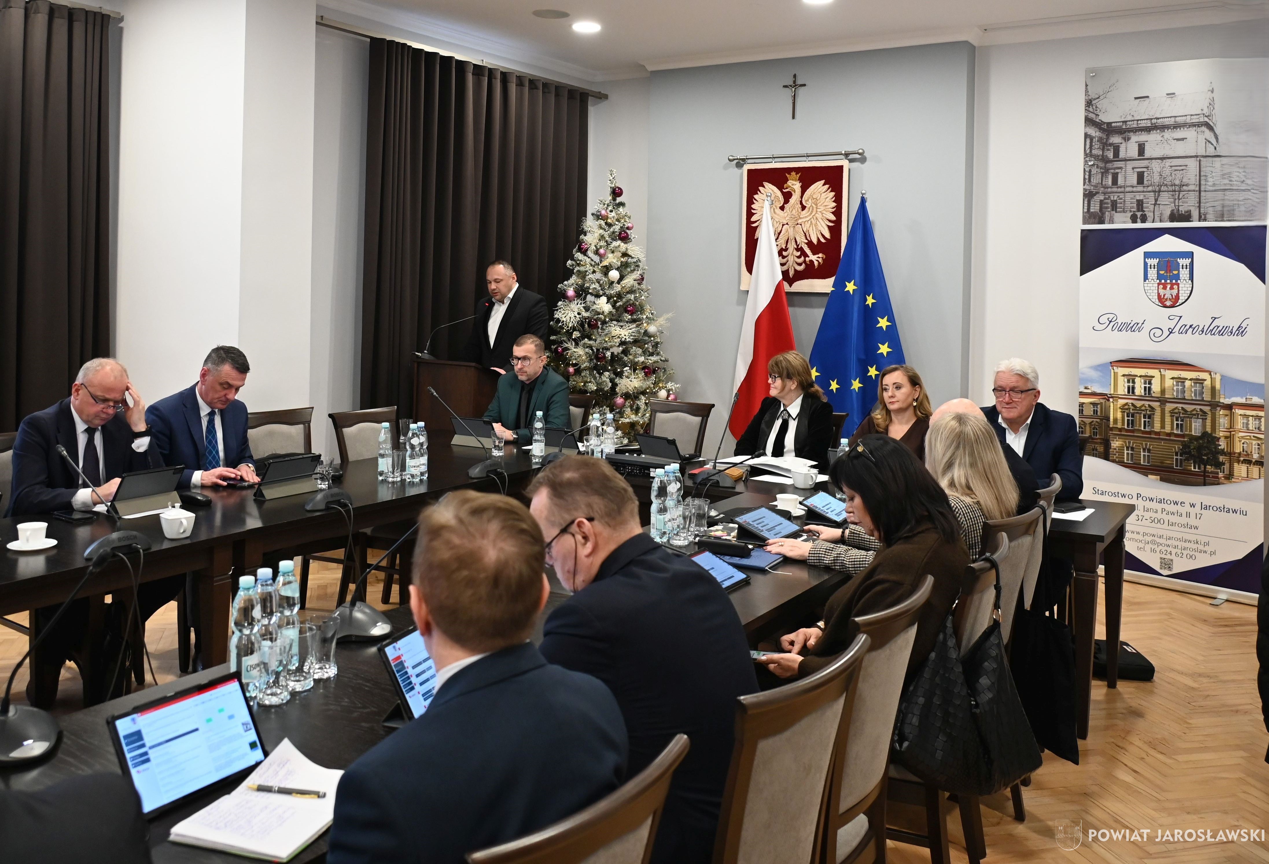 Po otwarciu obrad przez przewodniczącą rady Grażynę Strzelec, włodarz powiatu jarosławskiego starosta jarosławski Kamil Dziukiewicz przedstawił informację z prac zarządu między sesjami. W omawianym okresie odbyły się liczne wydarzenia kulturalne i sportowe - wiele z nich zostało objętych patronatem honorowym starosty, a część została zorganizowana przez jarosławskie starostwo. Starosta wspomniał chociażby o tradycyjnym spotkaniu opłatkowym samorządowców powiatu jarosławskiego, ale również o gali wręczenia wyróżnień „Złoty Archanioł Powiatu Jarosławskiego”, wyjątkowych nagród dla osób, instytucji i firm, które swoją działalnością przyczyniają się do promocji powiatu zarówno na arenie krajowej, jak i międzynarodowej.