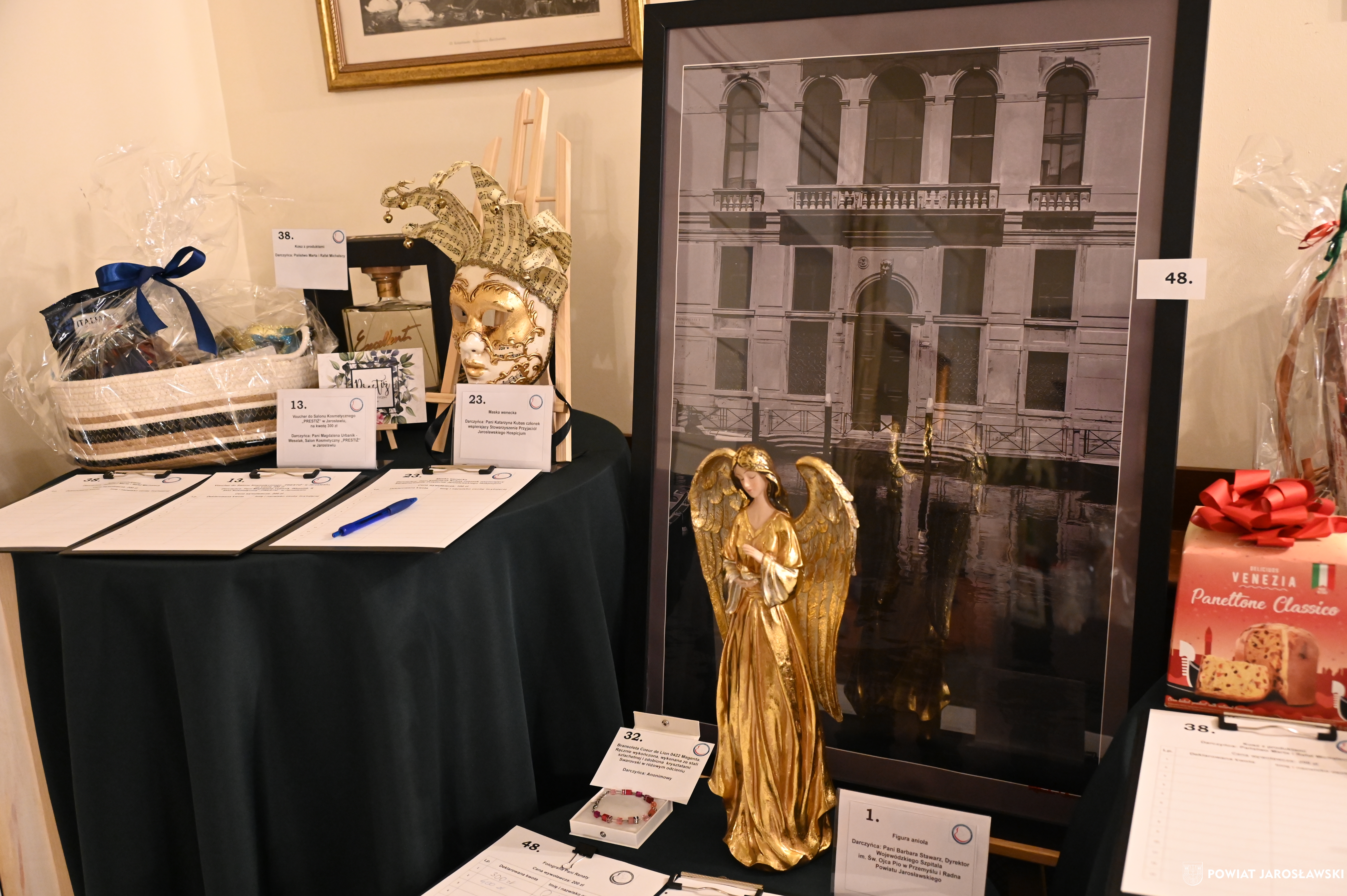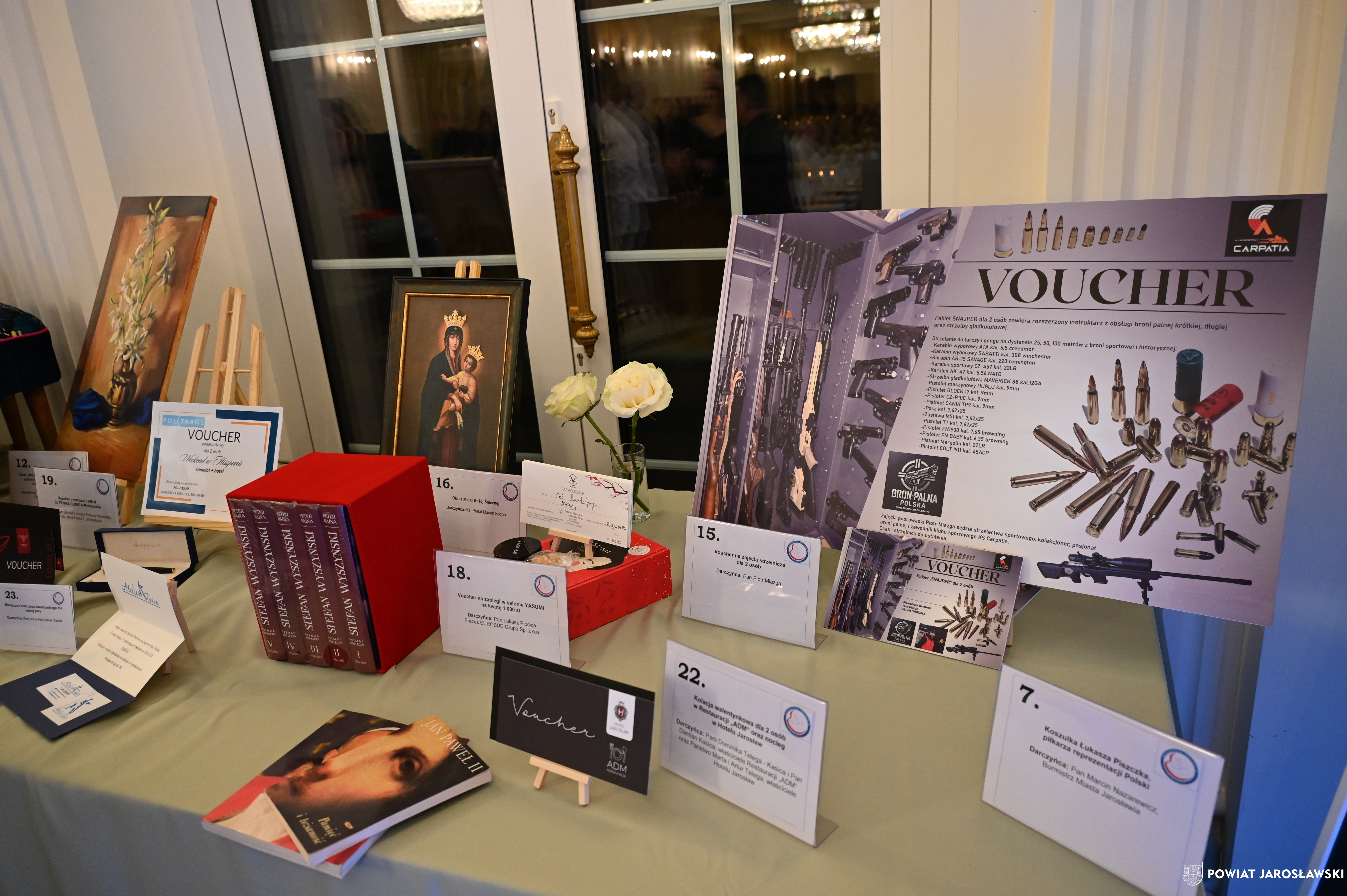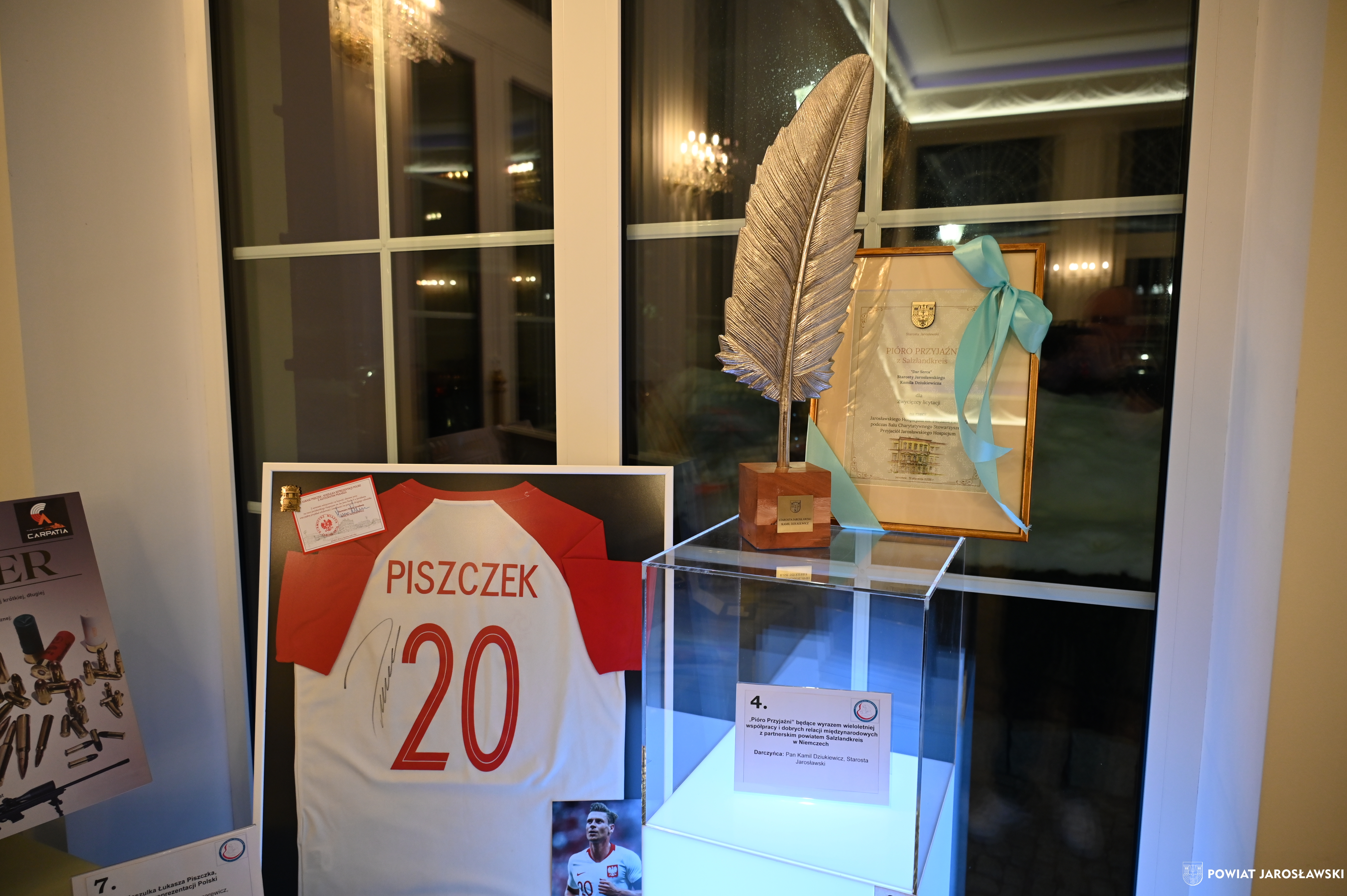 Podczas wydarzenia uczestnikom towarzyszyła znakomita muzyka zespołu Efekt, a organizatorzy zadbali o wyjątkową atmosferę, wyśmienitą kuchnię oraz liczne atrakcje, w tym licytacje i loterię fantową. Szczególnym zainteresowaniem cieszyła się licytacja cennych przedmiotów, przekazanych nań przez przyjaciół stowarzyszenia. Wśród nich znalazło się „Pióro Przyjaźni” – przekazane przez starostę jarosławskiego Kamila Dziukiewicza (wylicytowane za 4 tysiące złotych!). Przedmiot ów, przywieziony z oficjalnej wizyty delegacji powiatu jarosławskiego w partnerskim powiecie Salzlandkreis w Niemczech w lipcu 2025 roku, jest symbolem wieloletniej współpracy i dobrych relacji międzynarodowych naszego powiatu z zagranicznymi destynacjami partnerskimi.