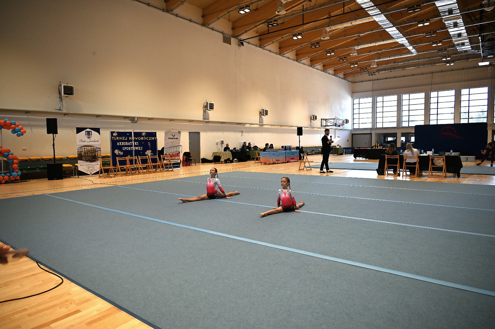 Hala sportowo-widowiskowa jarosławskiego MOSiR-u wypełniła się dzisiaj niespożytą, młodą energią. Startujący w turnieju zawodnicy i zawodniczki zaprezentowali dopieszczone w każdym detalu choreografie, precyzyjne elementy techniczne, siłę, gibkość, lekkość ruchu oraz niesamowitą synchronizację, udowadniając że akrobatyka sportowa to połączenie ciężkiej pracy, talentu, determinacji i artystycznej wrażliwości.