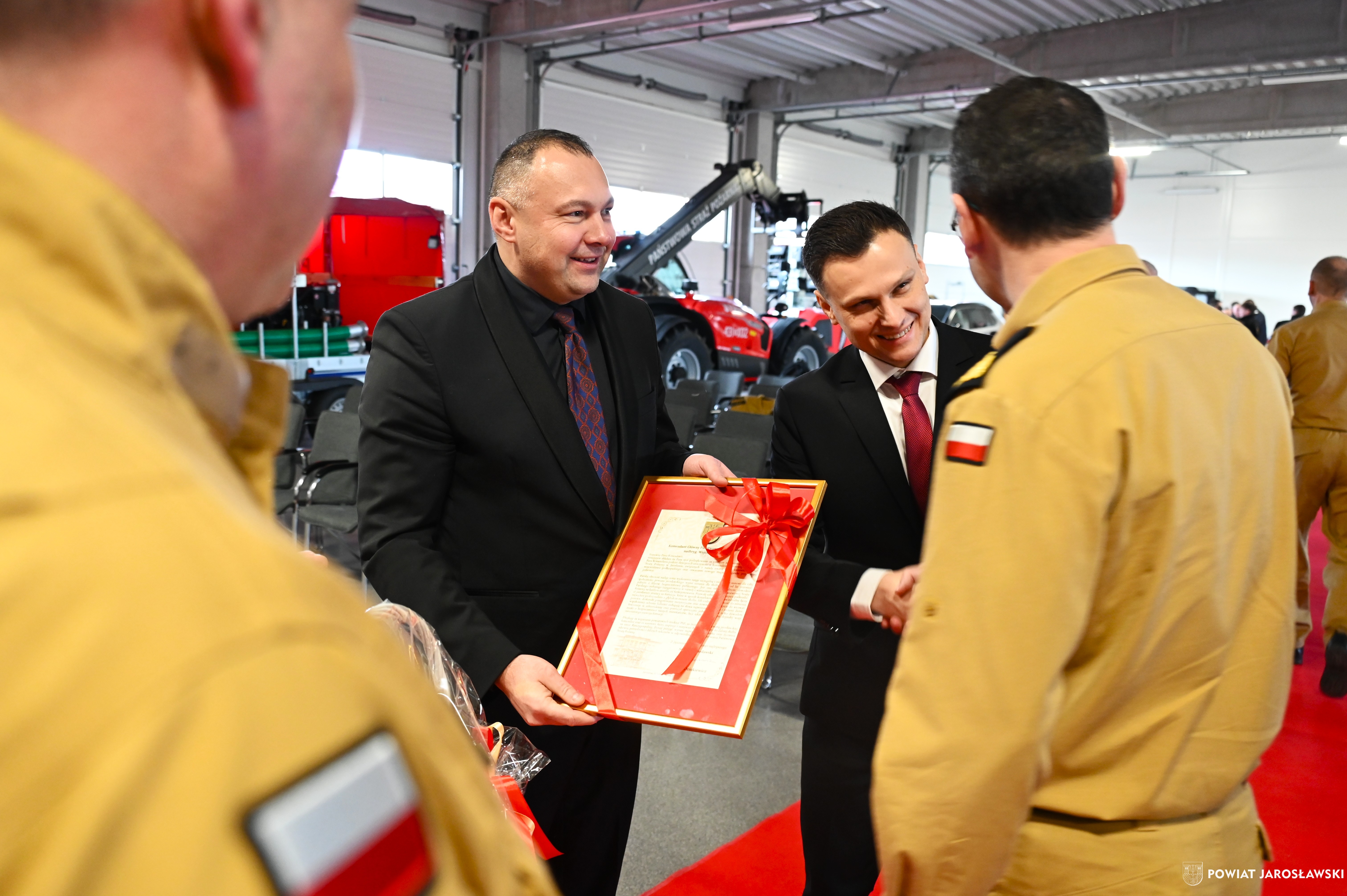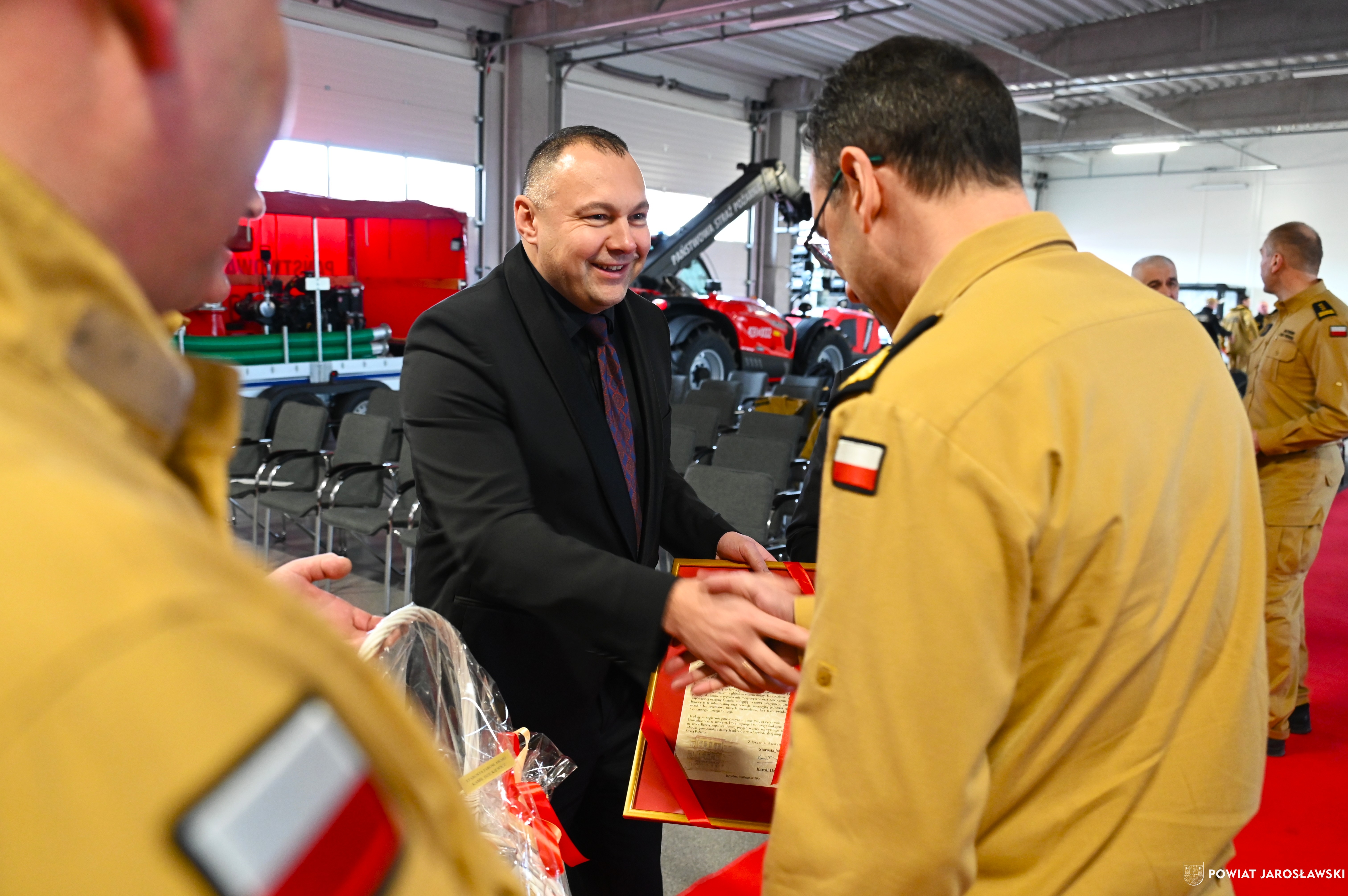 Podczas uroczystości starosta Kamil Dziukiewicz złożył na ręce komendanta głównego PSP nadbryg. Wojciecha Kruczka list gratulacyjny wraz z koszem okolicznościowym, wyrażając podziękowanie za dotychczasową służbę oraz zaangażowanie strażaków w zapewnianie bezpieczeństwa mieszkańcom regionu.