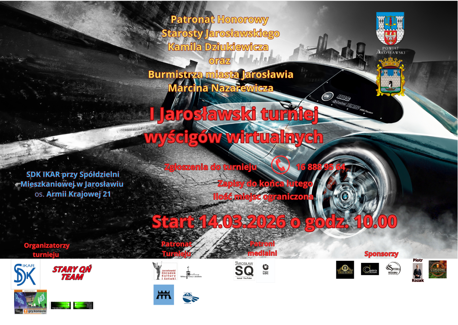 I Jarosławski Turniej Wyścigów Wirtualnych pod honorowym patronatem Kamil Dziukiewicz Starosta Powiatu Jarosławskiego.
