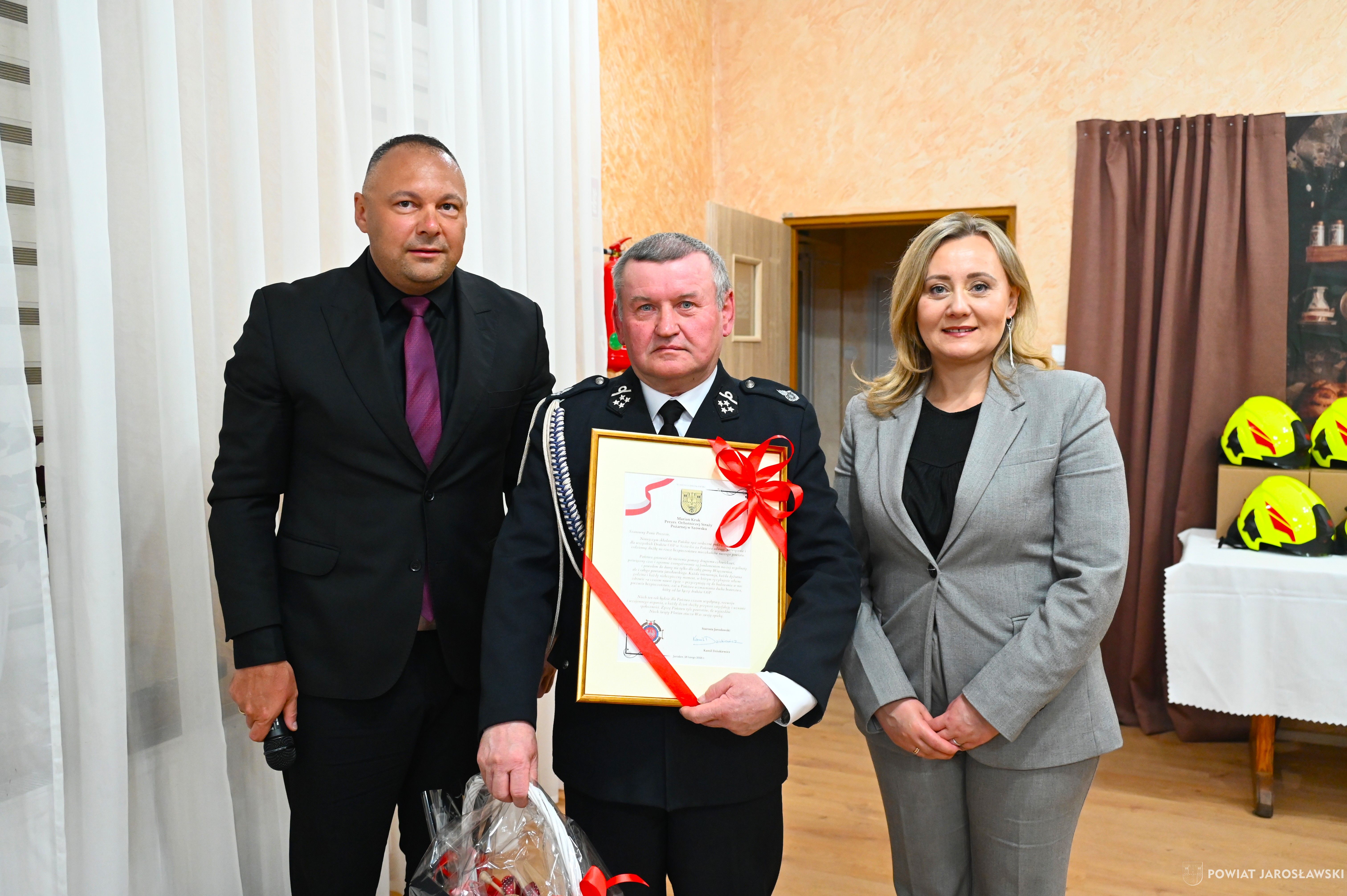Swoją obecnością zaszczycili starosta jarosławski Kamil Dziukiewicz oraz wiceprzewodnicząca Rady Powiatu Jarosławskiego Magdalena Rożek, którzy na ręce Prezesa OSP Mariana Kruka przekazali list gratulacyjny, wyrażając uznanie za dotychczasową działalność, zaangażowanie oraz wkład jednostki w zapewnienie bezpieczeństwa mieszkańcom całego powiatu.