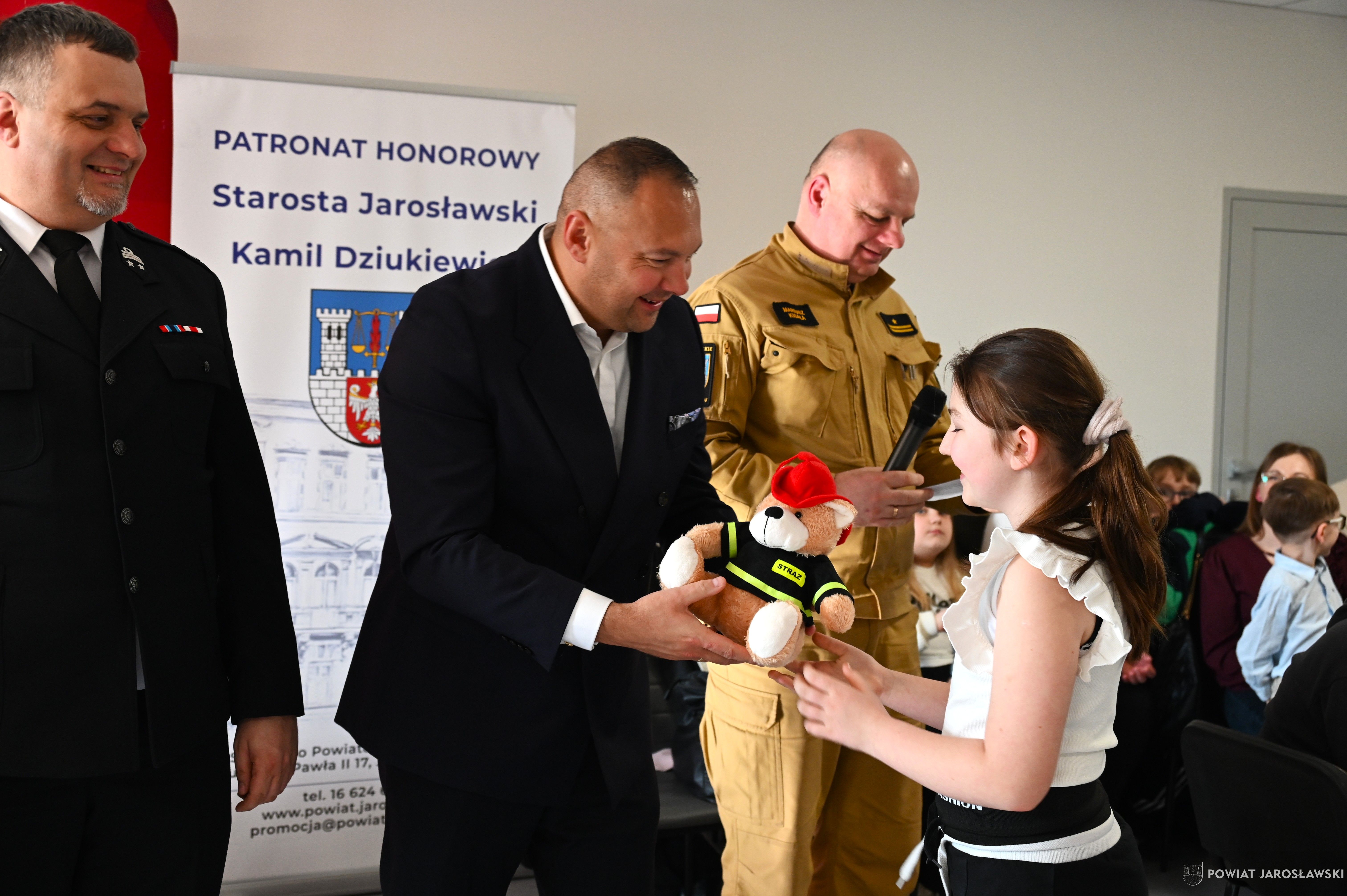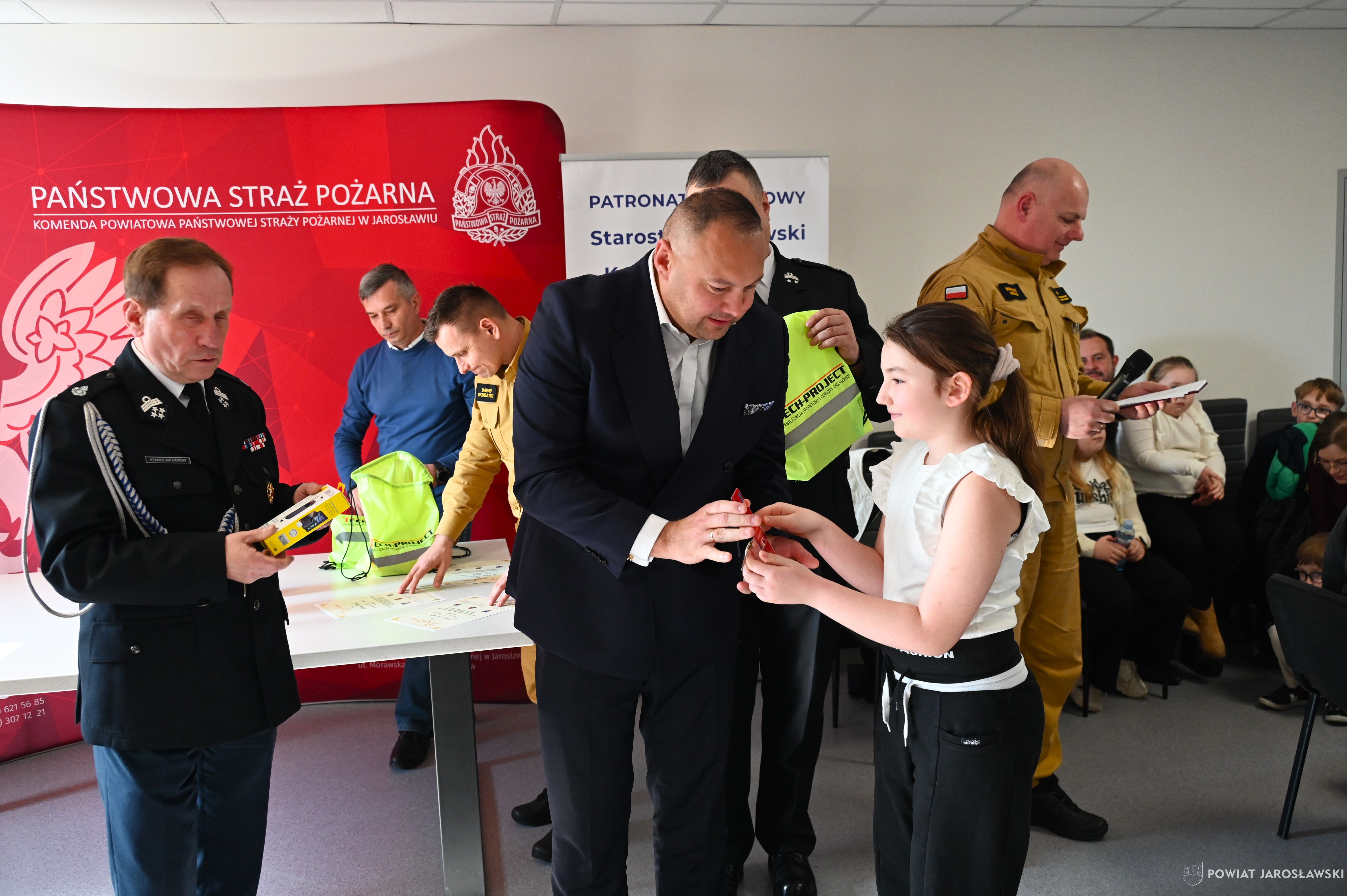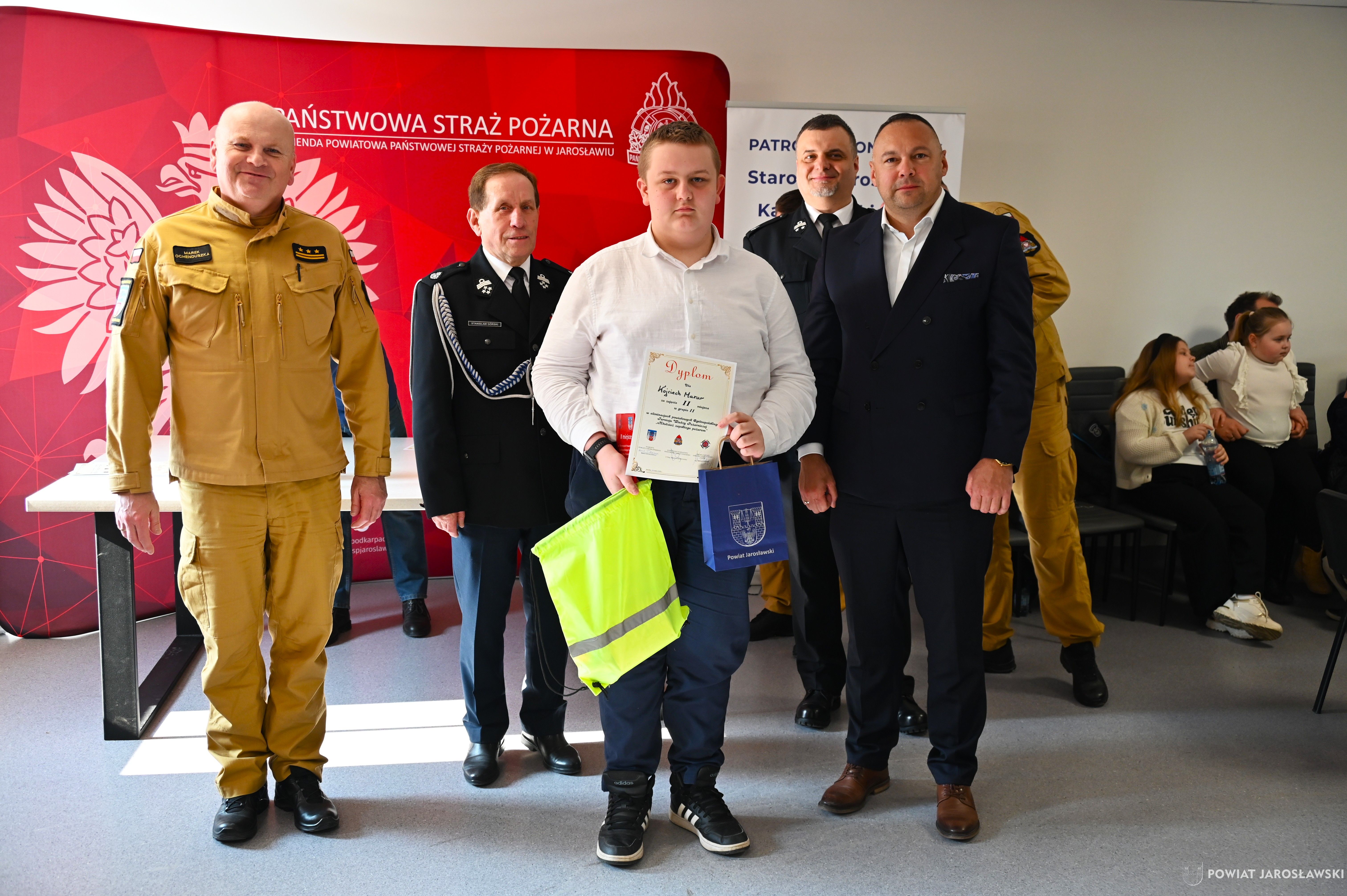 W wydarzeniu, obok starosty i naszych wspaniałych dzieci, ich opiekunów i rodziców obecni byli również m.in.: prezes Zarządu ZOSP RP w Jarosławiu a zarazem radny powiatu jarosławskiego Stanisław Górski, członek Prezydium Zarządu ZOSP RP w Jarosławiu a zarazem wójt gminy Roźwienica Tomasz Kud, komendant Powiatowy PSP w Jarosławiu st. bryg. Marek Ochenduszka, mł. bryg. Mariusz Kisała, mł. kpt. inż. Krzysztof Balicki oraz mł. bryg. Dawid Skuratko.