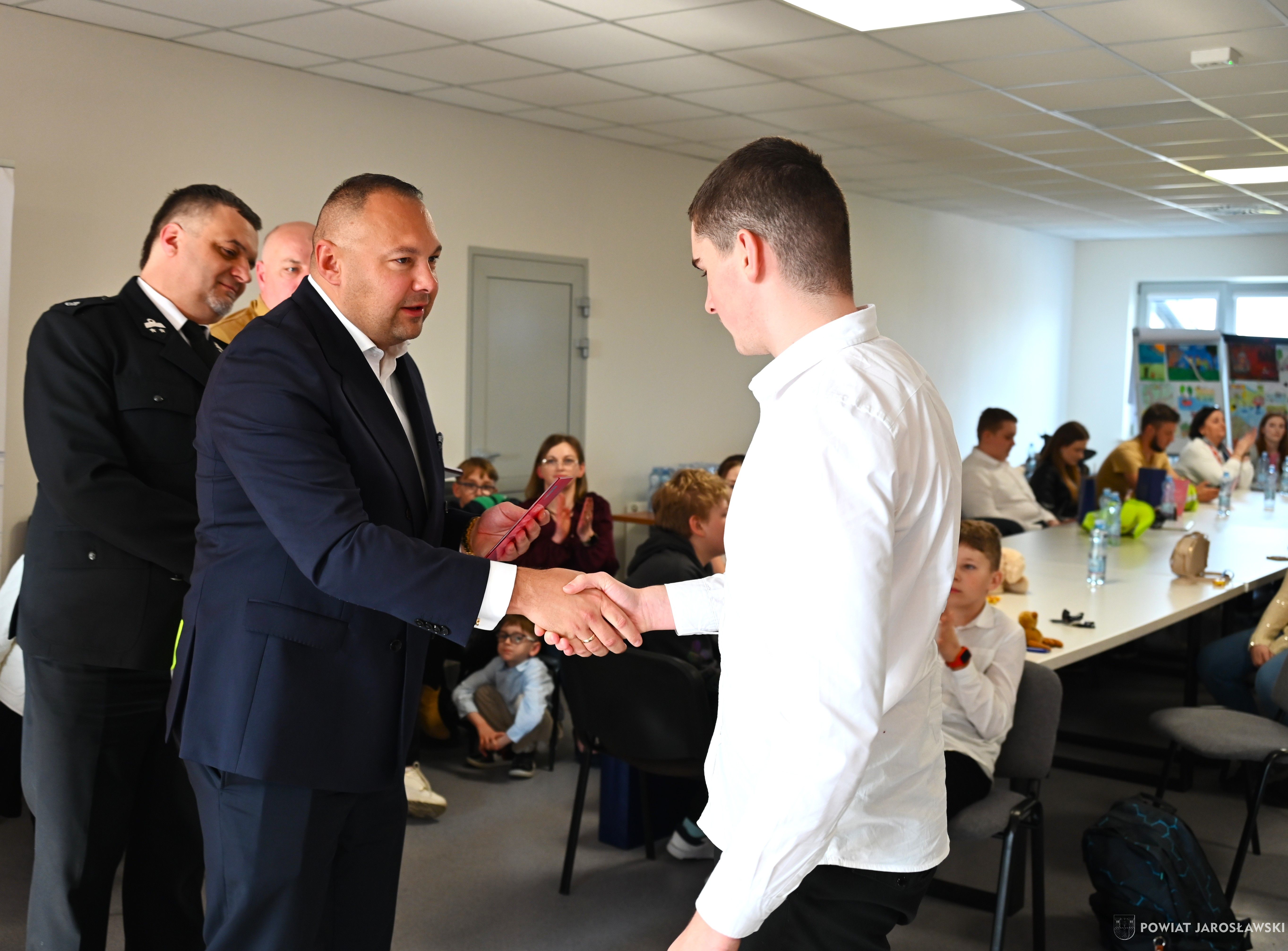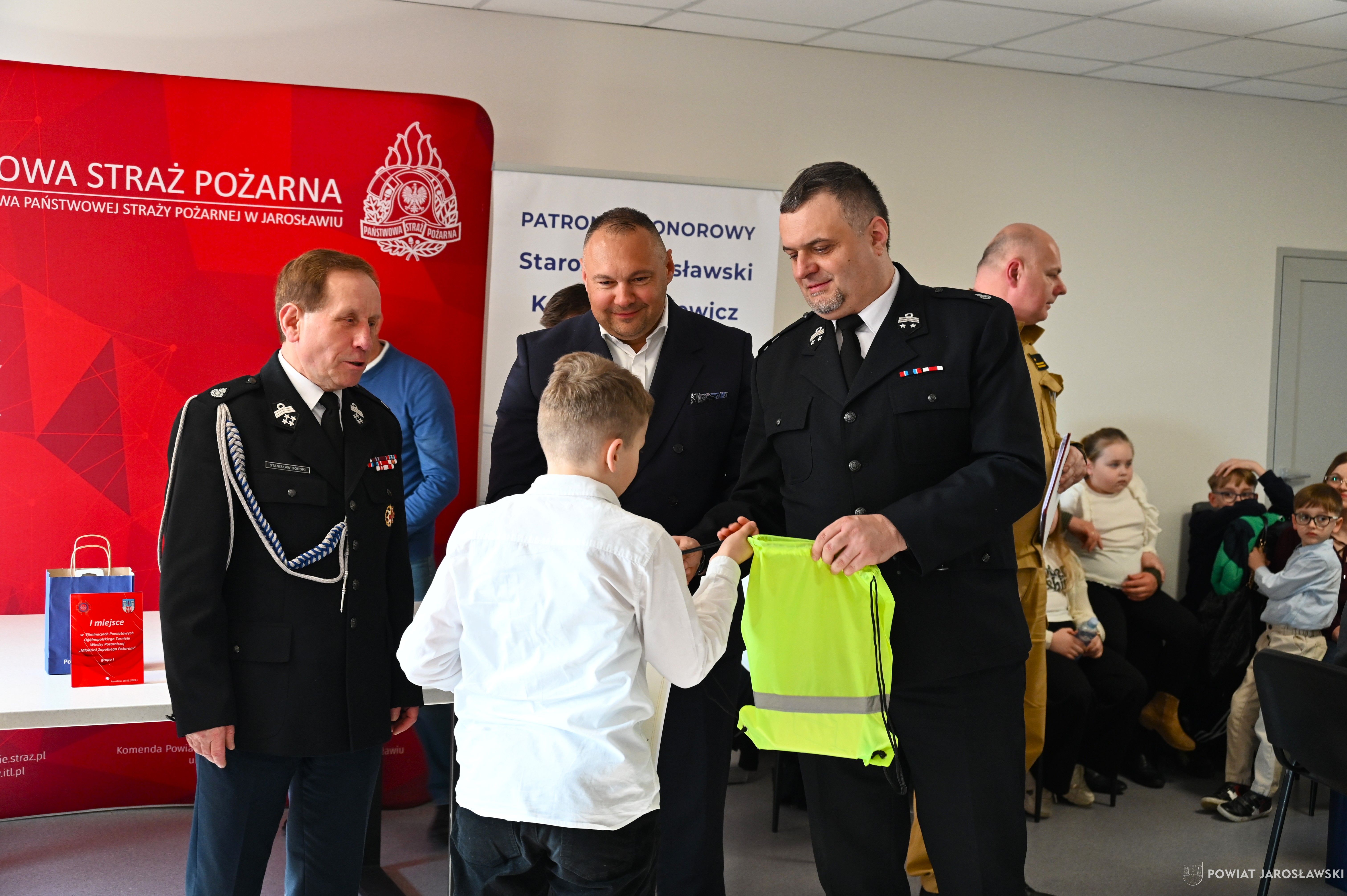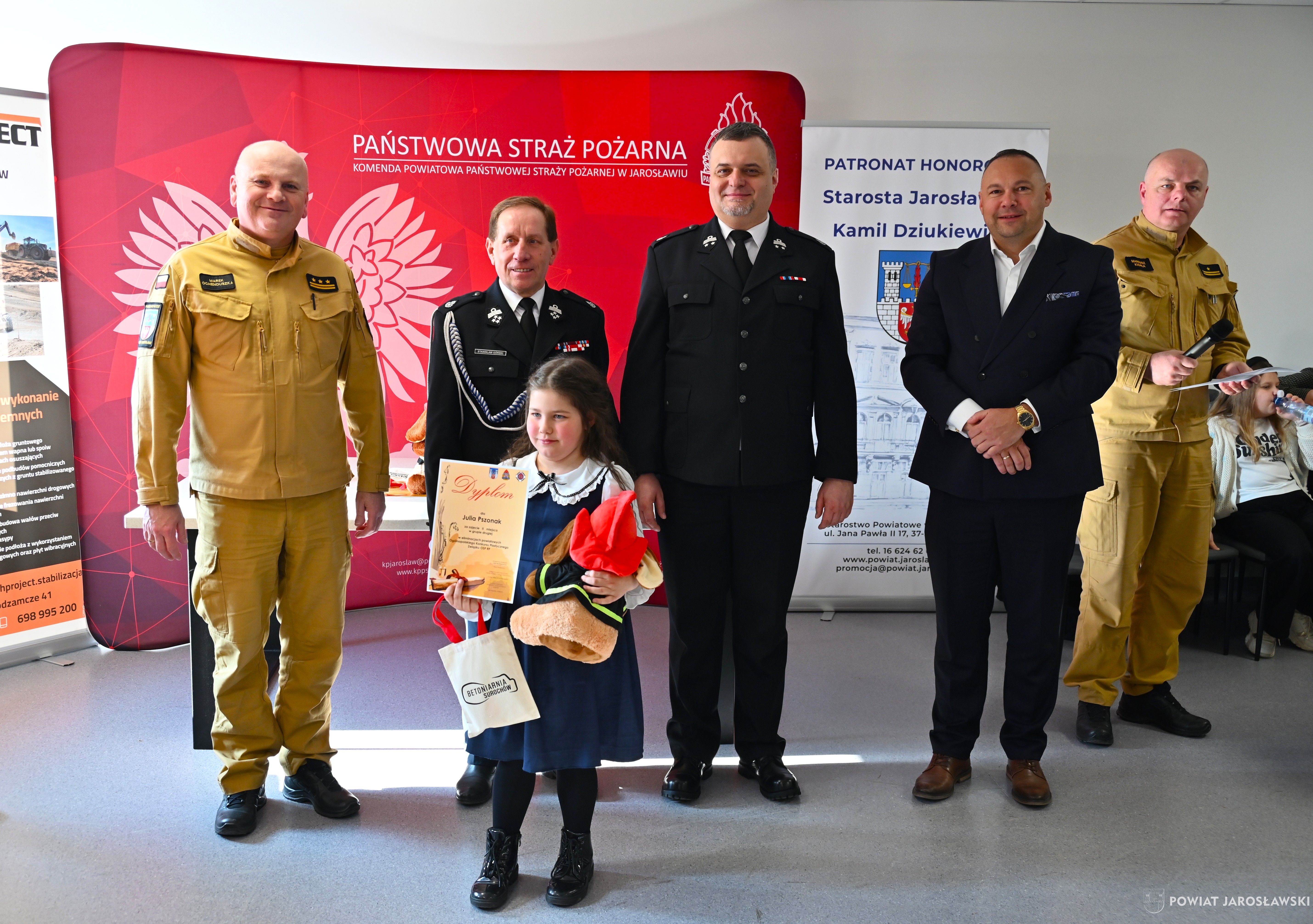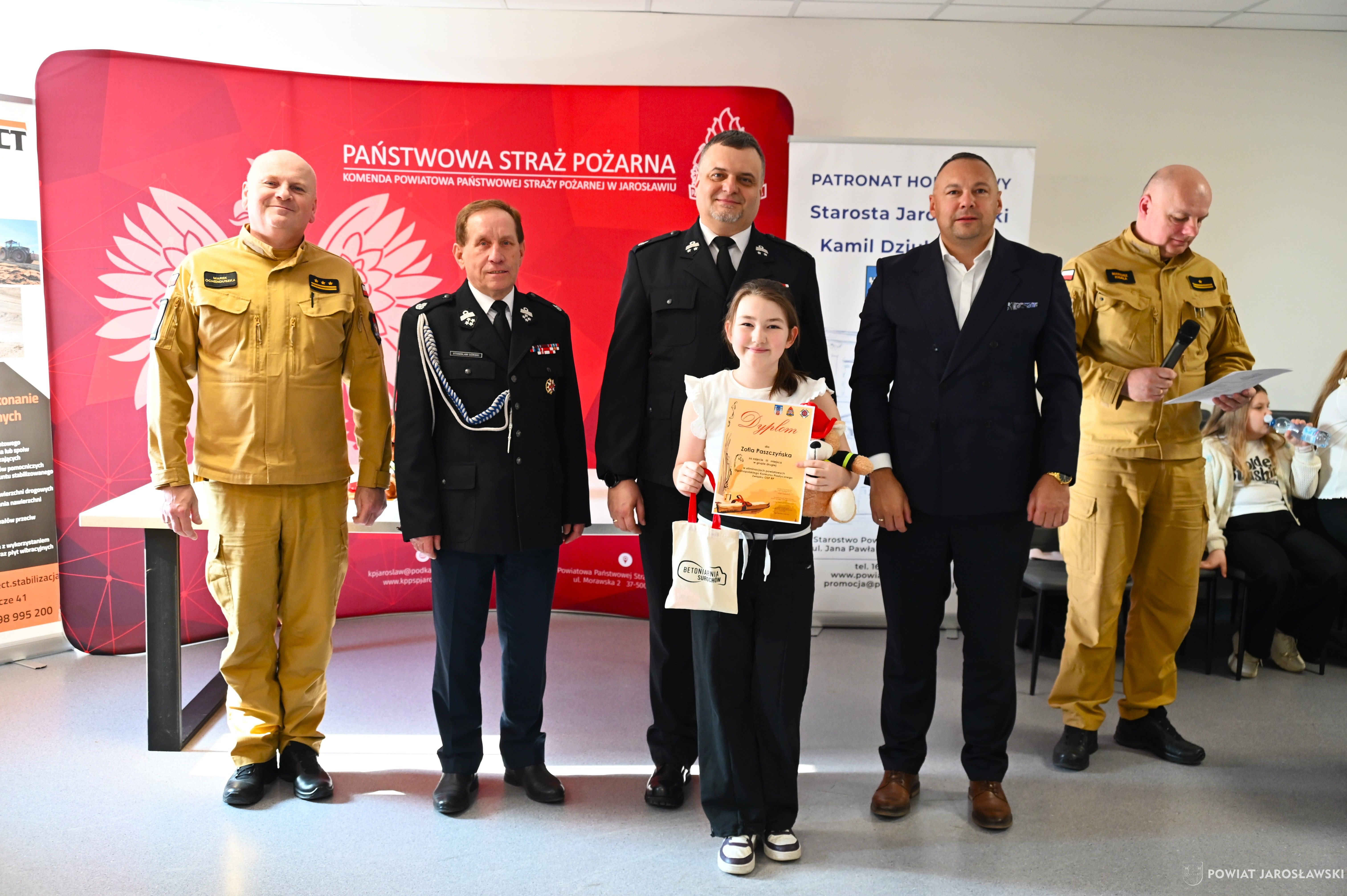 W wydarzeniu, obok starosty i naszych wspaniałych dzieci, ich opiekunów i rodziców obecni byli również m.in.: prezes Zarządu ZOSP RP w Jarosławiu a zarazem radny powiatu jarosławskiego Stanisław Górski, członek Prezydium Zarządu ZOSP RP w Jarosławiu a zarazem wójt gminy Roźwienica Tomasz Kud, komendant Powiatowy PSP w Jarosławiu st. bryg. Marek Ochenduszka, mł. bryg. Mariusz Kisała, mł. kpt. inż. Krzysztof Balicki oraz mł. bryg. Dawid Skuratko.