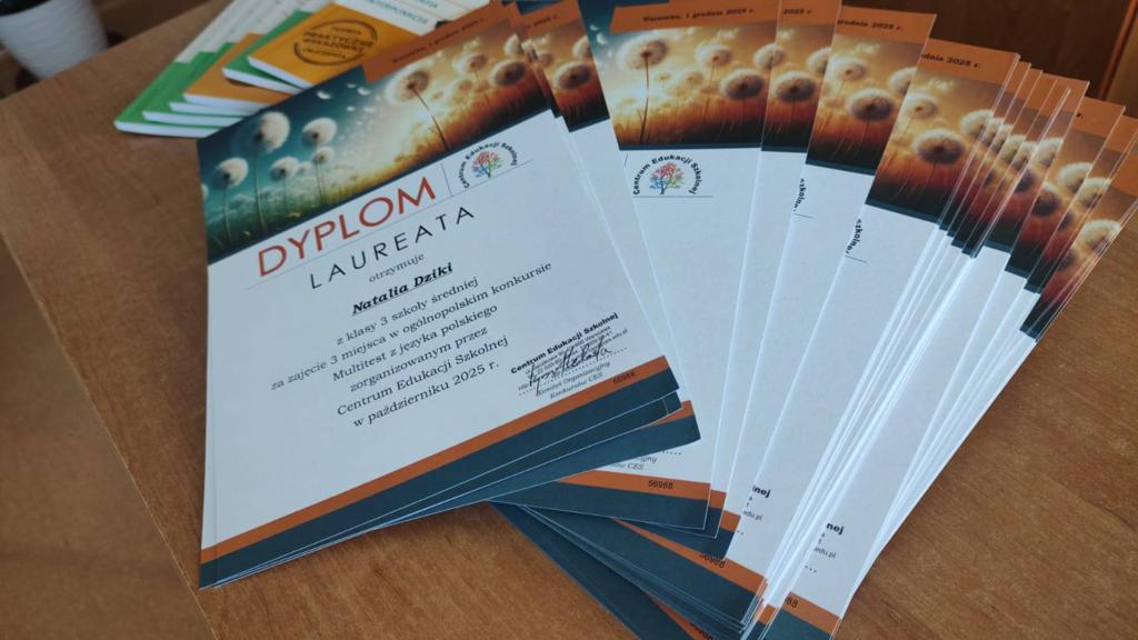 Równie imponujące wyniki osiągnęli uczniowie w Ogólnopolskim Konkursie Multitest z języka polskiego. Podczas uroczystego rozdania nagród, które odbyło się 21 stycznia 2026 r., uhonorowano aż 35 laureatów oraz 13 uczniów wyróżnionych. Tak znakomity rezultat potwierdza wysoki poziom kształcenia w szkole, którego symbolem jest w tym roku zdobyta Srebrna Tarcza.