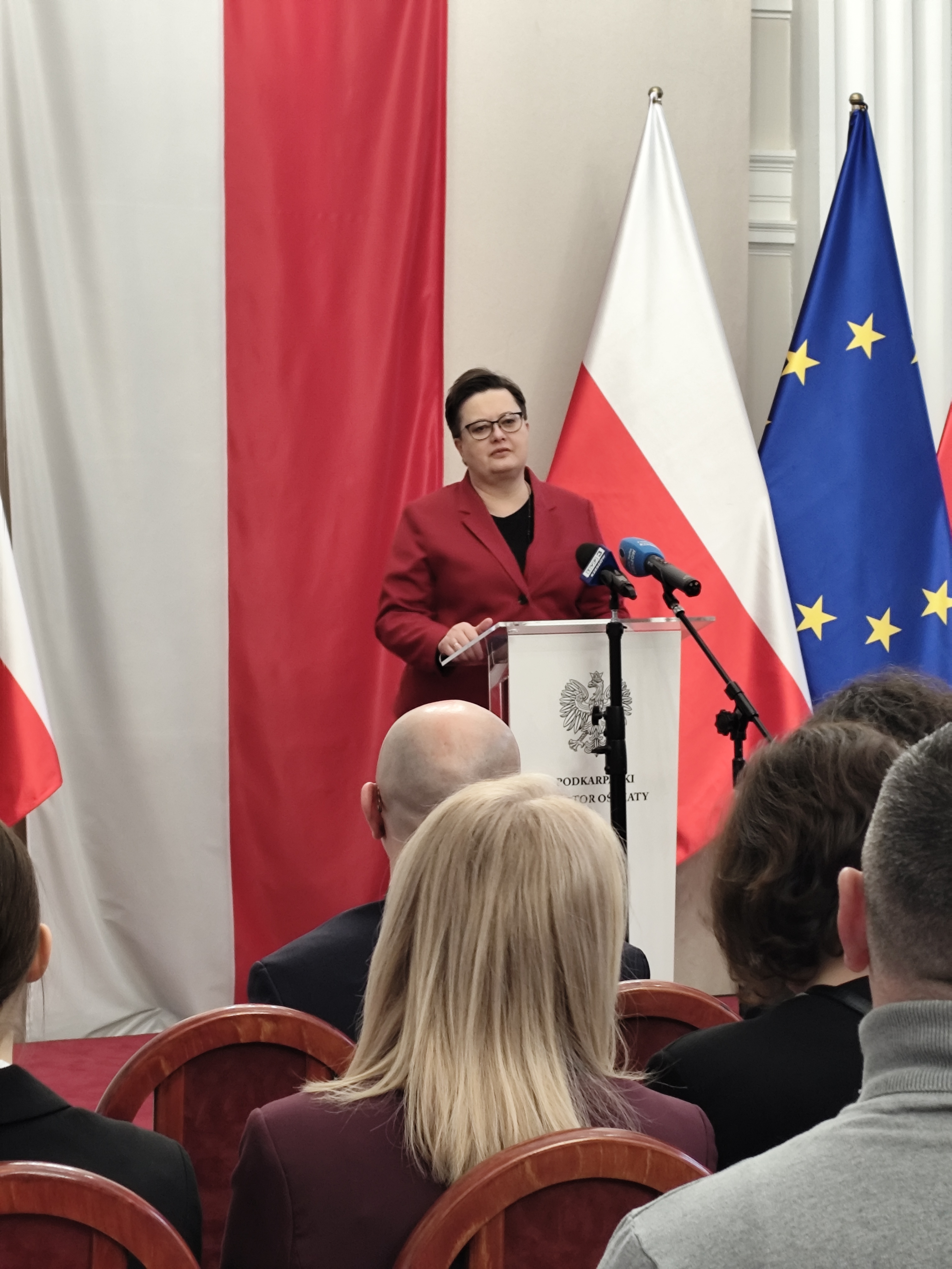 Dyplomy stypendystom wręczali: Minister Edukacji Narodowej Katarzyna Lubnauer, wojewoda podkarpacki Teresa Kubas-Hul, podkarpacki kurator oświaty Dorota Nowak-Maluchnik.