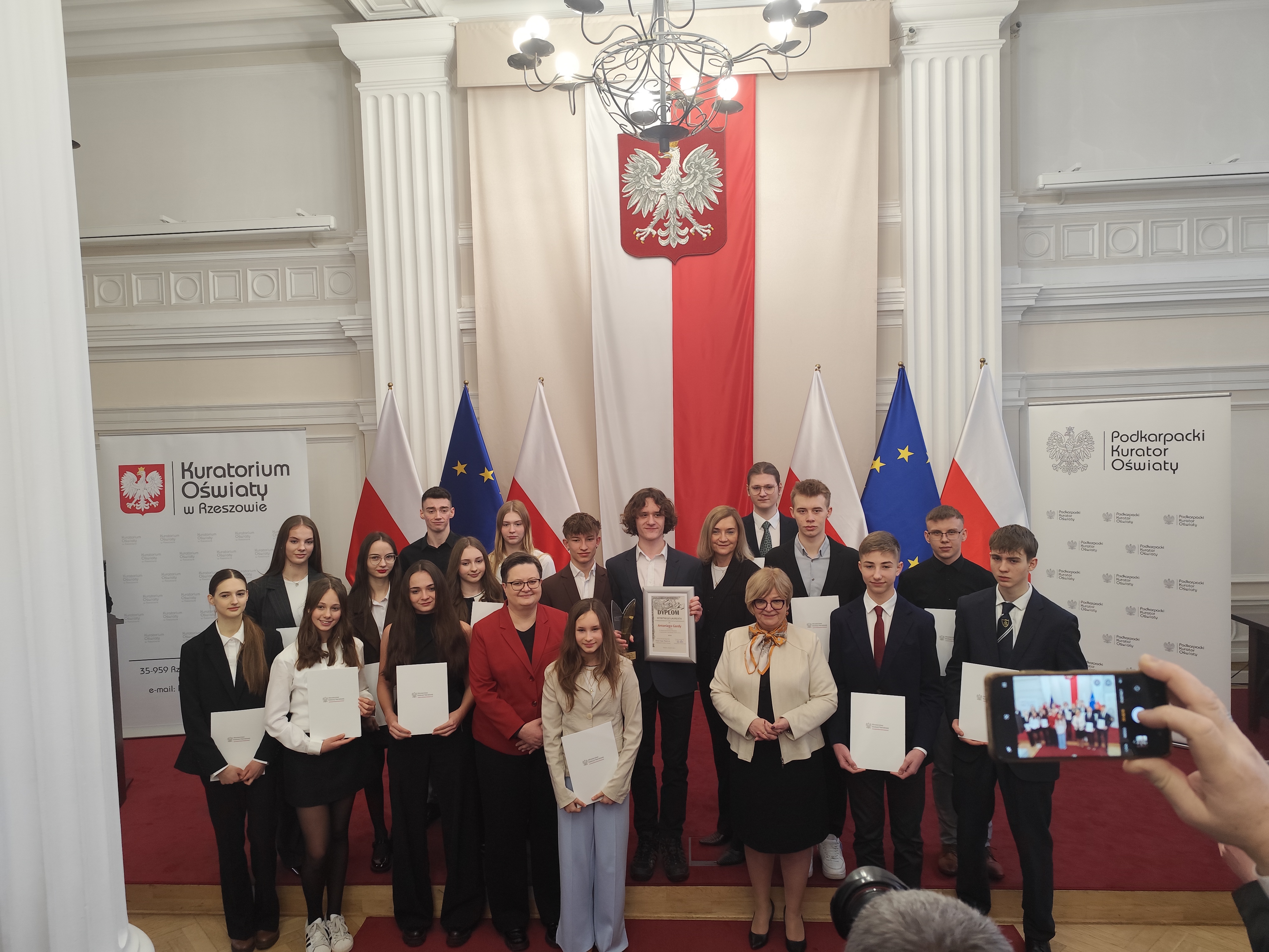 29 stycznia br. w Sali Kolumnowej im. Ojców Niepodległości Podkarpackiego Urzędu Wojewódzkiego w Rzeszowie odbyła się uroczystość wręczenia dyplomów stypendystom Ministra Edukacji Narodowej. Wydarzenie zostało zorganizowane przez Podkarpackiego Kuratora Oświaty. Z dumą informujemy, że w gronie wyróżnionych znaleźli się przedstawiciele naszej szkoły: