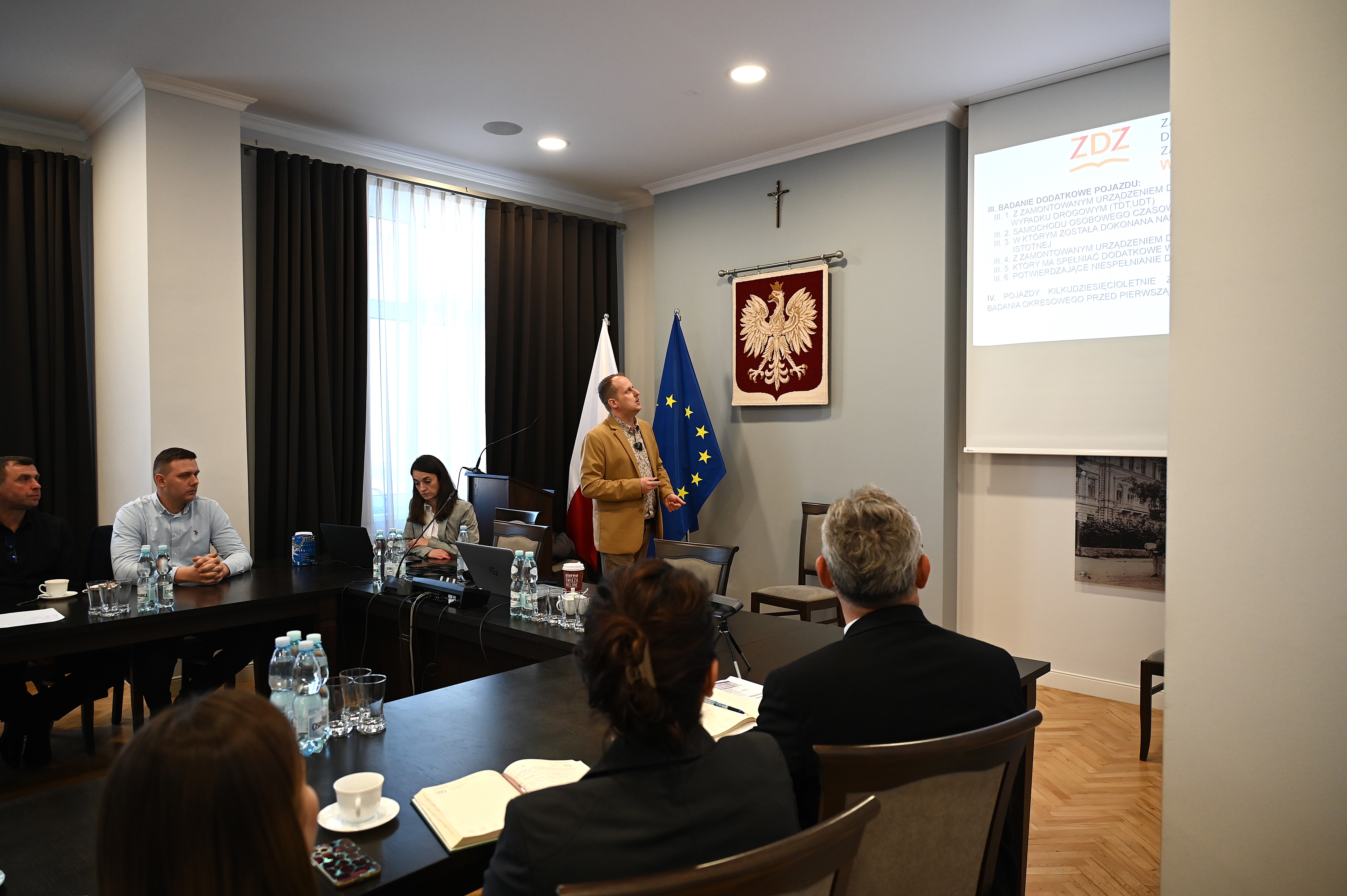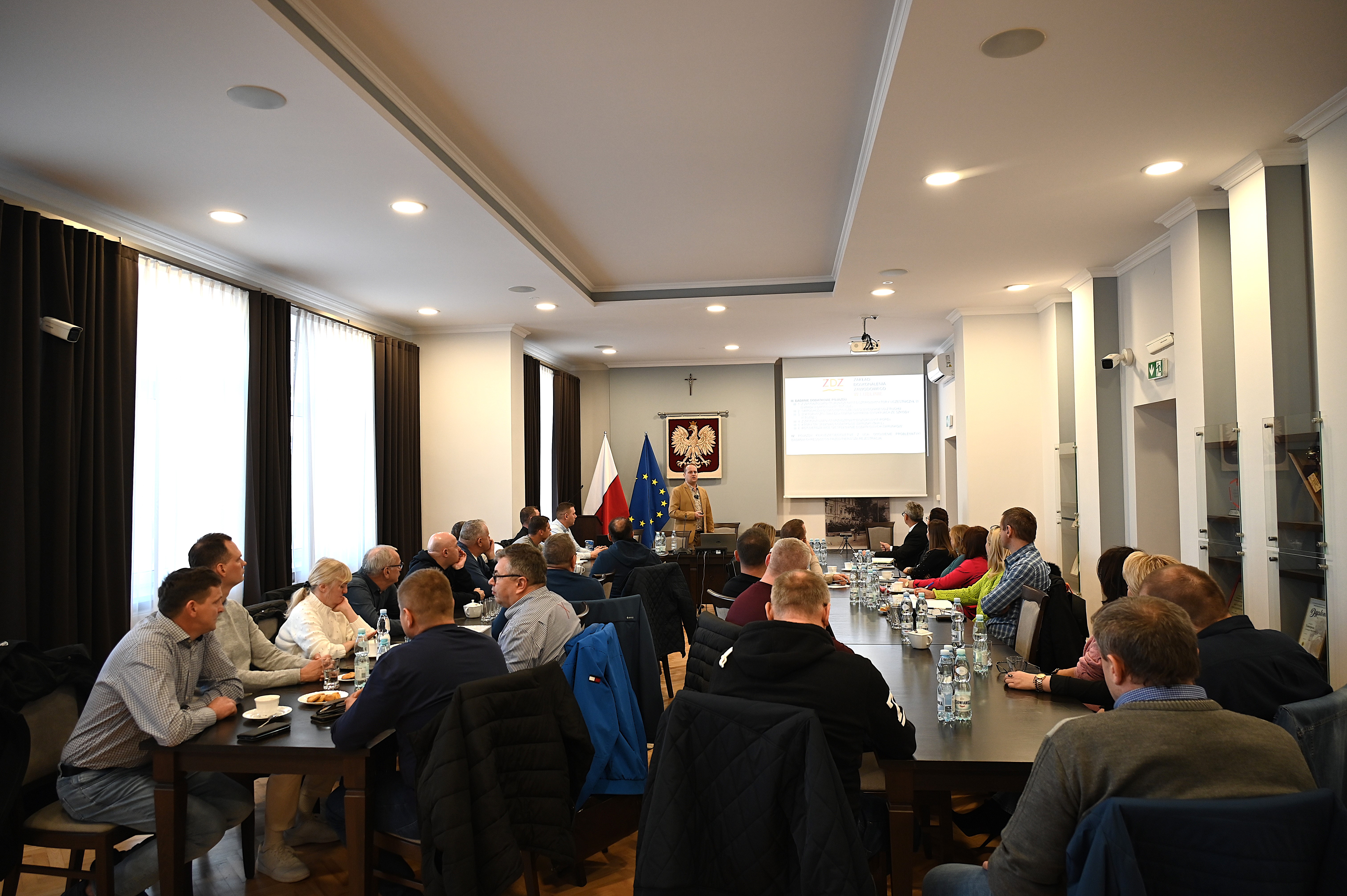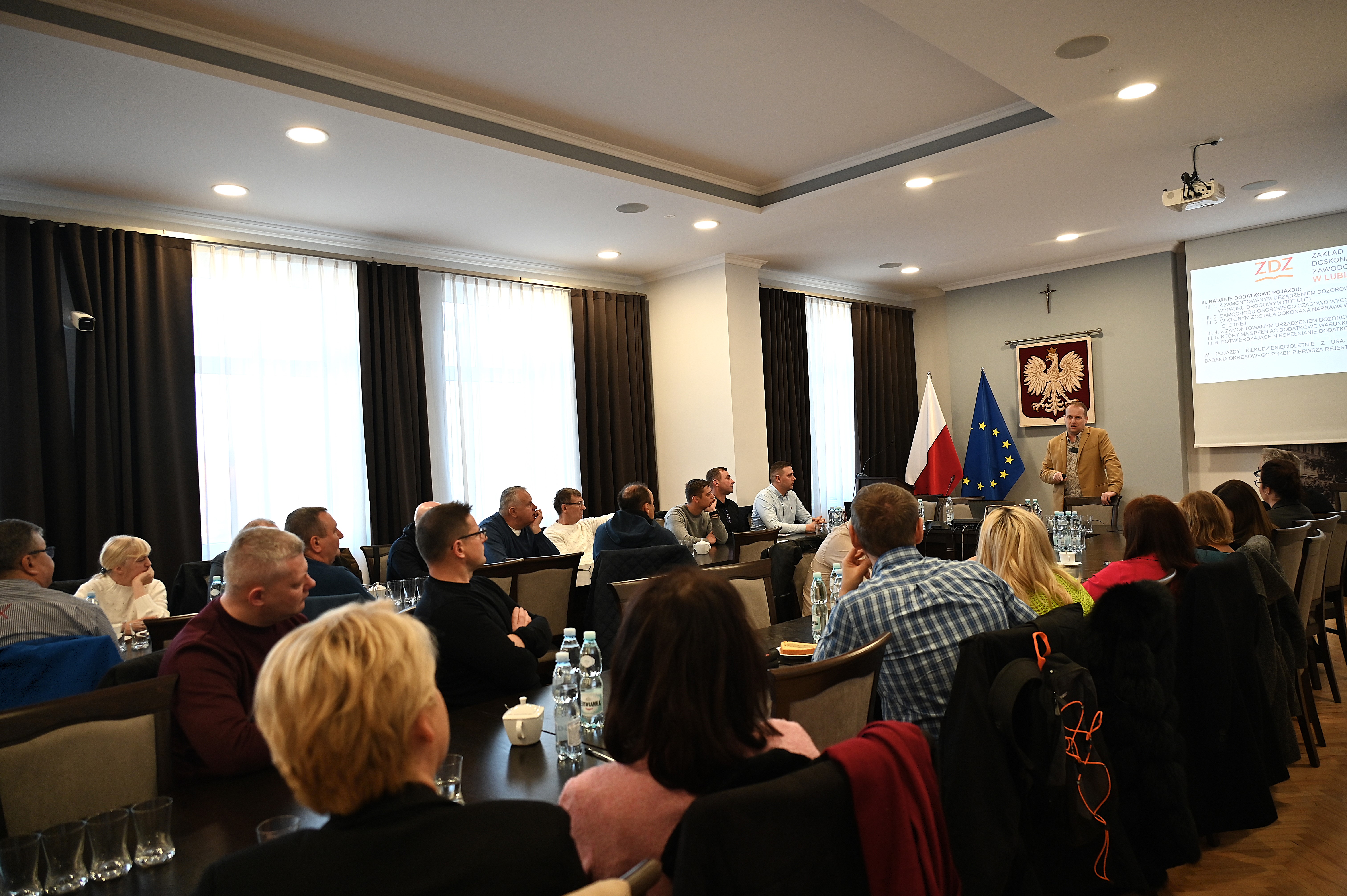 Szkolenie prowadzi Krzysztof Wlizło, główny specjalista Wydziału Komunikacji z Lublina, odpowiedzialny za nadzór nad stacjami kontroli pojazdów, szkolenie kierowców oraz pracę diagnostów. W sali narad zgromadzili się przedstawiciele wydziałów komunikacji ze starostw w: Jarosławiu, Przemyślu, Rzeszowie, Przeworsku i Lubaczowie, a także diagności reprezentujący stacje kontroli pojazdów z powiatów: jarosławskiego, lubaczowskiego, przeworskiego i przemyskiego. W trakcie wydarzenia poruszane są kluczowe zagadnienia związane z prawidłowym przeprowadzaniem badań technicznych. Szczególną uwagę prelegenci poświęcają najczęściej występującym nieprawidłowościom wykrywanym podczas kontroli, aktualnym przepisom prawnym oraz zmianom w nadzorze nad stacjami diagnostycznymi. Podkreślana jest również istotna rola współpracy między urzędami a diagnostami w zapewnieniu bezpieczeństwa na drogach.