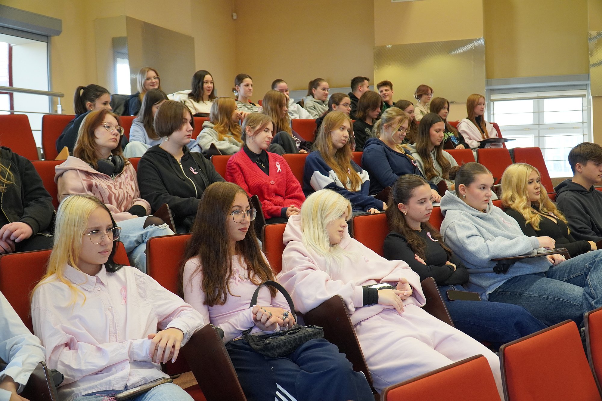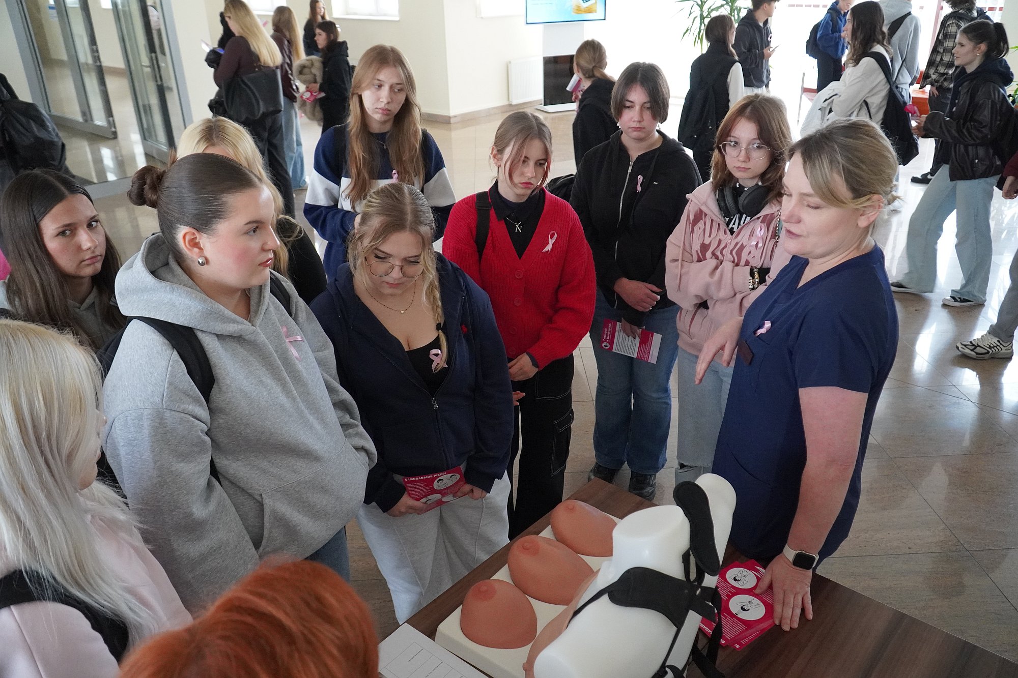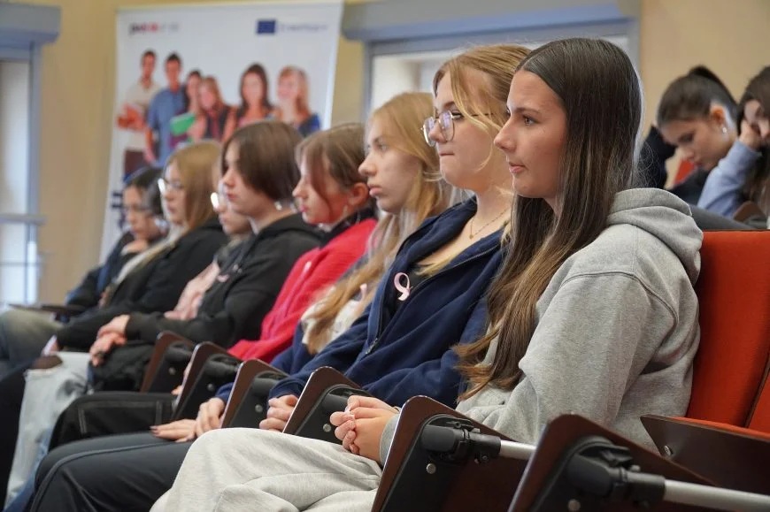Integralną częścią wydarzenia były warsztaty praktyczne z samobadania piersi, w których wzięli udział uczniowie jarosławskich szkół ponadpodstawowych. To właśnie oni – młodzi, ciekawi świata ludzie, mieli okazję przekonać się, że troska o zdrowie zaczyna się od świadomości i codziennych, prostych nawyków.