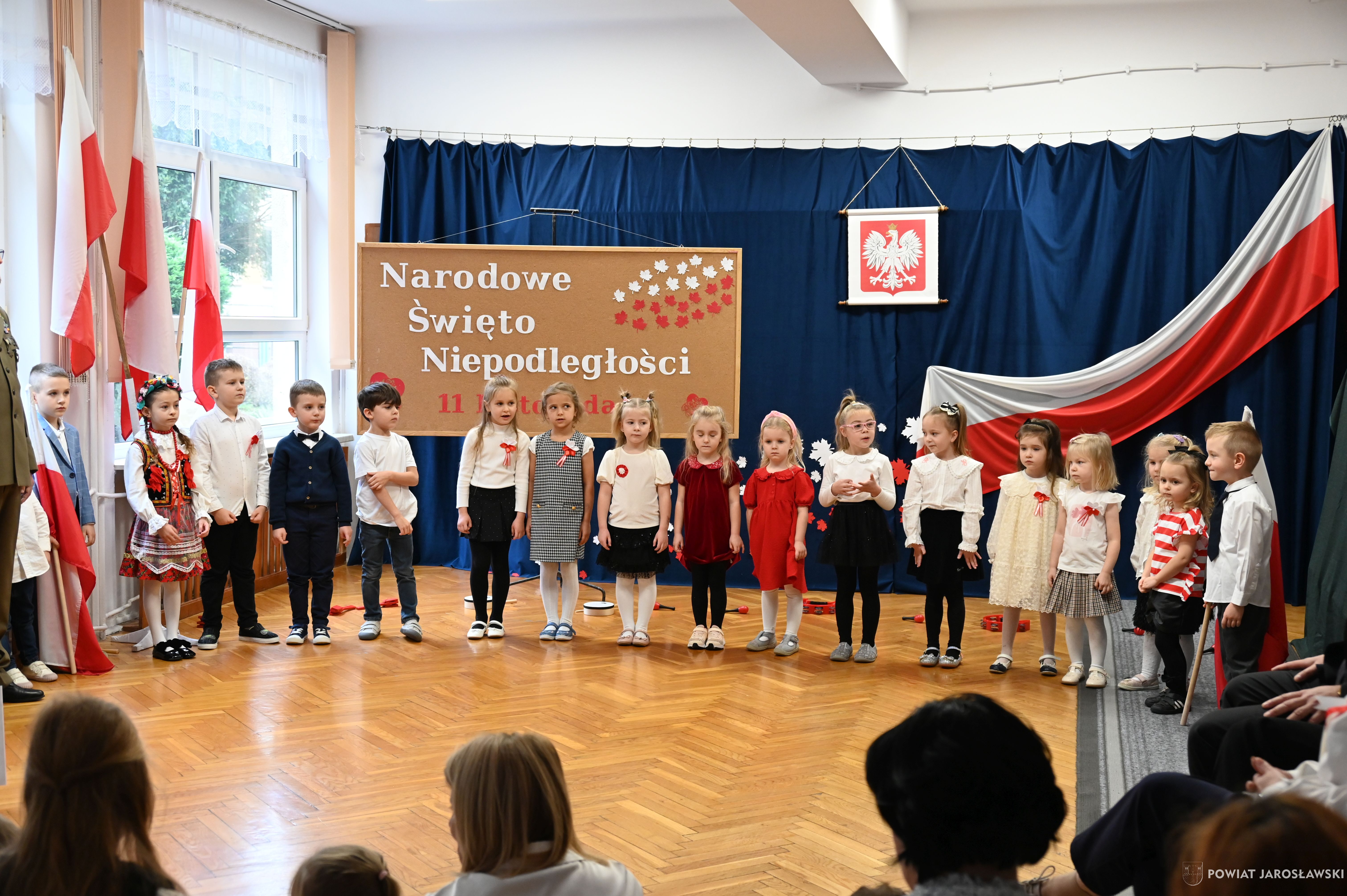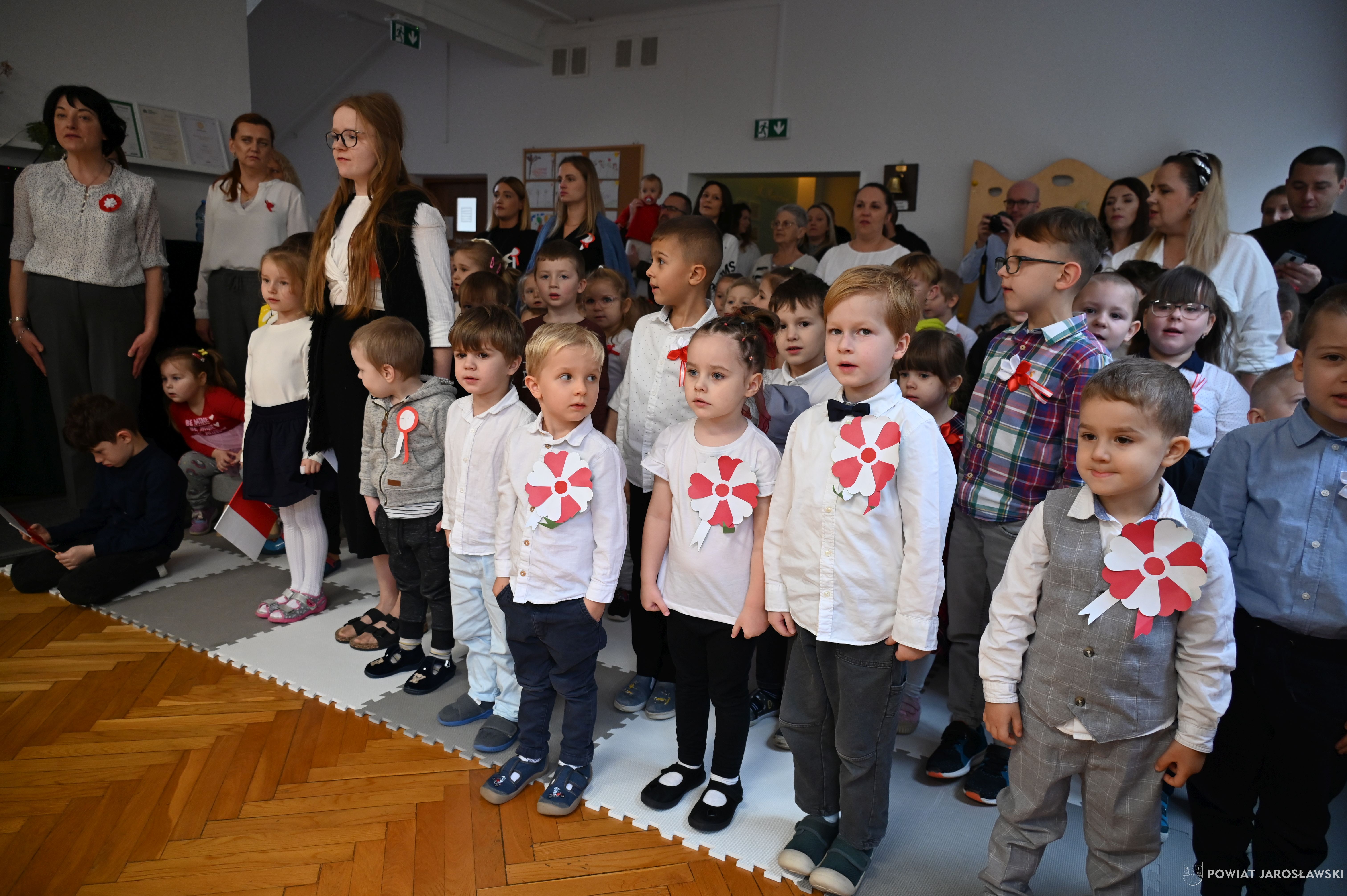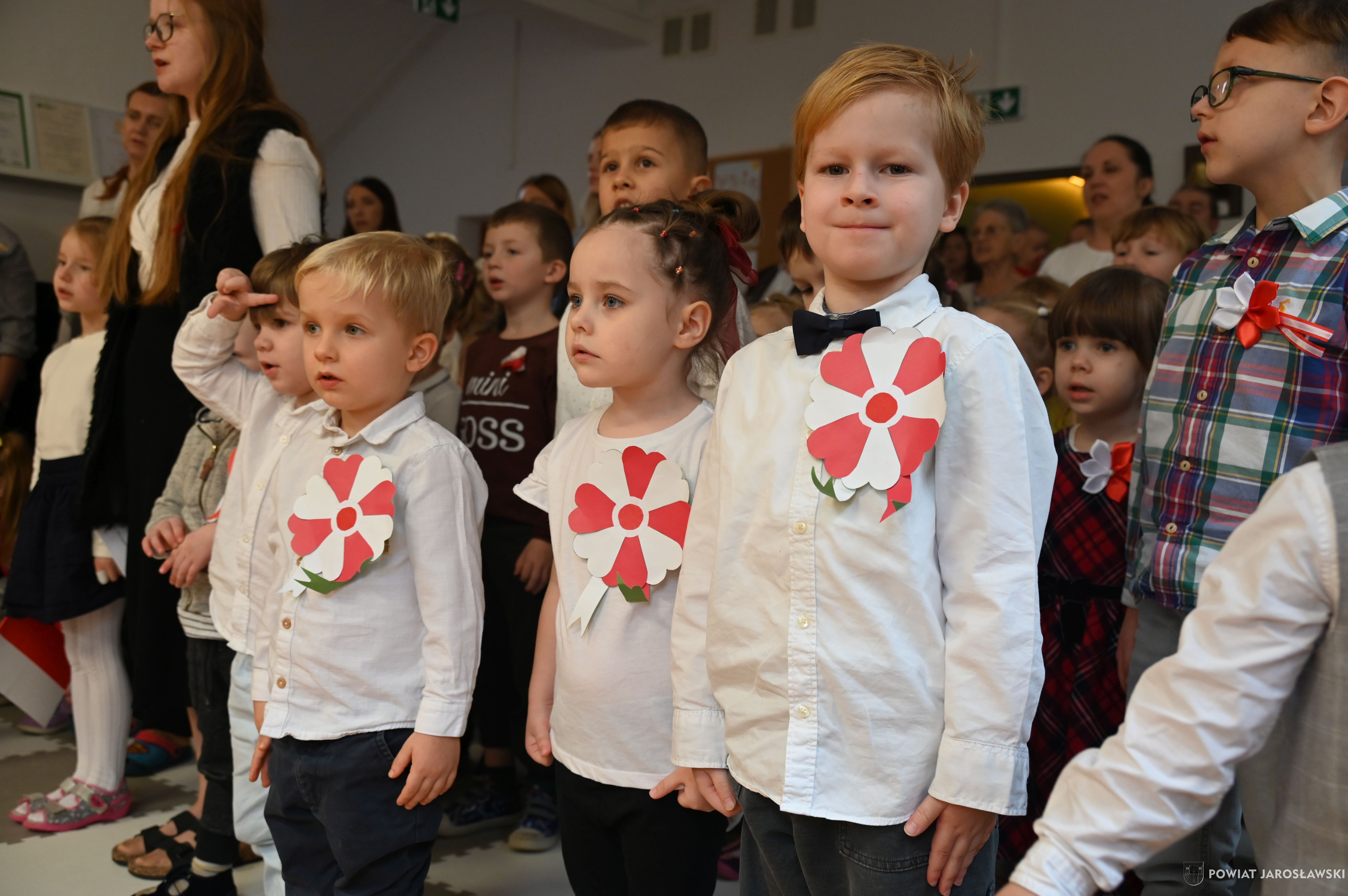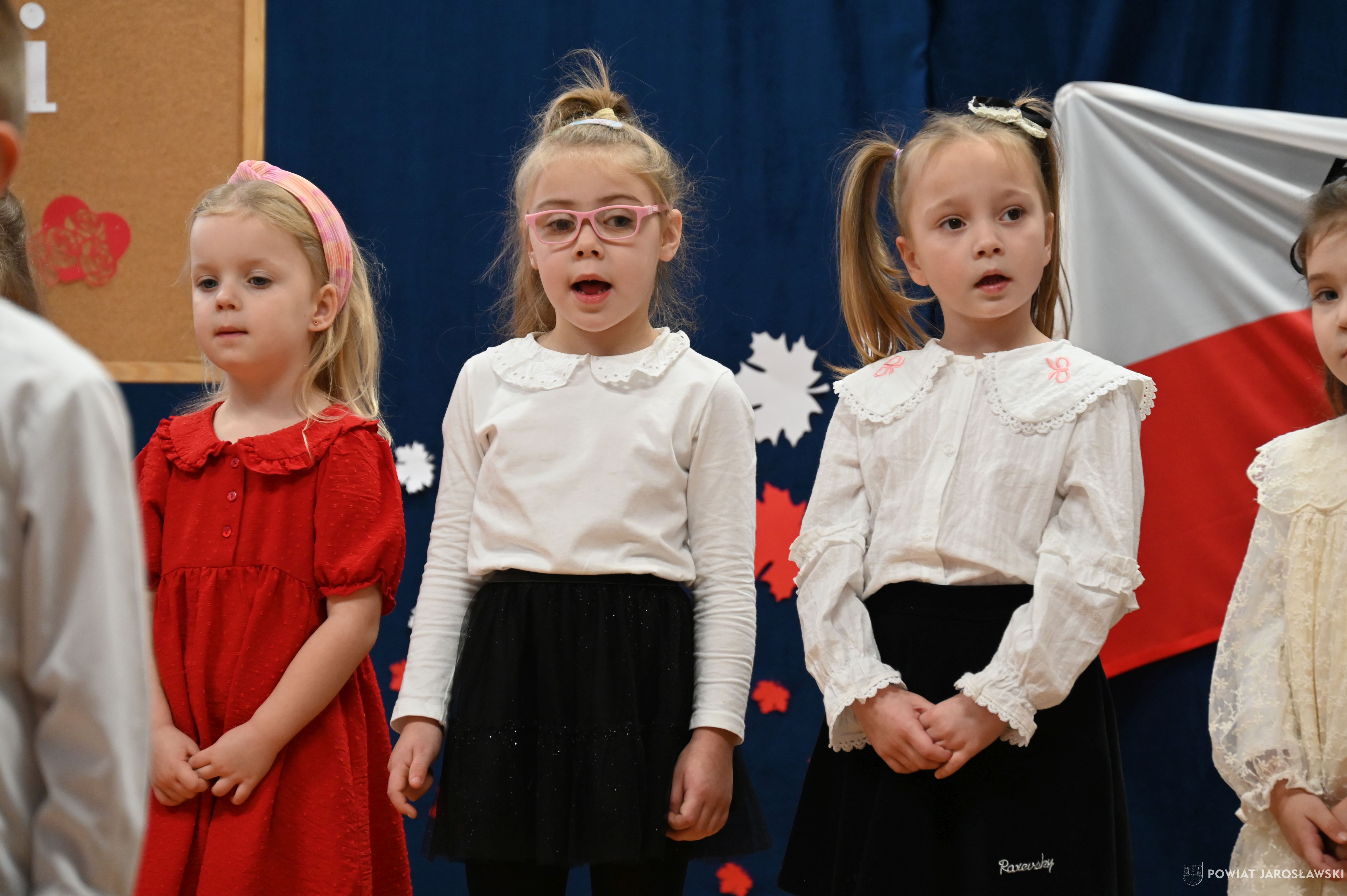 Urocze przedszkolaki z ogromnym zaangażowaniem zaprezentowały piękny program artystyczny – pełen patriotycznych pieśni, wierszy i wzruszeń.