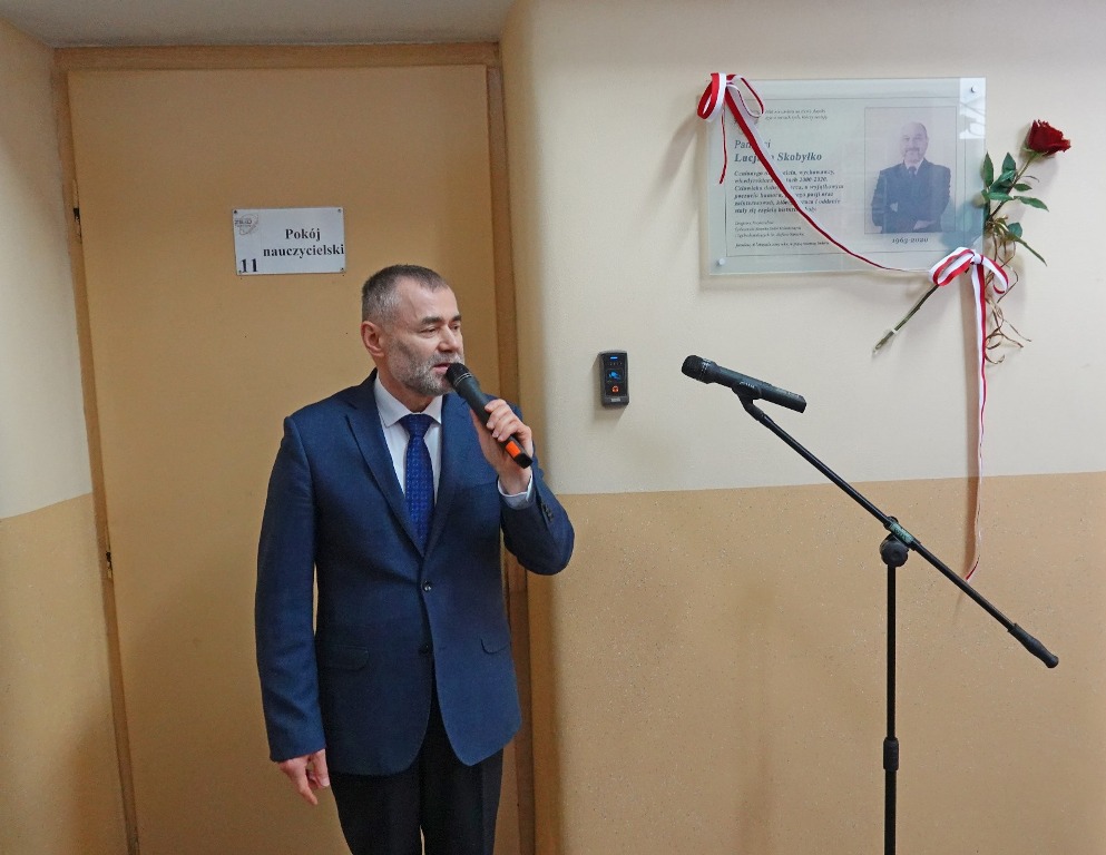 Sylwetkę Lucjana Skobyłko we wzruszających, pełnych ciepła słowach wspominali dyrektor szkoły Adam Tomaszewski oraz emerytowana wicedyrektor Agata Ząbkiewicz. Tablicę odsłonili najbliżsi członkowie rodziny zmarłego.