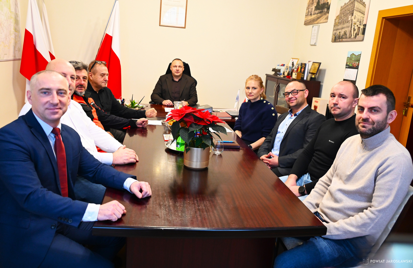 W czwartek, 11 grudnia w gabinecie starosty jarosławskiego Kamila Dziukiewicza spotkali się: włodarz powiatu, wiceburmistrz Jarosławia Magdalena Lehnart, radny miejski Jakub Bukowski oraz przedstawiciele zespołów ratownictwa medycznego: Sławomir Aksamit, Jacek Haloszka, Tomasz Pelc i Jarosław Koszuła, którym towarzyszył dyrektor Wojewódzkiej Stacji Pogotowia Ratunkowego w Przemyślu Rafał Kijanka.