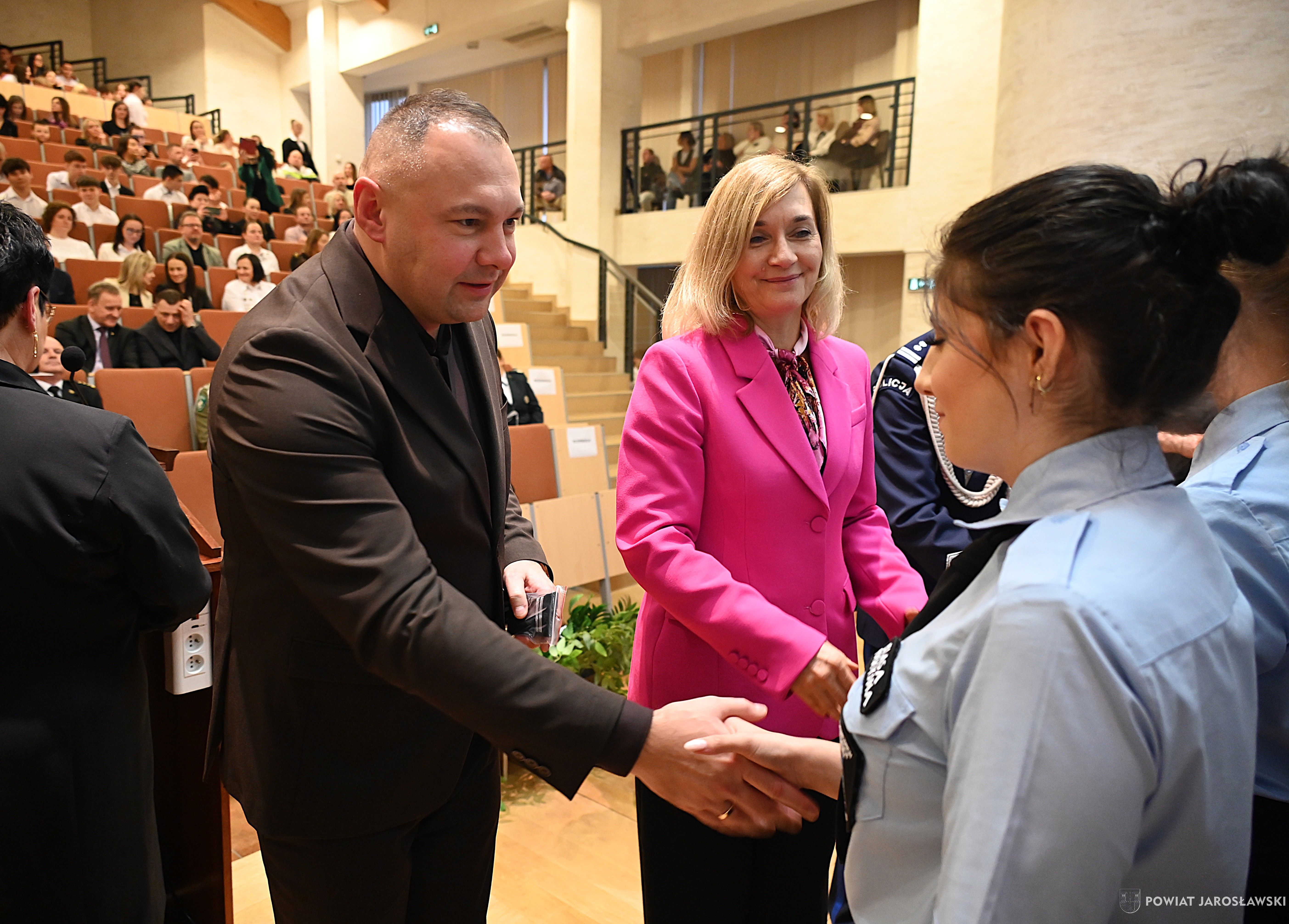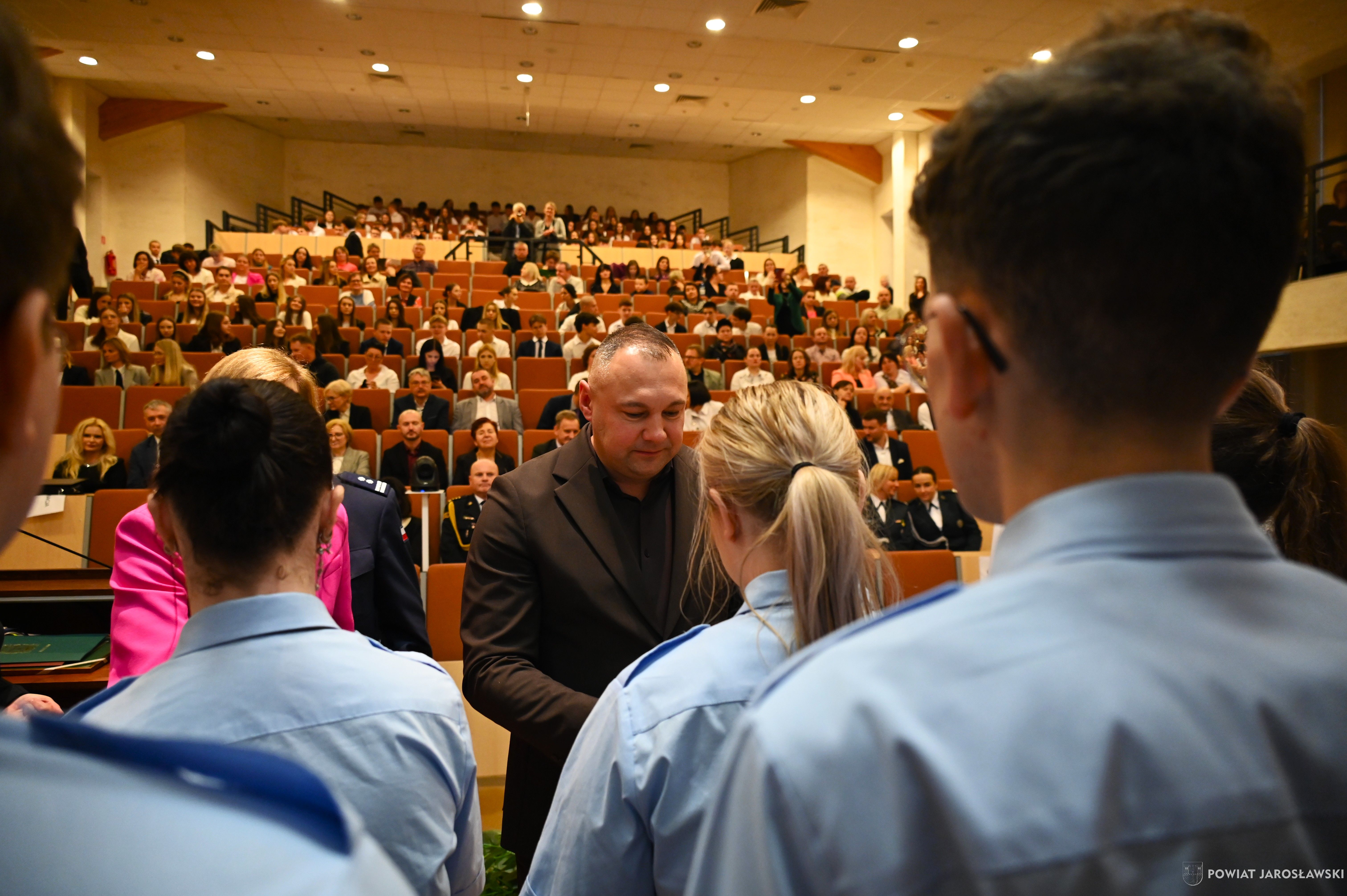Perfekcyjnie przygotowaną uroczystość zdominowało wspomniane ślubowanie klasy mundurowej, któremu towarzyszyły szczególne emocje. Uczniowie zaprezentowali się wspaniale, z pełną powagą i pewnością siebie, udowadniając, że swoje marzenia o pracy w mundurze traktują z pełną odpowiedzialnością. Nie da się ukryć, że wydarzenie odbywające się w gościnnych murach Centrum Kultury Akademickiej PANS miało niezwykle elegancką oprawę. Były wzruszenia, uśmiechy, gratulacje i dużo pozytywnej energii, która udzieliła się wszystkim obecnym.