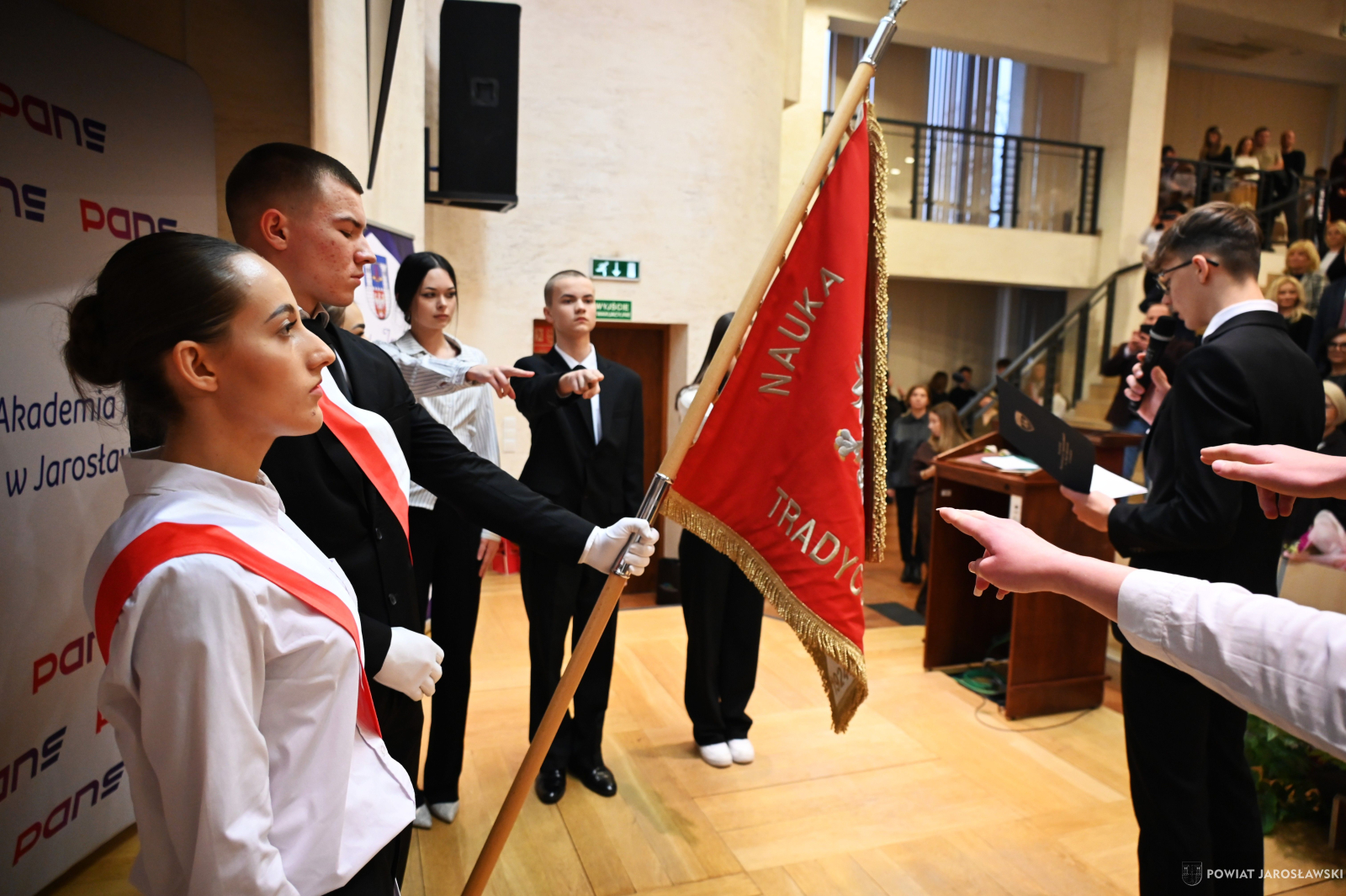 Dziś (11 bm.) w Państwowej Akademii Nauk Stosowanych w Jarosławiu czuć było podniosłość chwili. Klasa mundurowa Zespołu Szkół Ekonomicznych i Ogólnokształcących im. Marii Dąbrowskiej w Jarosławiu złożyła ślubowanie, a powaga niezwykle przejmującego dla naszej młodzieży momentu, idealnie oddawała znaczenie symbolicznego pasowania. Wydarzenie wpisało się w celebrowane w tym dniu Święto Szkoły i… miało ono absolutnie wszystko, co tworzy naprawdę udane wydarzenie – podniosły charakter, a jednocześnie – tak charakterystyczną dla naszego „Ekonomika” – wyjątkowo ciepłą, rzadko spotykaną atmosferę…