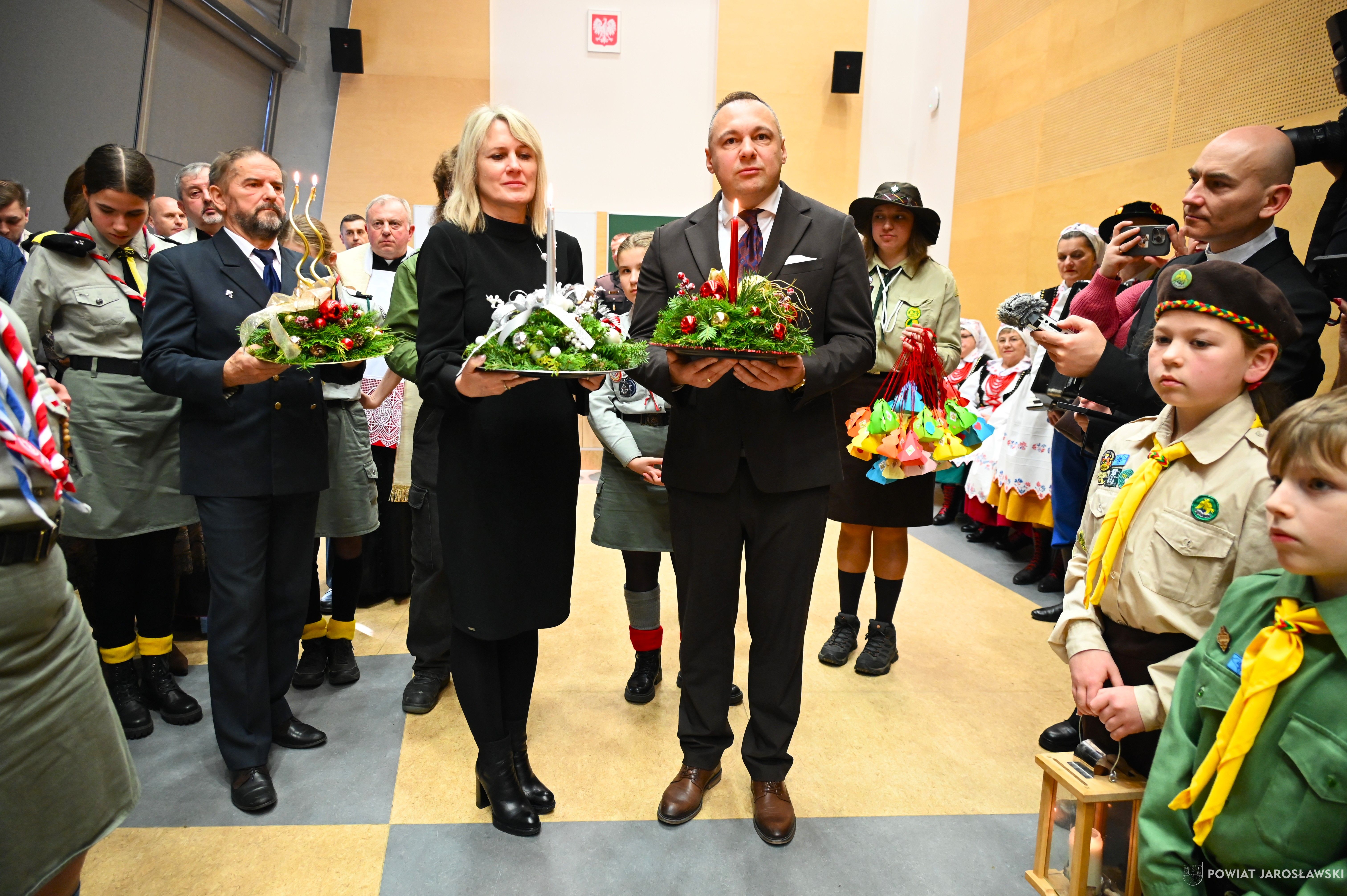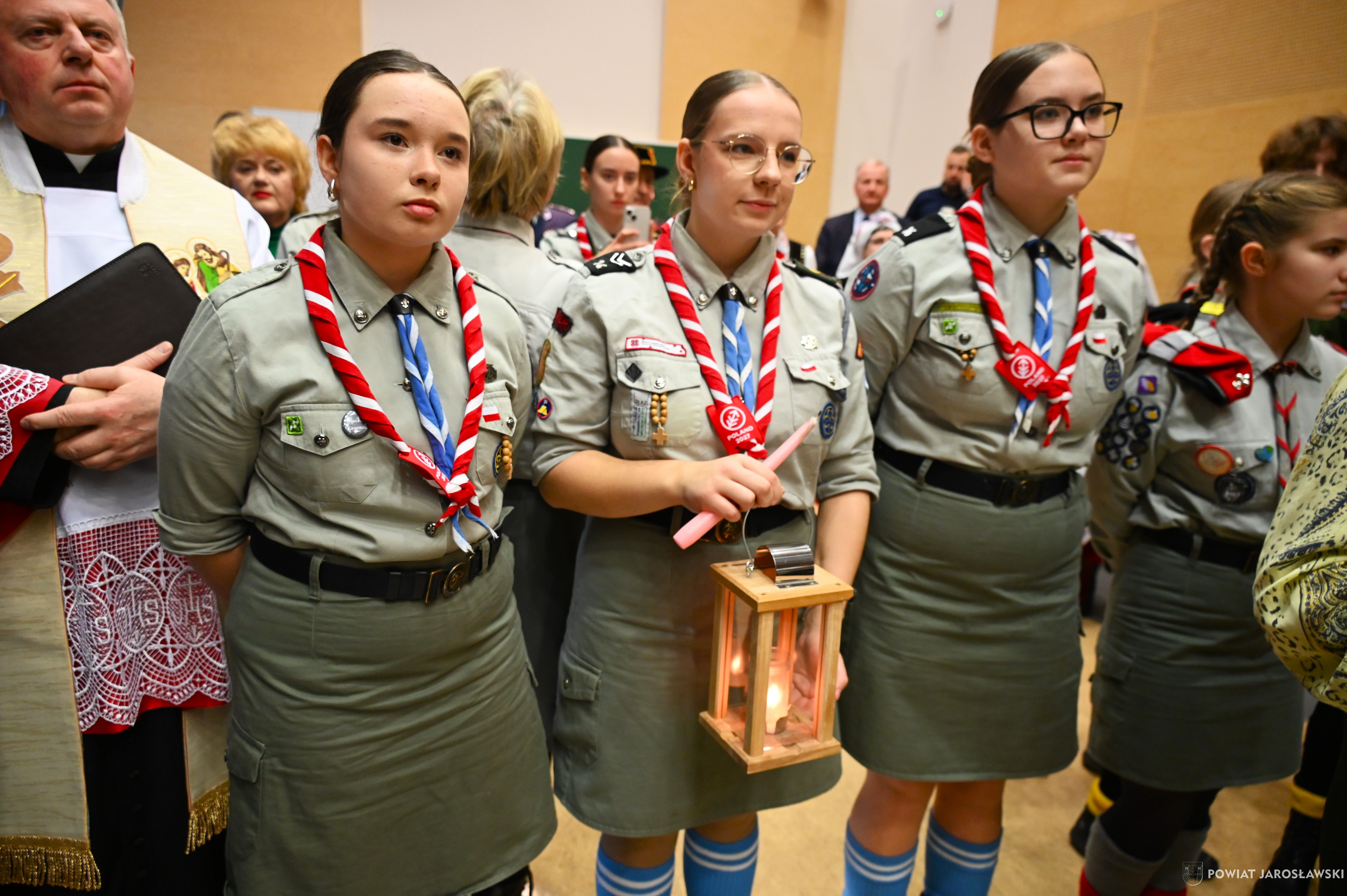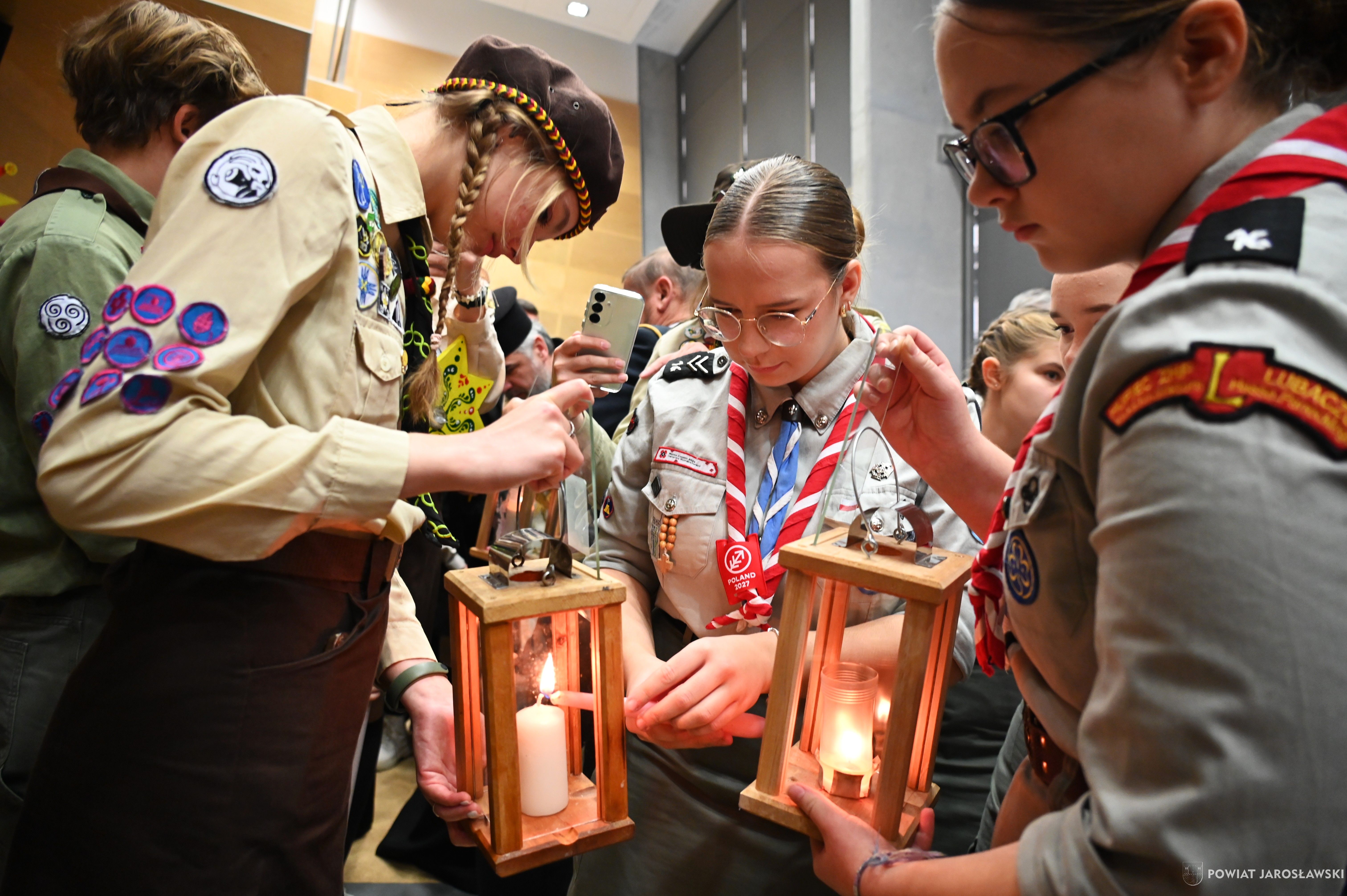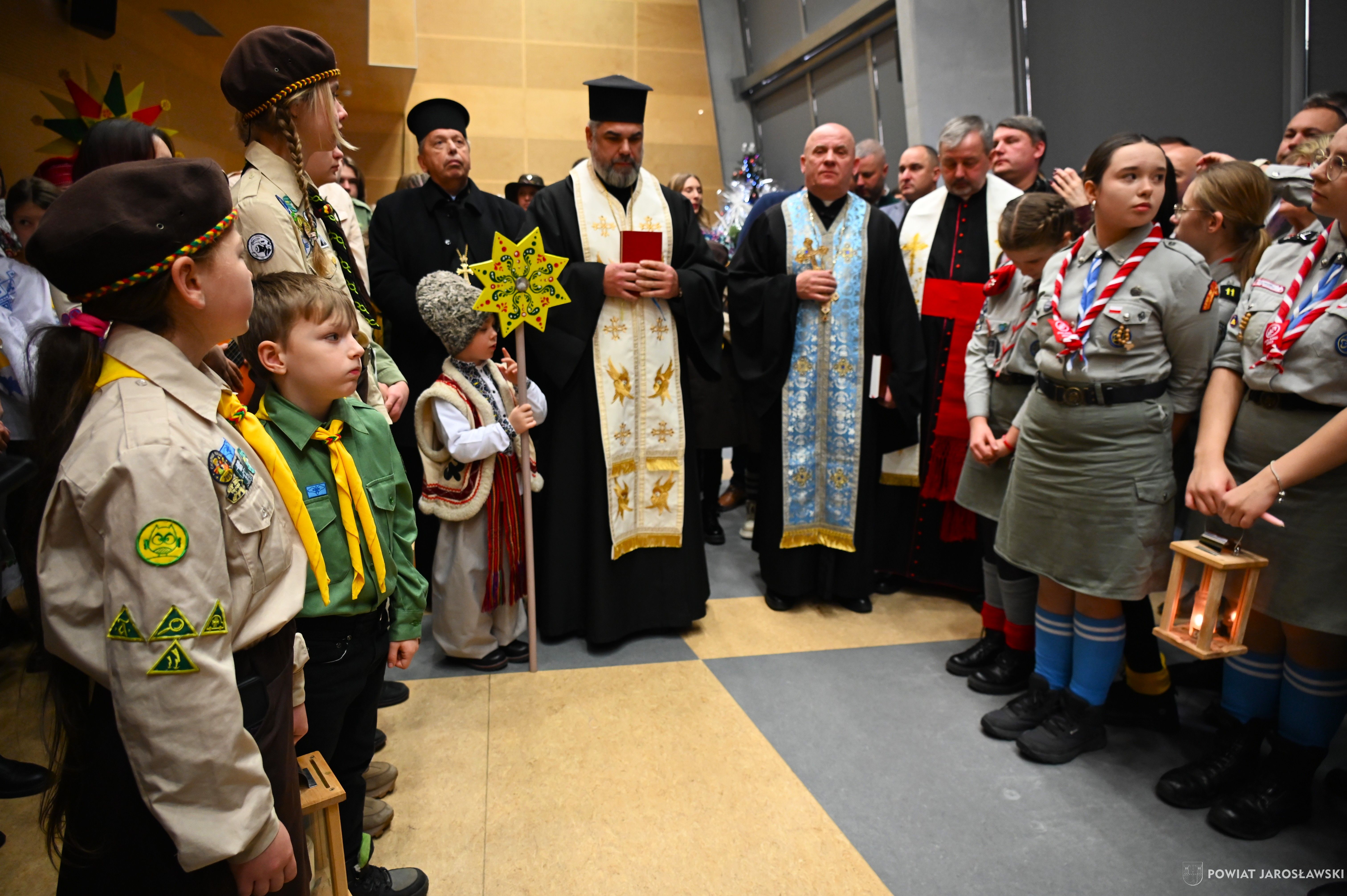 • Betlejemskie Światło Pokoju – dobro, które łączy ponad granicami. Historia Betlejemskiego Światła Pokoju od lat splata się z pograniczem, miejscem spotkania ludzi oraz kultur. To właśnie tutaj, na styku narodów, idea pokoju, braterstwa i wzajemnego zrozumienia nabiera szczególnego znaczenia. W tym roku powiatowa uroczystość przekazania Betlejemskiego Światła Pokoju odbyła się w Budomierzu, na granicy polsko-ukraińskiej, a jej gospodarzem był powiat lubaczowski. Tegoroczne wydarzenie przebiegało pod wymownym hasłem „Pielęgnuj dobro w sobie”, które w czasie trwających napięć i konfliktów wybrzmiewa wyjątkowo mocno... Betlejemskie Światło Pokoju zapalone w Grocie Narodzenia Pańskiego w Betlejem, od blisko 40 lat przemierza drogę przez Europę, niosąc przesłanie nadziei i pojednania. Niezmiennie, światło dociera do kolejnych krajów, przypominając, że pokój zaczyna się w sercu każdego z nas... Podczas uroczystości w Budomierzu polscy harcerze i skauci, samorządowcy, przedstawiciele służb oraz zaproszeni goście wspólnie przekazali płomień miłości i nadziei przyjaciołom z Ukrainy. Wydarzenie było wyrazem solidarności, wzajemnego wsparcia oraz kontynuacją wieloletniej tradycji współpracy transgranicznej. Powiat jarosławski reprezentował jego włodarz - starosta jarosławski Kamil Dziukiewicz, któremu towarzyszyła radna powiatu Agnieszka Pieniążek. Obecność przedstawicieli obu narodów była dowodem na to, że mimo różnic i trudnych doświadczeń, możliwe jest spotkanie oparte na szacunku i wspólnych wartościach. Tegoroczne hasło  „Pielęgnuj dobro w sobie”  stało się nie tylko mottem uroczystości, ale także cichym apelem do wszystkich uczestników, by dobro, empatia i wrażliwość na drugiego człowieka towarzyszyły codziennym decyzjom i działaniom. tekst, zdjęcia. Patrycja Strawa-Buryło