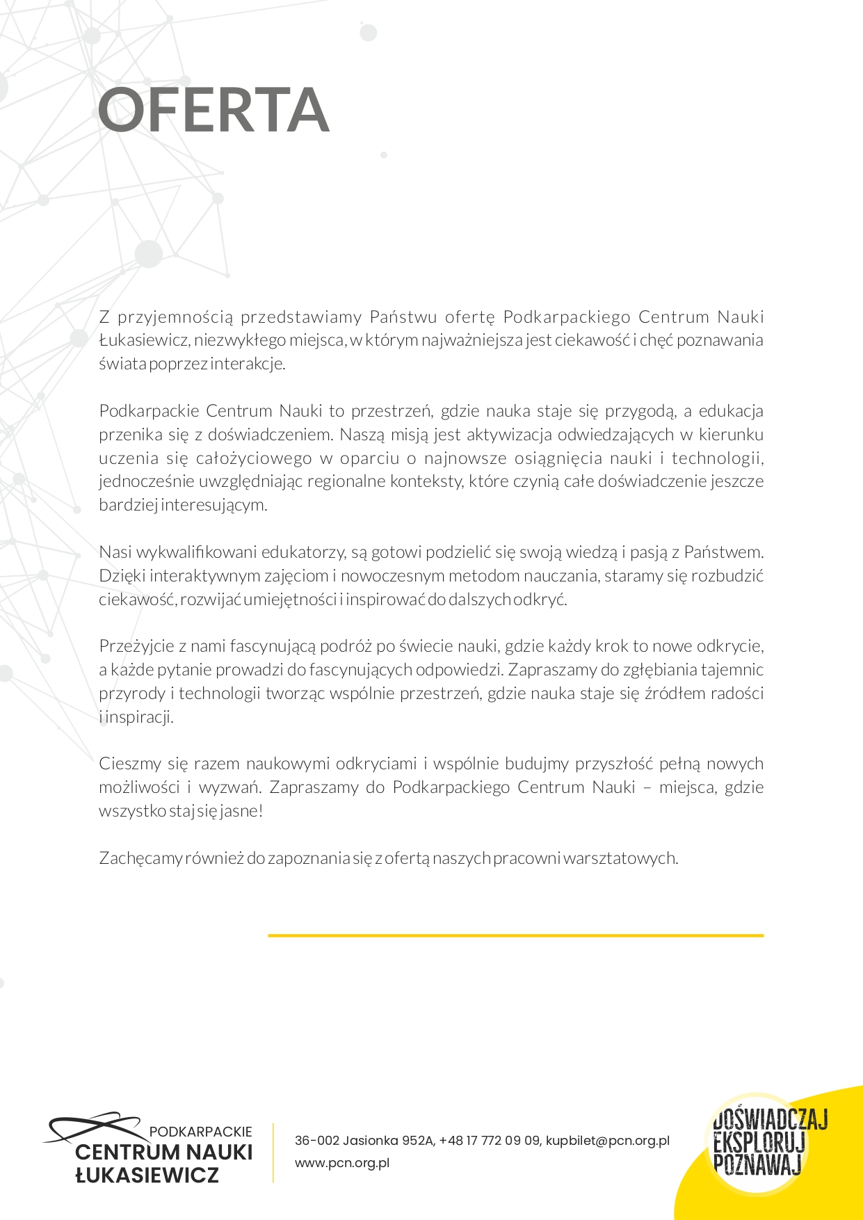 Zapraszamy do zapoznania się z ofertą. Szczegóły na stronie internetowej: https://pcn.org.pl