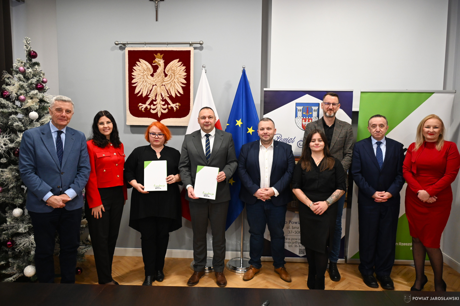 23 stycznia br. w sali narad Starostwa Powiatowego w Jarosławiu została podpisana umowa z Fundacją Leroy Merlin z siedzibą w Warszawie. Dokument formalizuje współpracę, której główną ideą jest wsparcie działań pomocowych na rzecz uchodźców z Ukrainy przebywających na terenie powiatu jarosławskiego. W wydarzeniu uczestniczyli starosta jarosławski Kamil Dziukiewicz, członek Zarządu Powiatu Jarosławskiego Andrzej Wyczawski oraz dyrektor Zespołu Placówek Oświatowo-Wychowawczych w Jarosławiu Bartłomiej Kordas, a także naczelnik Wydziału Edukacji i Spraw Społecznych jarosławskiego starostwa Monika Maziarz, naczelnik Wydziału Rozwoju i Promocji Powiatu Agata Godos.