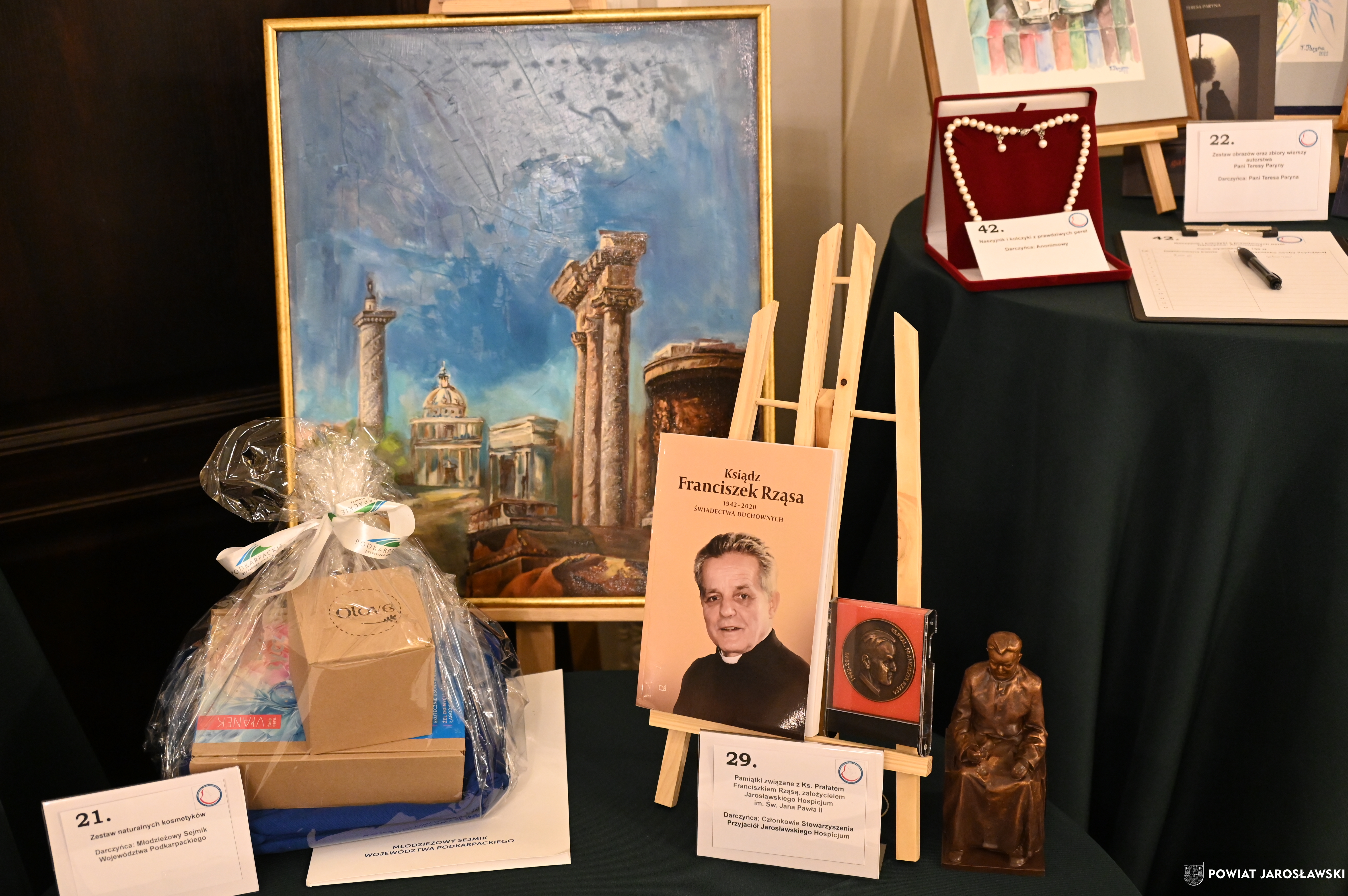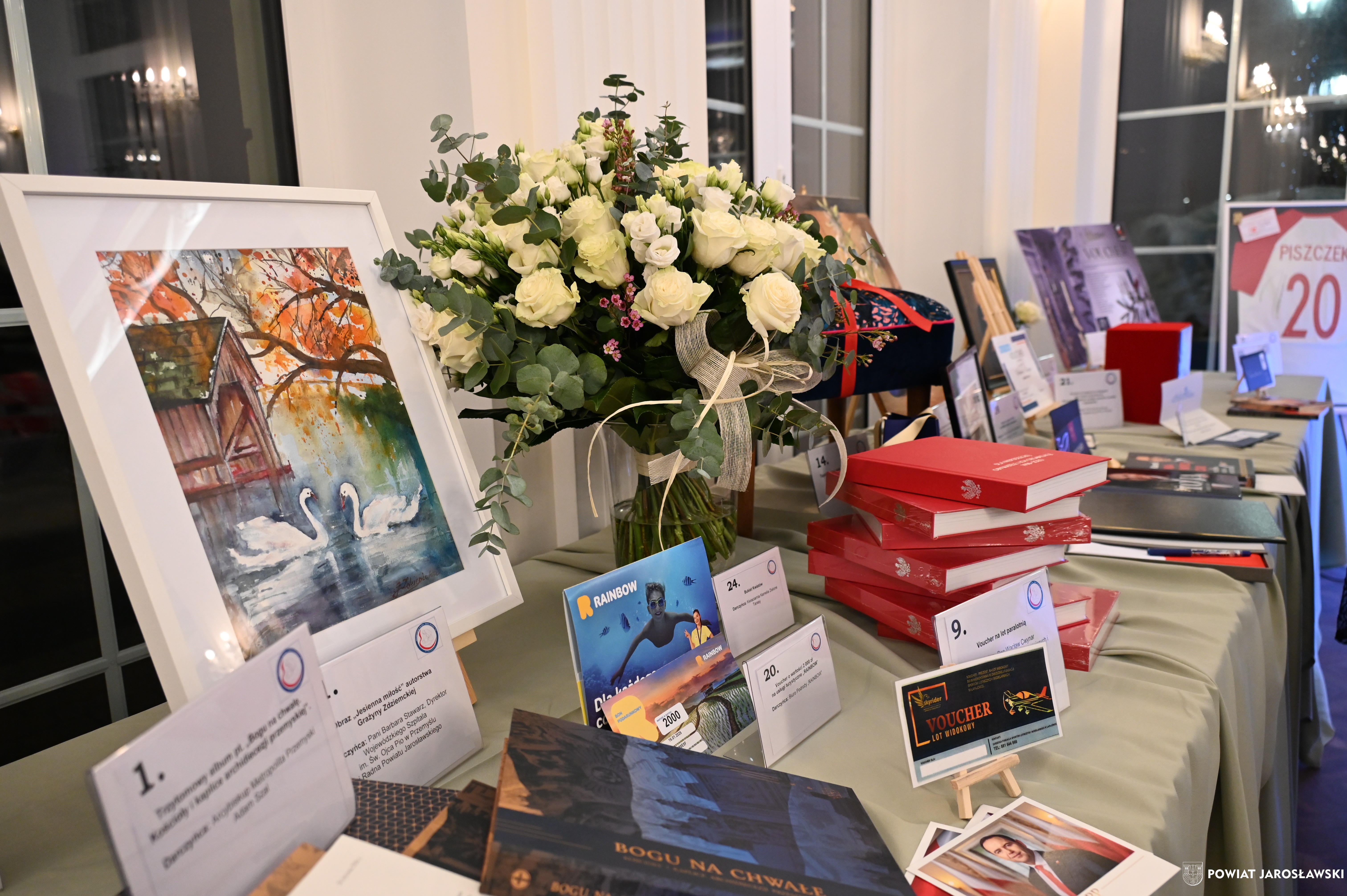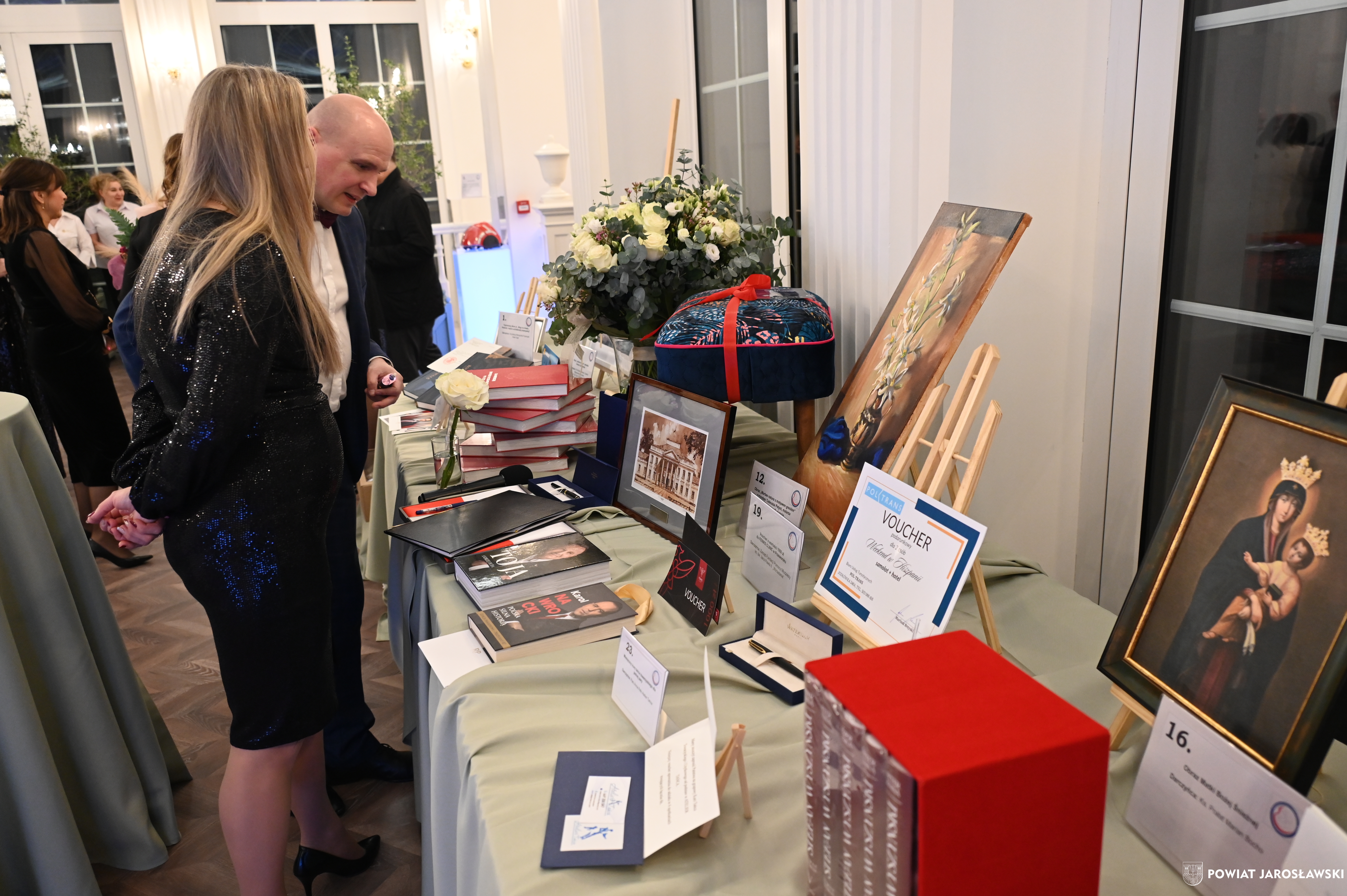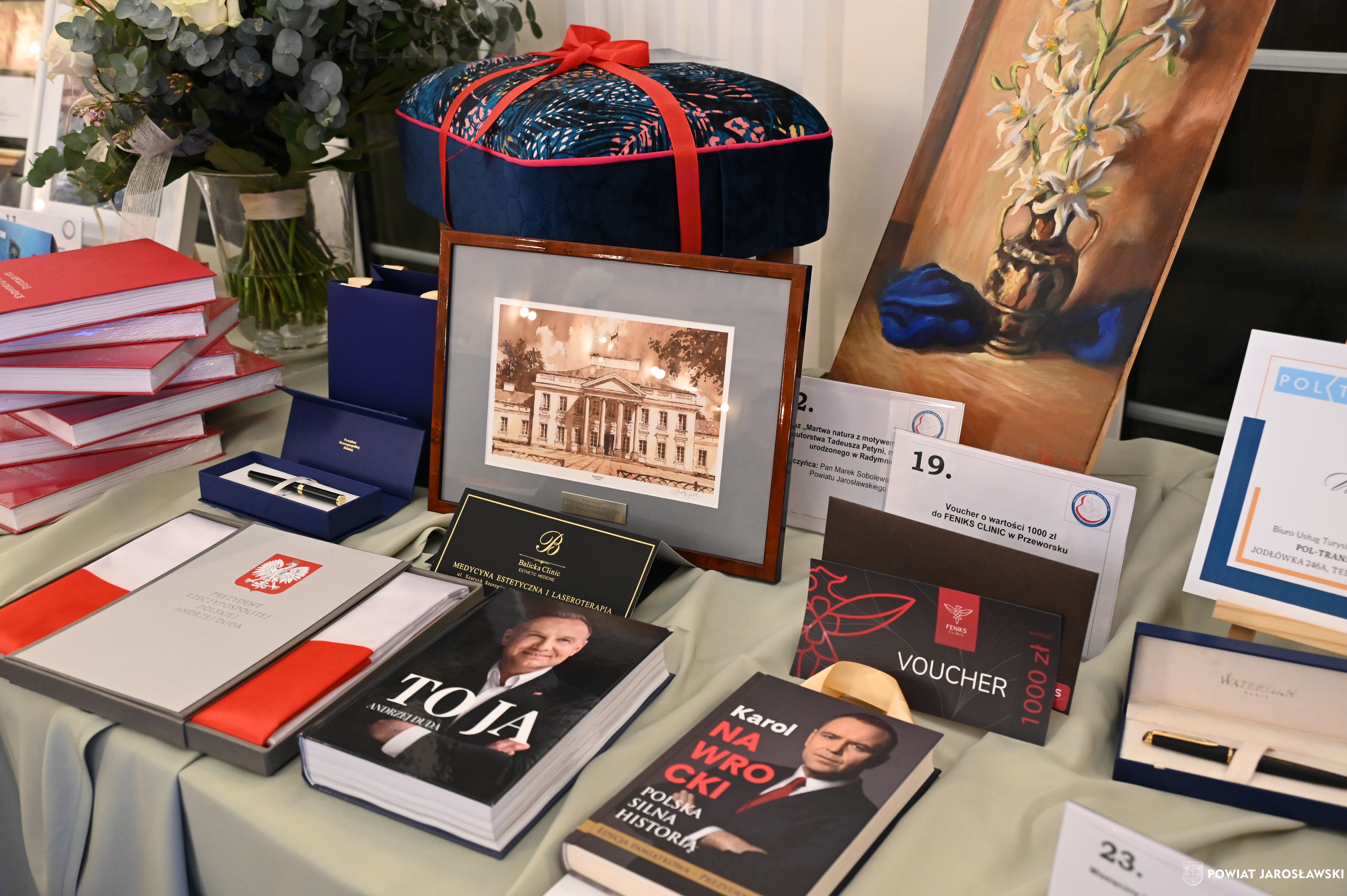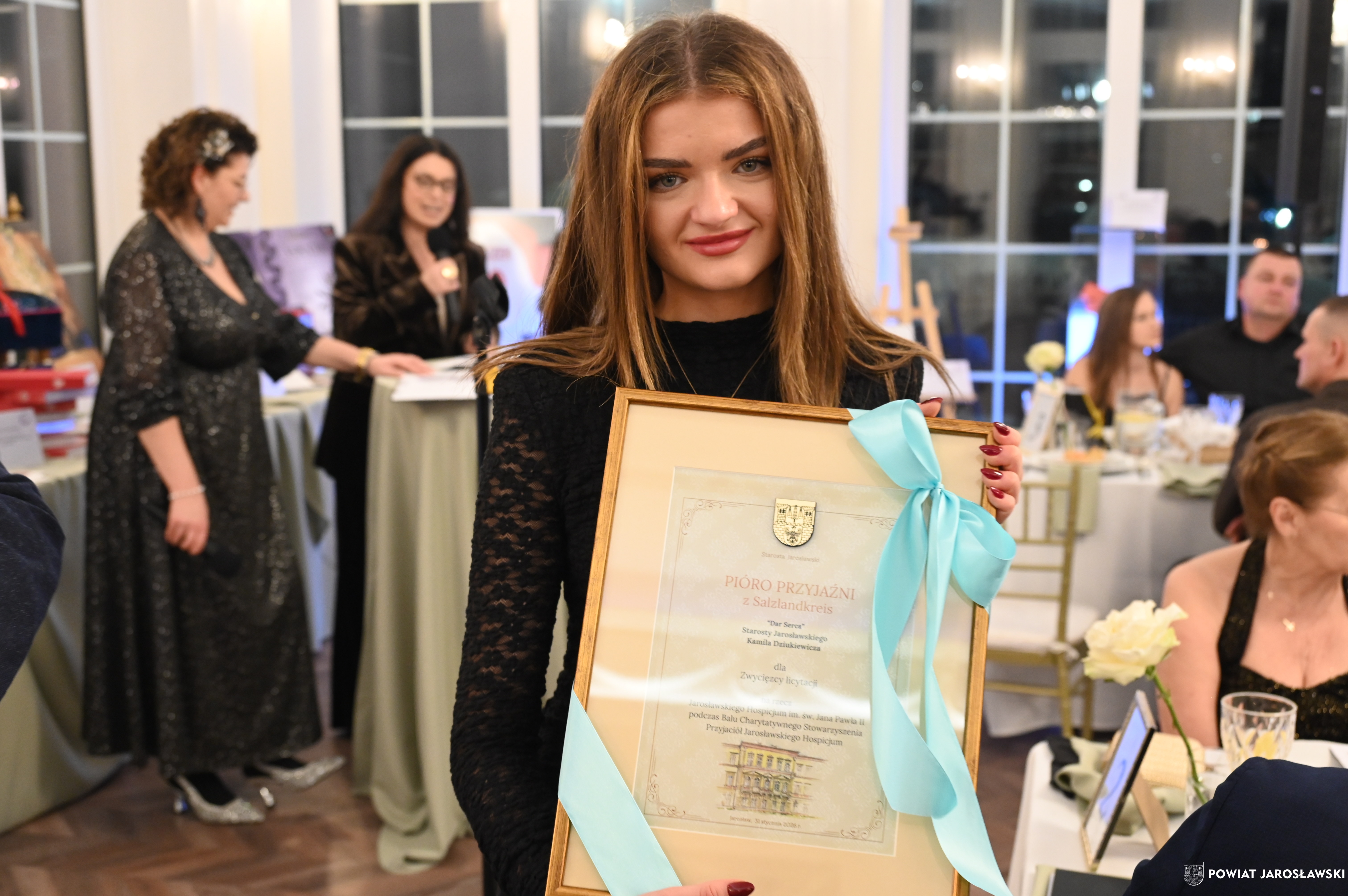 Podczas wydarzenia uczestnikom towarzyszyła znakomita muzyka zespołu Efekt, a organizatorzy zadbali o wyjątkową atmosferę, wyśmienitą kuchnię oraz liczne atrakcje, w tym licytacje i loterię fantową. Szczególnym zainteresowaniem cieszyła się licytacja cennych przedmiotów, przekazanych nań przez przyjaciół stowarzyszenia. Wśród nich znalazło się „Pióro Przyjaźni” – przekazane przez starostę jarosławskiego Kamila Dziukiewicza (wylicytowane za 4 tysiące złotych!). Przedmiot ów, przywieziony z oficjalnej wizyty delegacji powiatu jarosławskiego w partnerskim powiecie Salzlandkreis w Niemczech w lipcu 2025 roku, jest symbolem wieloletniej współpracy i dobrych relacji międzynarodowych naszego powiatu z zagranicznymi destynacjami partnerskimi.