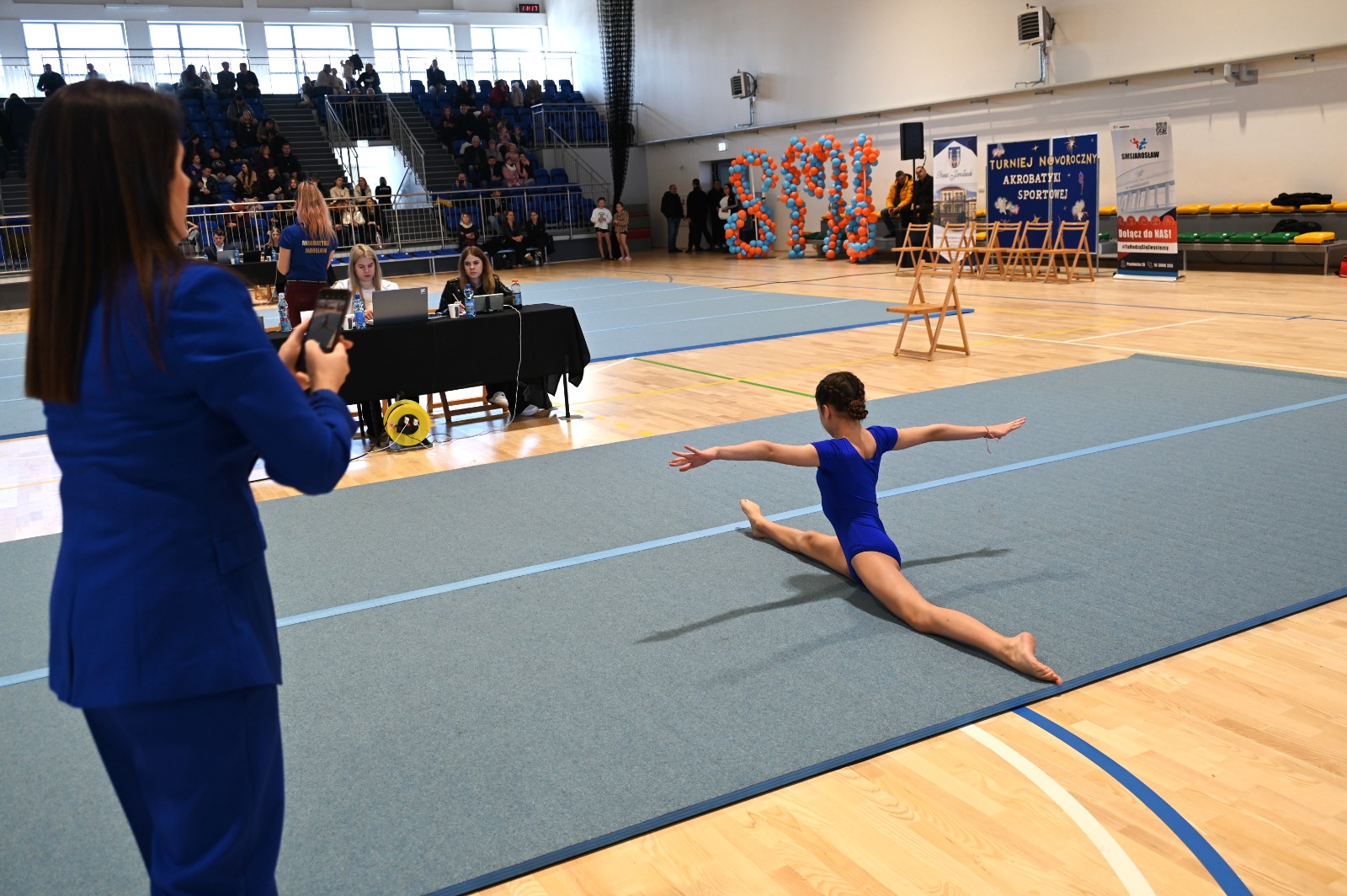 Hala sportowo-widowiskowa jarosławskiego MOSiR-u wypełniła się dzisiaj niespożytą, młodą energią. Startujący w turnieju zawodnicy i zawodniczki zaprezentowali dopieszczone w każdym detalu choreografie, precyzyjne elementy techniczne, siłę, gibkość, lekkość ruchu oraz niesamowitą synchronizację, udowadniając że akrobatyka sportowa to połączenie ciężkiej pracy, talentu, determinacji i artystycznej wrażliwości.