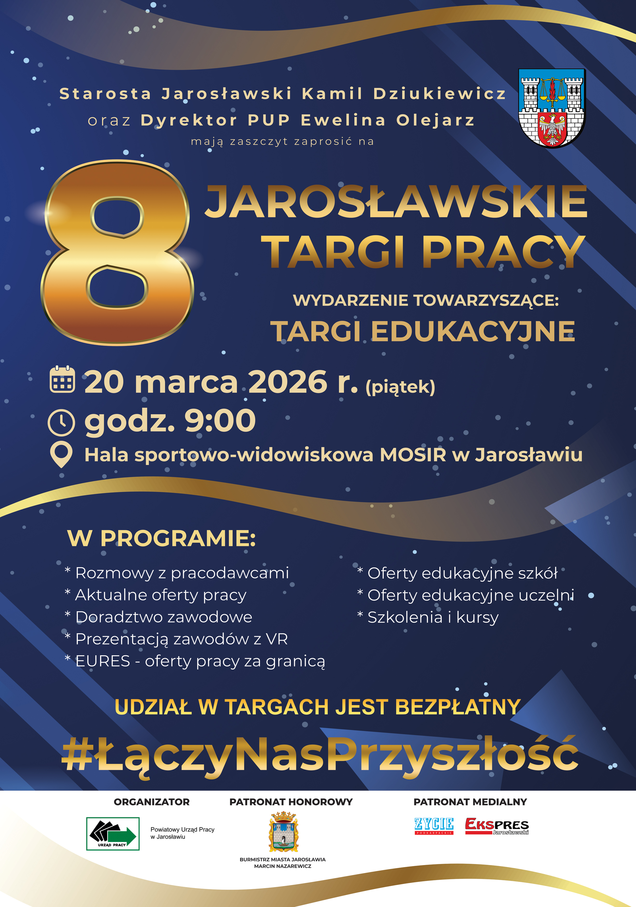 W tym roku spotykamy się w nowym miejscu w świeżo wyremontowanej hali Miejskiego Ośrodka Sportu i Rekreacji w Jarosławiu. Startujemy 20 marca o godzinie 9.00, organizatorami wydarzenia są starosta jarosławski Kamil Dziukiewicz oraz dyrektor Powiatowego Urzędu Pracy Ewelina Olejarz.
