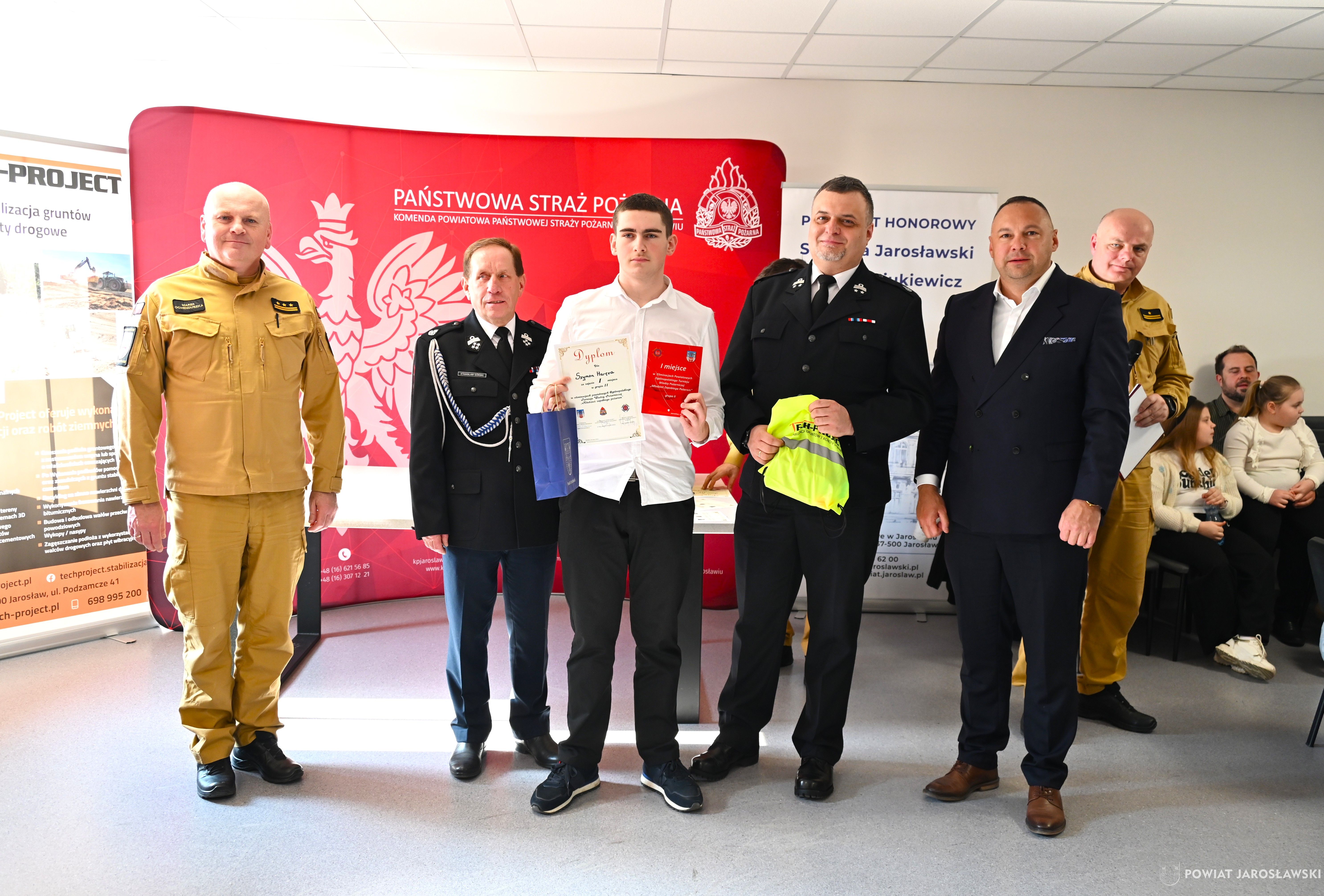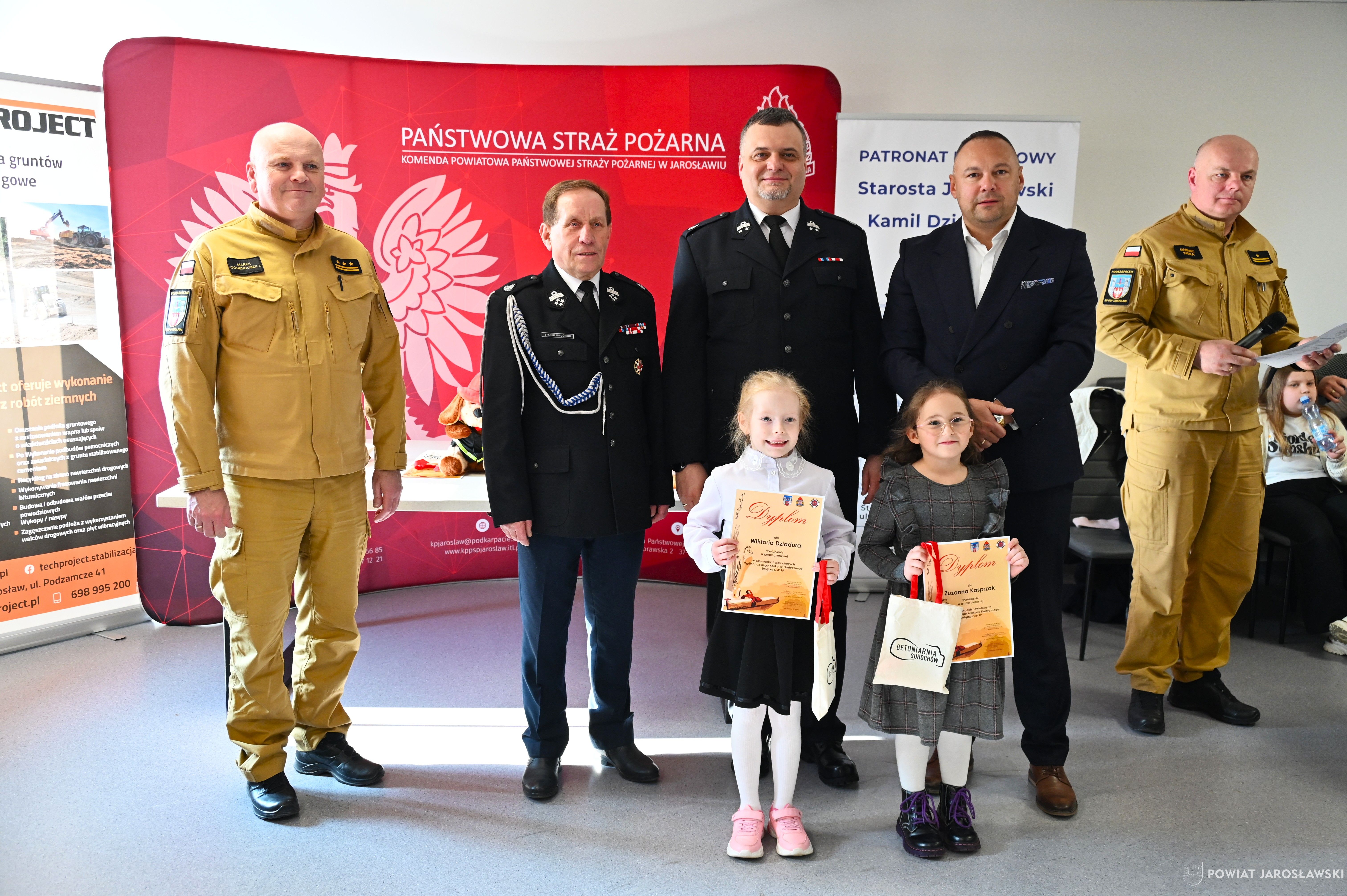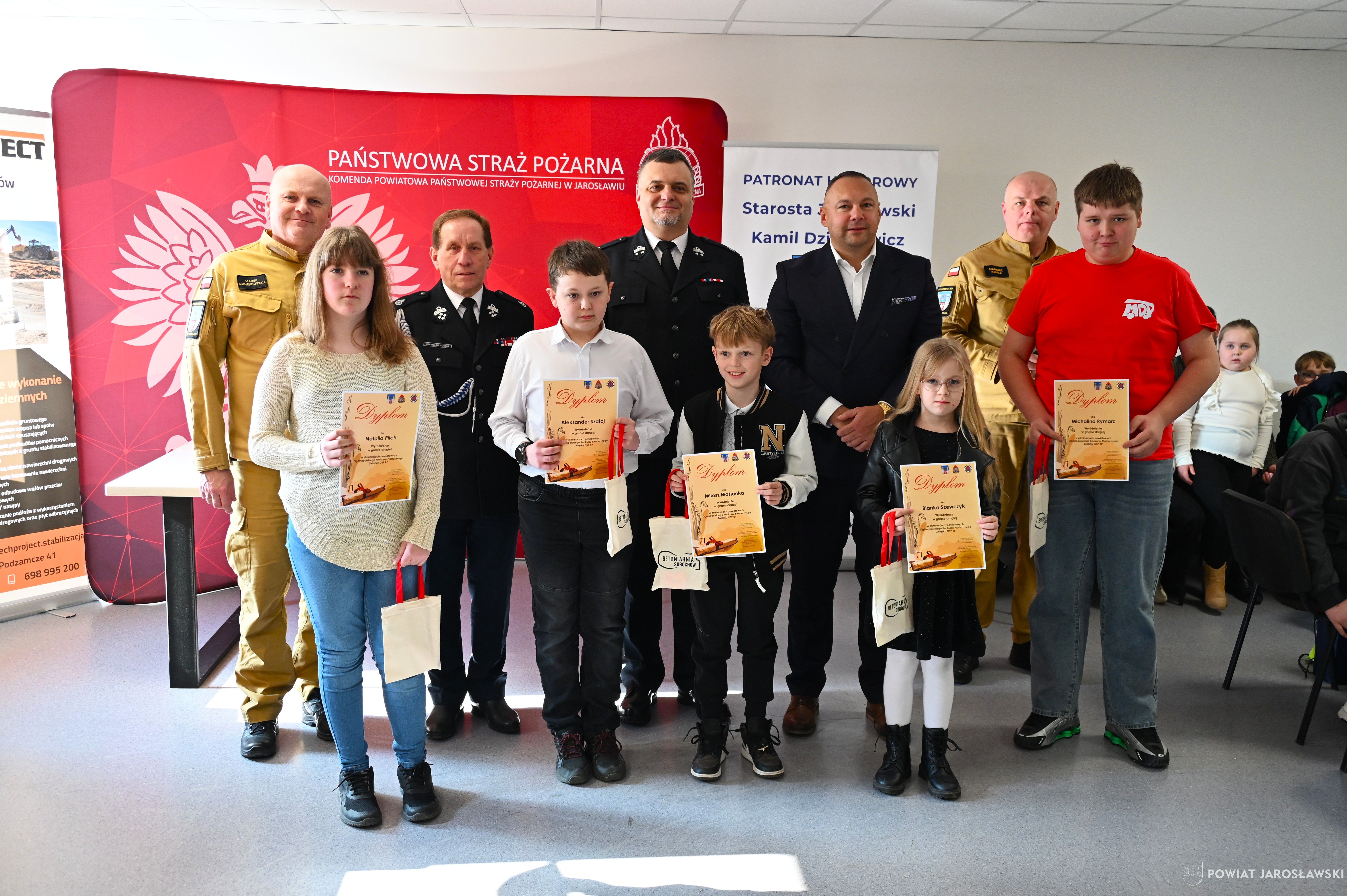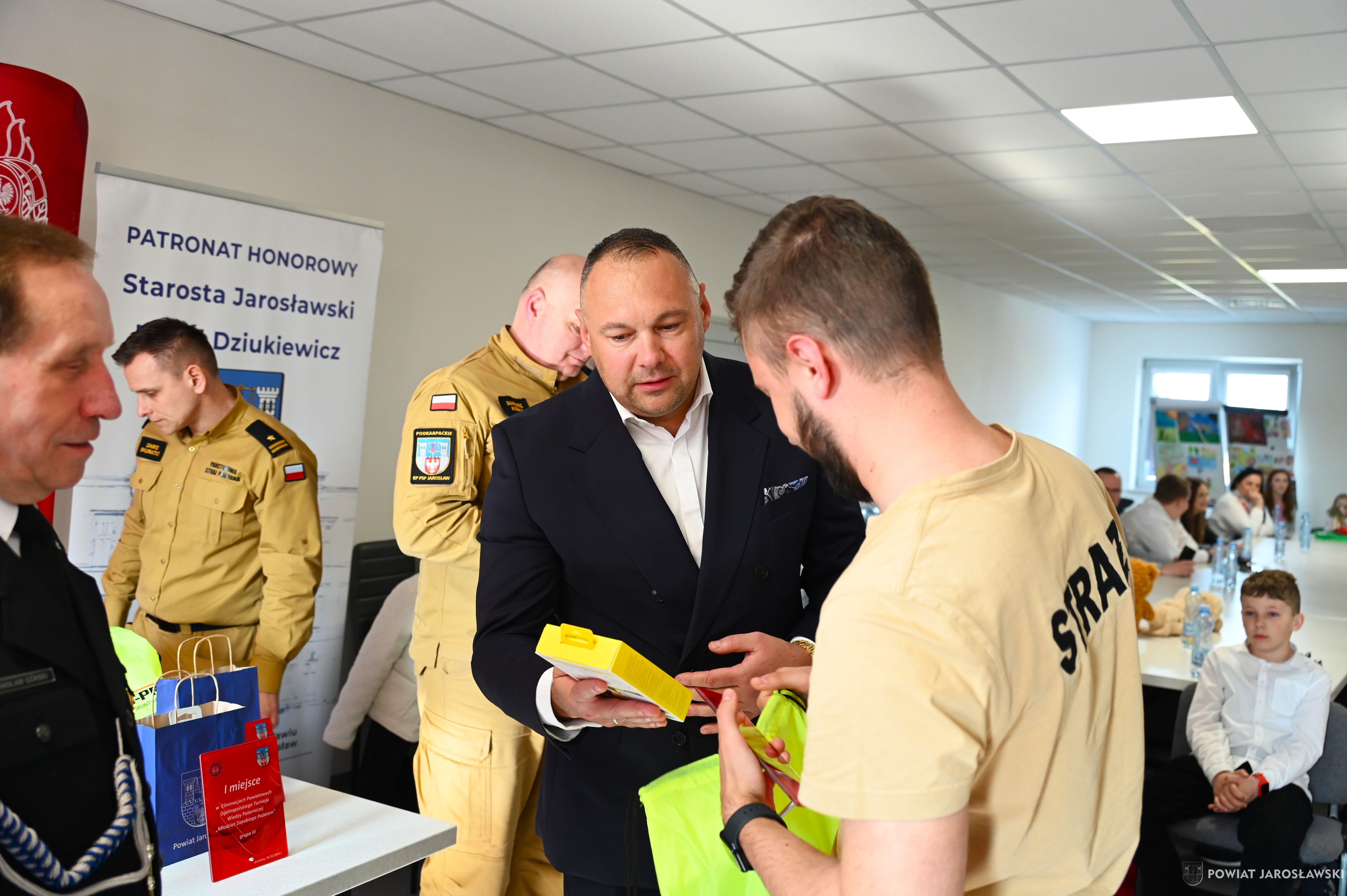 W wydarzeniu, obok starosty i naszych wspaniałych dzieci, ich opiekunów i rodziców obecni byli również m.in.: prezes Zarządu ZOSP RP w Jarosławiu a zarazem radny powiatu jarosławskiego Stanisław Górski, członek Prezydium Zarządu ZOSP RP w Jarosławiu a zarazem wójt gminy Roźwienica Tomasz Kud, komendant Powiatowy PSP w Jarosławiu st. bryg. Marek Ochenduszka, mł. bryg. Mariusz Kisała, mł. kpt. inż. Krzysztof Balicki oraz mł. bryg. Dawid Skuratko.