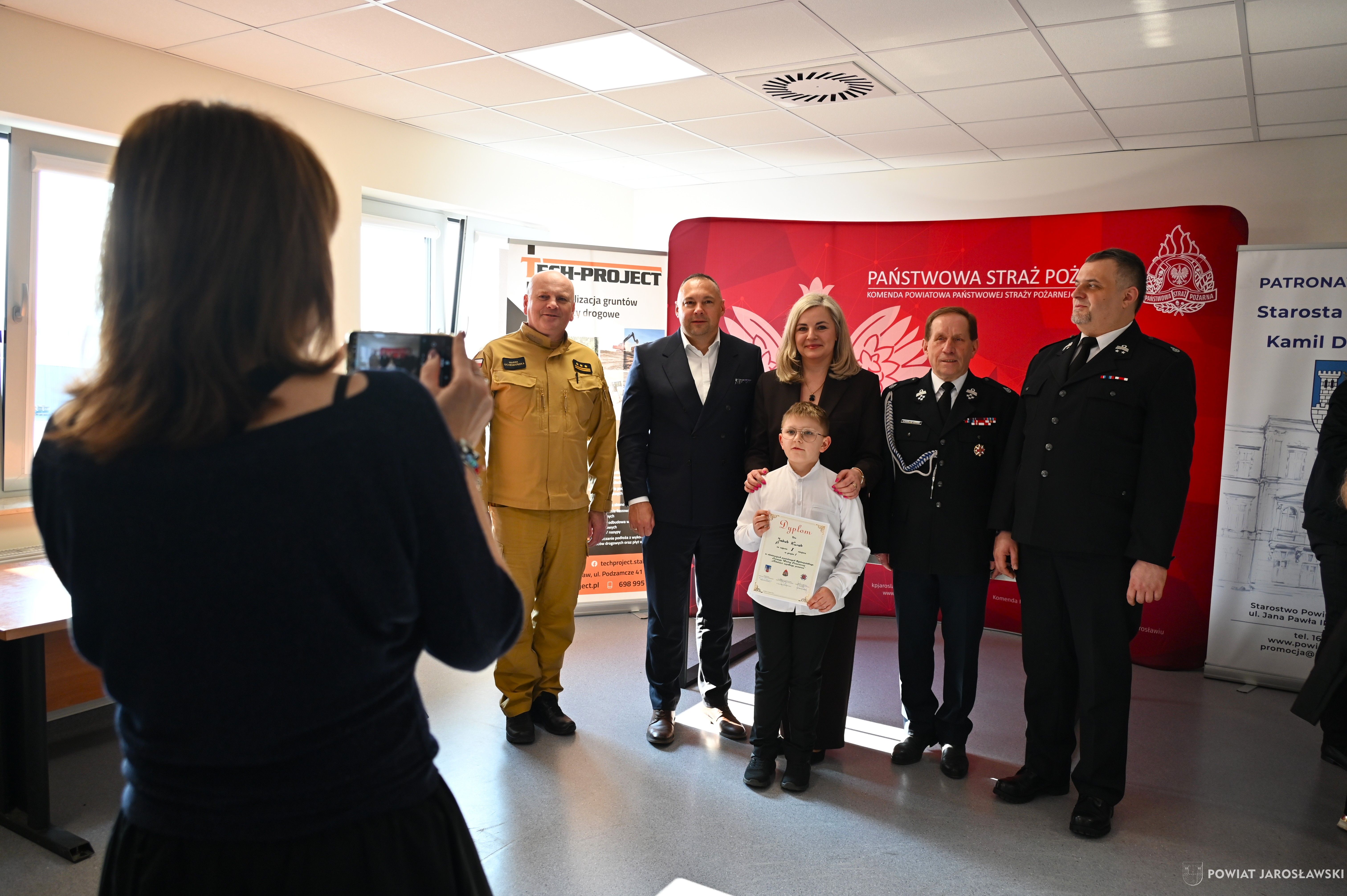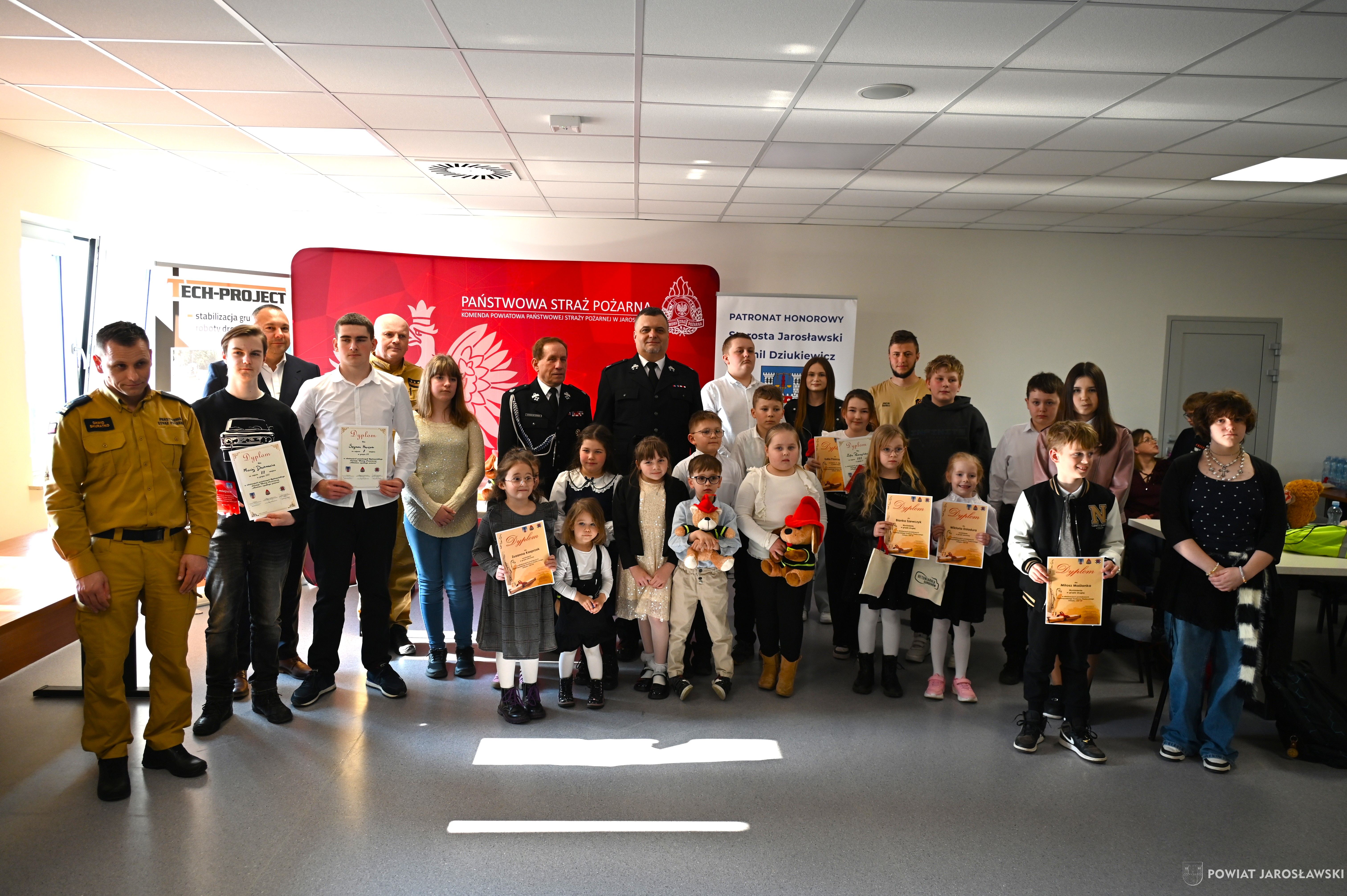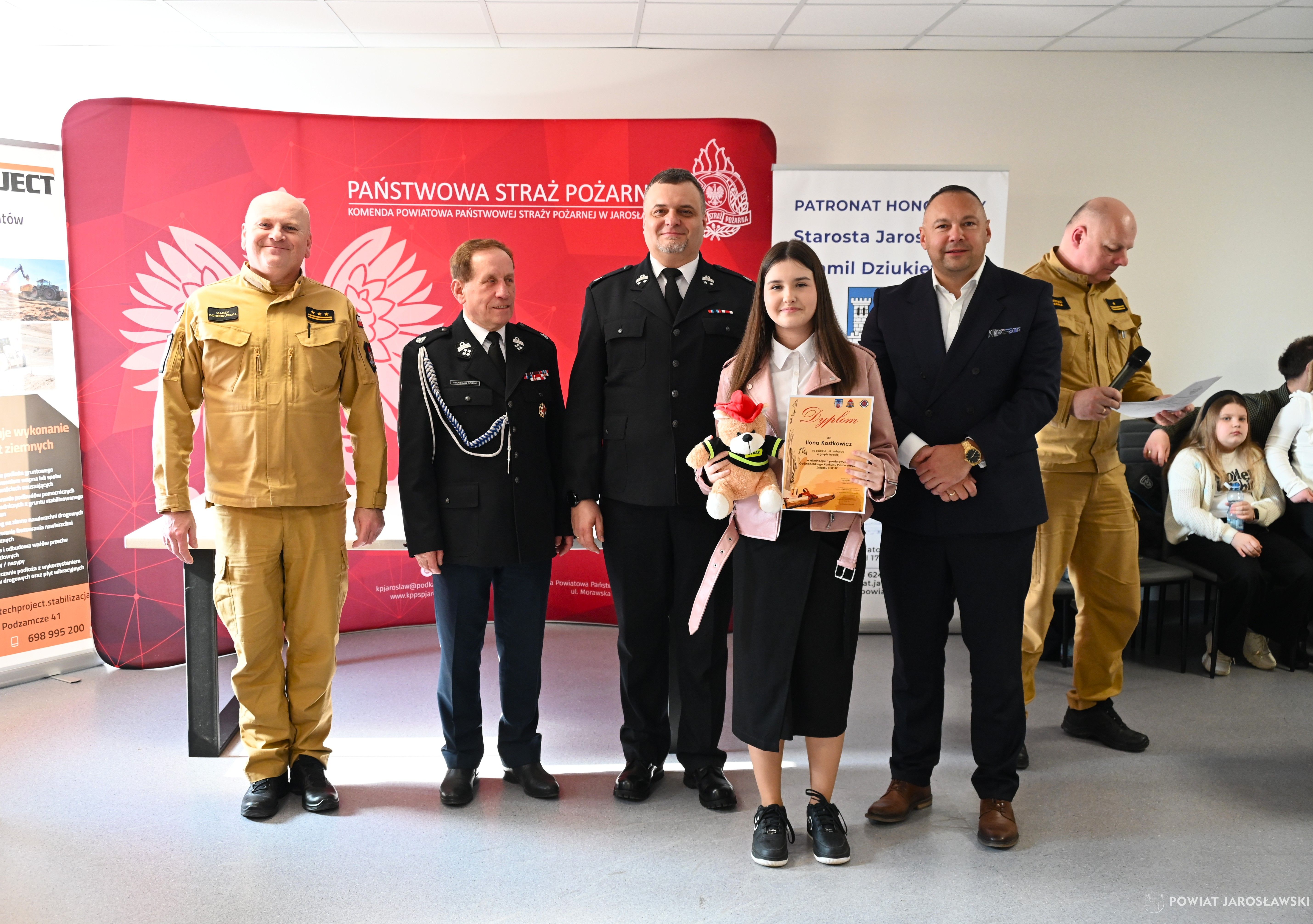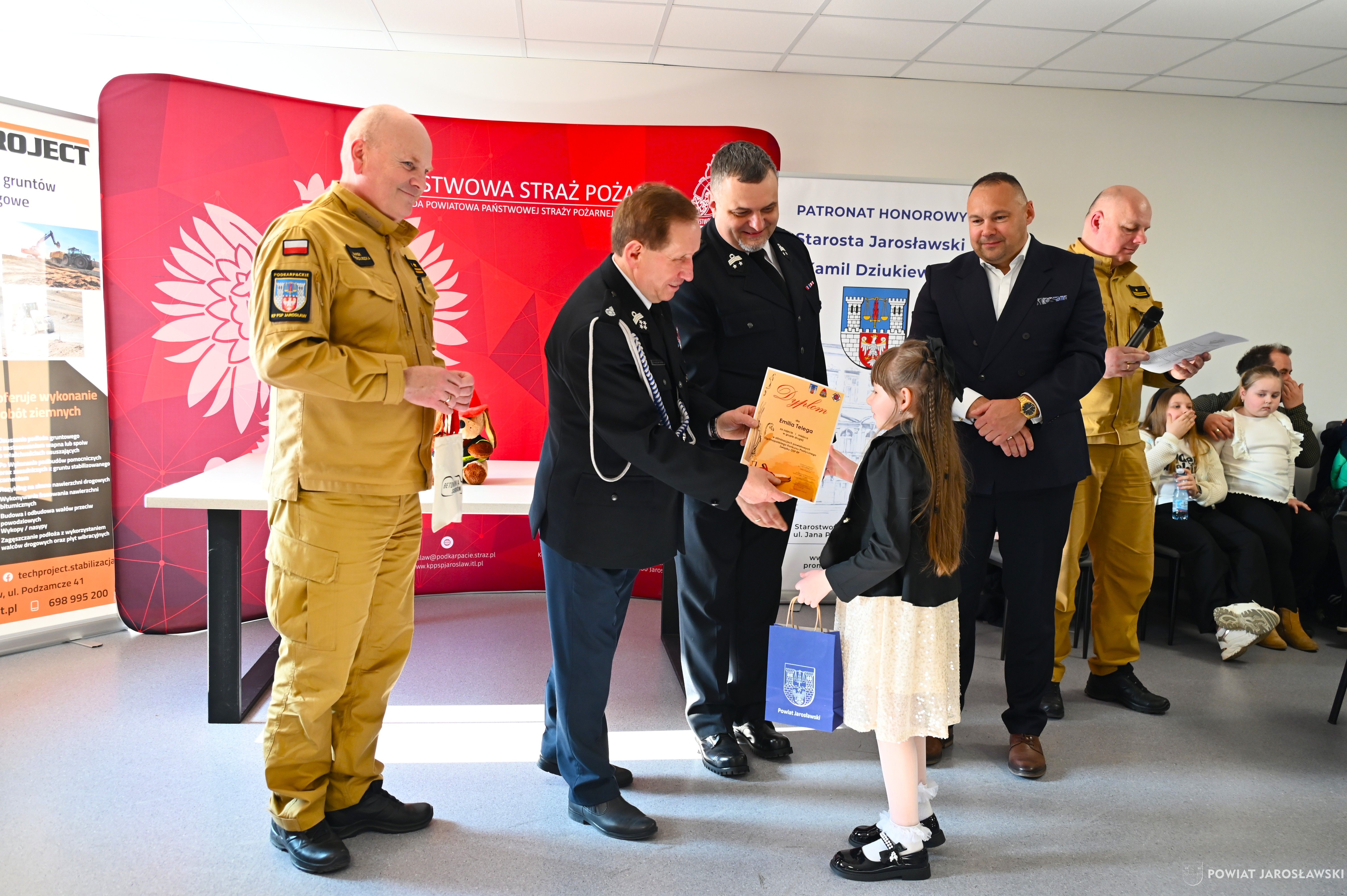 W wydarzeniu, obok starosty i naszych wspaniałych dzieci, ich opiekunów i rodziców obecni byli również m.in.: prezes Zarządu ZOSP RP w Jarosławiu a zarazem radny powiatu jarosławskiego Stanisław Górski, członek Prezydium Zarządu ZOSP RP w Jarosławiu a zarazem wójt gminy Roźwienica Tomasz Kud, komendant Powiatowy PSP w Jarosławiu st. bryg. Marek Ochenduszka, mł. bryg. Mariusz Kisała, mł. kpt. inż. Krzysztof Balicki oraz mł. bryg. Dawid Skuratko.