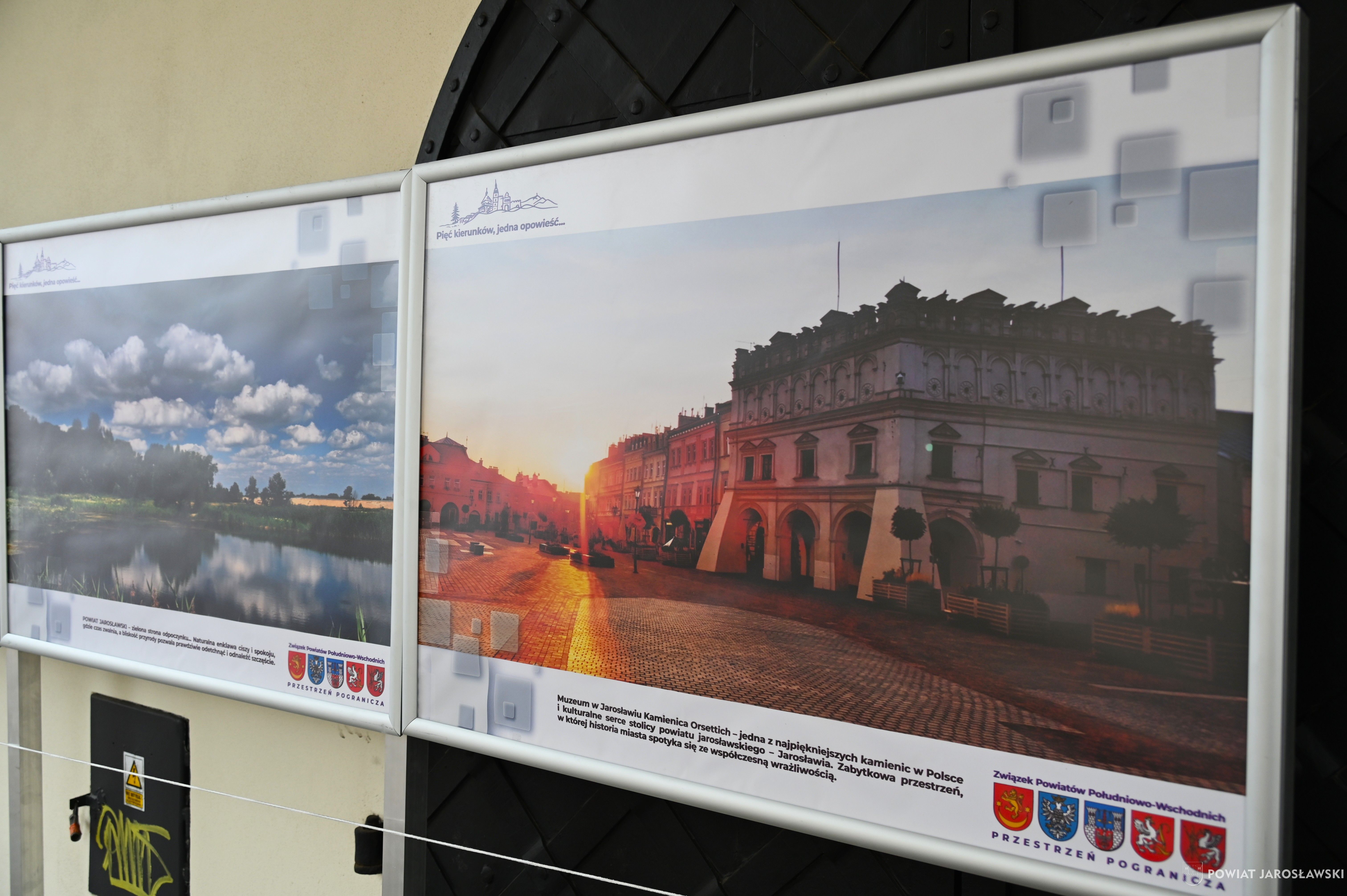 Kilkanaście dni wcześniej, od 22 do 24 marca , w niedalekim Przemyślu odbywała się 41. edycja Konferencji Europa Karpat – jednego z najważniejszych wydarzeń poświęconych współpracy społeczno-gospodarczej, politycznej i kulturalnej w Europie Środkowo-Wschodniej. To właśnie już tam mieliśmy okazję do aktywnej promocji walorów naszych powiatów. Powiat jarosławski wspólnie z powiatami bieszczadzkim, przemyskim, lubaczowskim i tomaszowskim – zachęcał uczestników wydarzenia do odkrywania wyjątkowego charakteru regionu „Przestrzeni Pogranicza”. Szczególną uwagę przyciągała wyjątkowa wystawa eksponowana przy Przemyskiej Bibliotece Publicznej. Była to inspirująca opowieść o tożsamości, dziedzictwie i potencjale naszych powiatów. Ekspozycja zachęcała do odkrywania bogactwa kulturowego regionu i stanowiła ważny element budowania jego rozpoznawalności. Wystawa ma również swoją kontynuację – od wczoraj można ją zobaczyć w podcieniach Muzeum w Jarosławiu Kamienica Orsettich. Ekspozycja pozostanie tam do końca kwietnia, po czym w maju zostanie przekazana powiatowi bieszczadzkiemu. To będzie niejako początek jej podróży po regionie, gdyż w kolejnych miesiącach będziecie ją mogli Państwo podziwiać również w powiatach lubaczowskim, tomaszowskim i przemyskim.