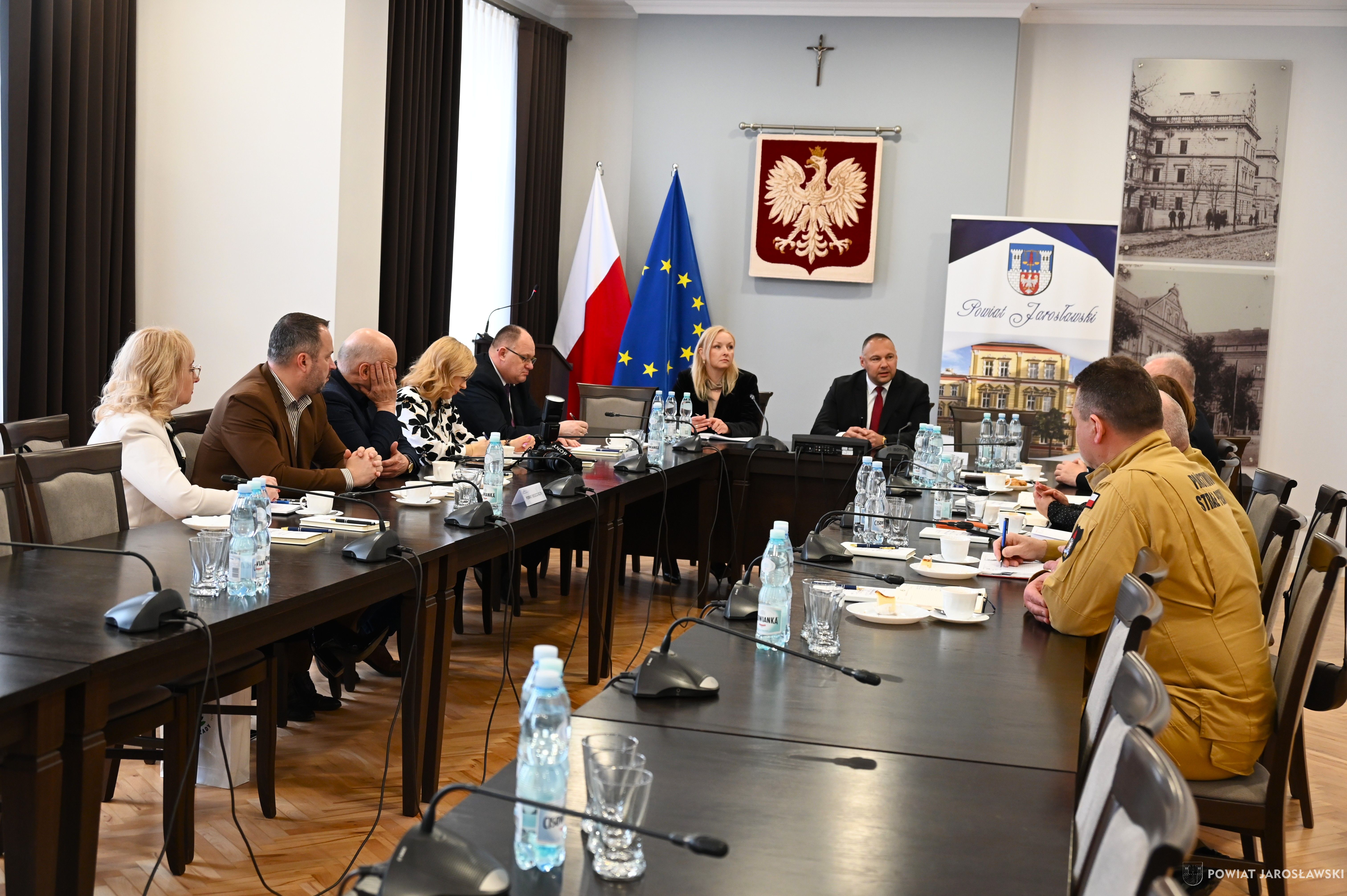 Pierwsza część spotkania, która miała miejsce w sali narad jarosławskiego Starostwa Powiatowego, poświęcona była merytorycznej dyskusji. Była to przestrzeń do kontynuowania konstruktywnego dialogu, wymiany doświadczeń oraz wypracowywania wspólnych kierunków działań w kluczowych obszarach współpracy. W spotkaniu uczestniczył poseł na sejm RP Tadeusz Chrzan oraz przedstawiciele pięciu powiatów: gospodarz wydarzenia –starosta jarosławski Kamil Dziukiewicz wraz z naczelnikiem Wydziału Rozwoju i Promocji Powiatu Agatą Godos, sekretarz powiatu przemyskiego Witold Szpytman, starosta bieszczadzki Marek Andruch oraz wicestarosta bieszczadzki Artur Woźny, starosta lubaczowski Barbara Broź wraz z sekretarzem Alicją Czernysz – Kawa, a także starosta tomaszowski Henryk Karwan i dyrektor Wydziału Promocji i Rozwoju w Starostwie Powiatowym w Tomaszowie Lubelskim Ewelina Michniak, których łączy wspólna wizja rozwoju pogranicza.