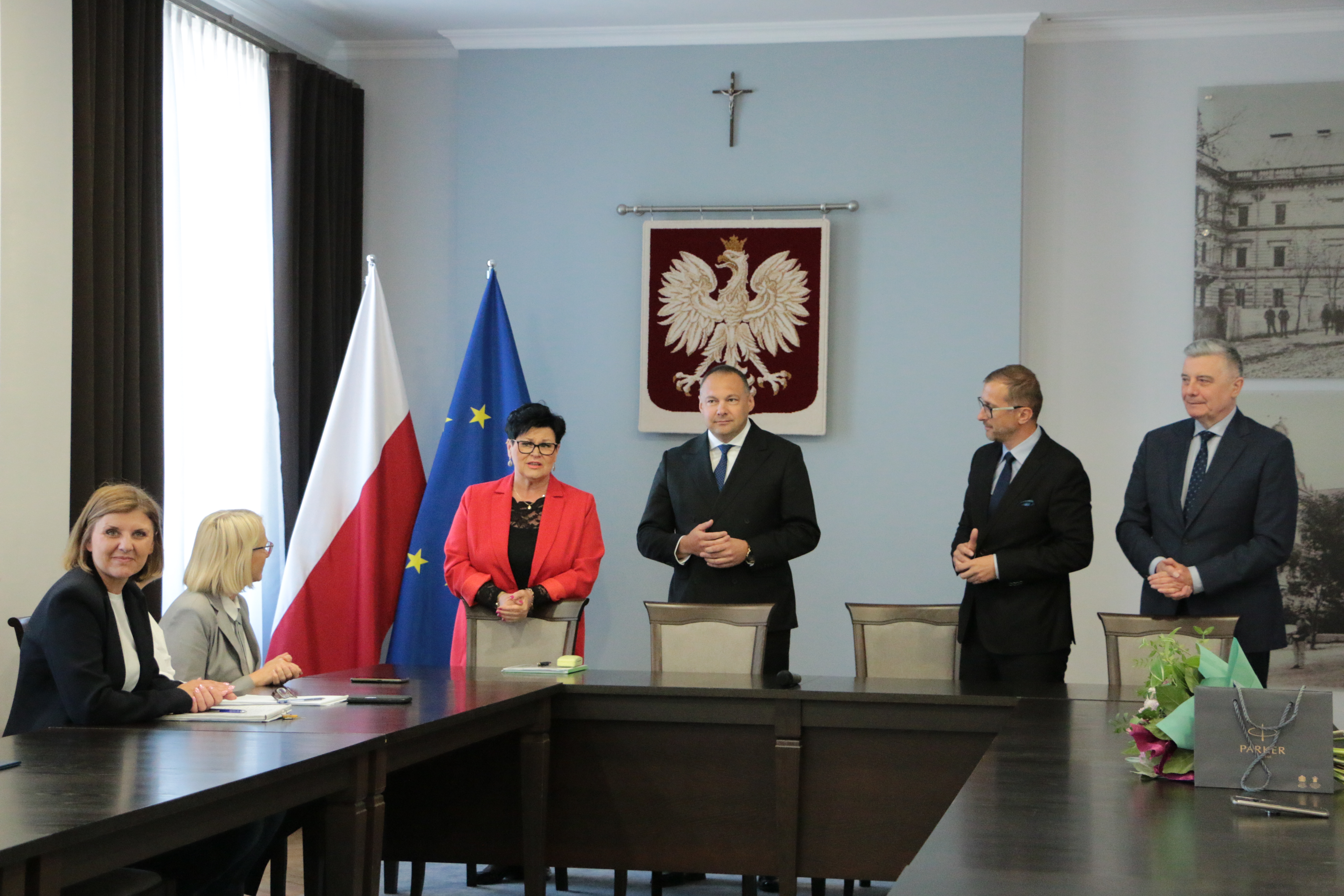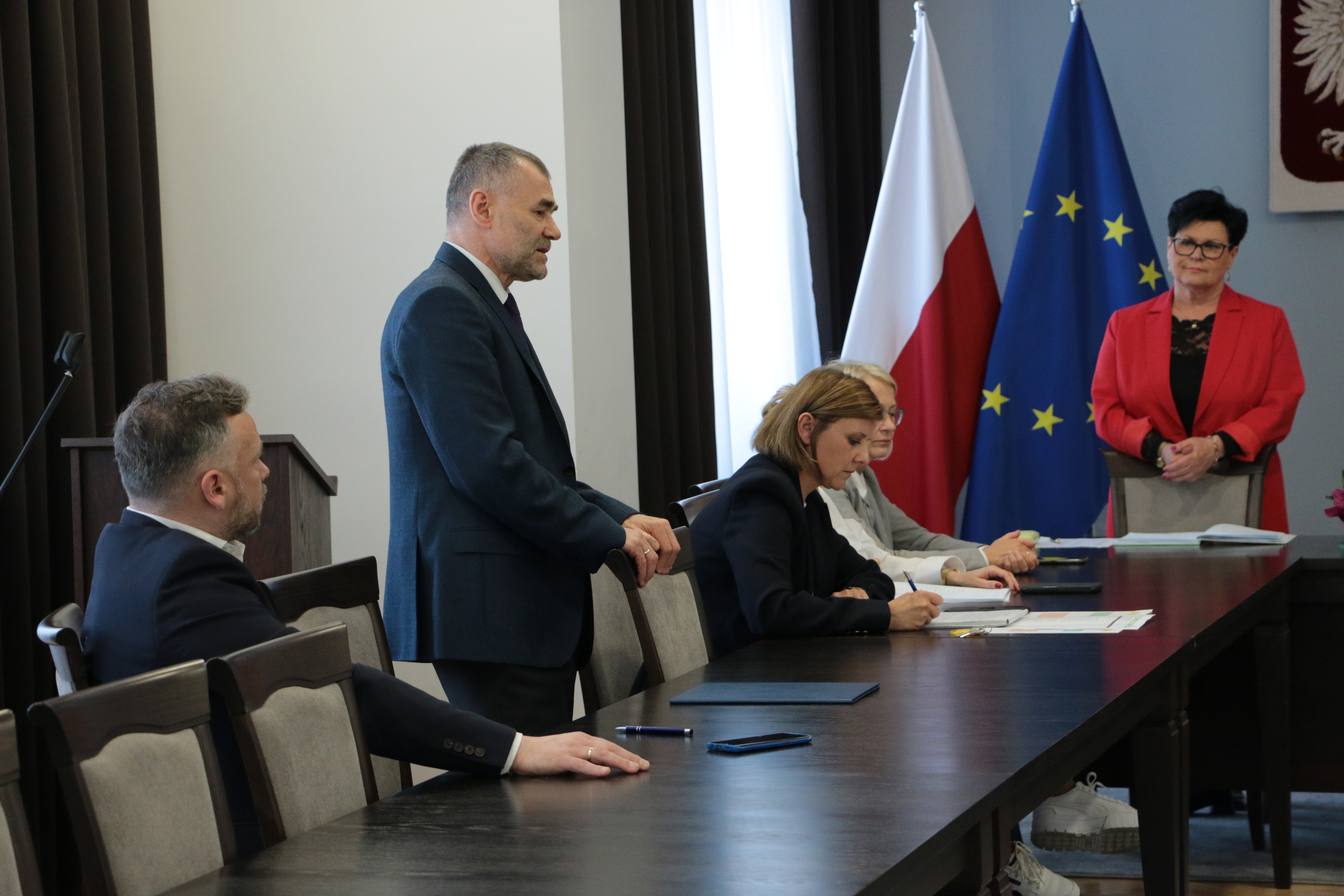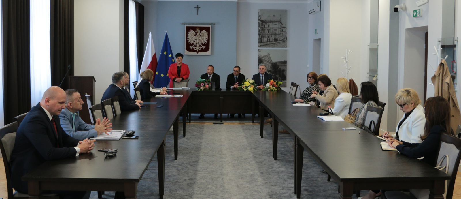 16 maja 2024 roku odbyła się narada dyrektorów szkół ponadpodstawowych i placówek edukacyjno - wychowawczych – jednostek podległych Powiatu Jarosławskiego. W spotkaniu z dyrektorami uczestniczyli: Starosta Jarosławski Kamil Dziukiewicz, Wicestarosta Krzysztof Cebulak, Etatowy Członek Zarządu Andrzej Wyczawski oraz Naczelnik Wydziału Edukacji i Spraw Społecznych Marta Kurpiel wraz z pracownikami. Zebranie rozpoczęło się od uroczystego powitania starosty przez reprezentację dyrektorów. Padło wiele ciepłych słów, podziękowań. Omówione zostały plany współpracy na przyszłość, następnie przystąpiono do części merytorycznej.