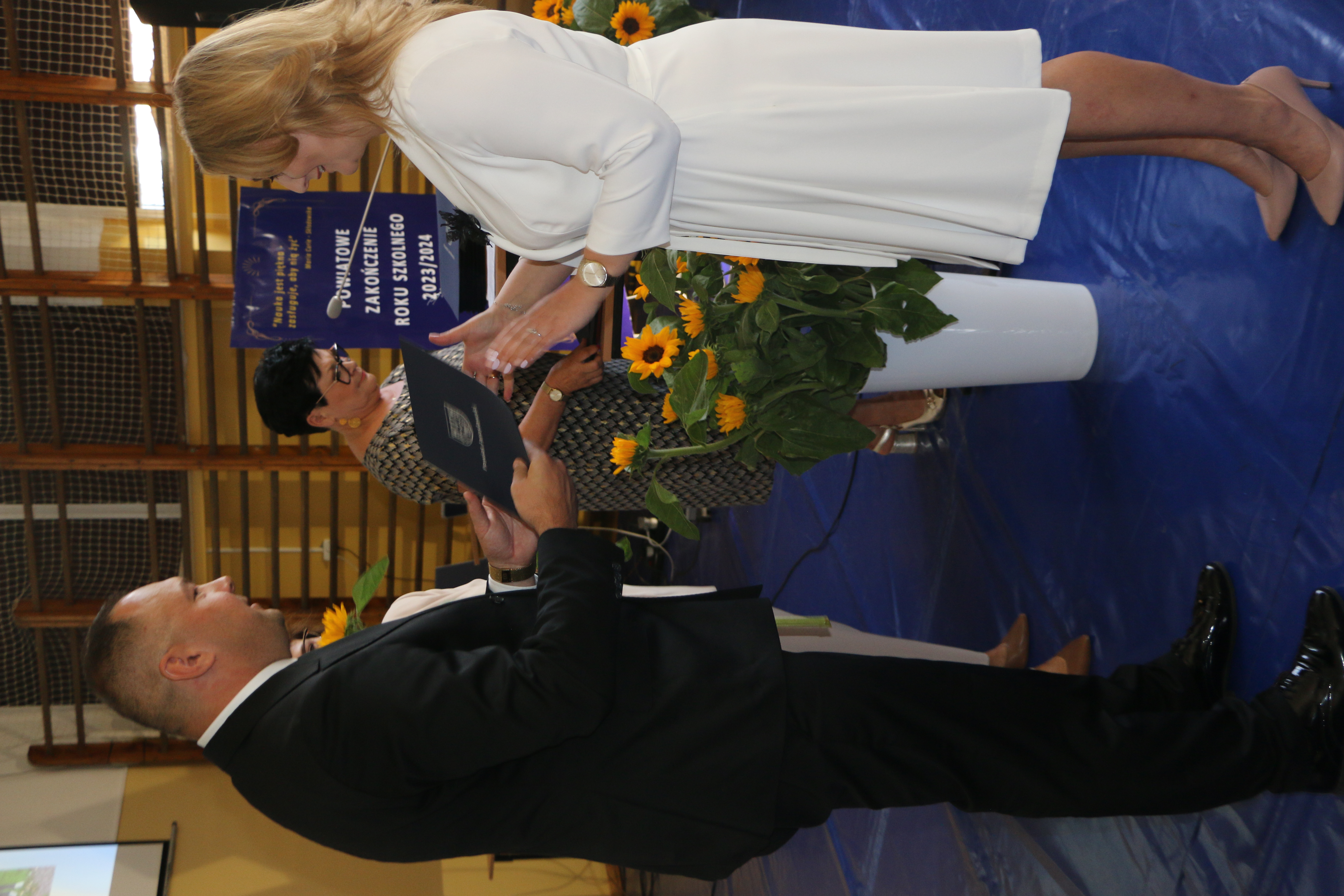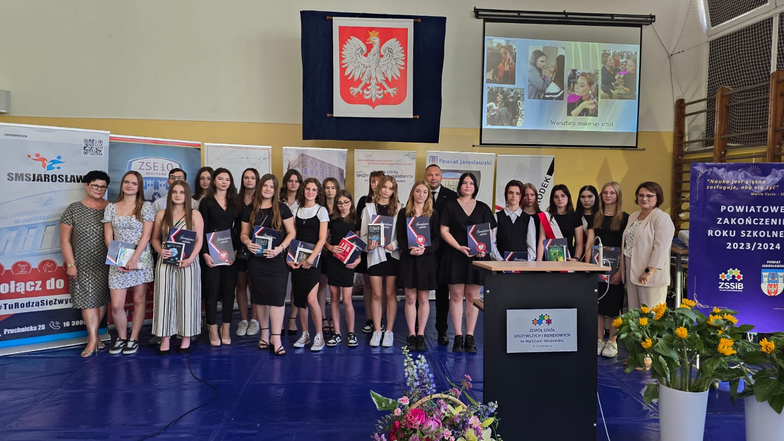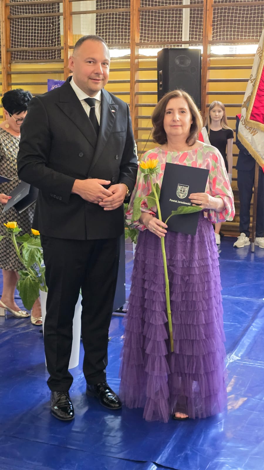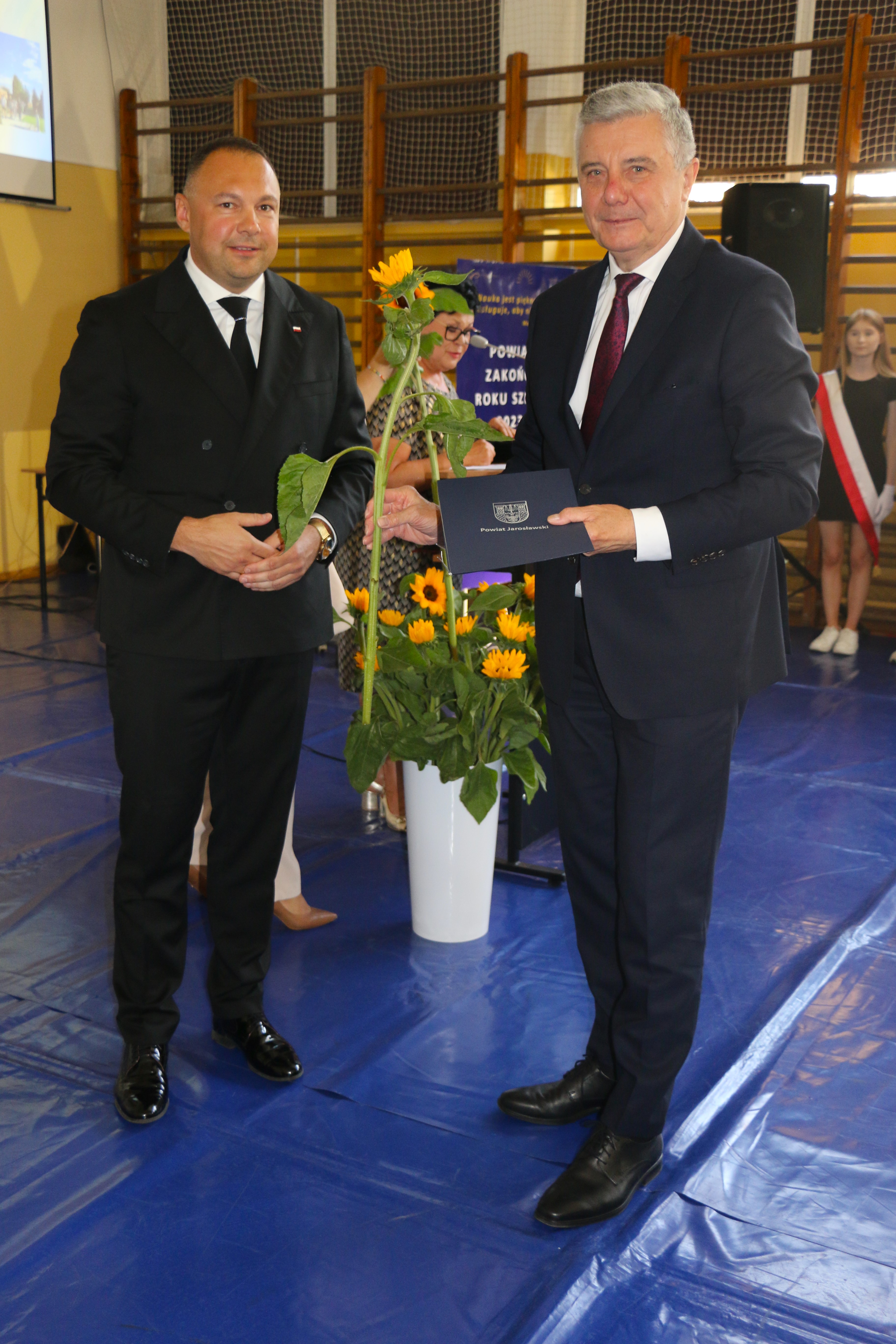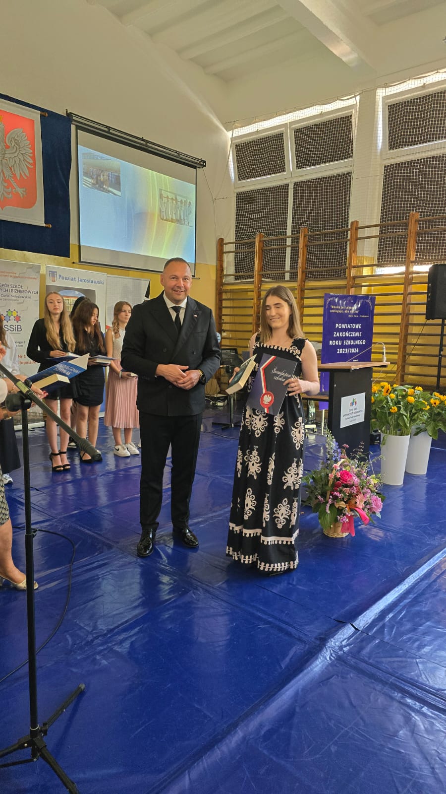 Na wstępie zebrani otrzymali podziękowania od Starosty Jarosławskiego Kamila Dziukiewicza za istotny wkład w edukację i jej rozwój na terenie Powiatu Jarosławskiego. W dalszej części uroczystości odbyło się wręczenie świadectw z wyróżnieniem oraz nagród dla najlepszych uczniów. Był to moment pełen dumy i radości, zarówno dla samych uczniów, jak i dla ich rodziców oraz nauczycieli.