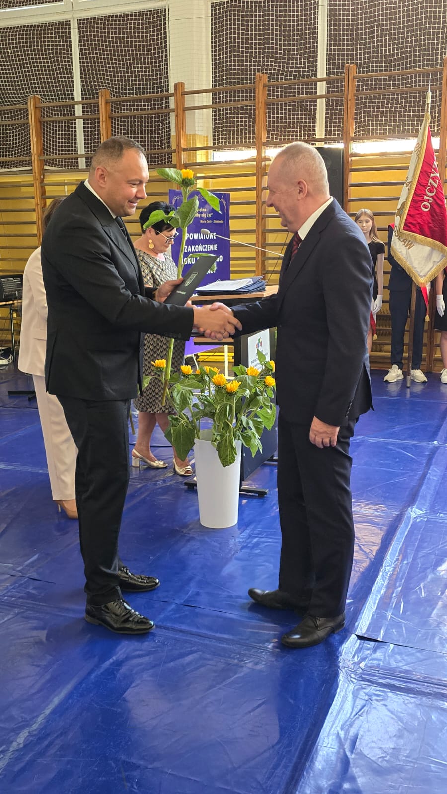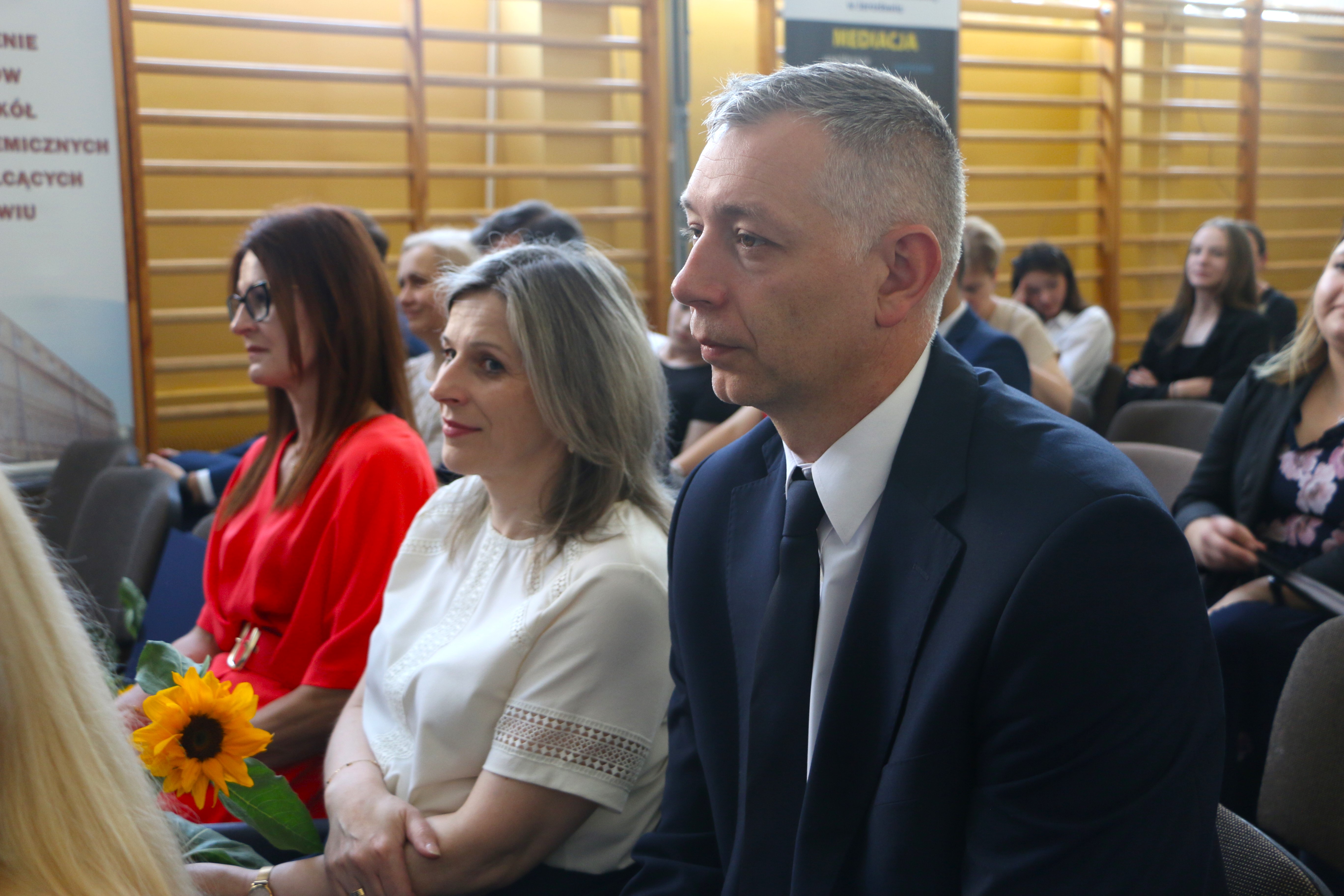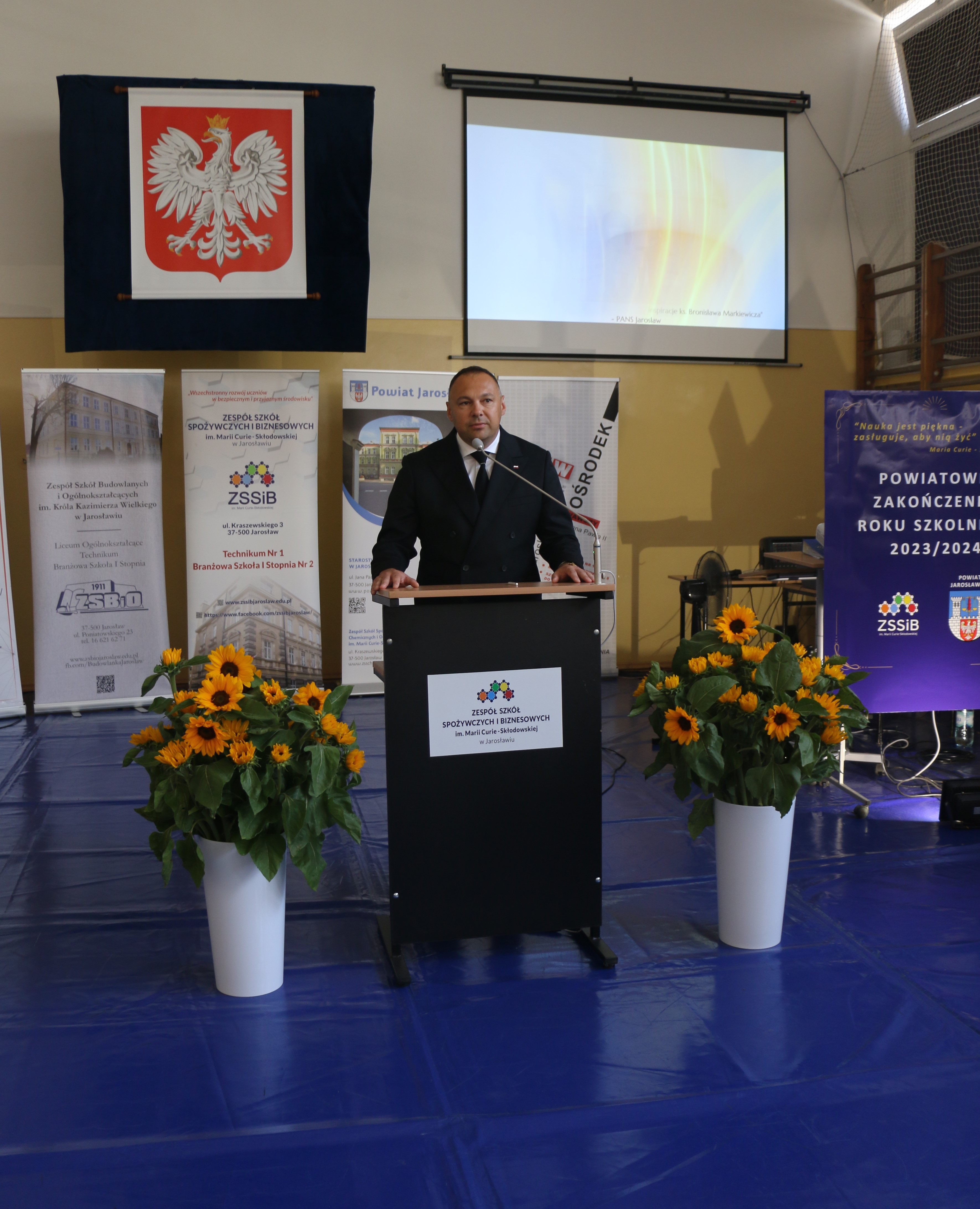 Zakończenie roku szkolnego, to zawsze czas podsumowań. Dlatego warto powiedzieć - jestem pełen podziwu dla całej społeczności związanej z system edukacji i oświaty na ziemi jarosławskiej. – mówił Starosta Jarosławski Kamil Dziukiewicz w swoim wystąpieniu. Zwrócił się do całej społeczności szkolnej, na czele której stoi Dyrektor Dorota Wierzbińska-Dubaj.