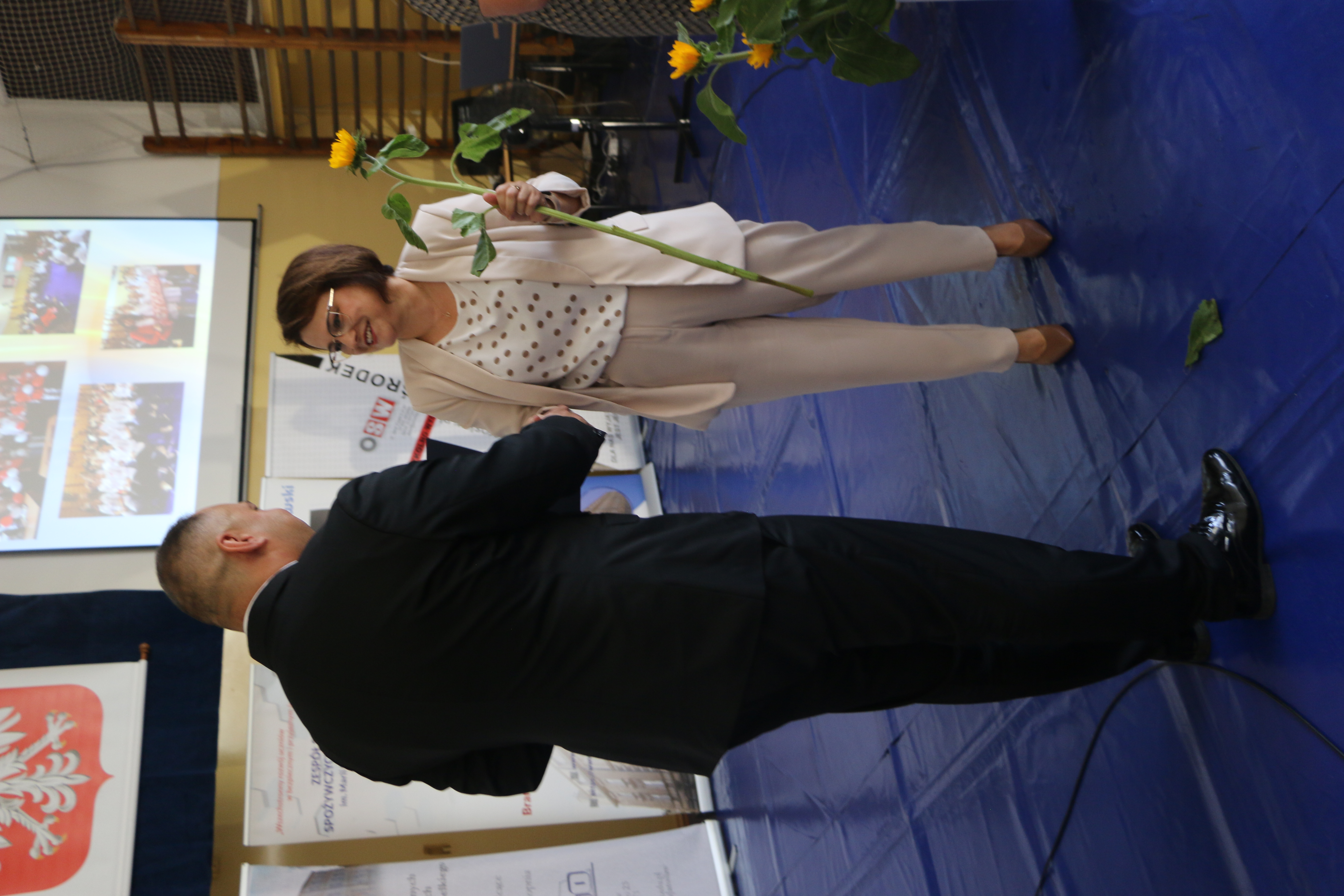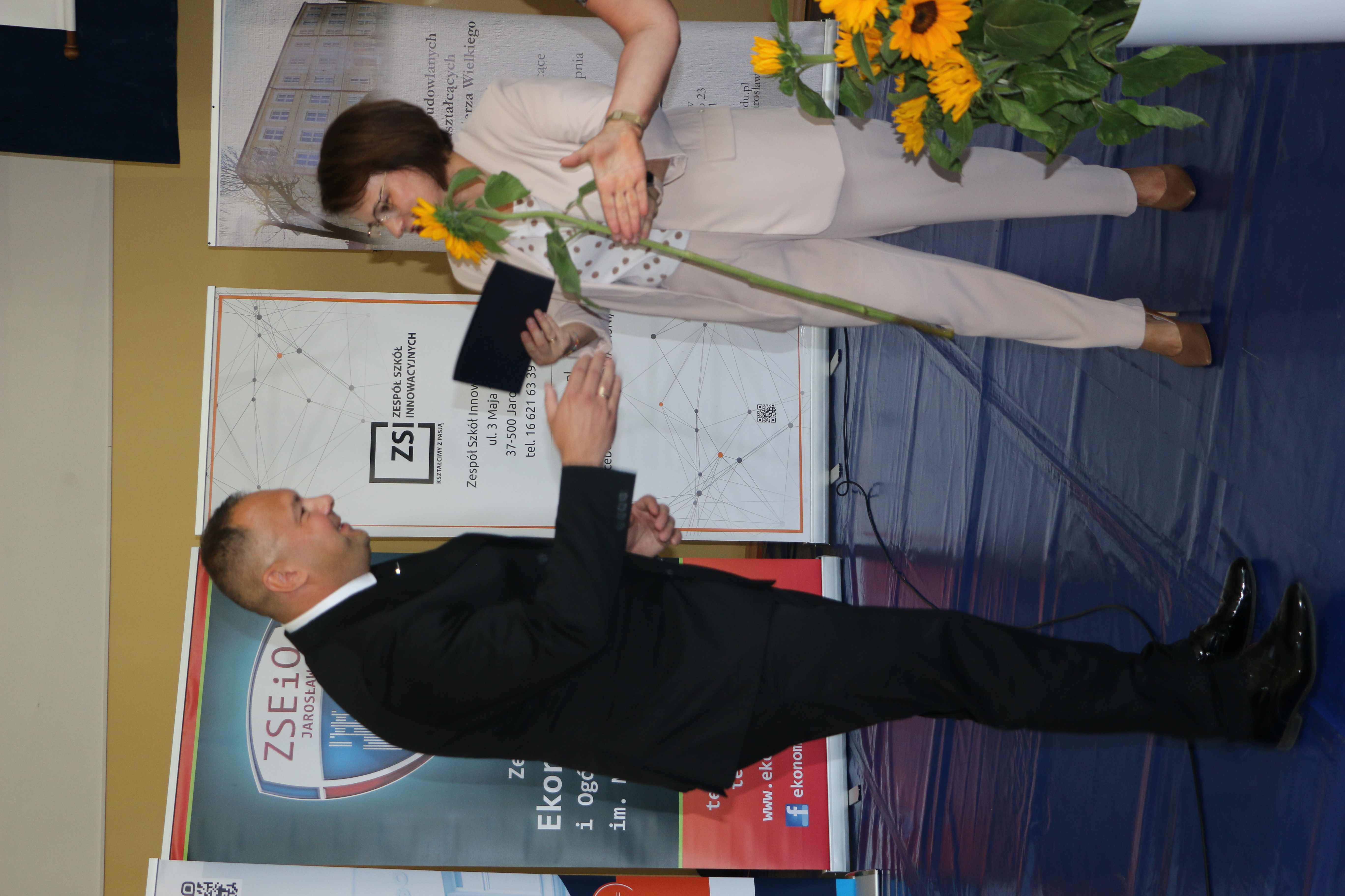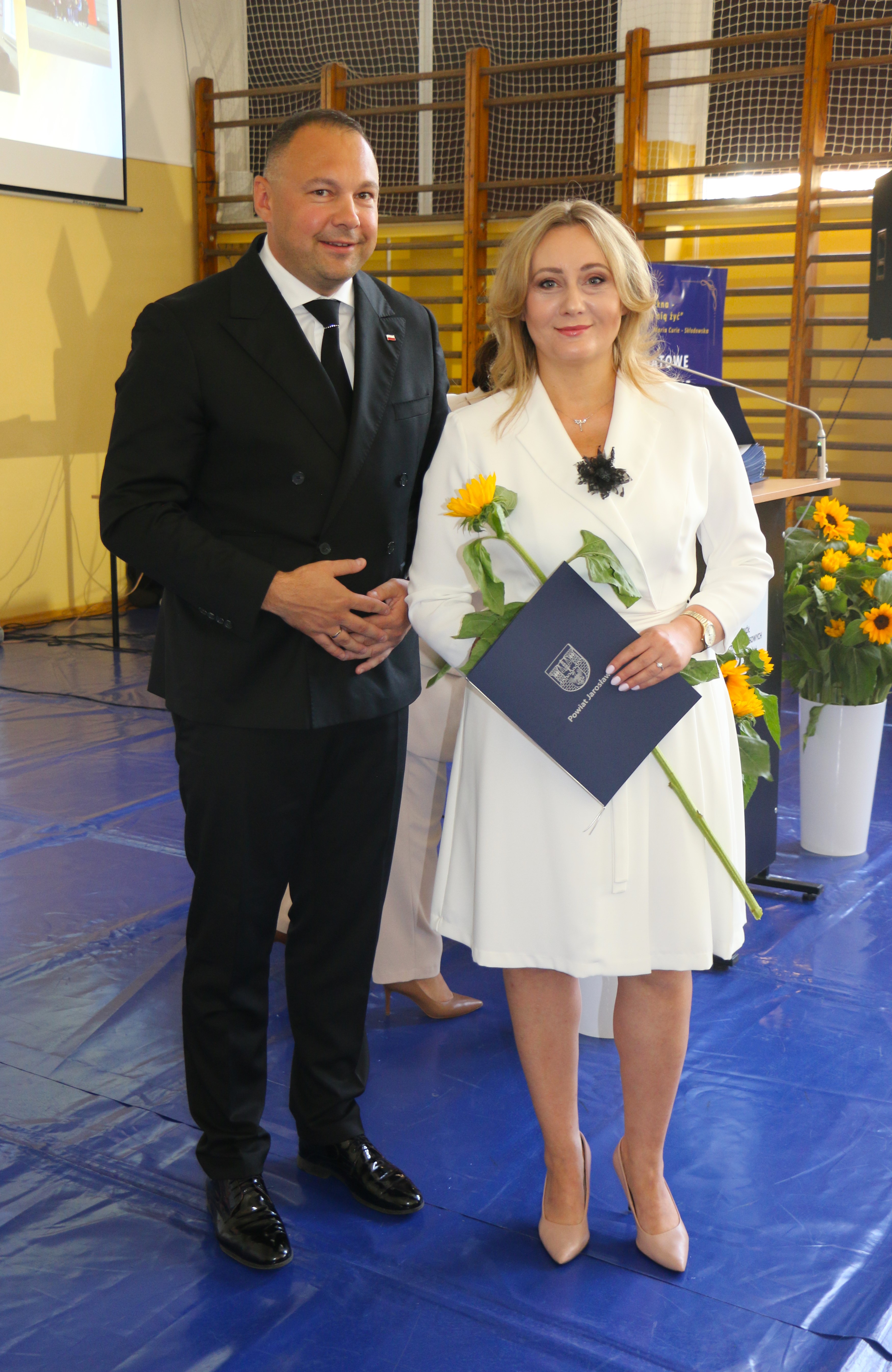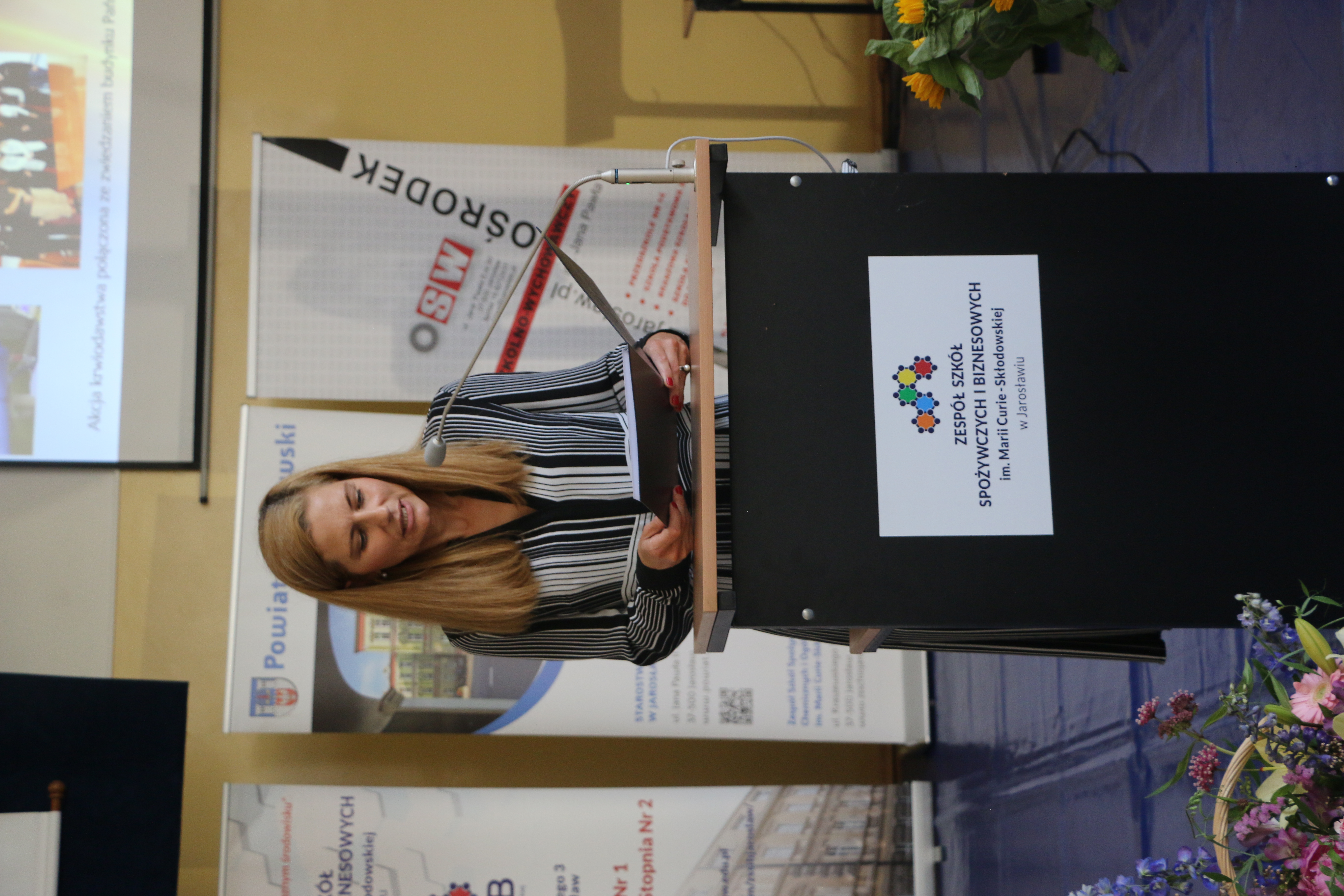Dyrektor zabrała głos na początku uroczystości i powitała zebranych. Wśród gości byli, z ramienia Powiatu Jarosławskiego, Wicestarosta Jarosławski Krzysztof Cebulak, Wiceprzewodnicząca Rady Powiatu Magdalena Rożek, Przewodnicząca Komisji Oświaty Agnieszka Pieniążek, Etatowy Członek Zarządu Andrzej Wyczawski, Skarbnik Powiatu Agnieszka Mroczka, Naczelnik Wydziału Edukacji i Spraw Społecznych Marta Kurpiel oraz Naczelnik Wydziału Rozwoju i Promocji Monika Maj-Lichończak.