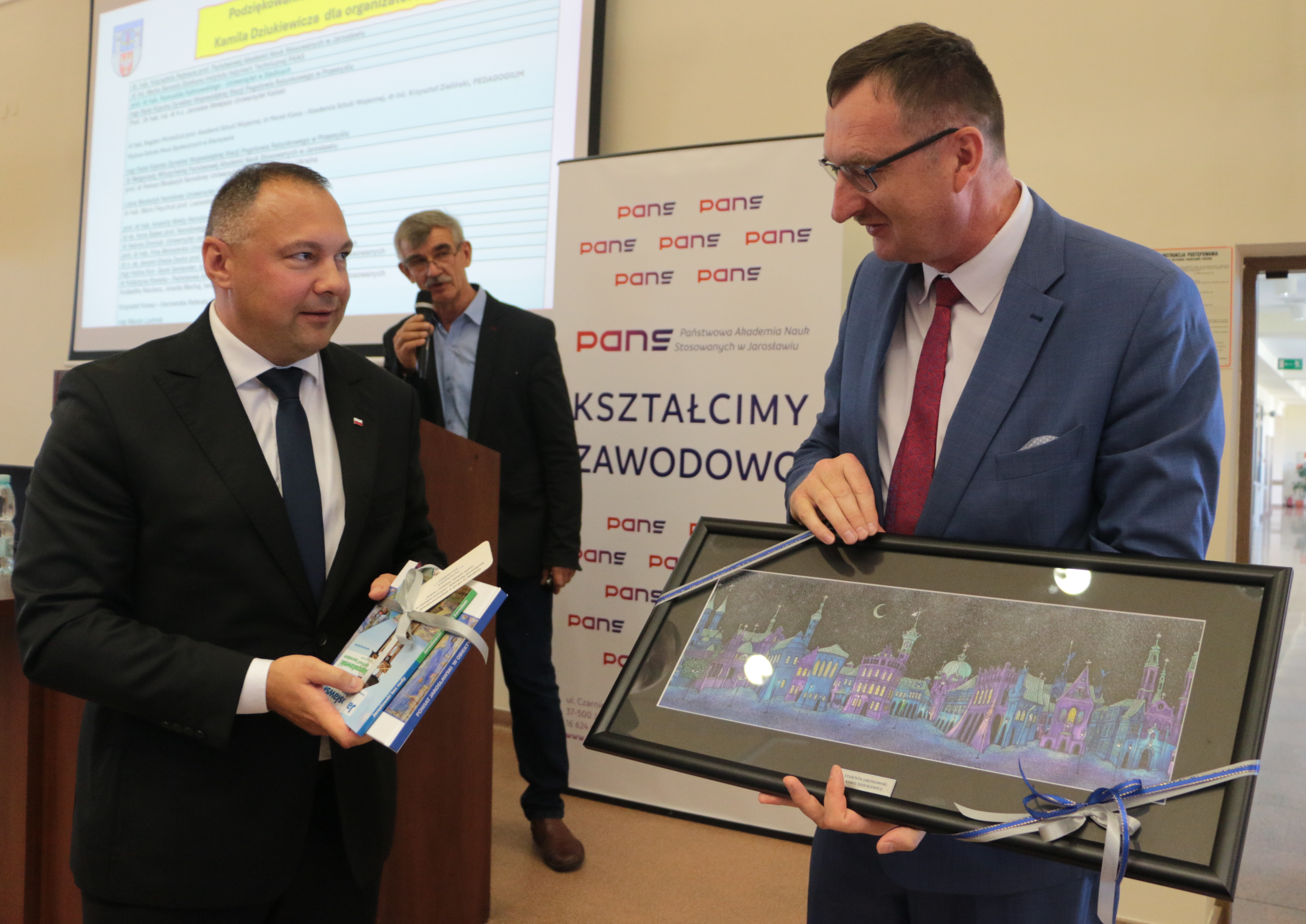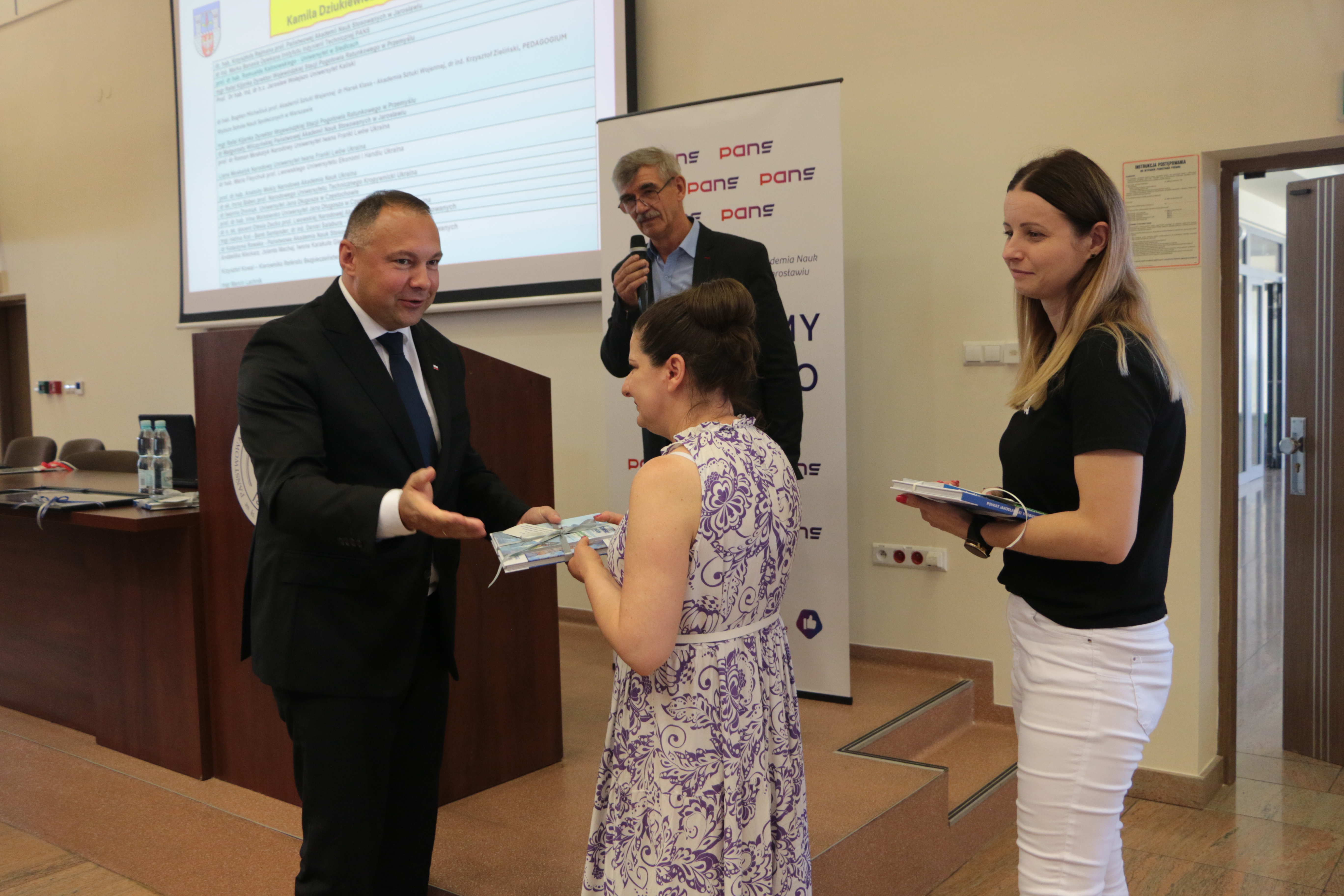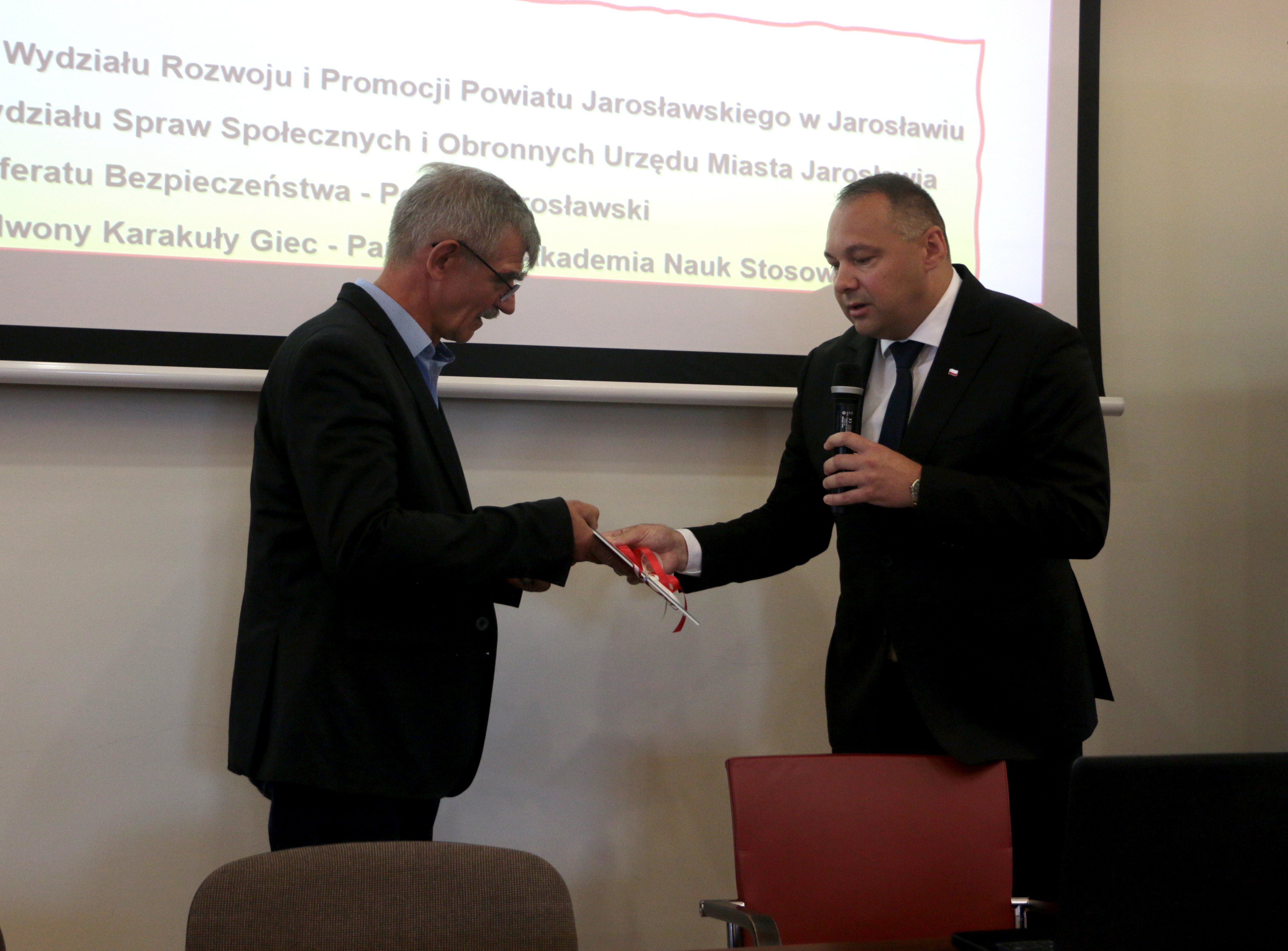 Starosta Jarosławski Kamil Dziukiewicz podziękował zebranym za przybycie oraz zaznaczył jak ważna jest wiedza w obszarze szeroko pojętej ochrony ludności. Podziękowania wręczył organizatorom: Rektorowi prof. Krzysztofowi Rejmanowi oraz dr Jerzemu Kuckowi, partnerowi Burmistrzowi Marcinowi Nazarewiczowi oraz wszystkim prelegentom.